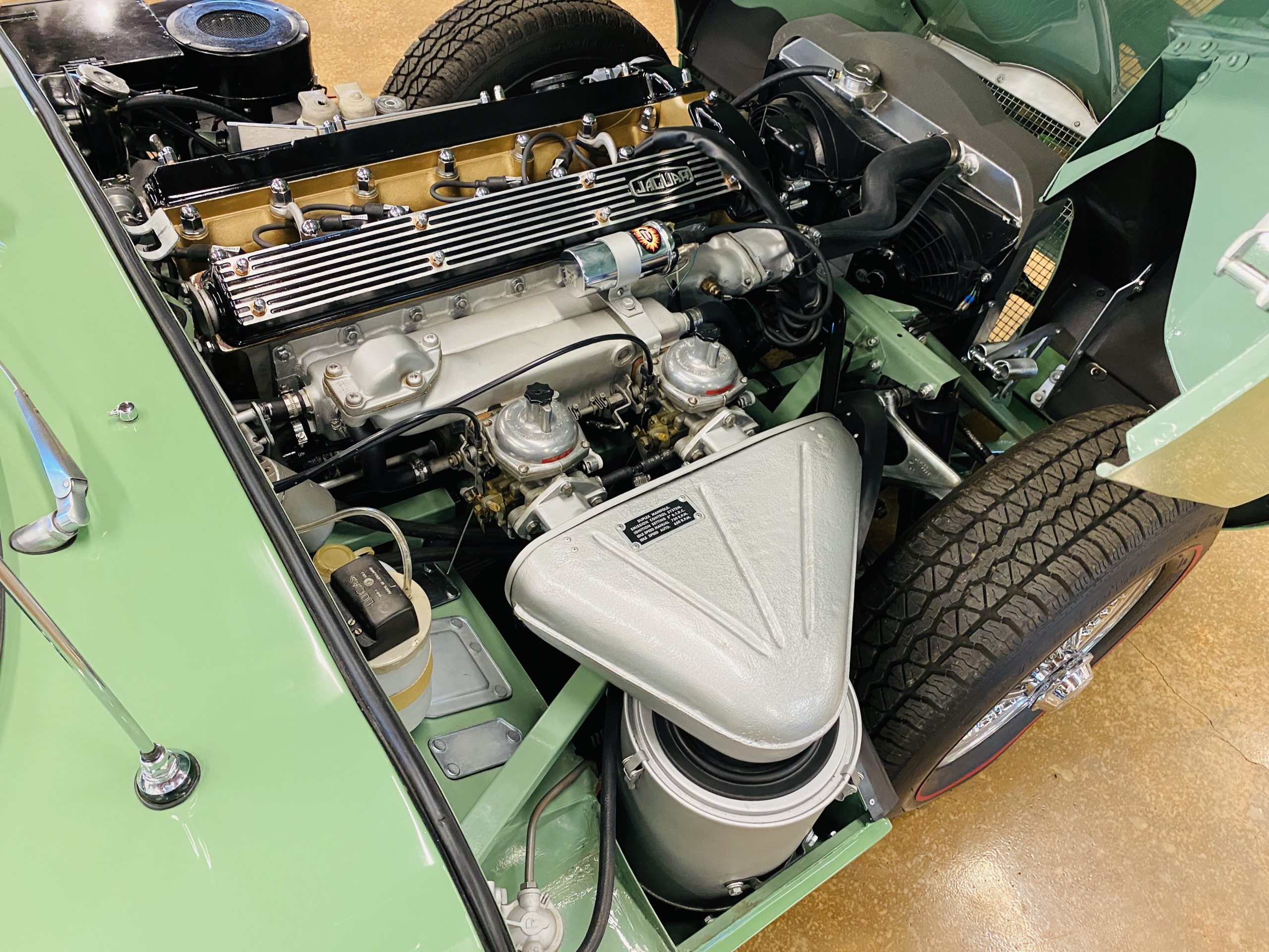 The heart of this particular E-Type is what lies beneath the bonnet. The engine pulls strong and operates perfectly. During the restoration, the Jaguar was equipped with headers for more spirited performance. It has its numbers matching engine and the motorcar comes with its original data plate, receipts and records of the restoration and the Historical Society certificate.