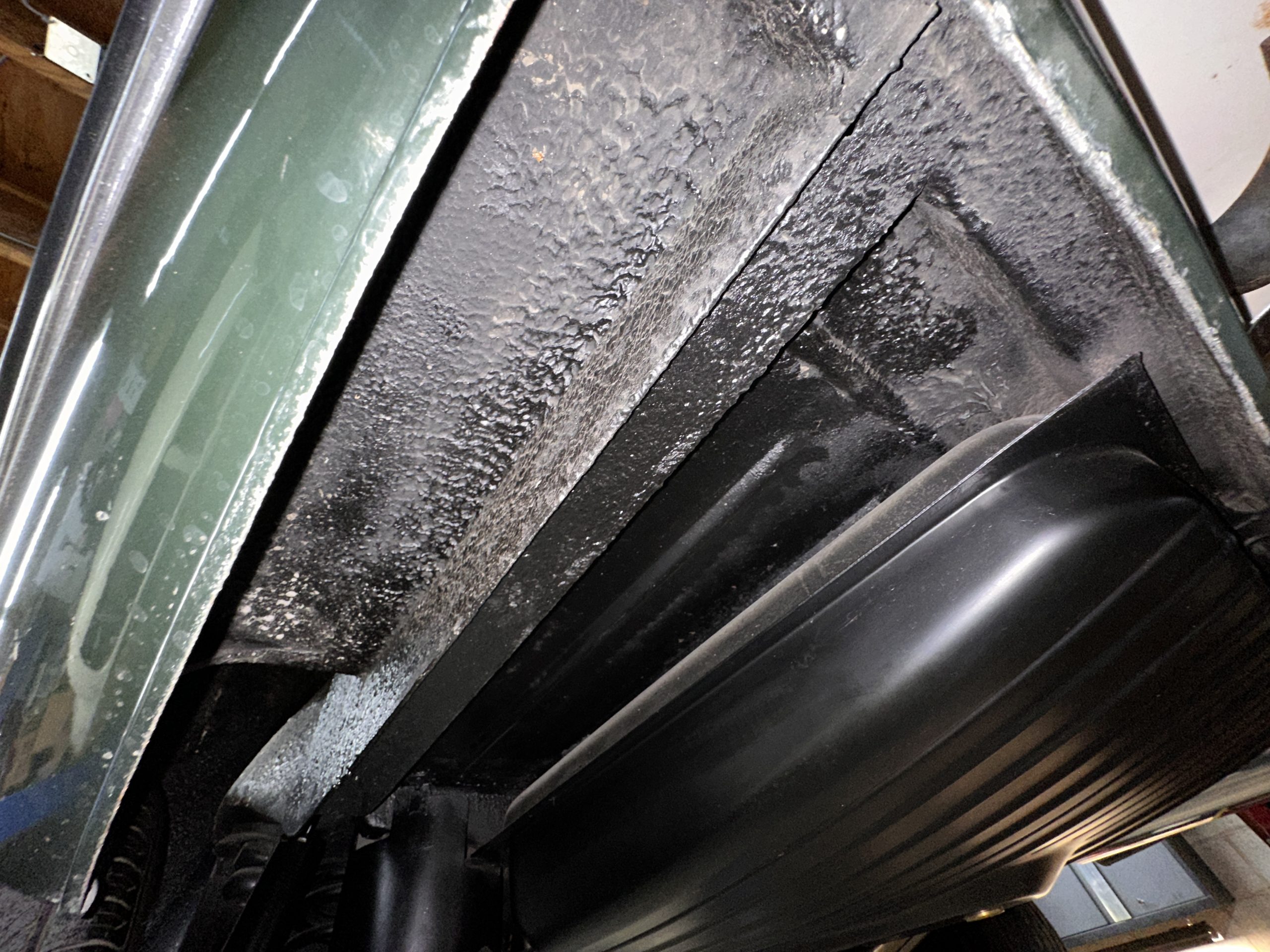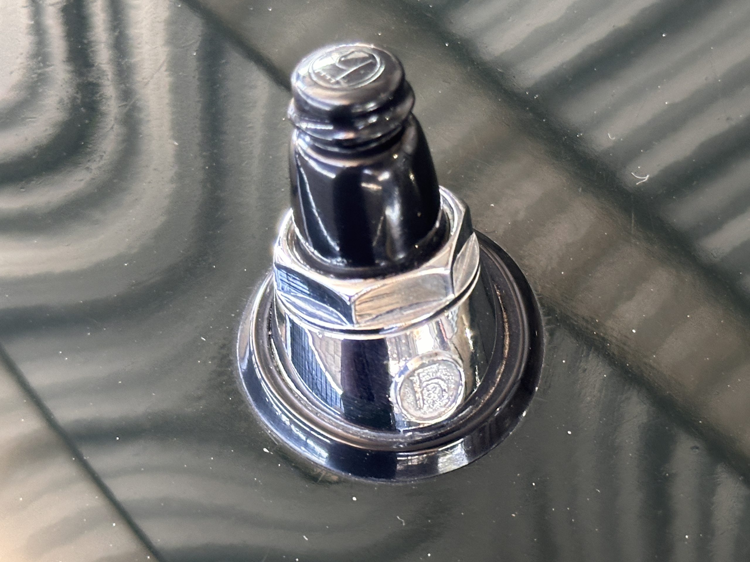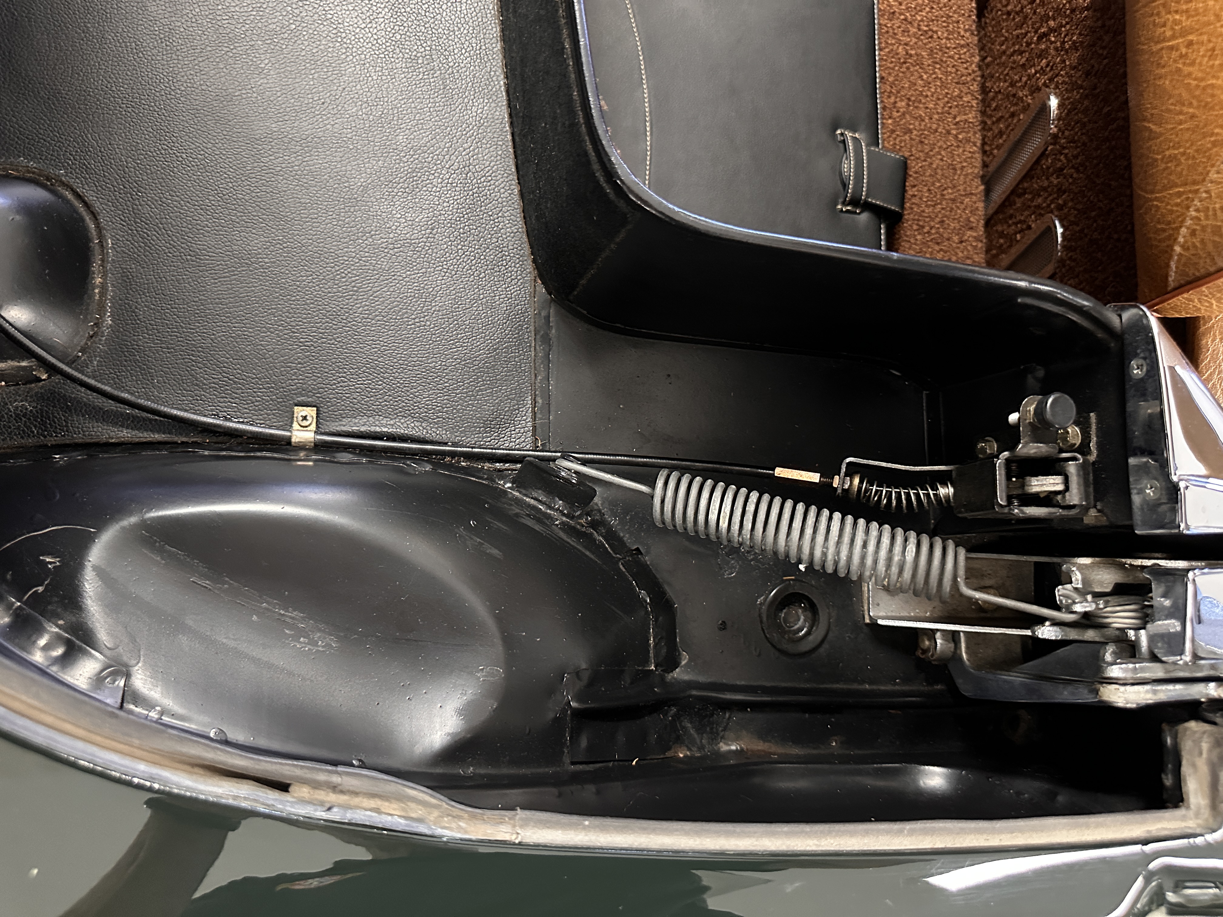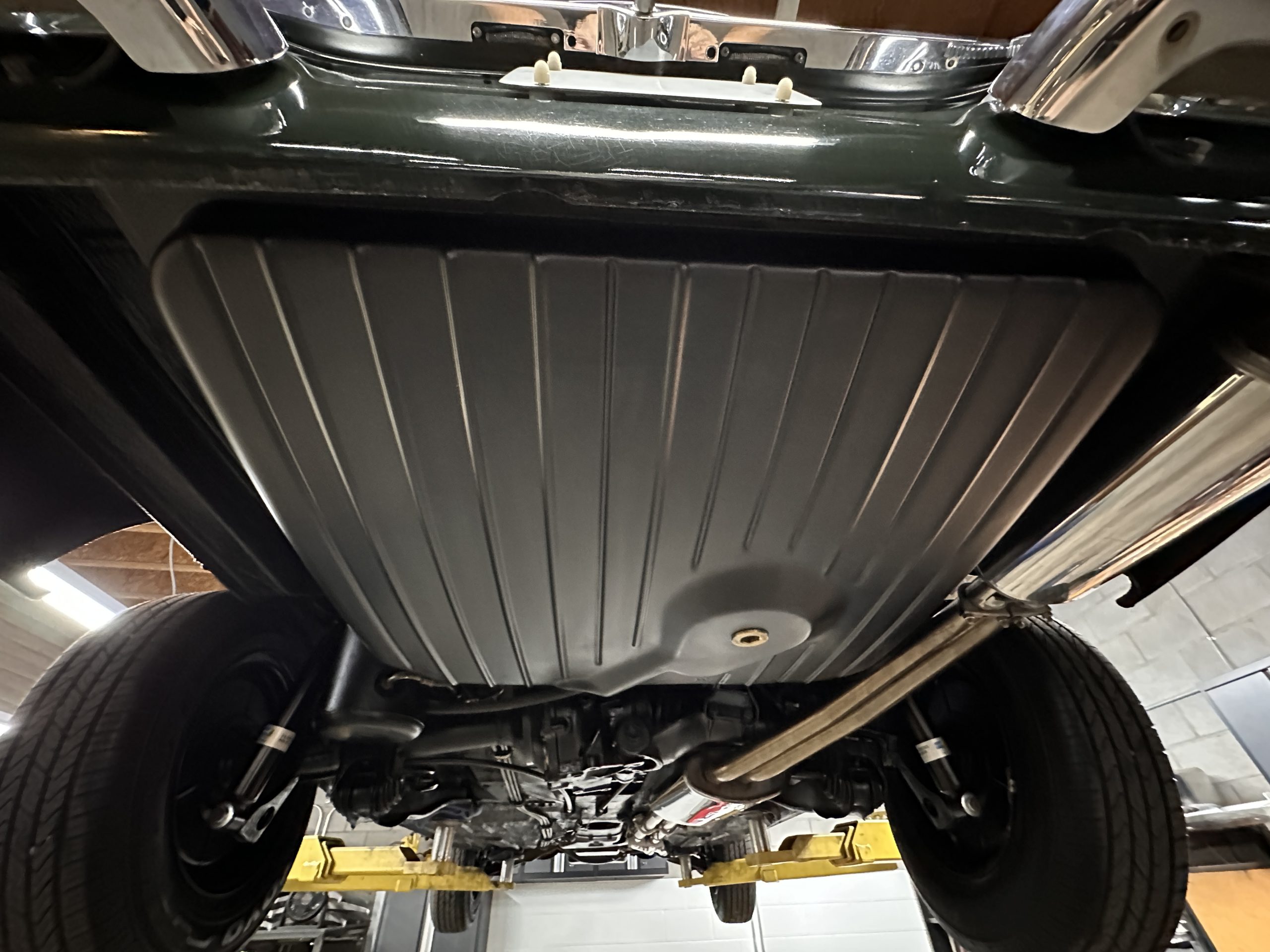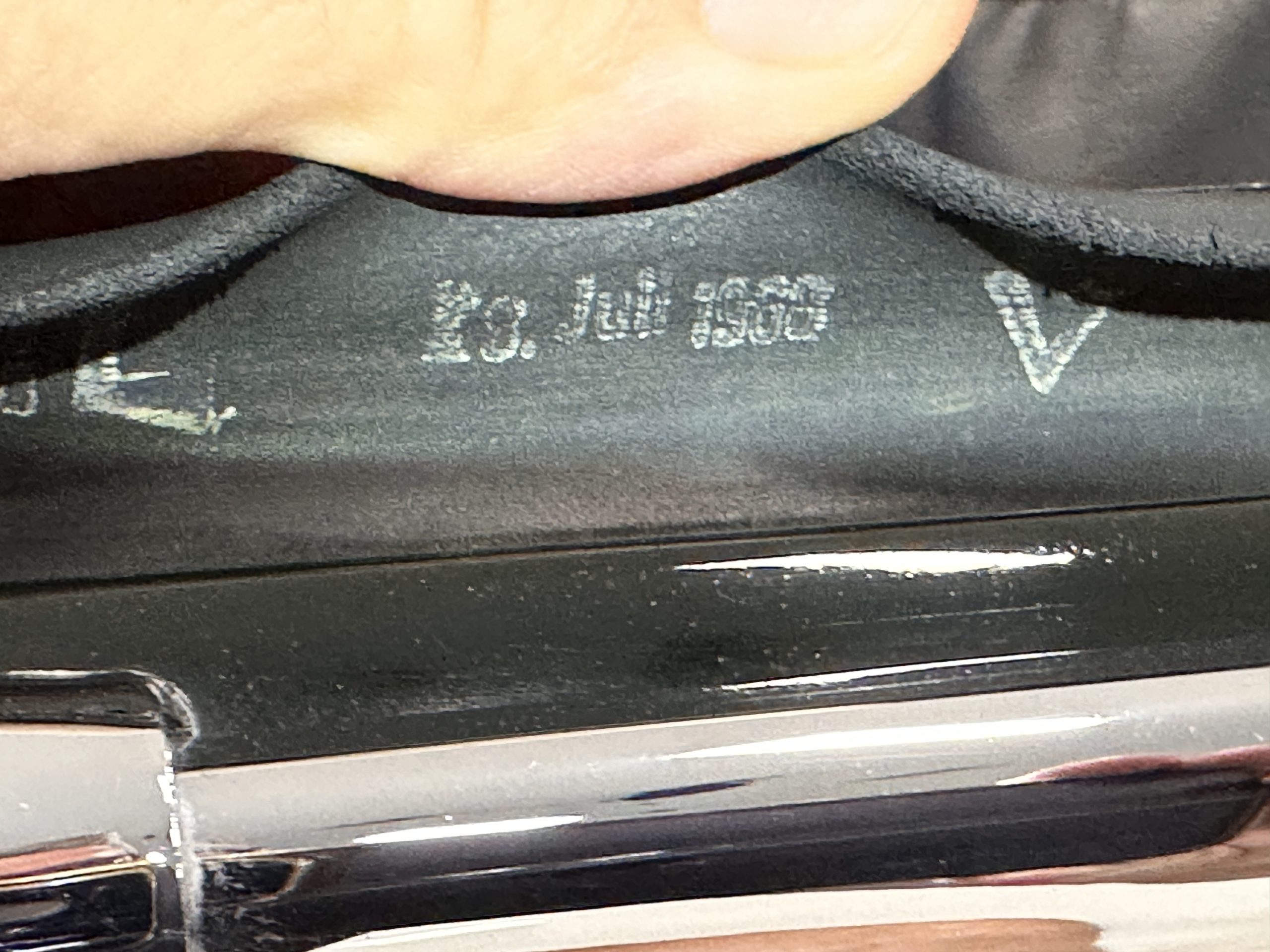 The livery is in concours-ready condition in its Dark Olive Green (Paint Code 291).  The paint is nearly perfect condition with a few very small imperfections that are only noticeable upon very close inspection (which is our role).  The body panel fit is perfect and all the important inspections for Pagoda’s check out: the spot welds in the engine compartment, the VIN stamp in the hood and hardtop, the notches in the headlight area, even the date code of July 1968 is revealed on the trunk seal.  Service stickers are still proudly displayed on the driver’s door from 1969 and 1970.  This 280SL is a proverbial time capsule.  The chrome and stainless-steel trim are all in excellent original condition.  The present owner had a Mercedes-Benz dealer install a new correct windshield and seals to add to the cars concours quality presentation.