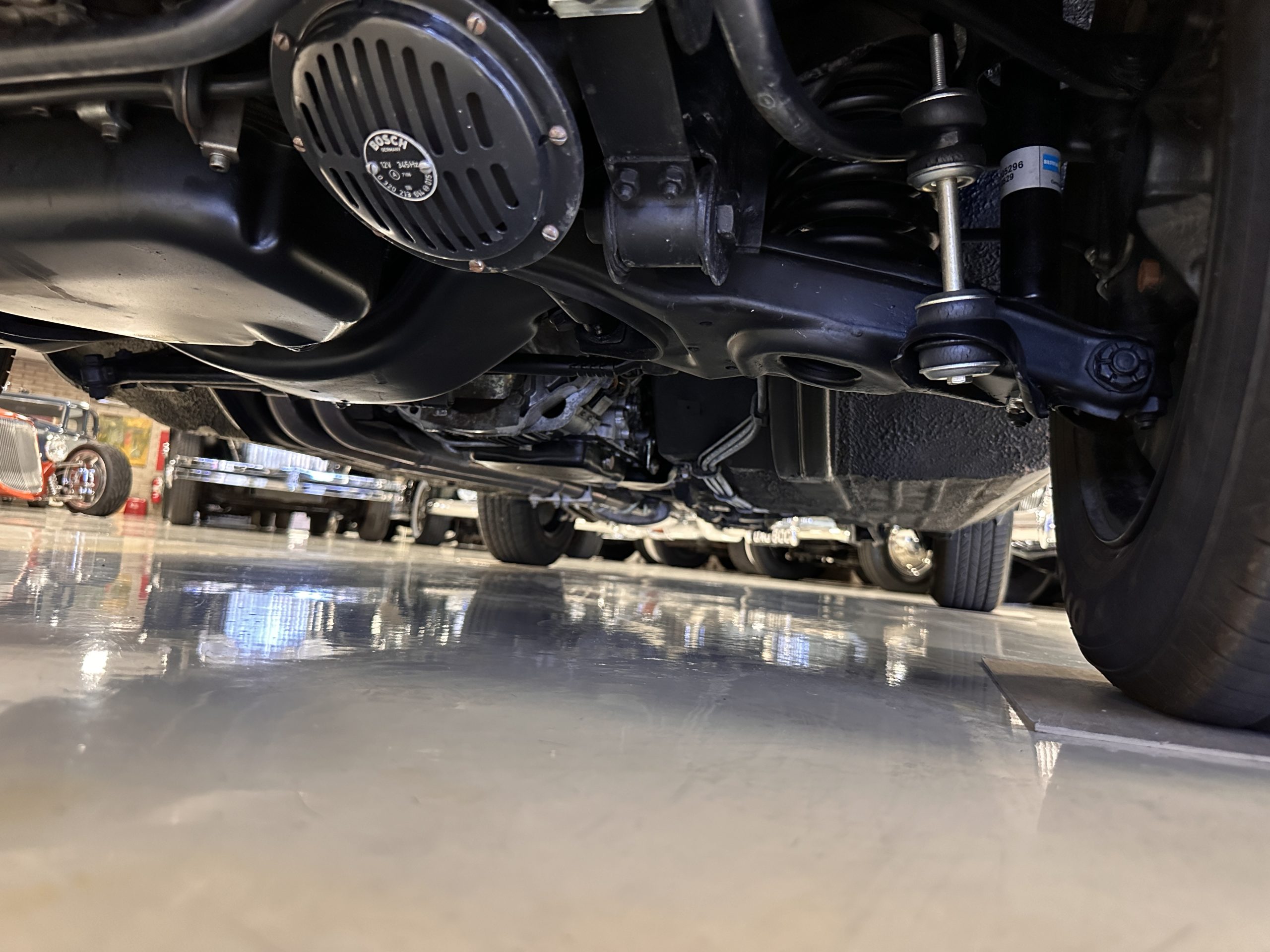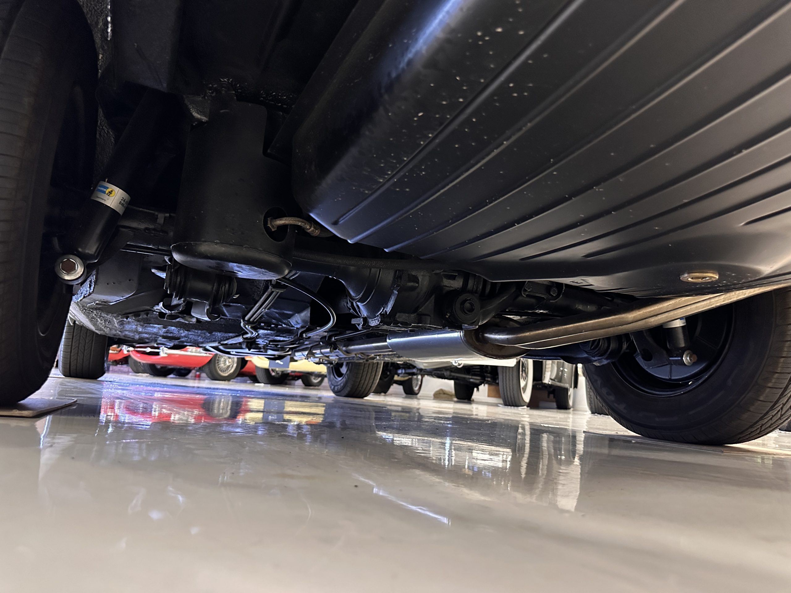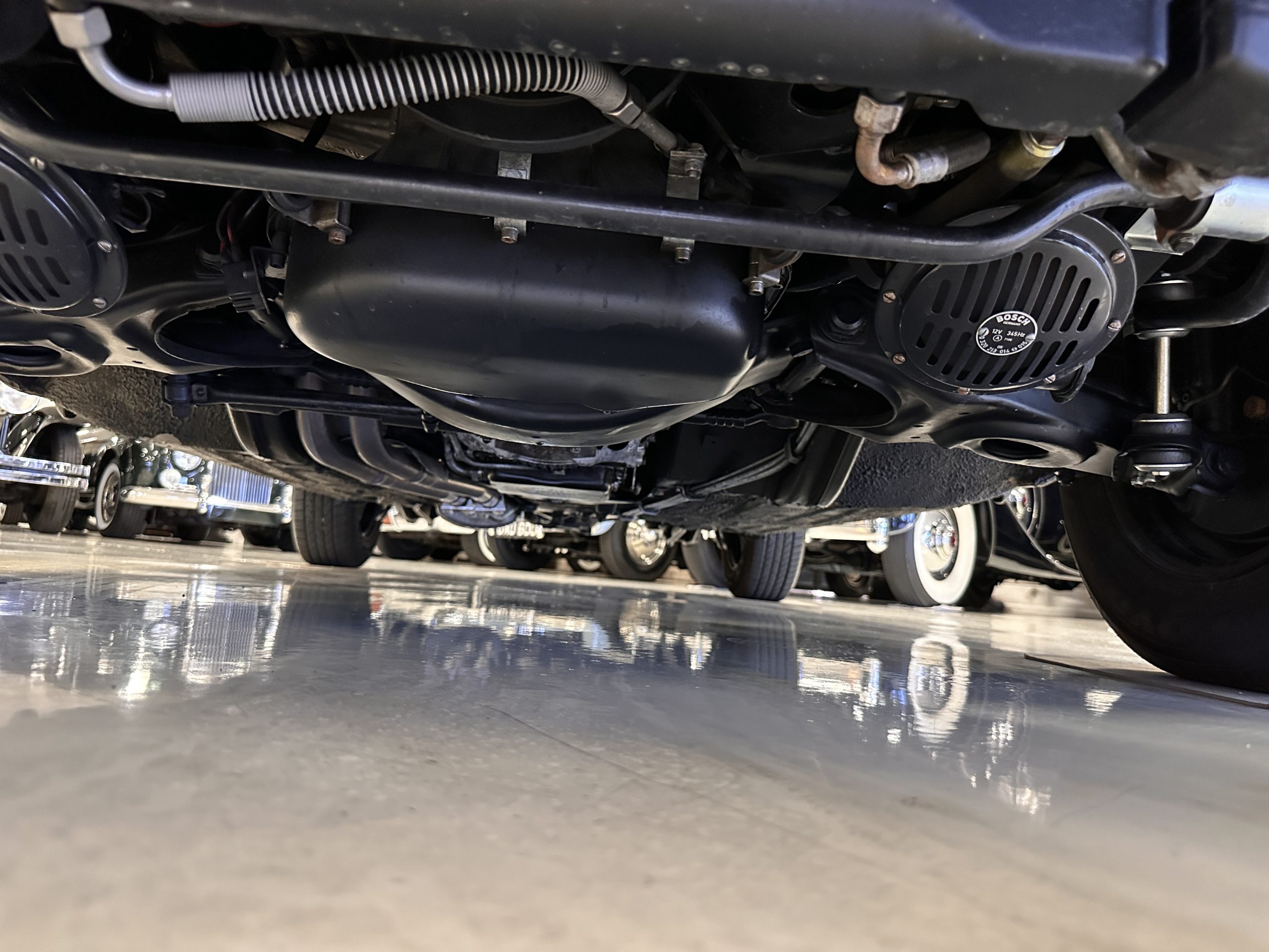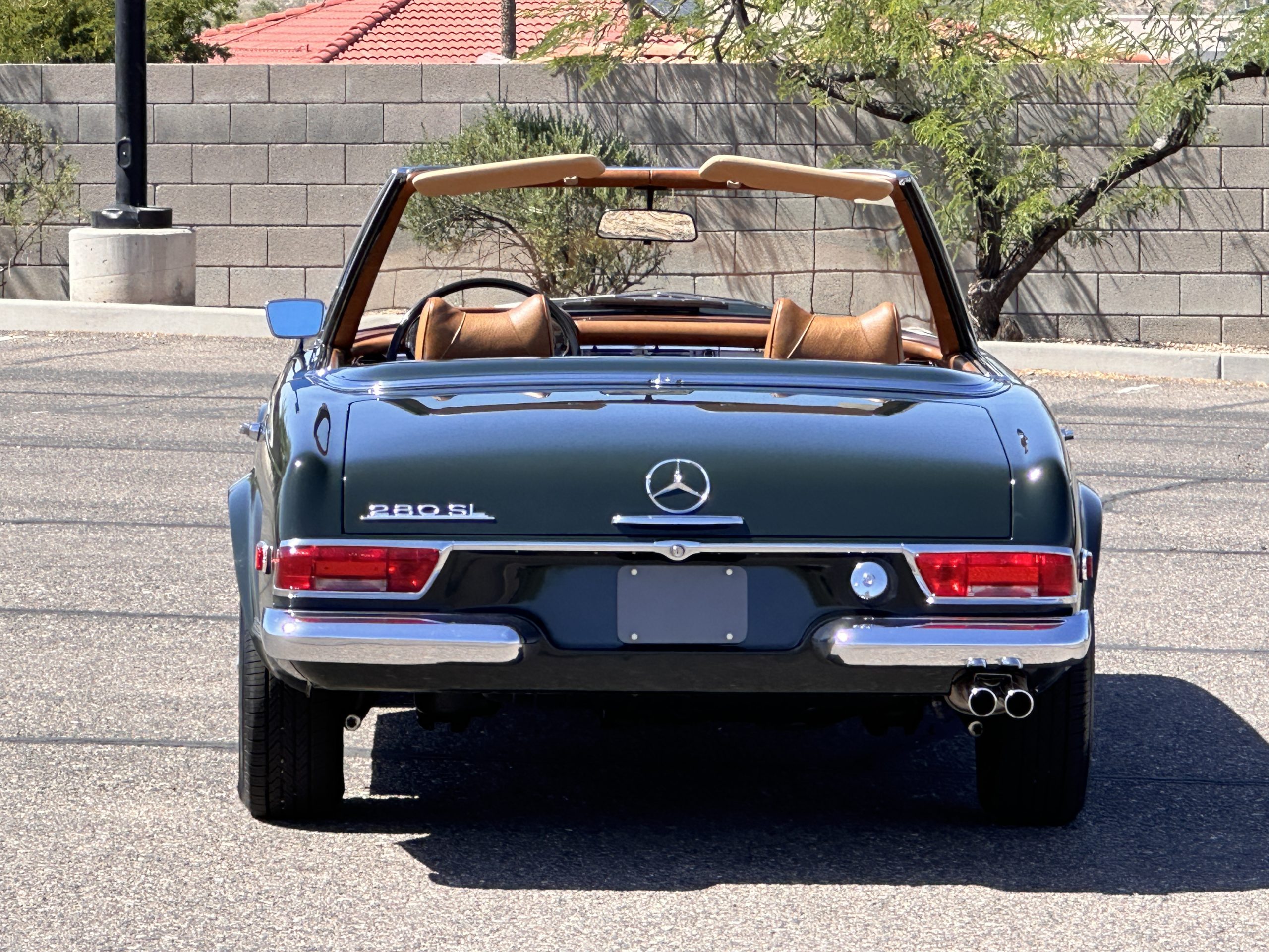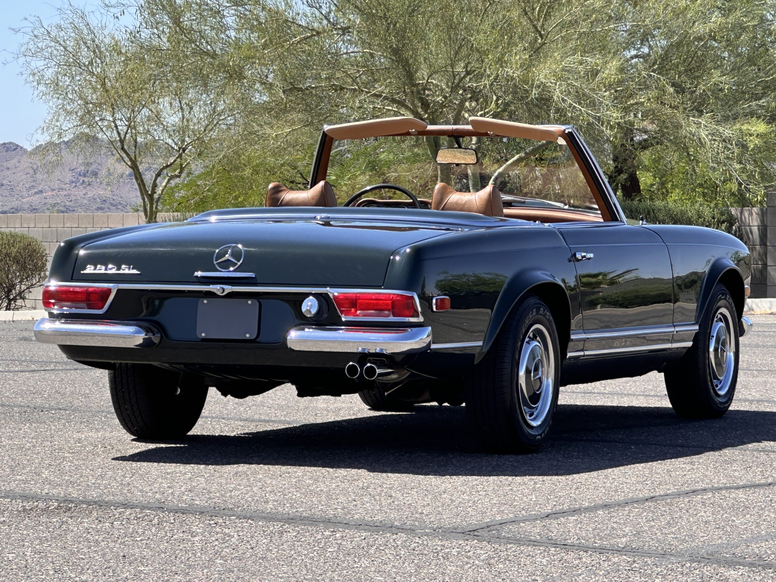 The engine compartment is also beautifully detailed and ready to show.  The original firewall pad is in gorgeous condition, which reflects the care this 280SL received throughout its life.  The 2.8-liter SOHC 6-Cylinder Engine has 170 bhp with its Bosch Mechanical Multi-Port Fuel Injection.  This 280SL performs brilliantly and our driving videos show you the wonderful power of this venerable powerplant.  Its Four-Speed Automatic Gearbox shifts perfectly at all speeds and conditions without any hesitation or unwanted noises.  Its Four-Wheel Disc Brakes inspire confidence in all conditions, feeling much like a newer Mercedes.  Recent work included the installation of a new stainless-steel exhaust system and Bilstein shocks.