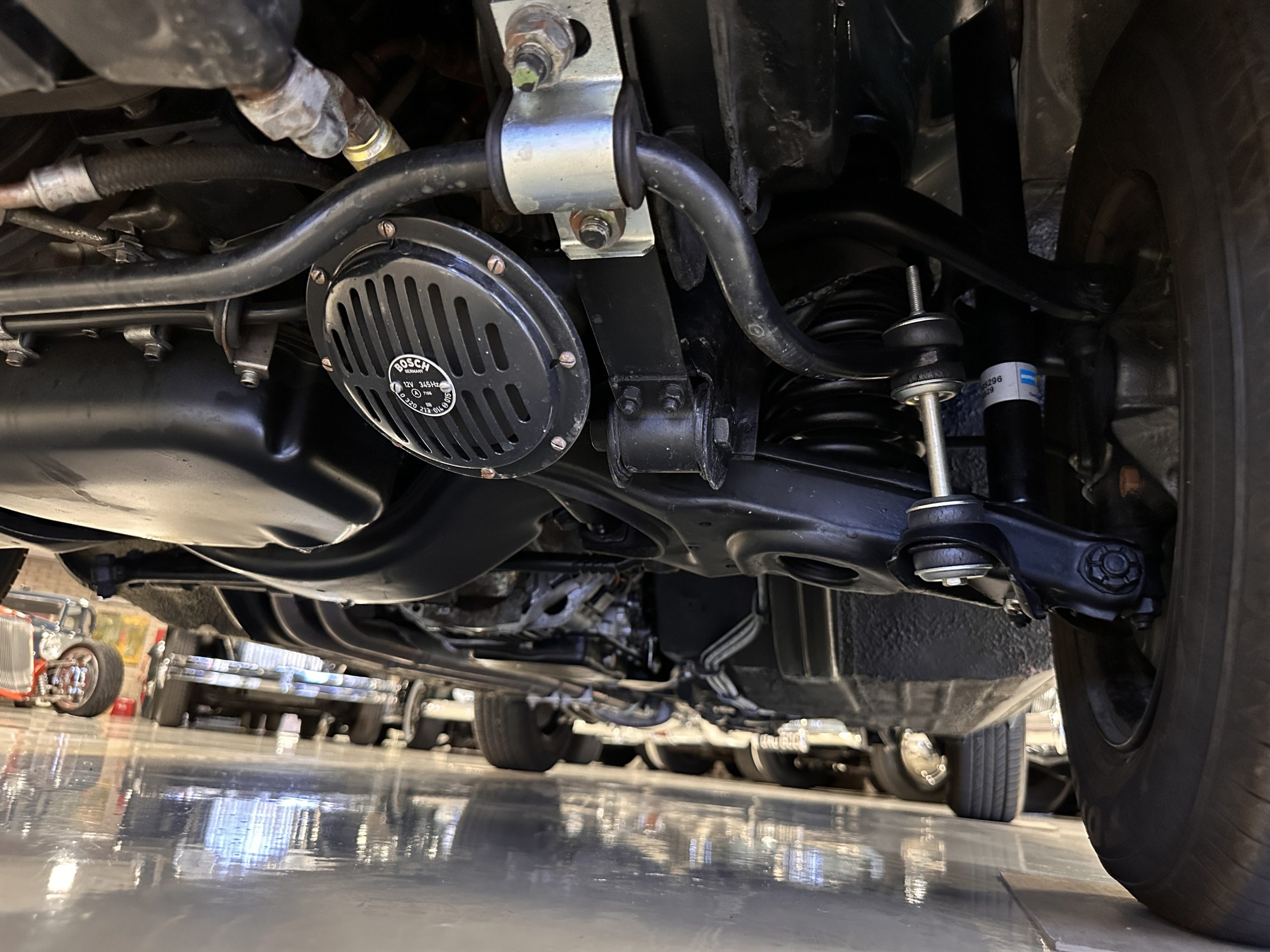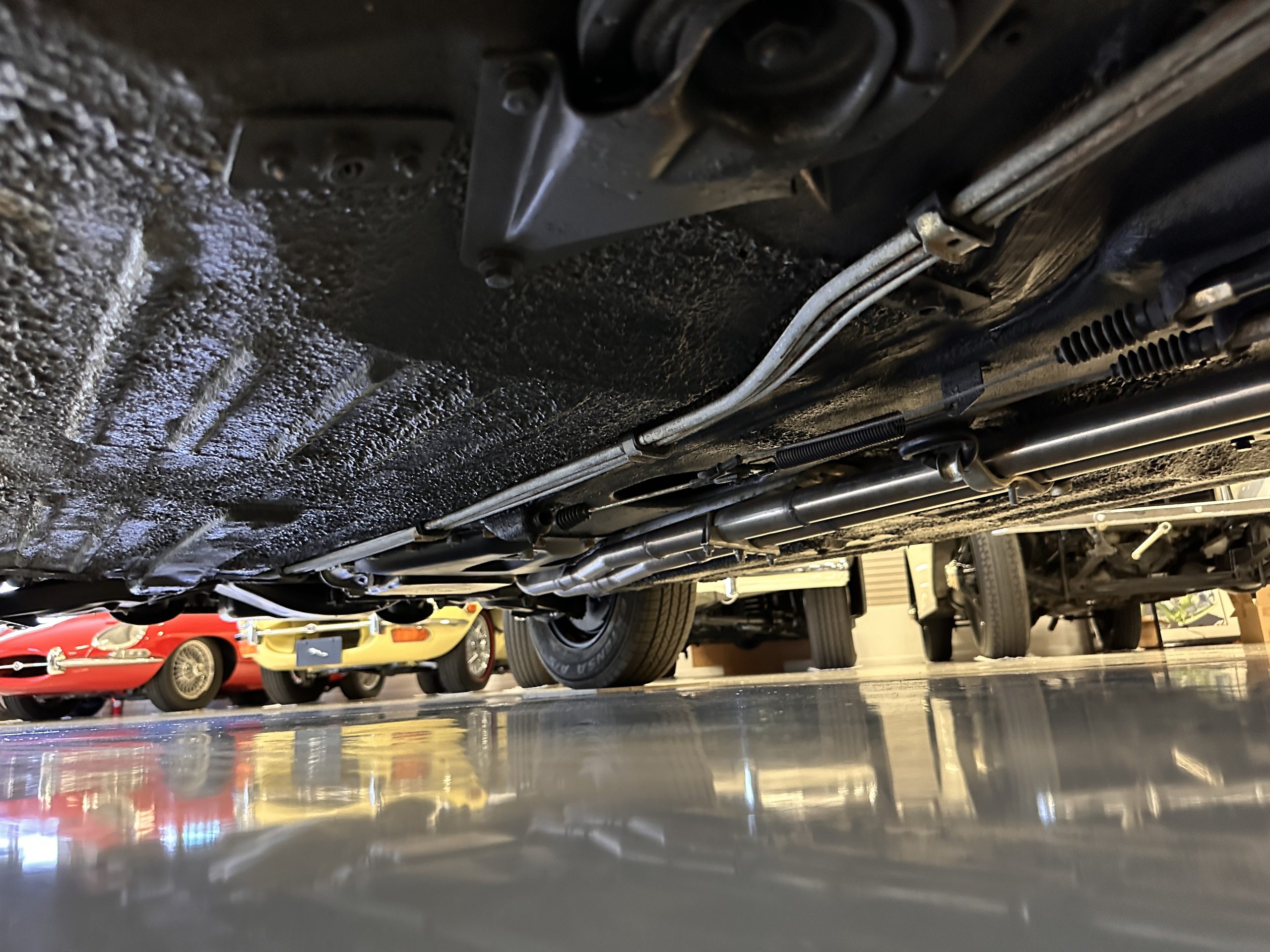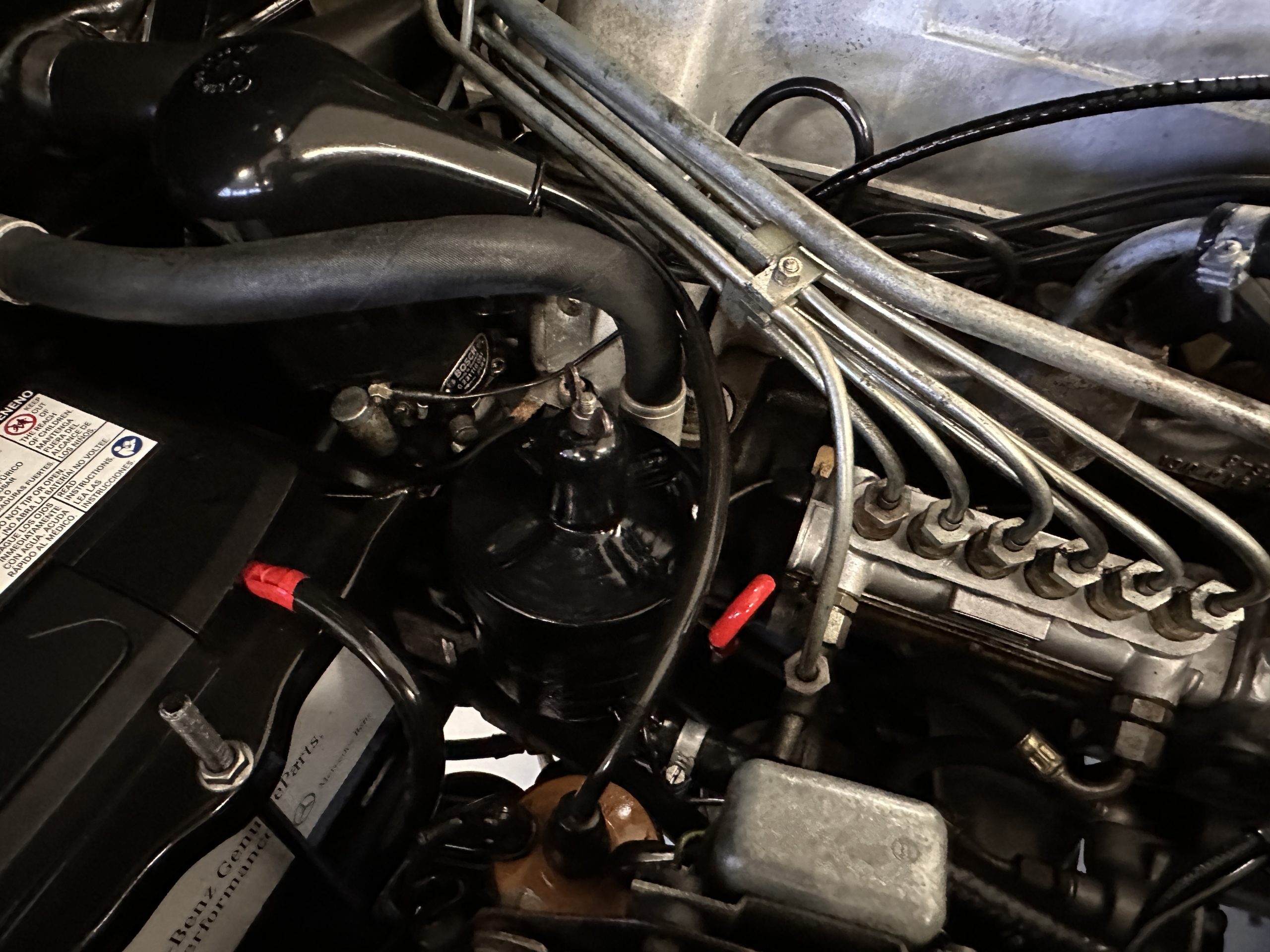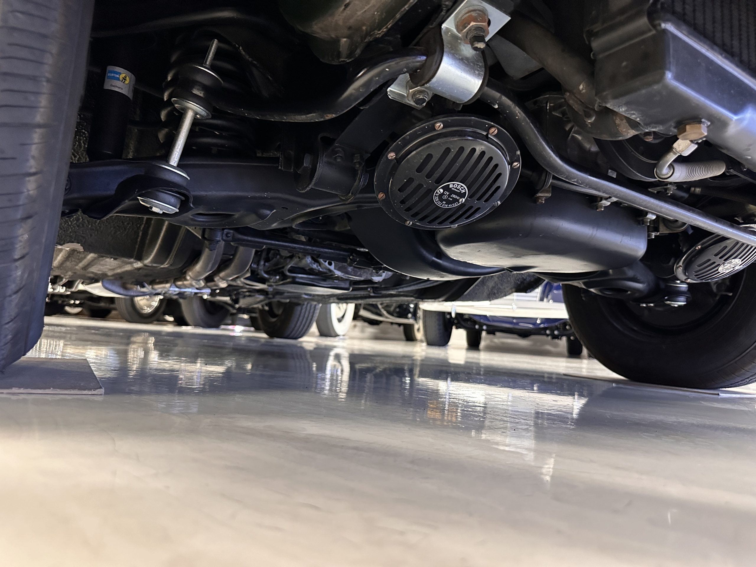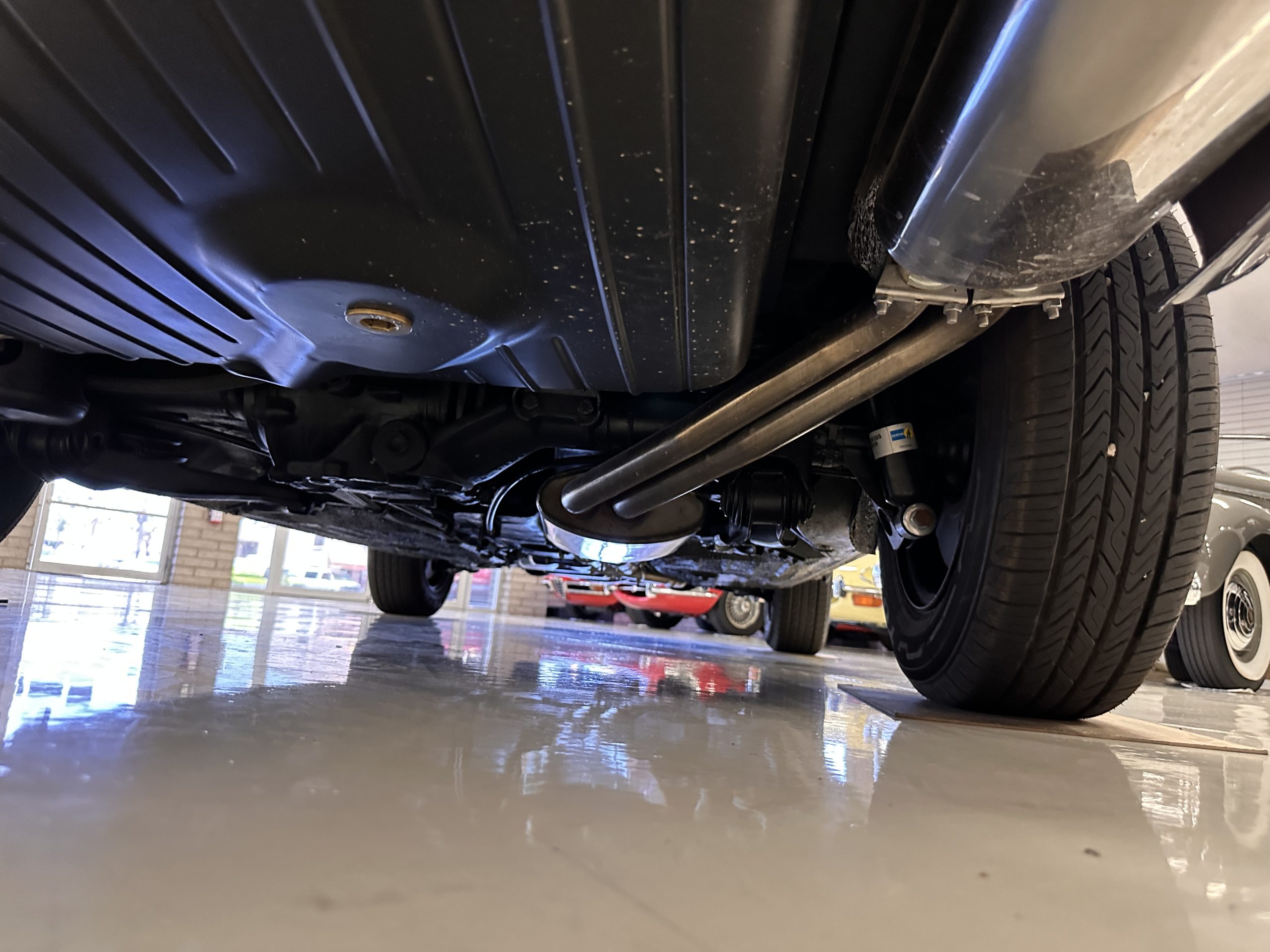 The engine compartment is also beautifully detailed and ready to show.  The original firewall pad is in gorgeous condition, which reflects the care this 280SL received throughout its life.  The 2.8-liter SOHC 6-Cylinder Engine has 170 bhp with its Bosch Mechanical Multi-Port Fuel Injection.  This 280SL performs brilliantly and our driving videos show you the wonderful power of this venerable powerplant.  Its Four-Speed Automatic Gearbox shifts perfectly at all speeds and conditions without any hesitation or unwanted noises.  Its Four-Wheel Disc Brakes inspire confidence in all conditions, feeling much like a newer Mercedes.  Recent work included the installation of a new stainless-steel exhaust system and Bilstein shocks.