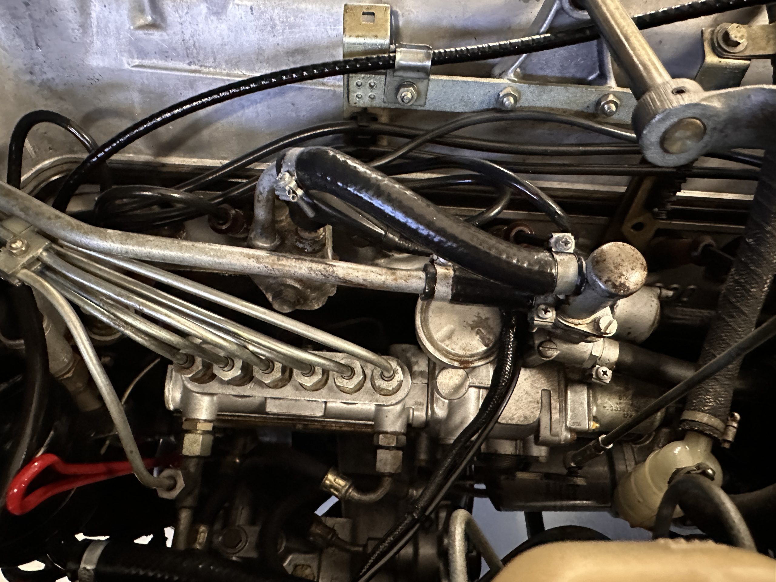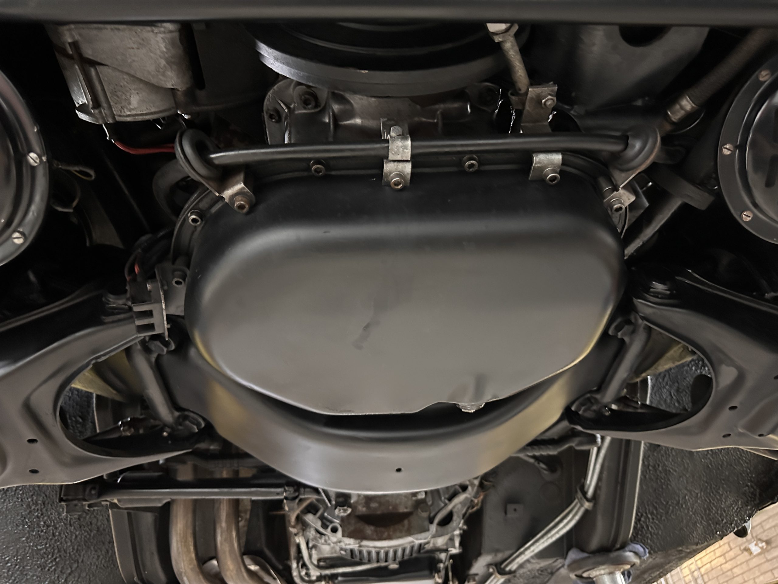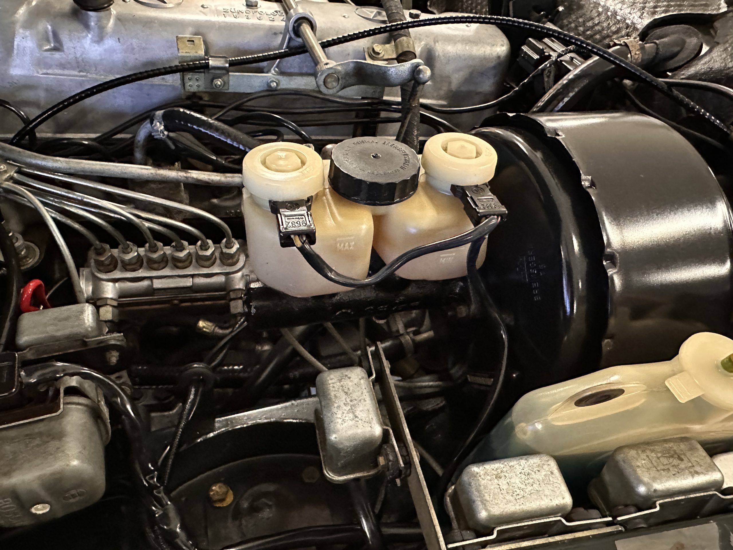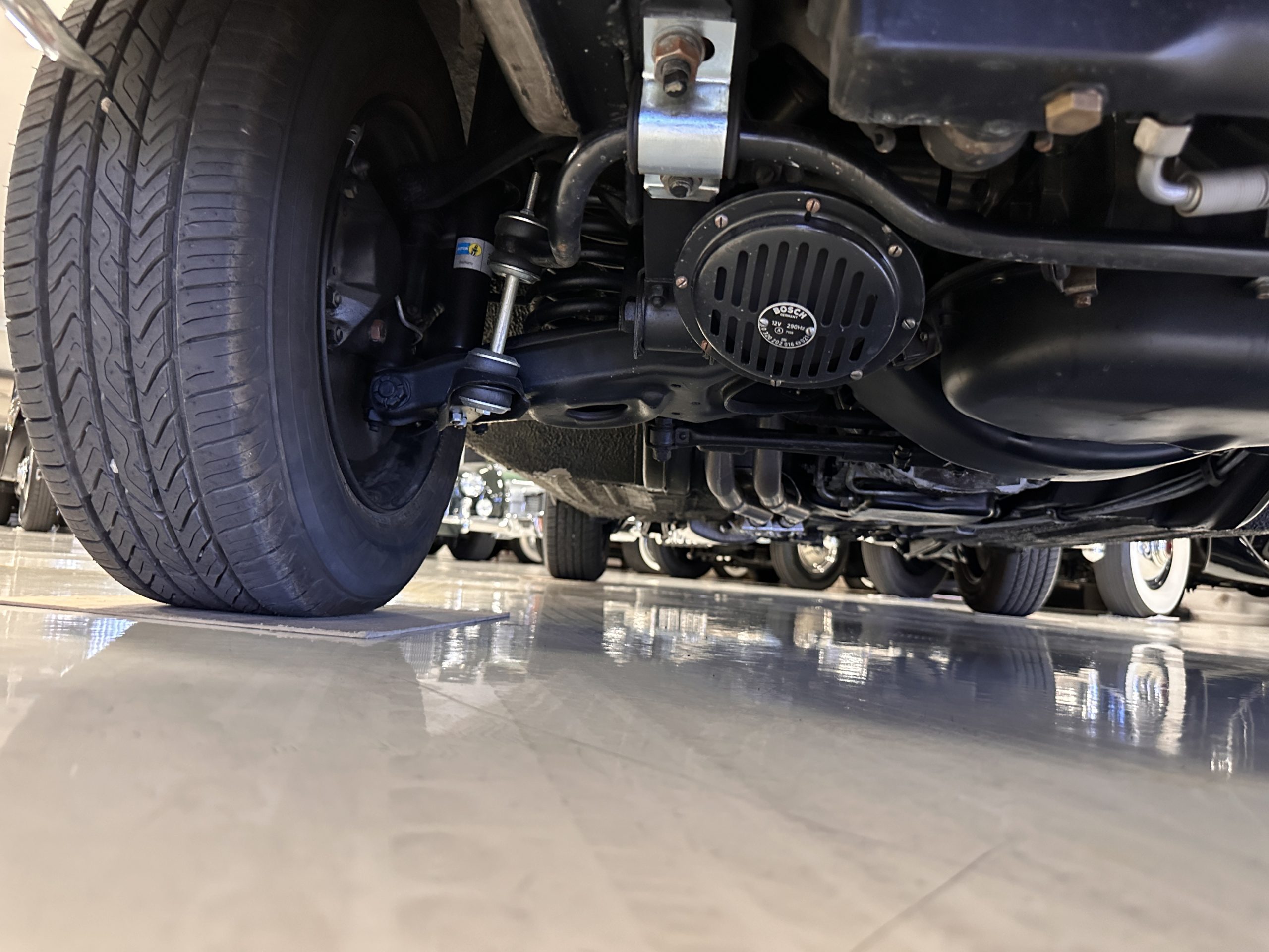 The engine compartment is also beautifully detailed and ready to show.  The original firewall pad is in gorgeous condition, which reflects the care this 280SL received throughout its life.  The 2.8-liter SOHC 6-Cylinder Engine has 170 bhp with its Bosch Mechanical Multi-Port Fuel Injection.  This 280SL performs brilliantly and our driving videos show you the wonderful power of this venerable powerplant.  Its Four-Speed Automatic Gearbox shifts perfectly at all speeds and conditions without any hesitation or unwanted noises.  Its Four-Wheel Disc Brakes inspire confidence in all conditions, feeling much like a newer Mercedes.  Recent work included the installation of a new stainless-steel exhaust system and Bilstein shocks.