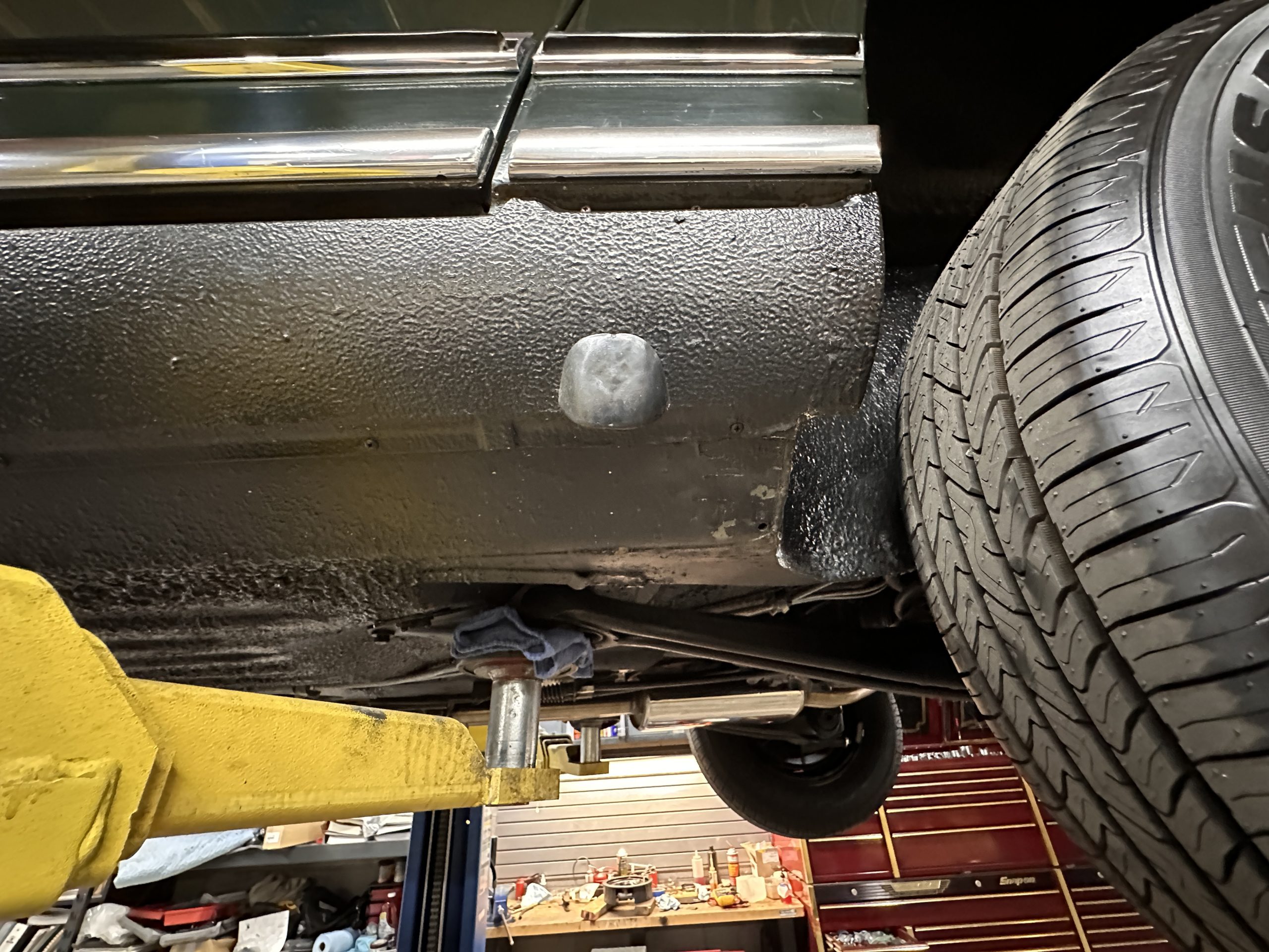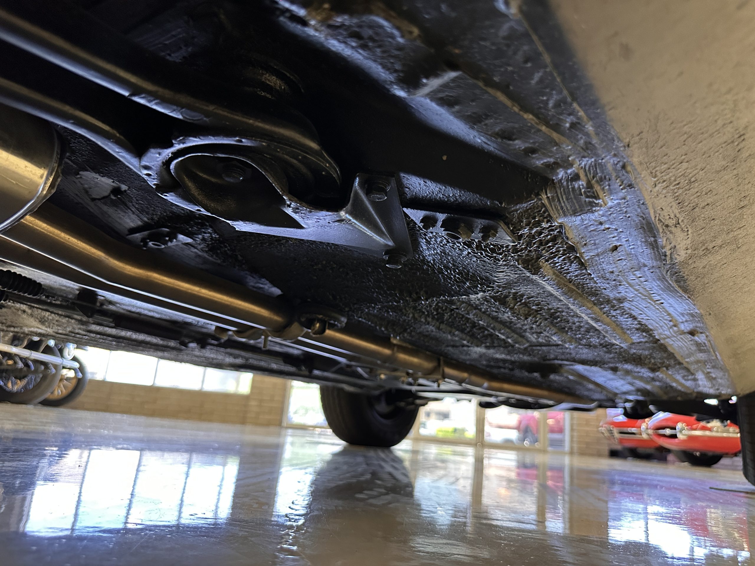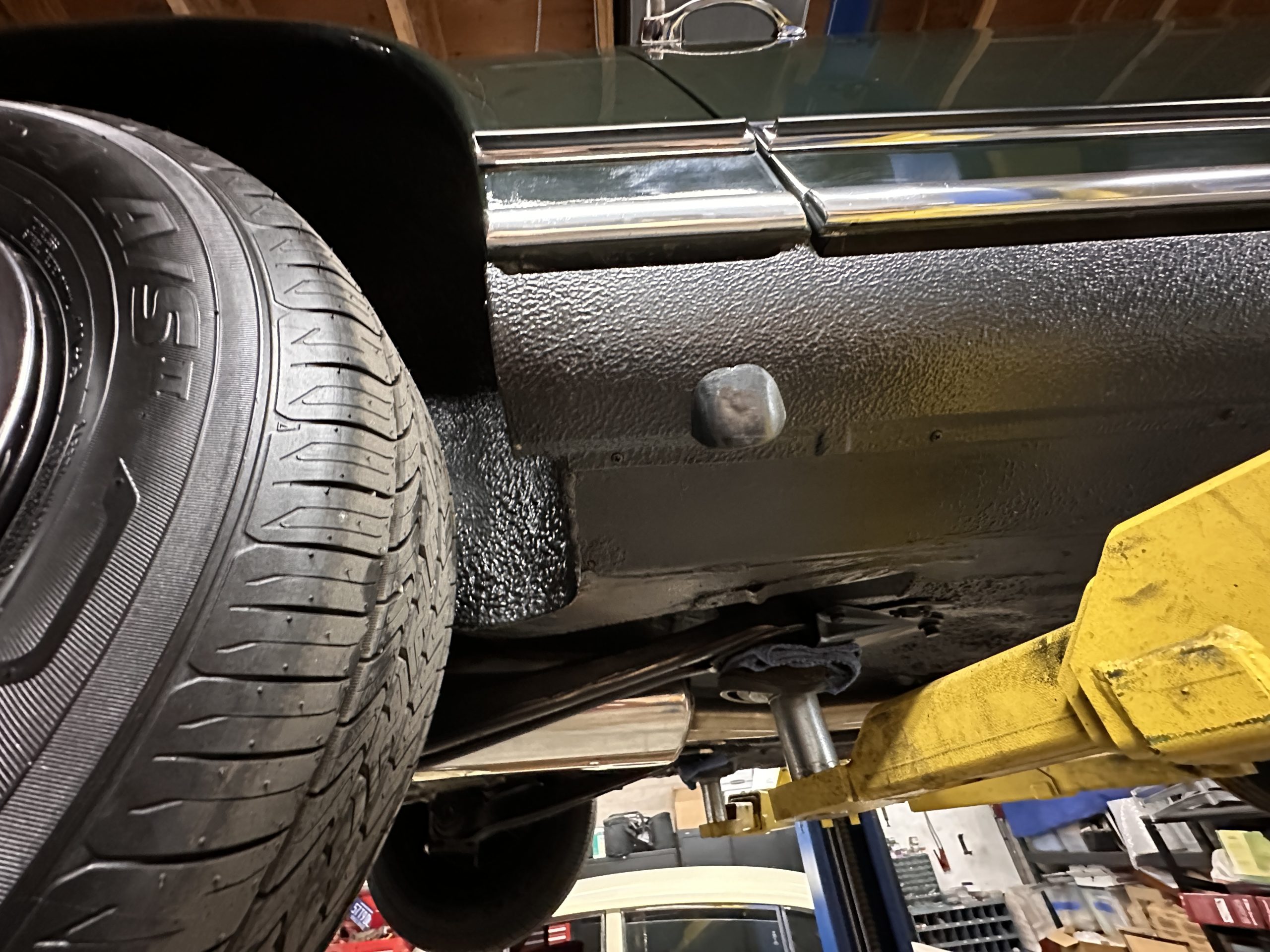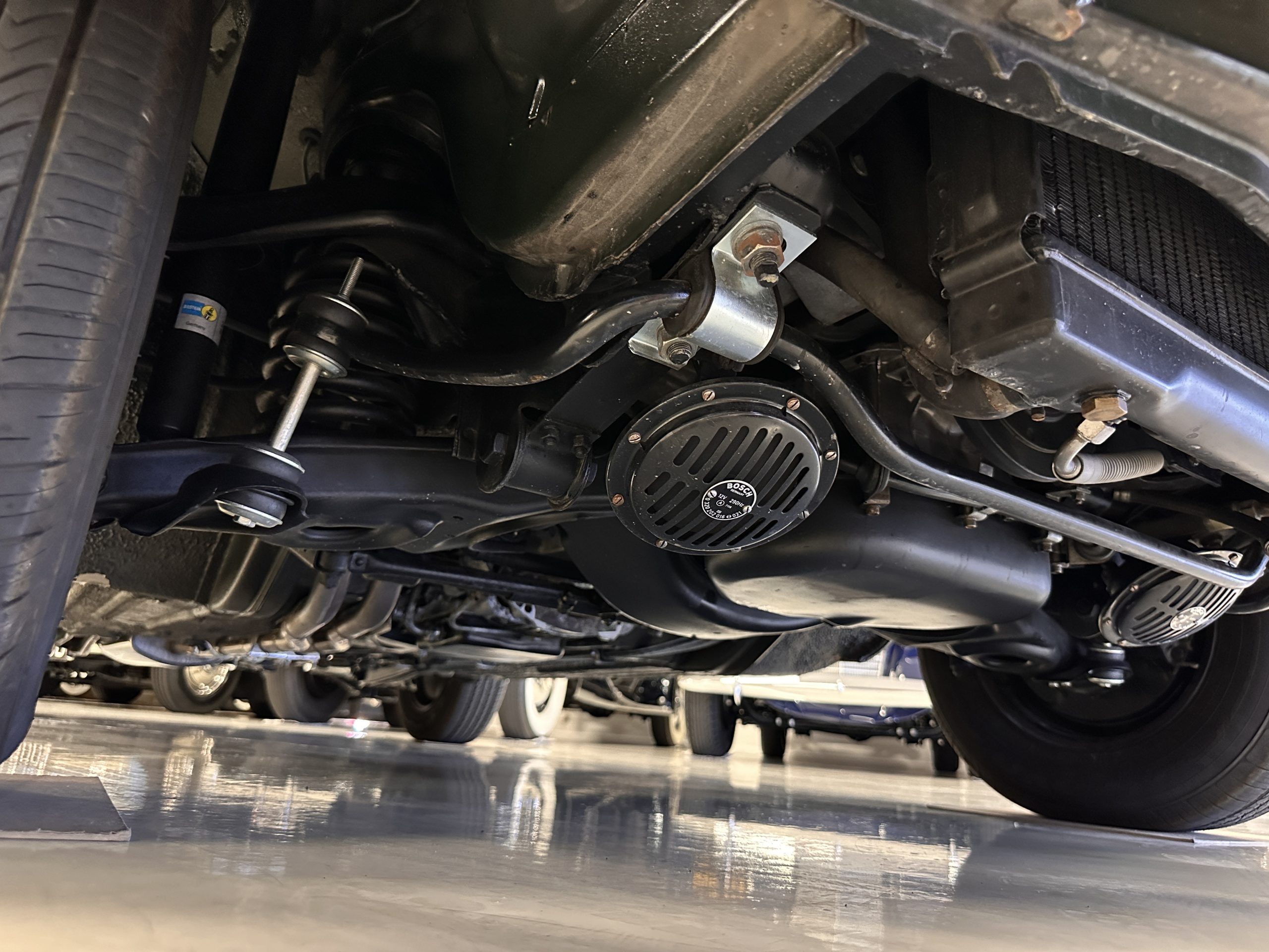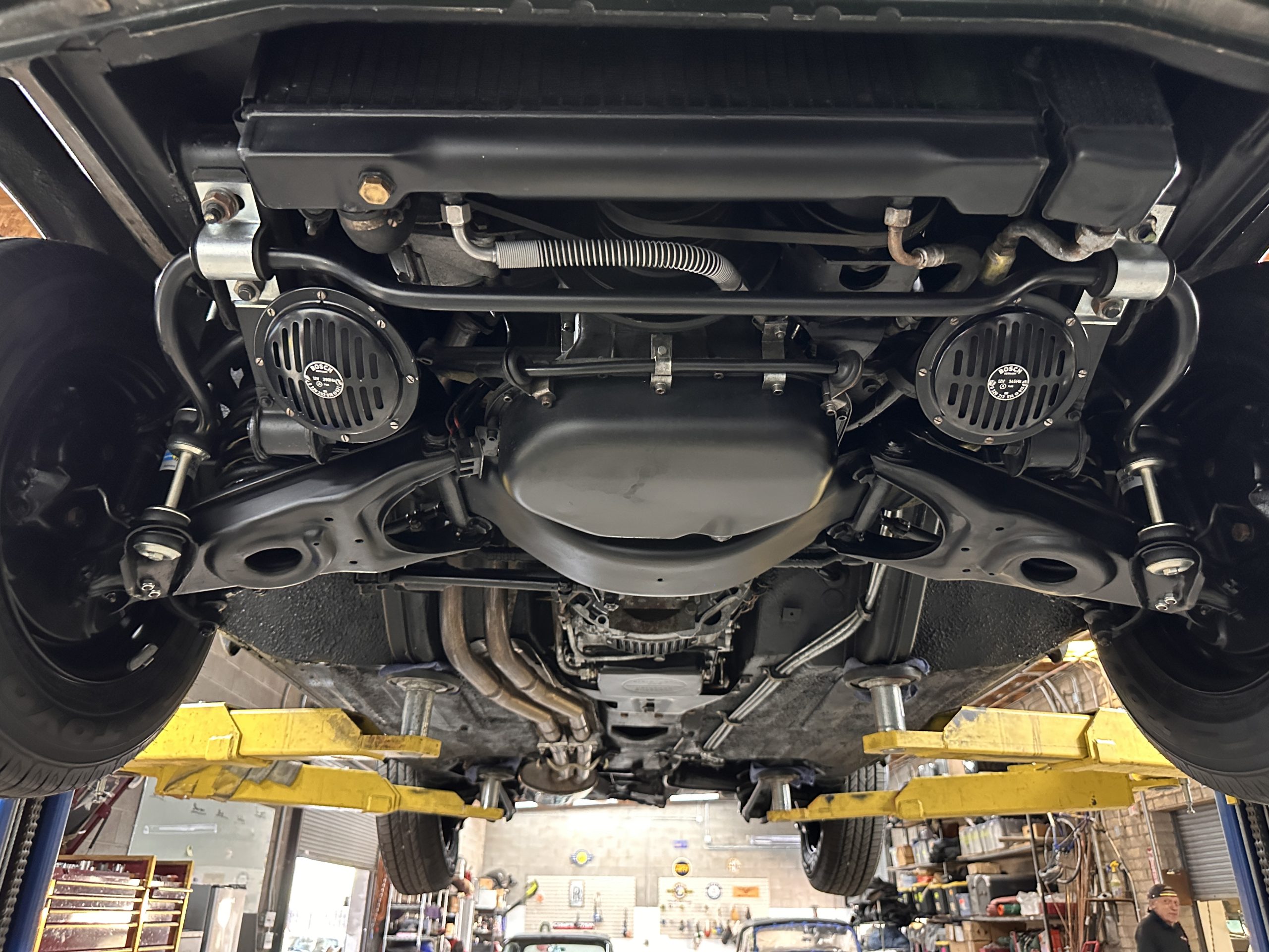 The engine compartment is also beautifully detailed and ready to show.  The original firewall pad is in gorgeous condition, which reflects the care this 280SL received throughout its life.  The 2.8-liter SOHC 6-Cylinder Engine has 170 bhp with its Bosch Mechanical Multi-Port Fuel Injection.  This 280SL performs brilliantly and our driving videos show you the wonderful power of this venerable powerplant.  Its Four-Speed Automatic Gearbox shifts perfectly at all speeds and conditions without any hesitation or unwanted noises.  Its Four-Wheel Disc Brakes inspire confidence in all conditions, feeling much like a newer Mercedes.  Recent work included the installation of a new stainless-steel exhaust system and Bilstein shocks.