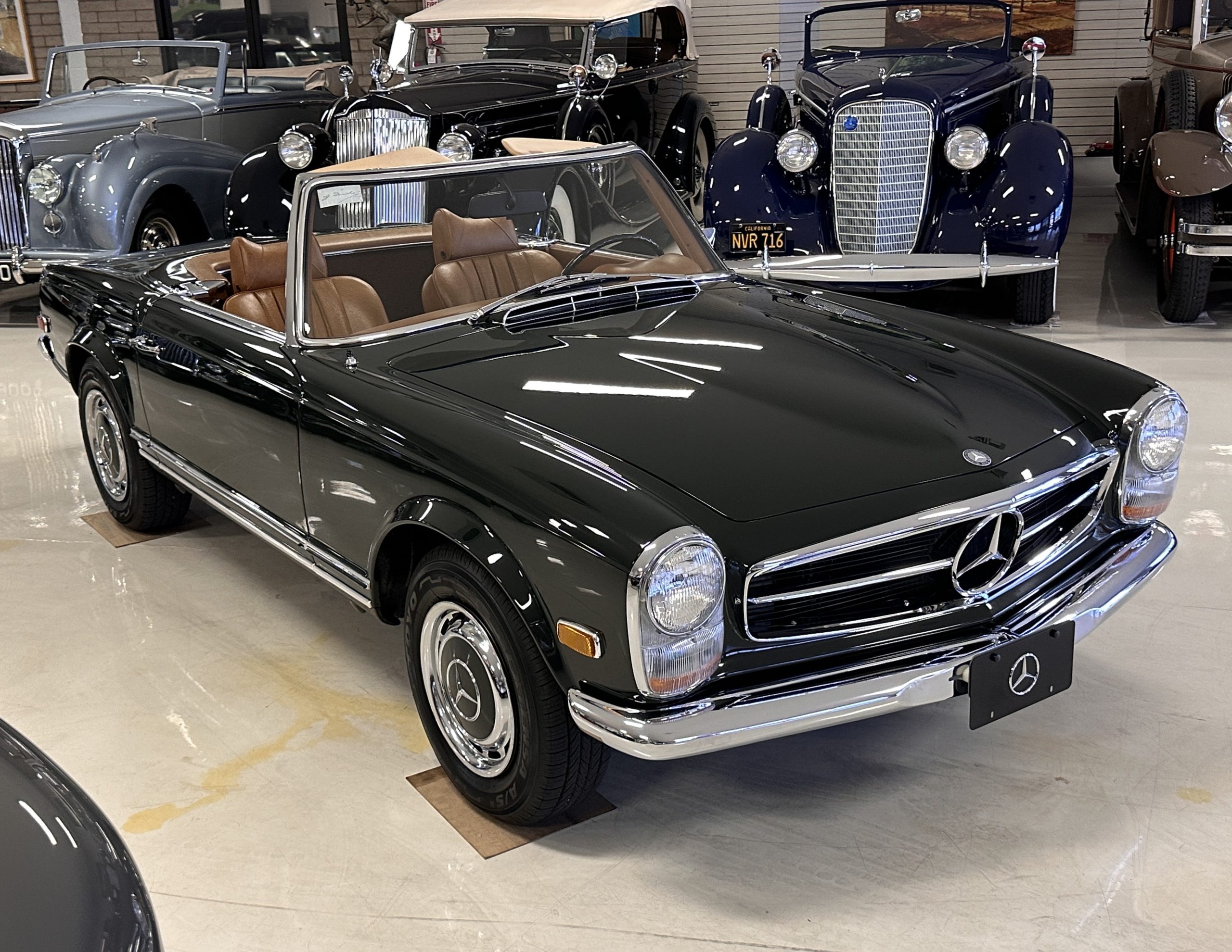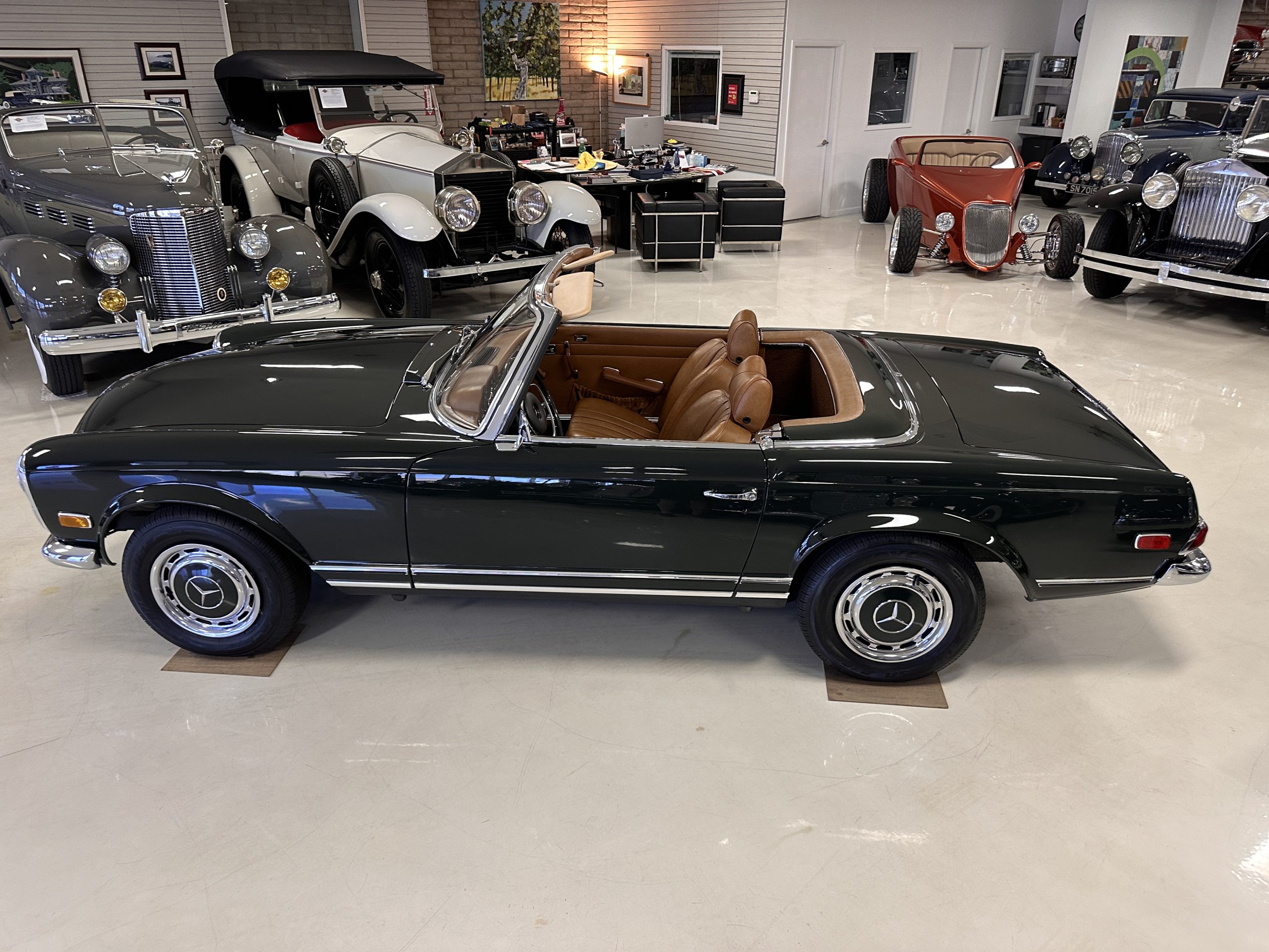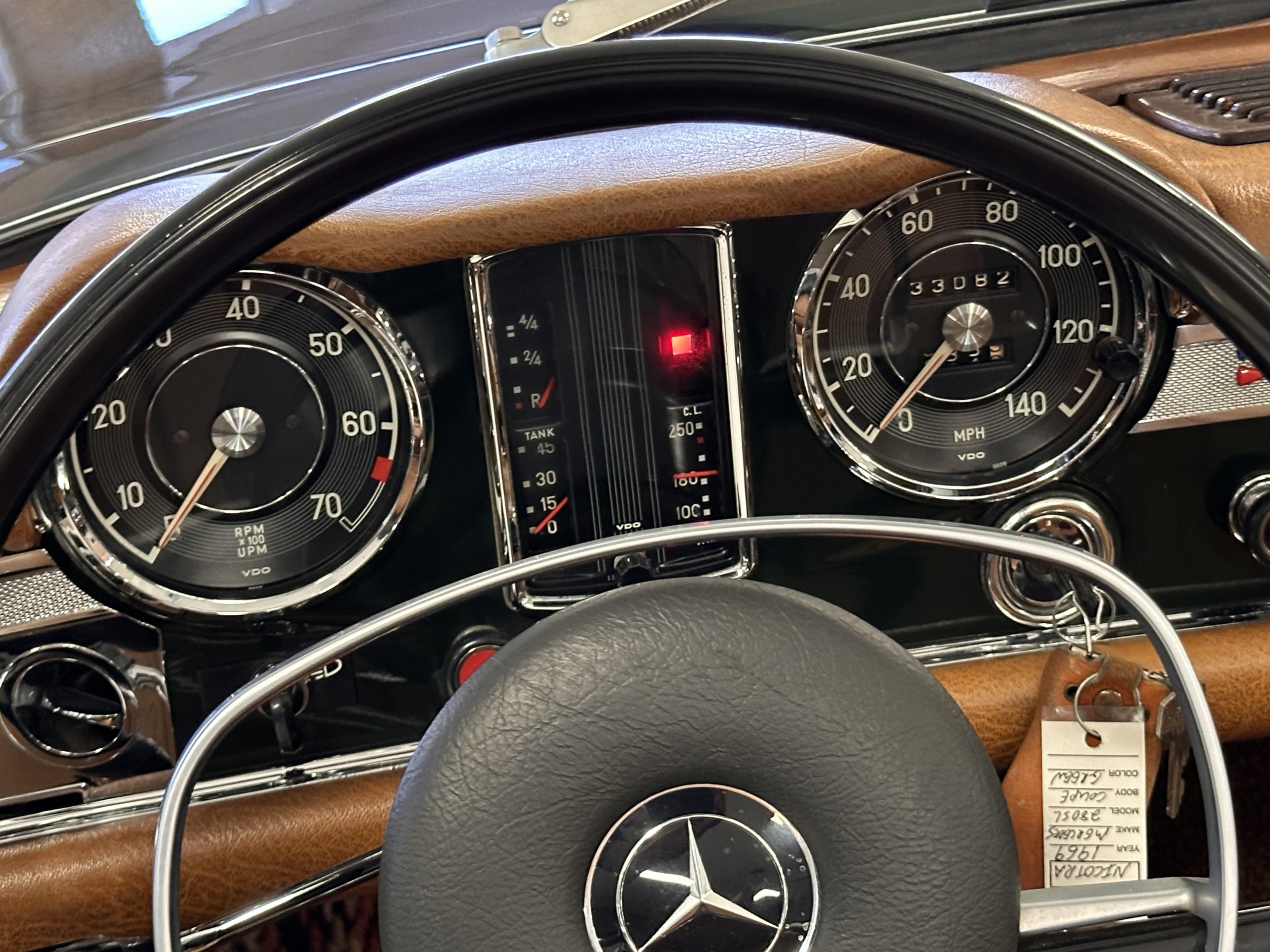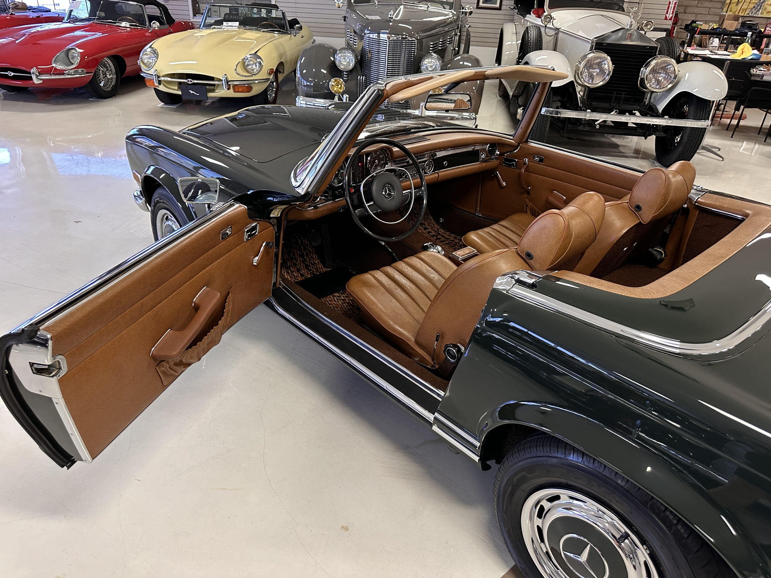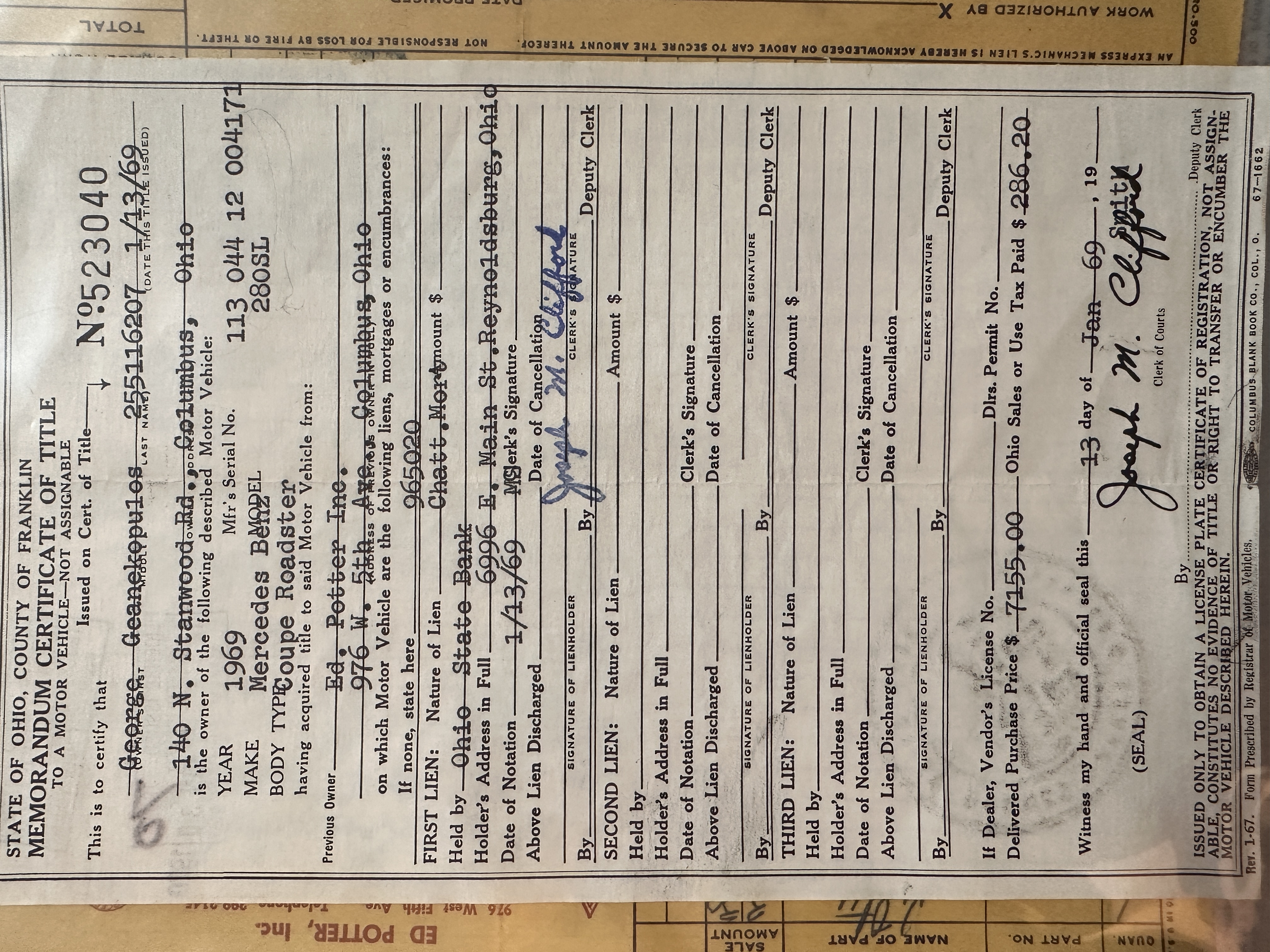 This 280SL was bought new on the 5th of November 1968 by Dr. George Geanekopulos from Ed Potter, Inc, the local Mercedes-Benz dealer in Columbus, OH.  Dr. George traded in his 1965 Mustang Convertible toward the purchase of the Mercedes.  Dr. George was a noted collector of cars and practiced dentistry in Columbus for 45 years.  He retained the 280SL within his collection for 50 years, until it was sold upon his passing on the 13th of October 2018.  It is now presented with 33,082 miles from new and nearly all original except one excellent repaint and normal service.