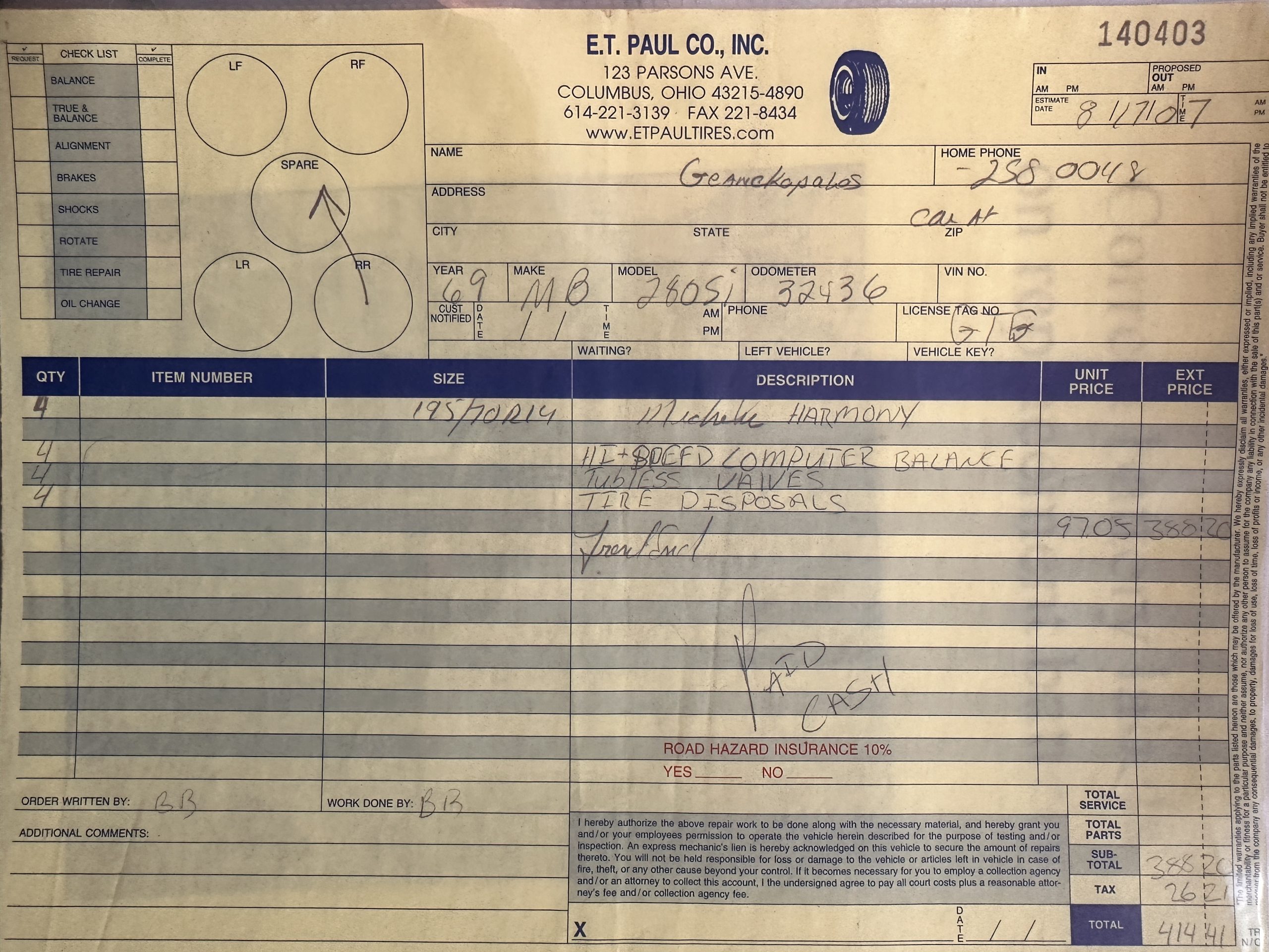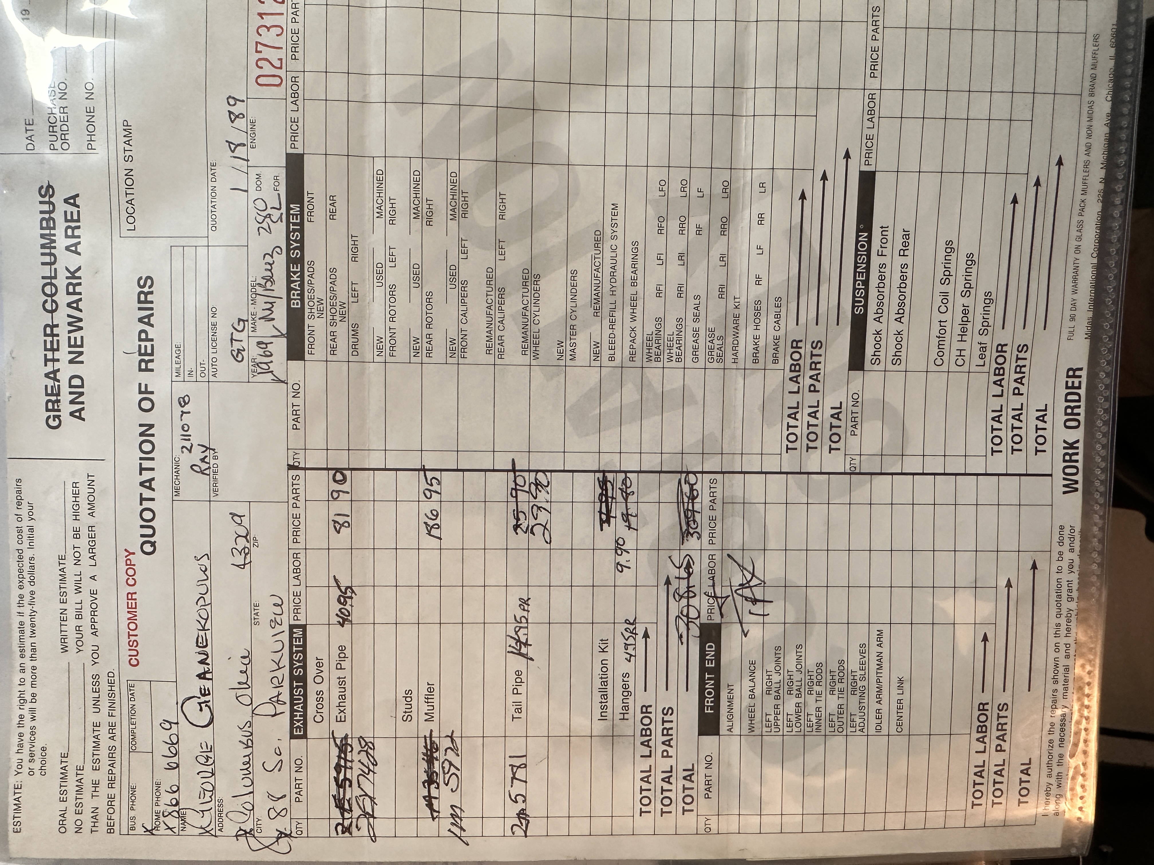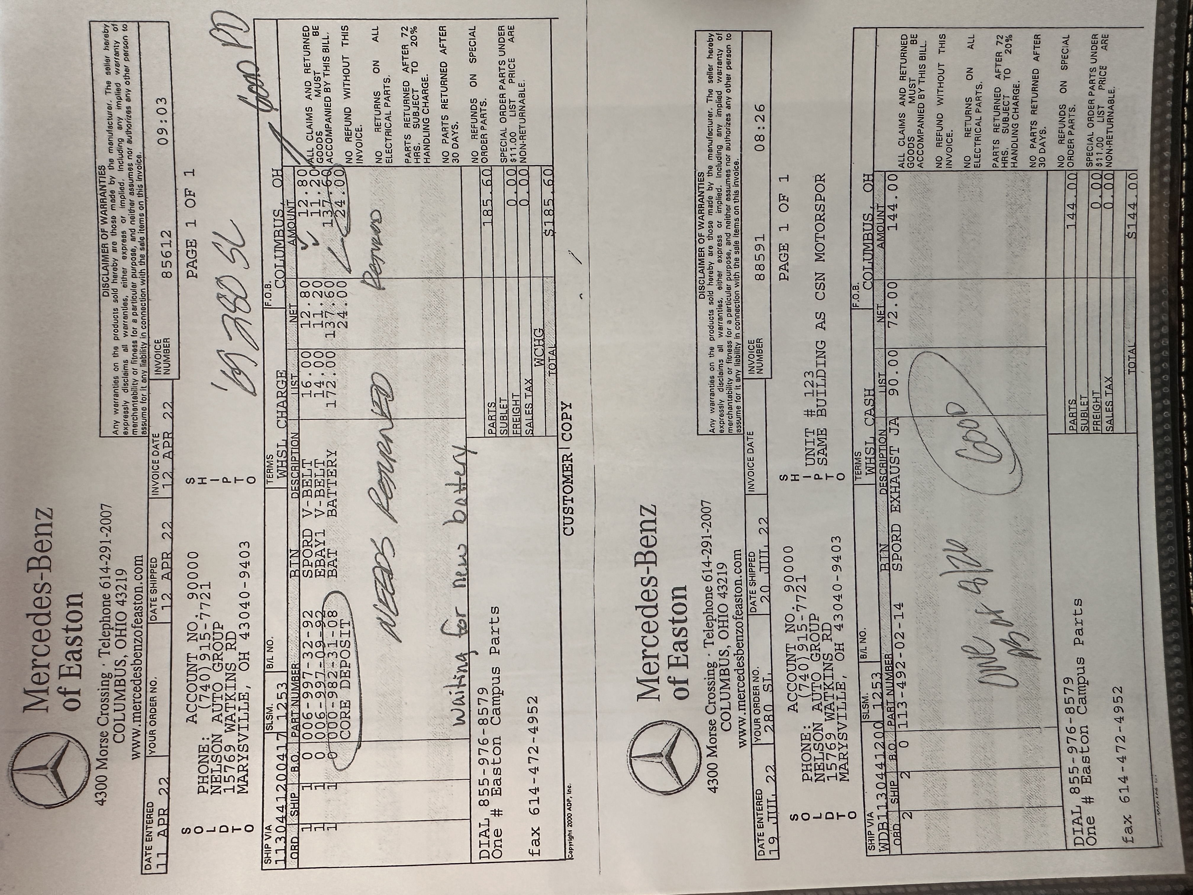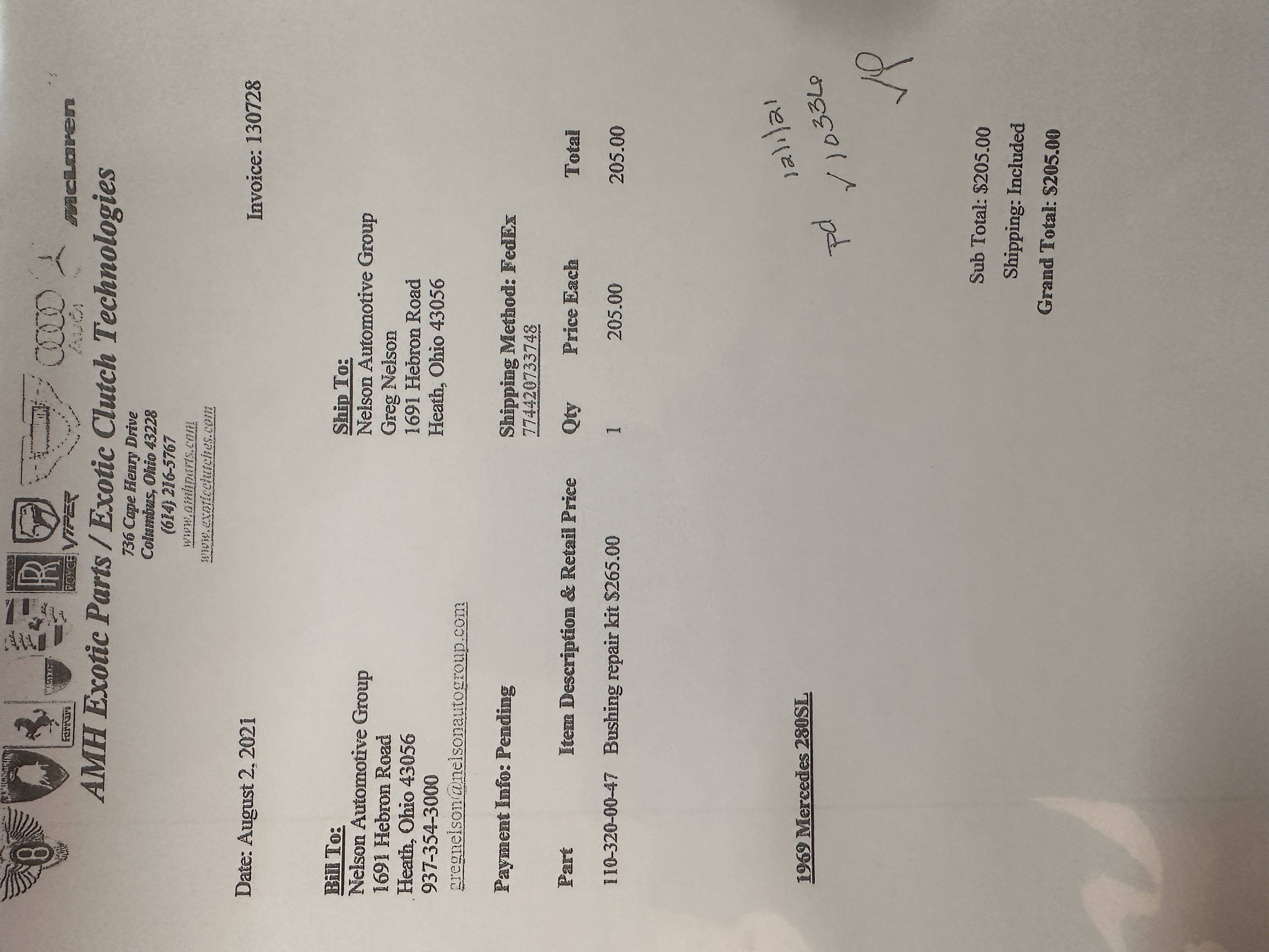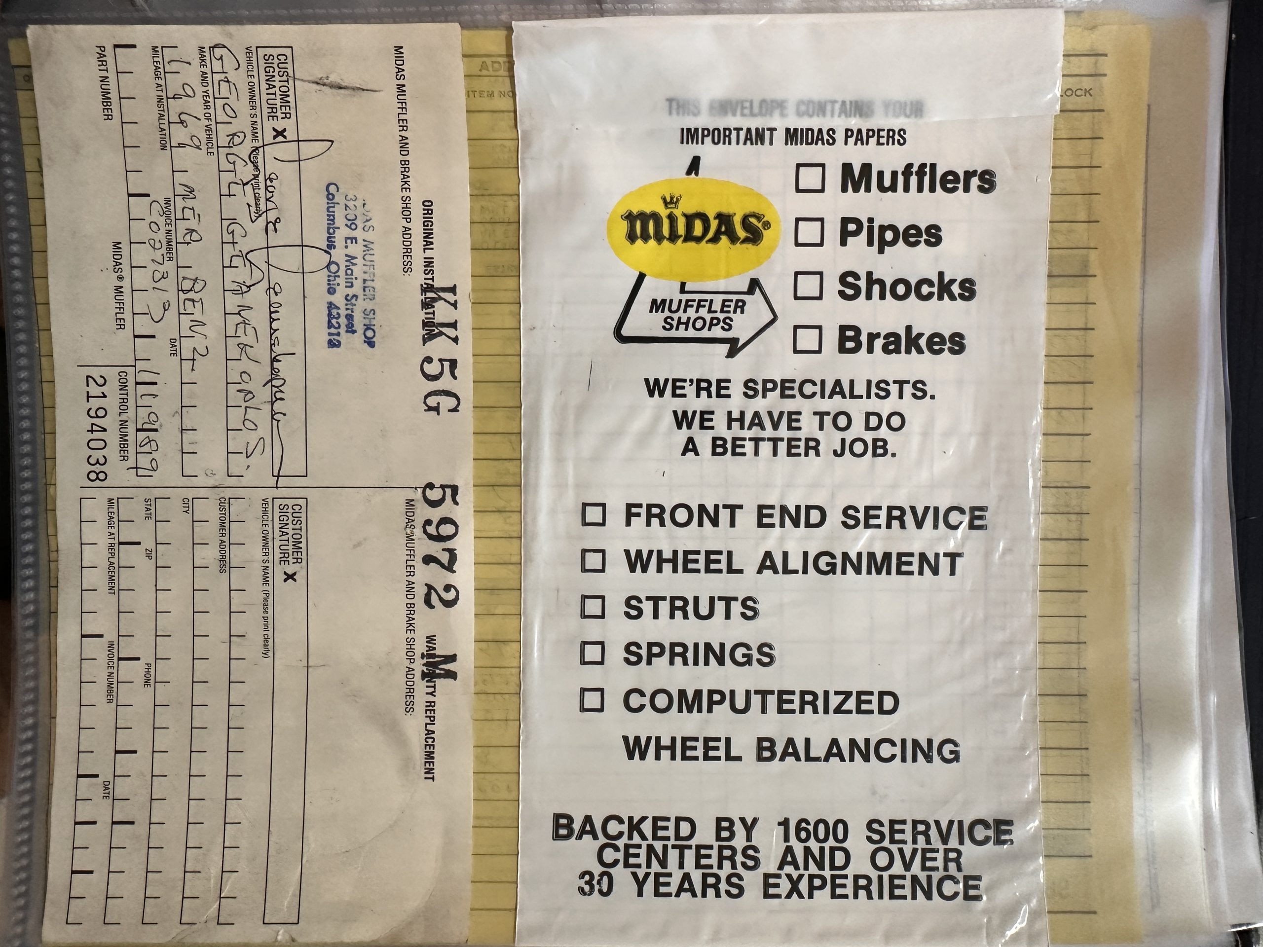 This 280SL was bought new on the 5th of November 1968 by Dr. George Geanekopulos from Ed Potter, Inc, the local Mercedes-Benz dealer in Columbus, OH.  Dr. George traded in his 1965 Mustang Convertible toward the purchase of the Mercedes.  Dr. George was a noted collector of cars and practiced dentistry in Columbus for 45 years.  He retained the 280SL within his collection for 50 years, until it was sold upon his passing on the 13th of October 2018.  It is now presented with 33,082 miles from new and nearly all original except one excellent repaint and normal service.