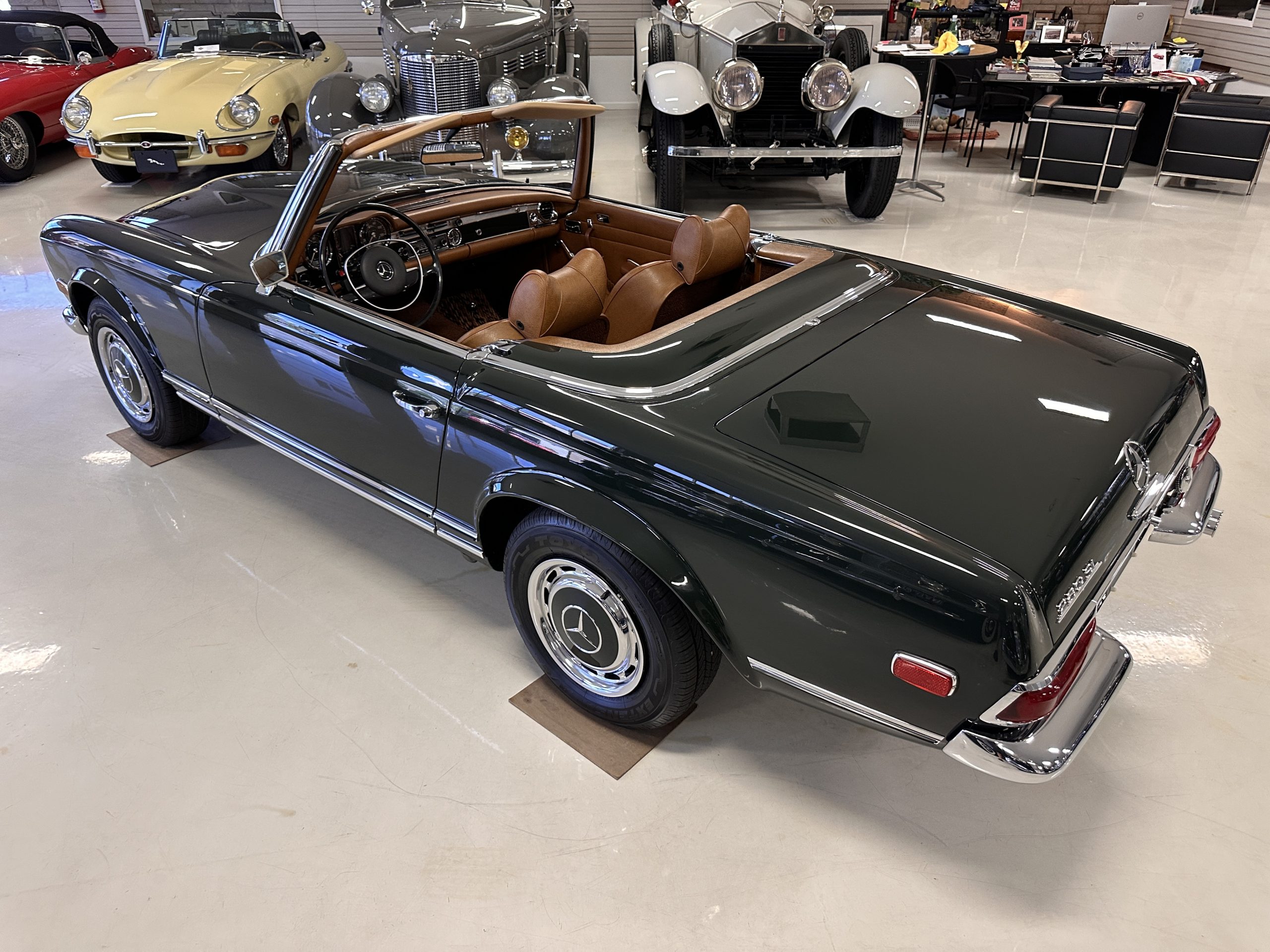 This is truly one of the nicest original 280SL’s available on the market today.  This very original and superbly documented 1969 Mercedes-Benz 280SL “Pagoda” had only one collector car owner from new until 2018, a full 50 years of ownership. Having amassed a mere 33,000 miles from new, this is one of the best original 280SLs extant.  Presented today in its rare, data card correct original paint color of 291 Dark Olive Green over an impressively well-kept original 140 Cognac MB Tex interior, all original books and tools, original owner aluminum data plate and an extensive history file including original purchase invoice and window sticker.  If you are looking to add an investment grade W113 to your collection, this is one to seriously consider.  (For more details, please see the 241 photos and four videos on the Classic Promenade website)