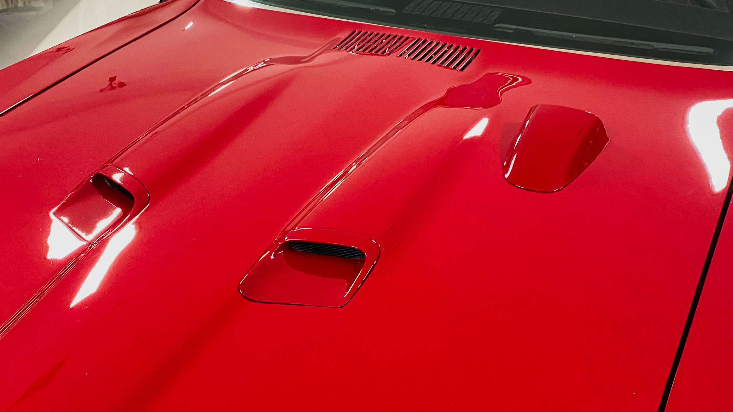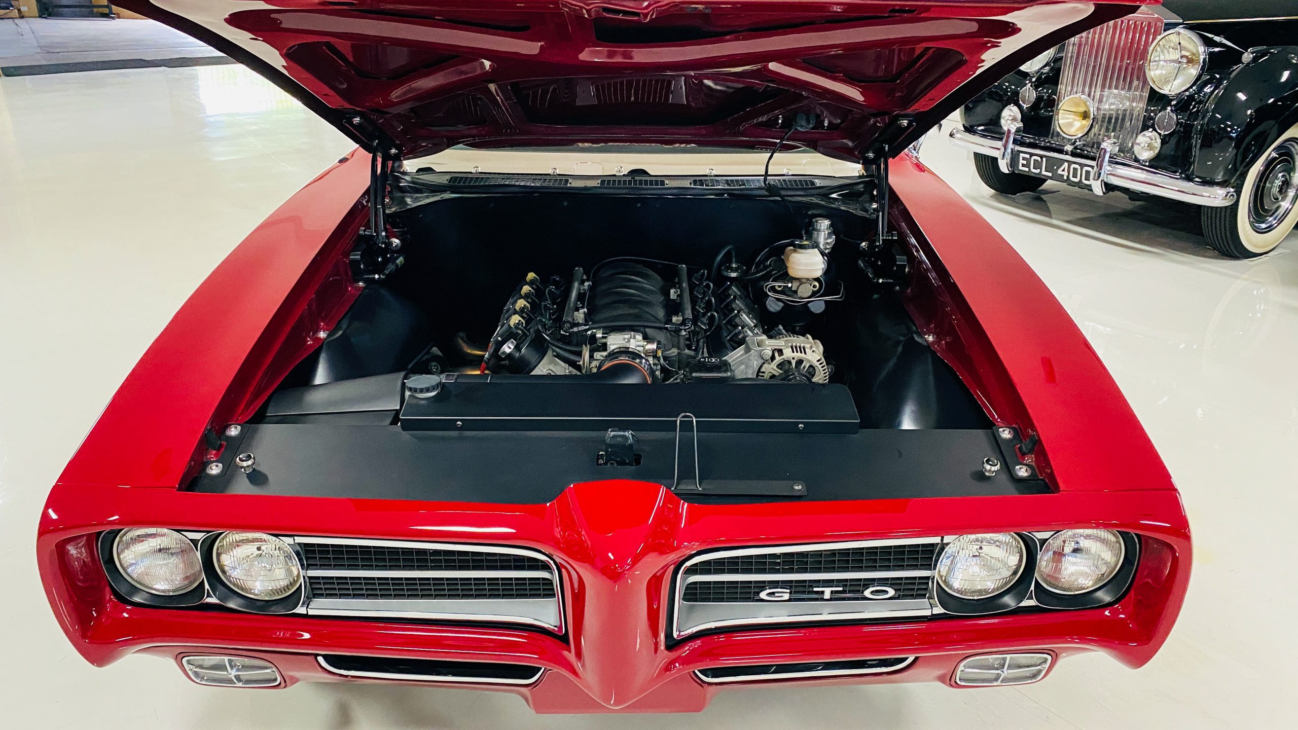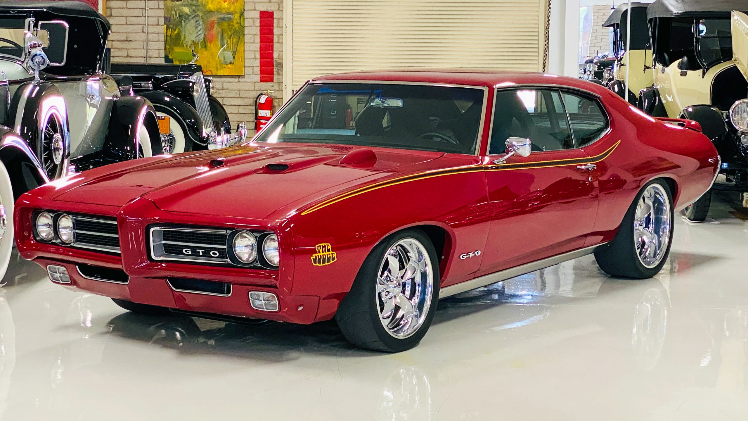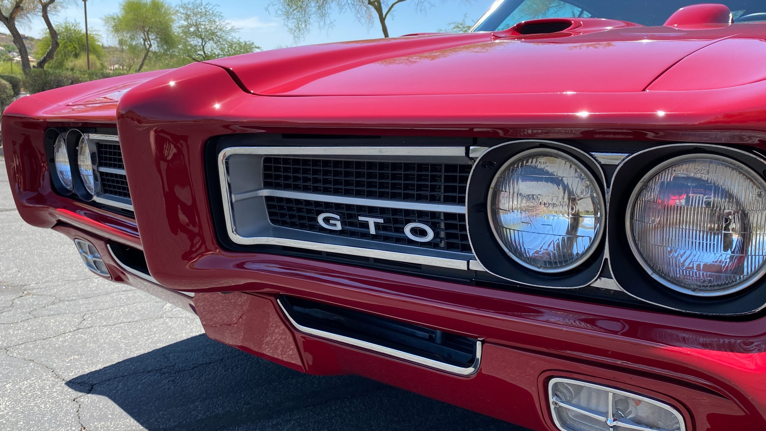 Refinished in sporty Matador Red paint, the quality of the paint is near flawless with an incredible depth and clarity. The ceramic coat over the clear coat makes this unique red hue really shine, while keeping the quality of the paint as maintenance-free as possible. This tribute has all of the expected physical trademarks of a GTO Judge. These include the brand new and correct “Judge” vinyl graphics, Judge badges, and the painted high rear deck spoiler. The endura front bumper fits beautifully and enthusiasts will love the working hood mounted tachometer. Other tasteful upgrades to the exterior include tinted glass all the way around, custom billet door handles, American Racing chrome alloy wheels with wide Nitto high performance tires.