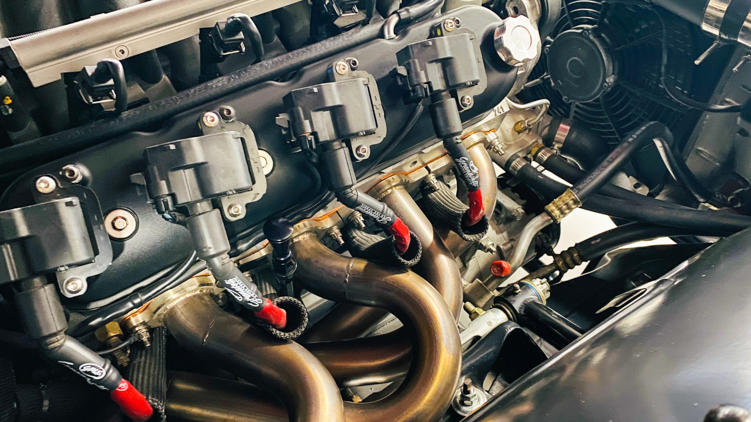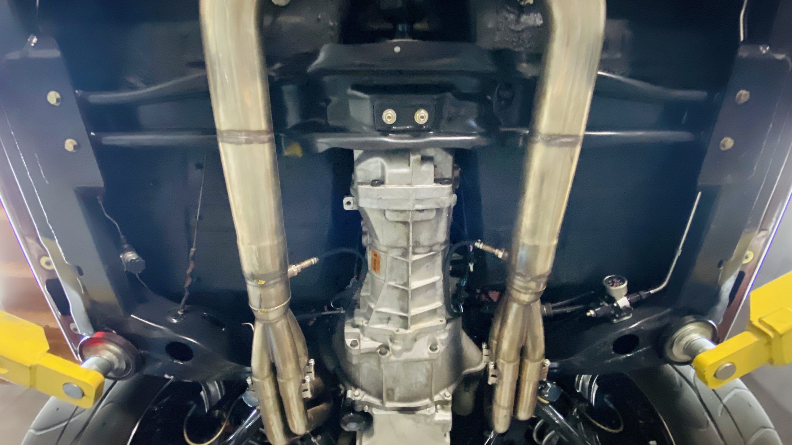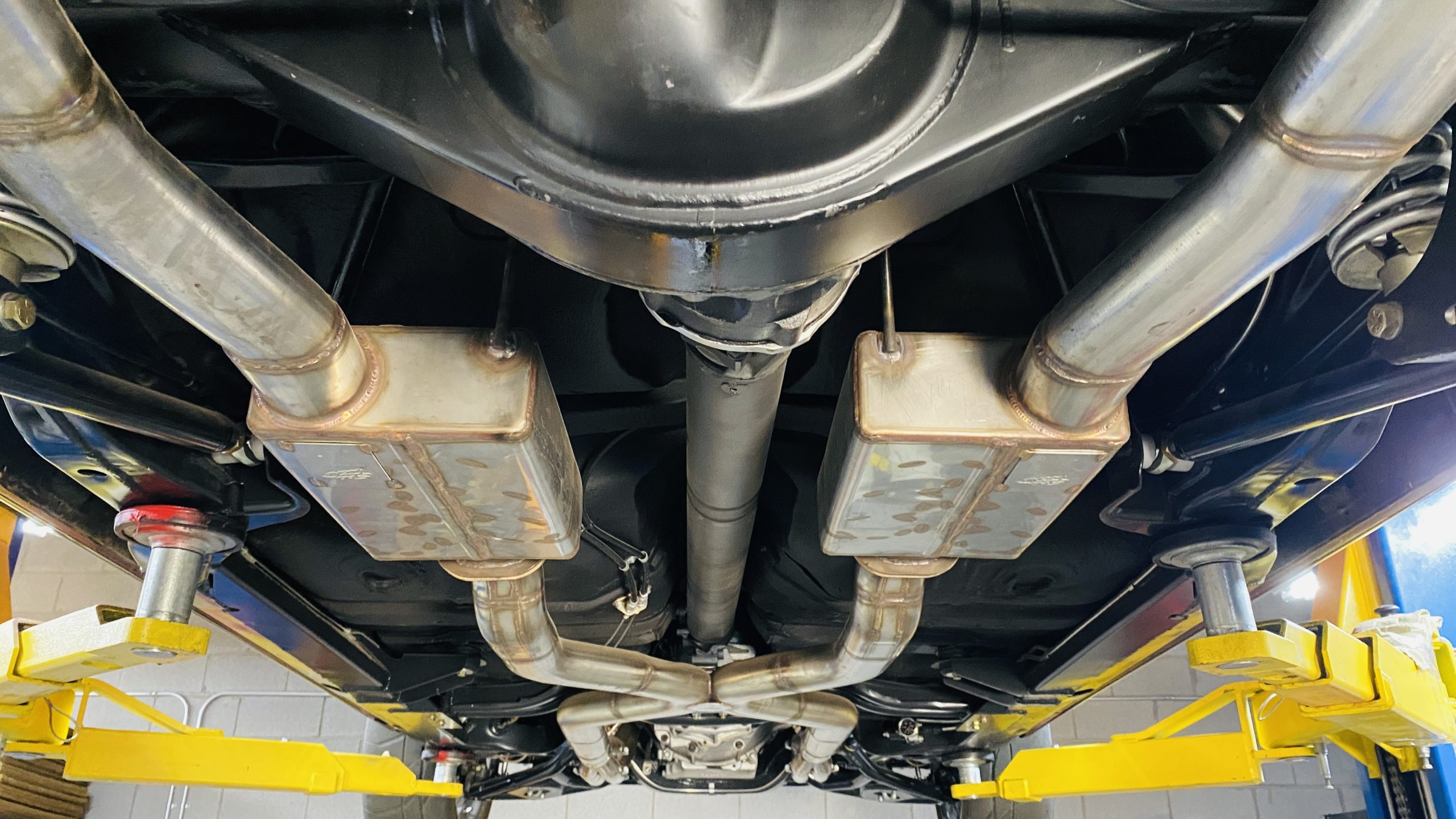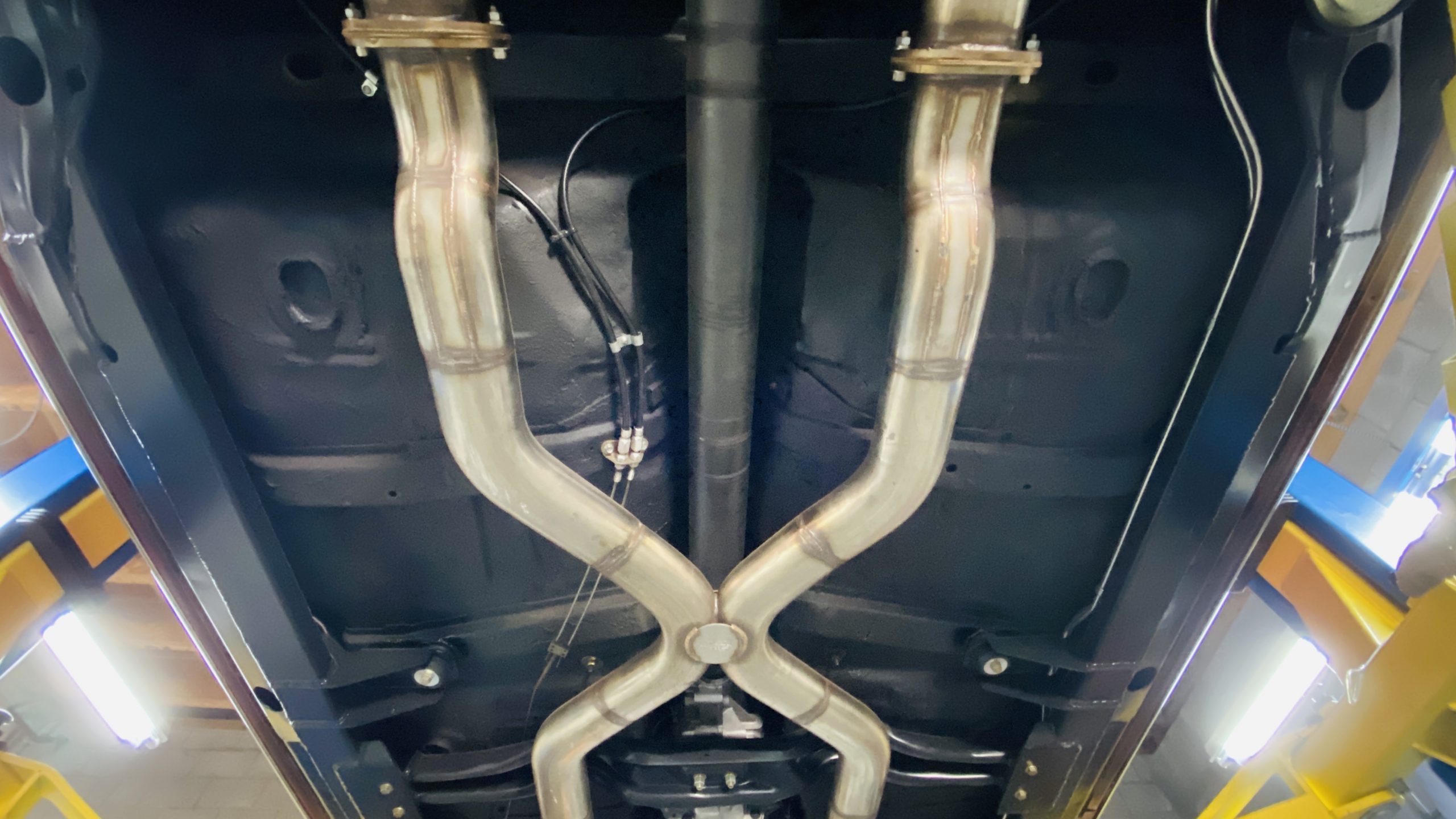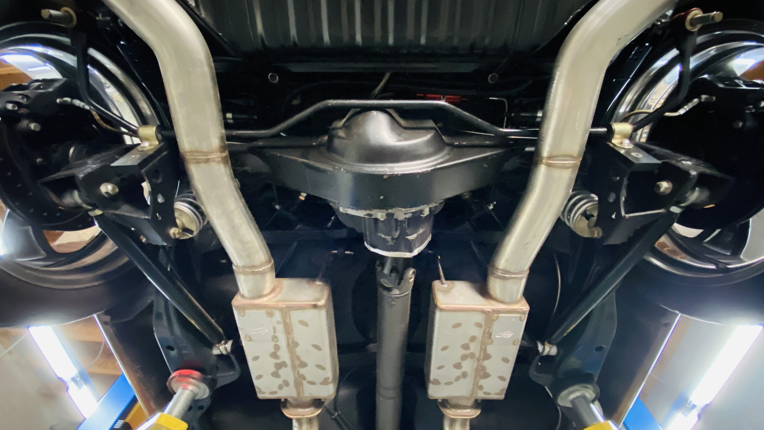 All of the exterior and interior changes that were made to this coupe would be all for naught if it weren’t for the performance upgrades. Supplying the power to this Judge is a custom built 5.7 liter LS1 mated to a Tremec T56 6-speed manual transmission. This combination offers plenty of power and each shift of the short throw shifter is quick and precise through the gears. Opening the hood, you are treated to a neat and tidy engine bay without wires and a few custom upgrades. Between the custom headers and stainless steel dual exhaust with Spintech mufflers, everyone around will be treated to a powerful modern muscle sound. A quick-ratio steering box, oversized sway bars in the front and rear, adjustable front and rear coil-over shocks and Global West tubular A-arms and a fully boxed frame allow this muscle car to move more nimbly around a track or around curves than ever before. Stopping power is aptly provided by Wilwood power disc brakes at all four corners, including slotted and drilled rotors with 6-piston calipers in the front.