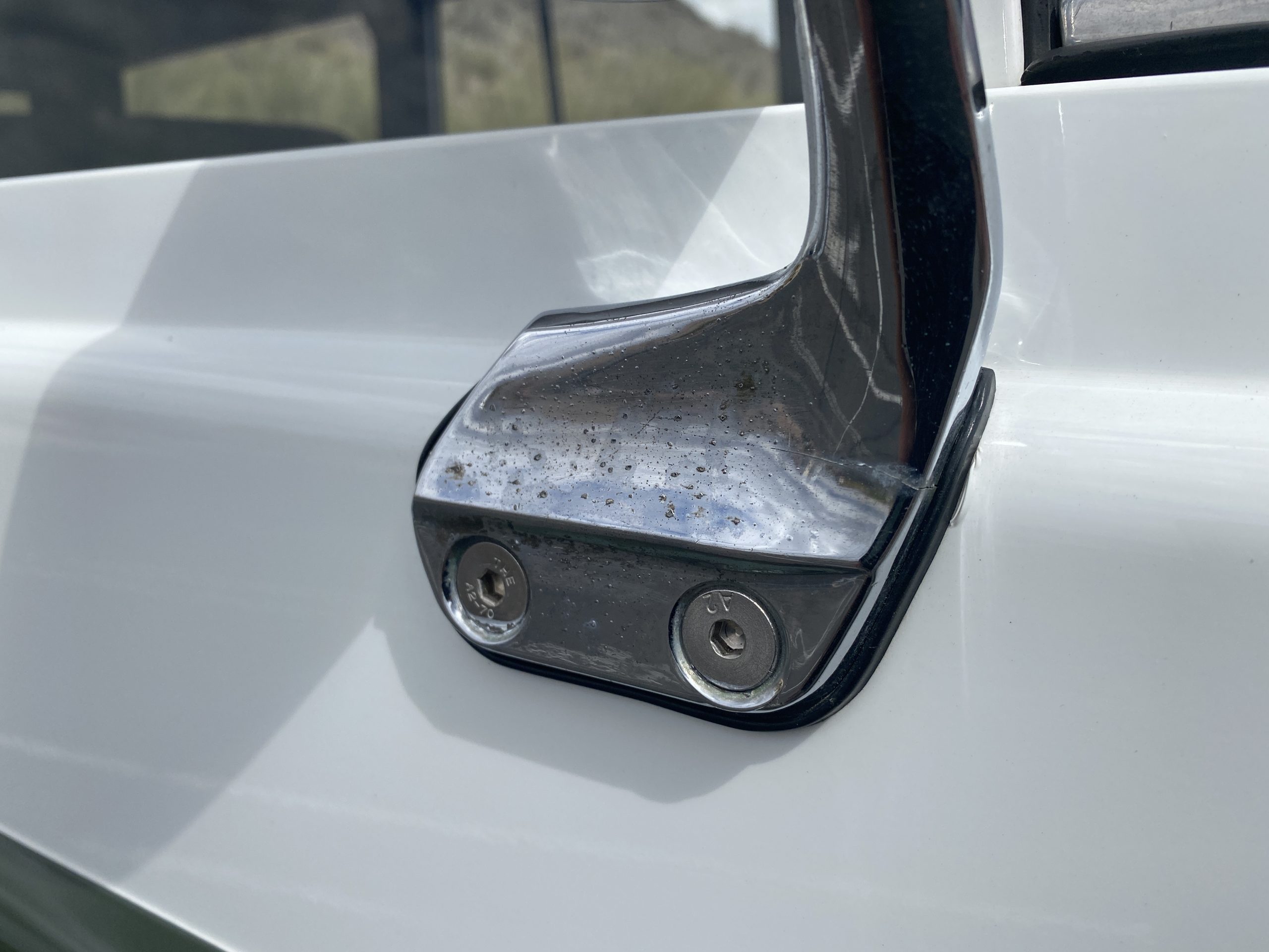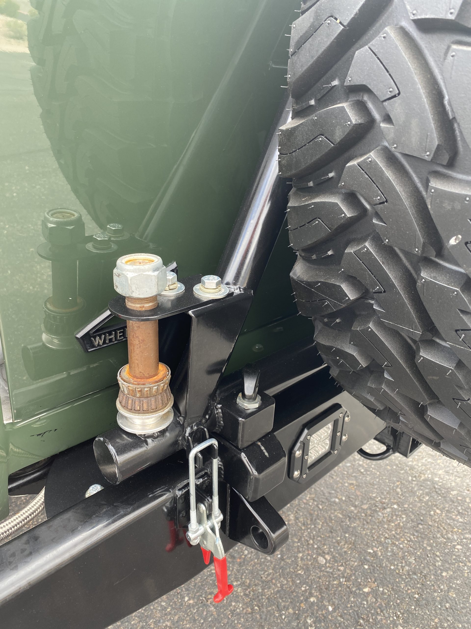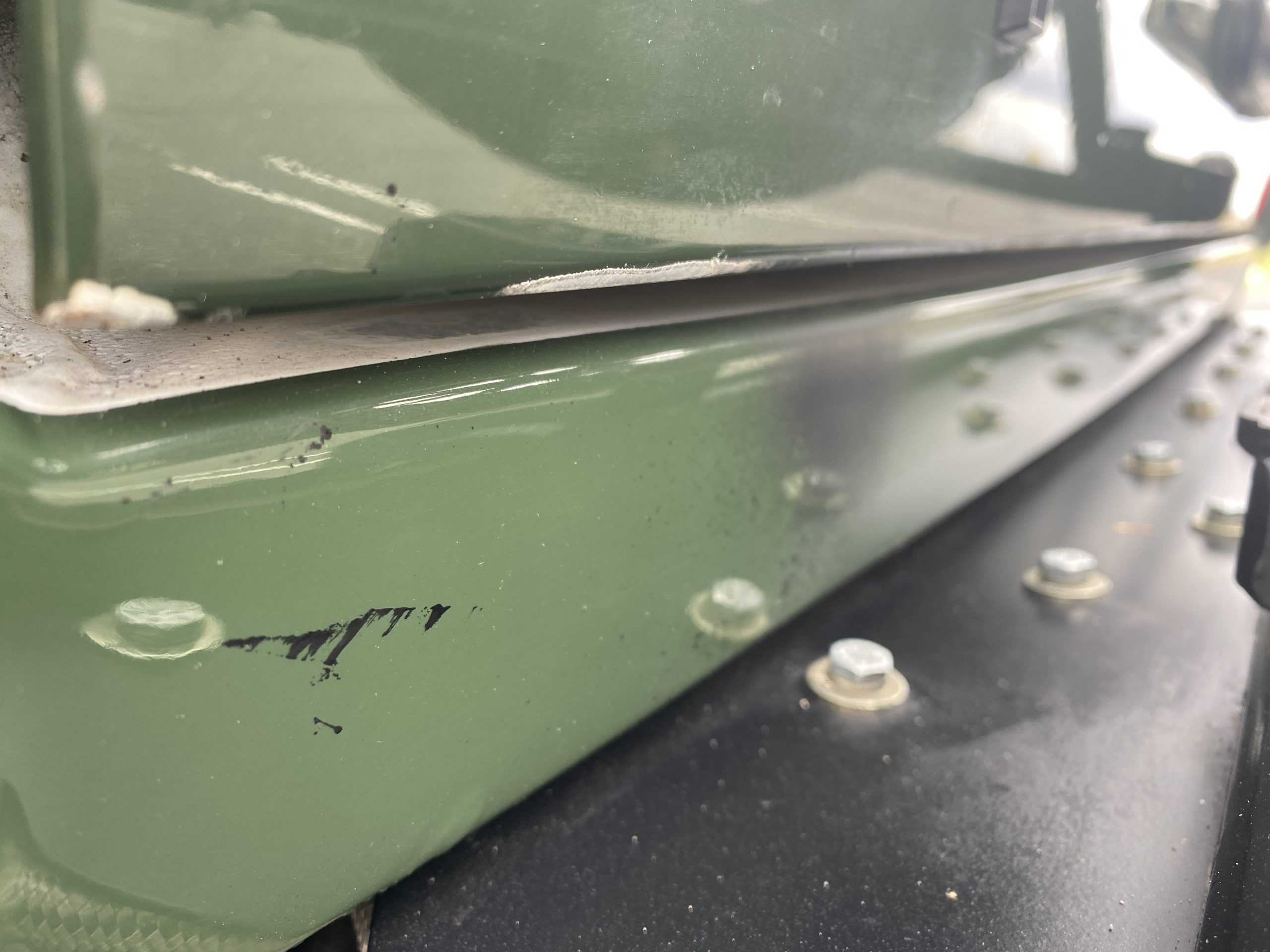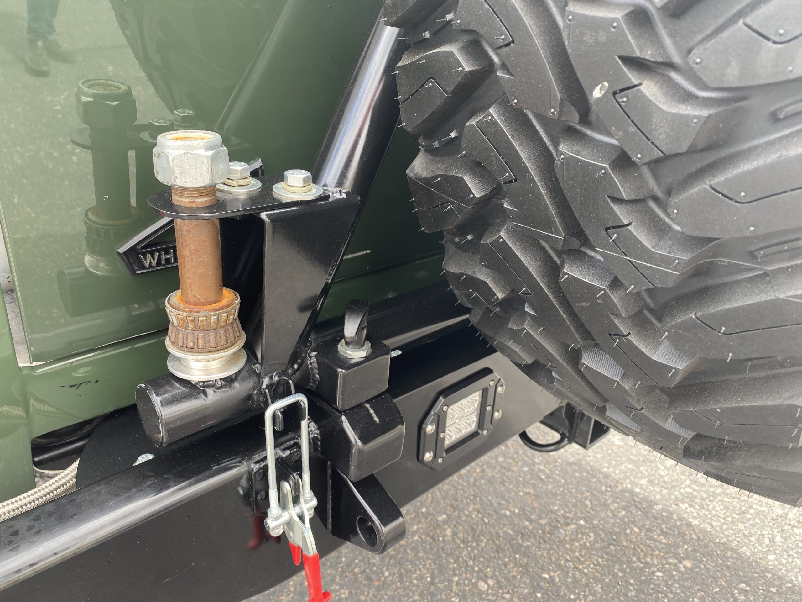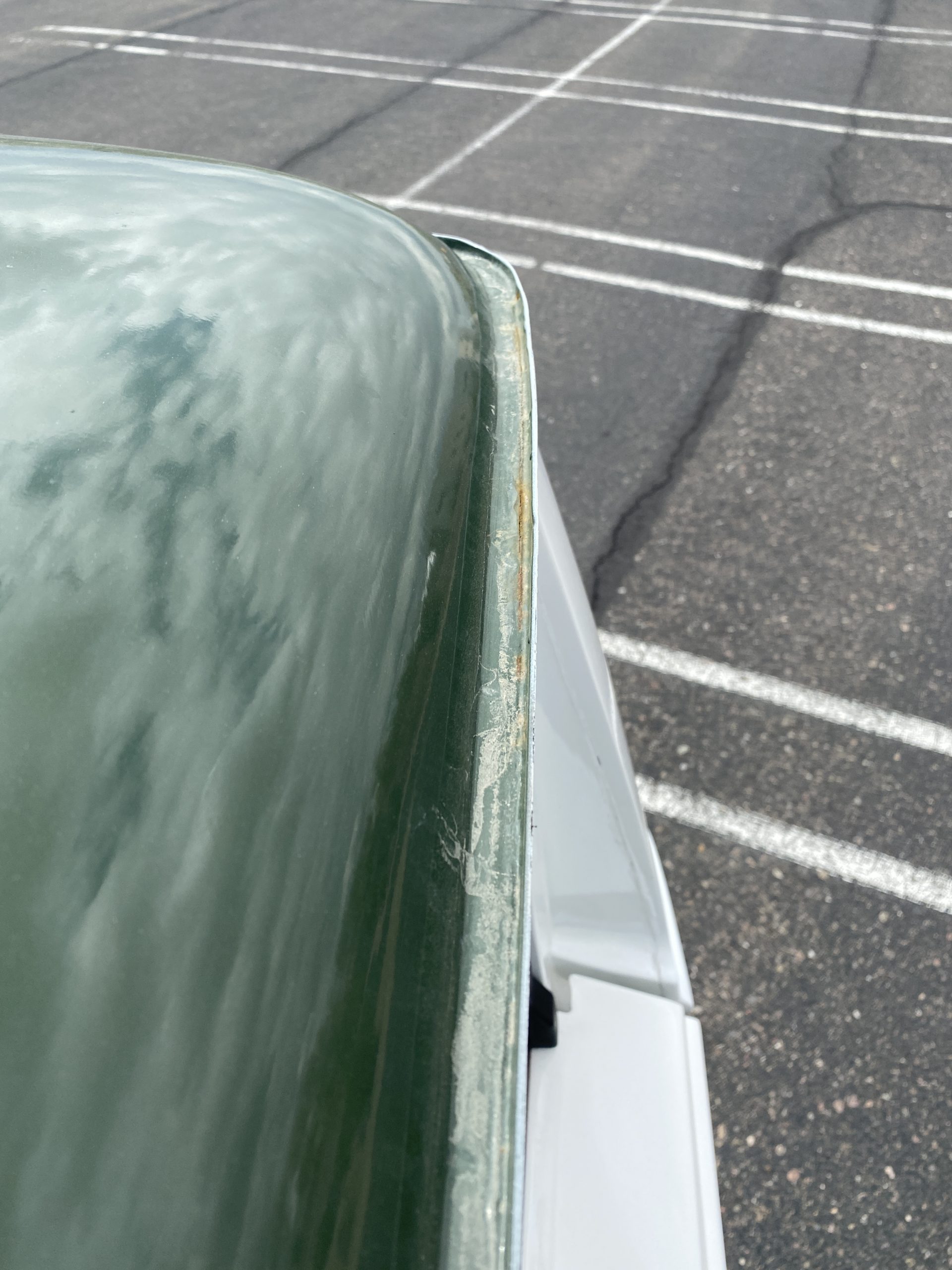 The custom two-tone white over dark green paint shows well and is in overall excellent condition. Even in direct sunlight, the car has tremendous depth, shine, and luster. While not free from blemishes, most would be hard pressed to find an issue on initial inspection. The brightwork on this FJ is largely original and in good condition with some minor scratches and some very minor pitting, most notably on the door handles. The custom ARB front bumper with integrated WARN Zeon 10 winch looks right at home on this Toyota and many will notice the three LED light bars seated on the bumper, which pair well with the aftermarket black LED headlamps and black painted grille. Adding to the overall dark theme of the accessories are 35″ Toyo Open Country M/T tires wrapped around flat-black 17″ Method wheels with Aisin front lockers. Other exterior highlights include removable doors, custom rock sliders and a custom swing-out rear tire carrier.