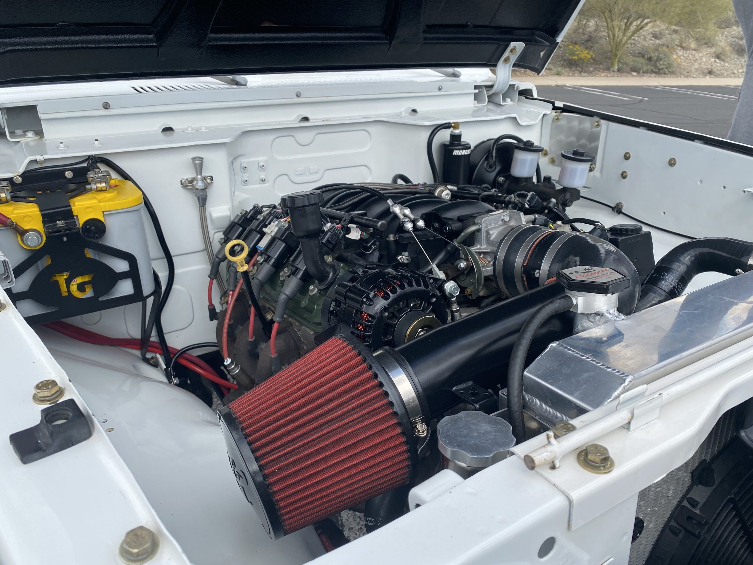 Mechanically, this FJ runs and drives great, and understandably so. The 5.7-liter LS6 V8 crate engine comes alive with a quick twist of the key and is paired with GM’s 4L60E four-speed automatic. This electronic transmission is said to have been fitted with an aftermarket valve body, shift kit, and kick-down cable and sends the power to the wheels through a twin-stick Atlas II two-speed transfer case. Off-road enthusiasts will appreciate the Tom Woods driveshafts, a custom Toyota front axle, Dana Dynatrac 60 rear axle, and front a rear ARB air lockers. As you can see, this is not just built for show, it was built to be just as capable off-road as it is on the highway.