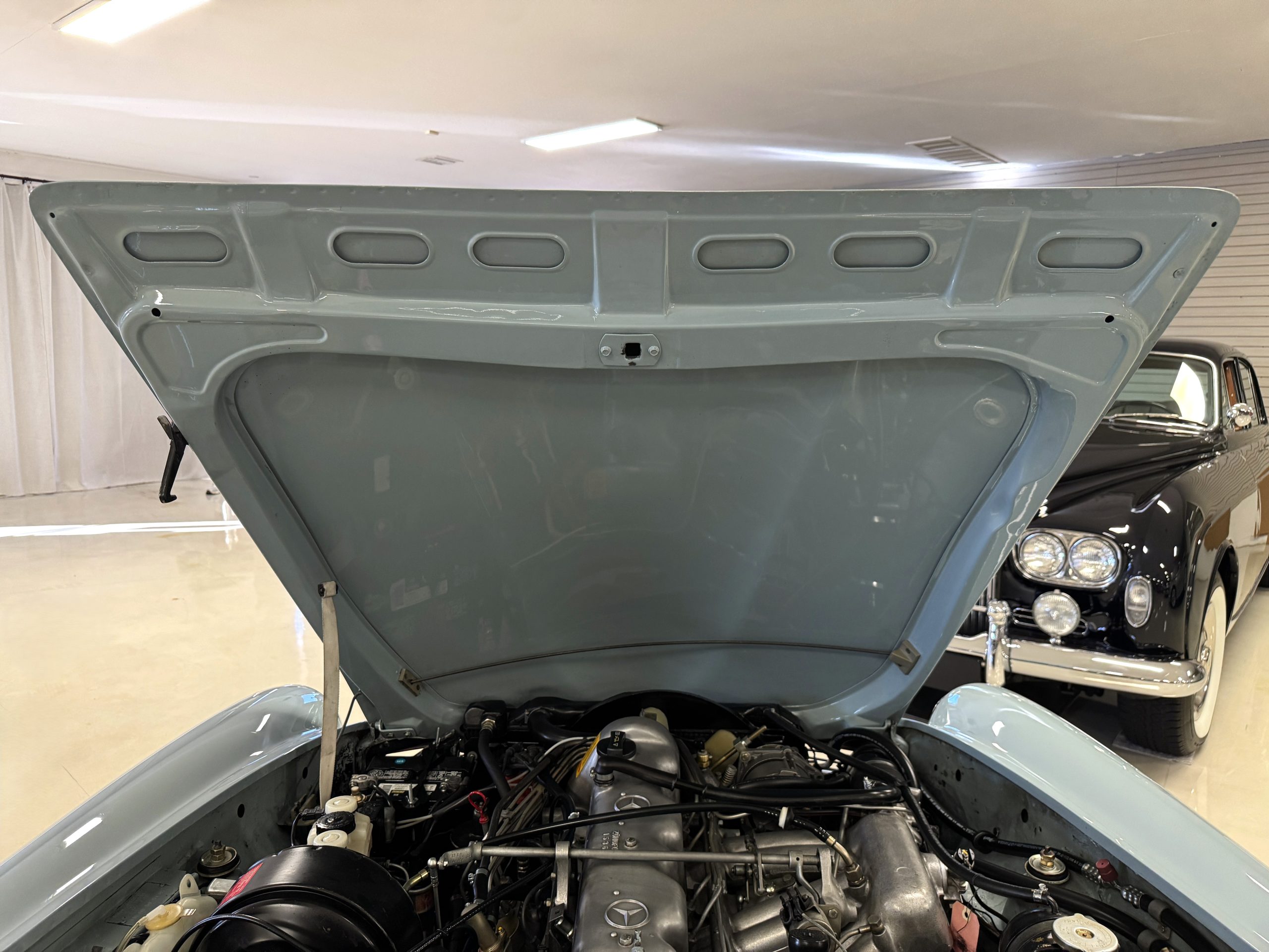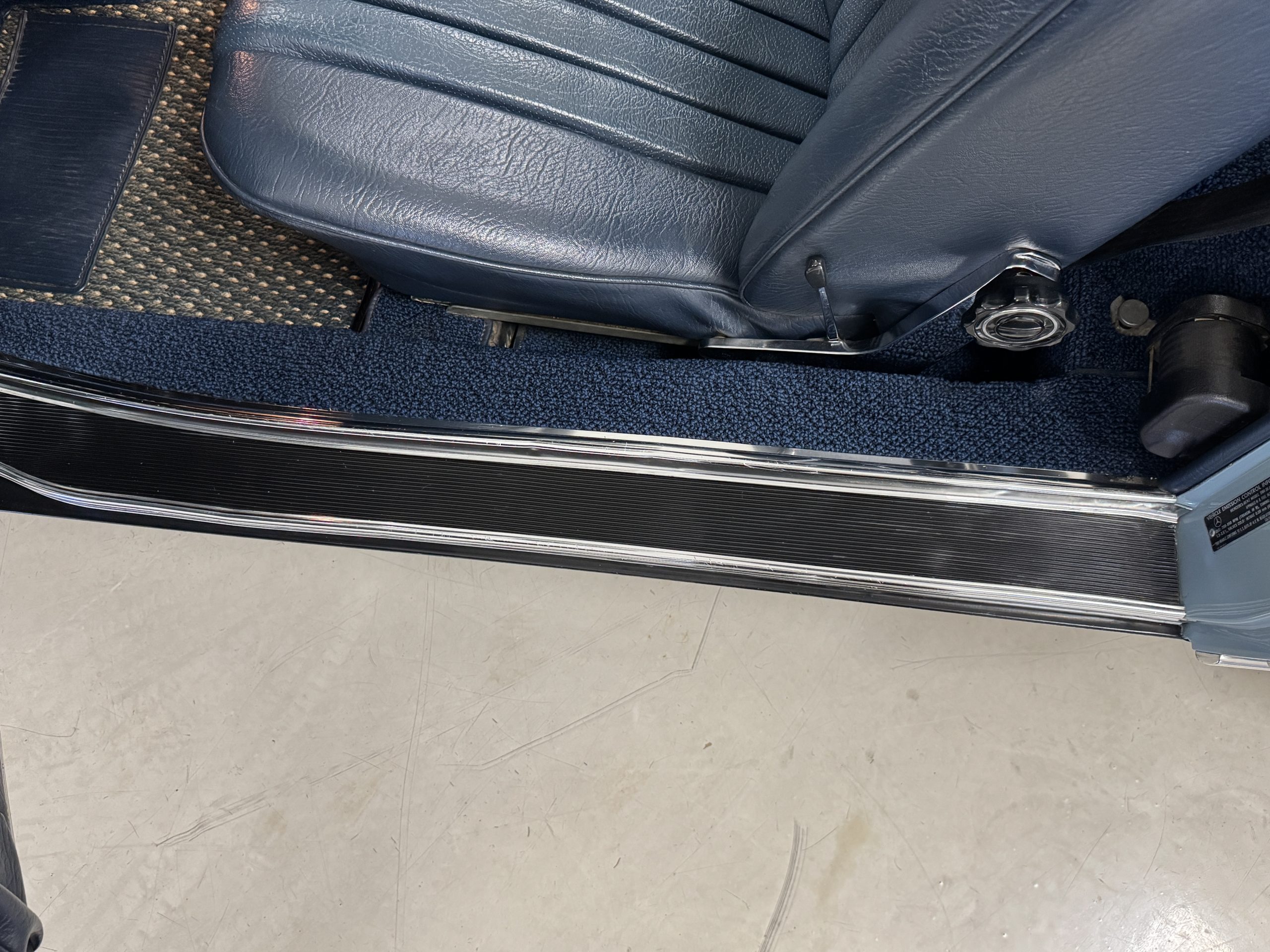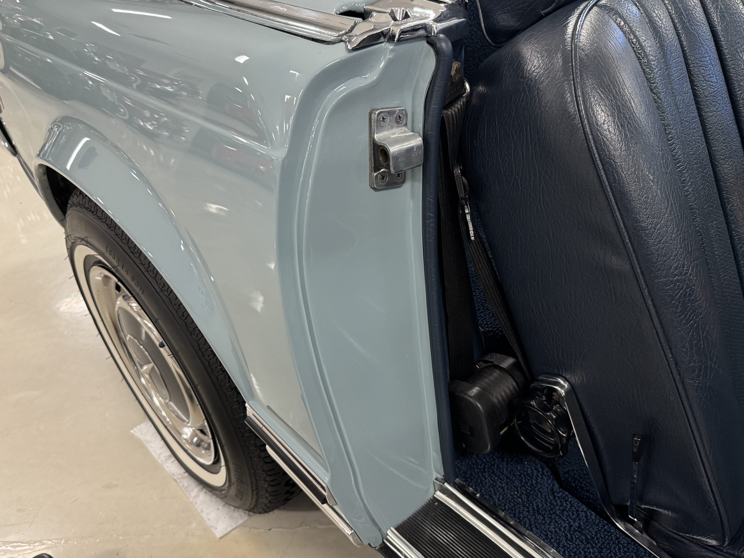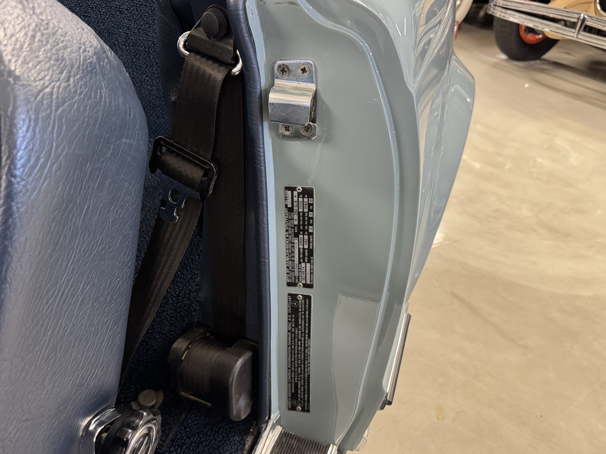 Power is provided by the 2.8L inline-six producing approximately 180 horsepower, paired with a four-speed automatic transmission. The Mercedes has power steering, disc brakes all around, and dual exhaust. During its lifetime, this Mercedes has been cared for meticulously, proactively and underwent a no expense spared frame off restoration. Unless unavailable, parts were replaced with original factory parts. The engine was replaced with a factory rebuilt engine special ordered from Germany. Key items that were completed in its history including a rebuilt fuel injection pump, distributor replaced with a modern improved distributor that delivers three times the voltage but looks original, the radiator was rebuilt featuring a high efficiency core, and fully replaced air condition system including compressor, hoses, evaporator and condenser. The right front fender is missing the weld spots on the inner trim though we don’t have historical information on why or when that happened. After being kept in storage and driven infrequently, the Mercedes was fully inspected and serviced to be road ready in November 2025. The items most recently replaced were all four tires (Phoenix 185R14), battery, bushings, valve cover gaskets, fuel line and all fluids. The Mercedes is fully sorted and is in great mechanical condition!