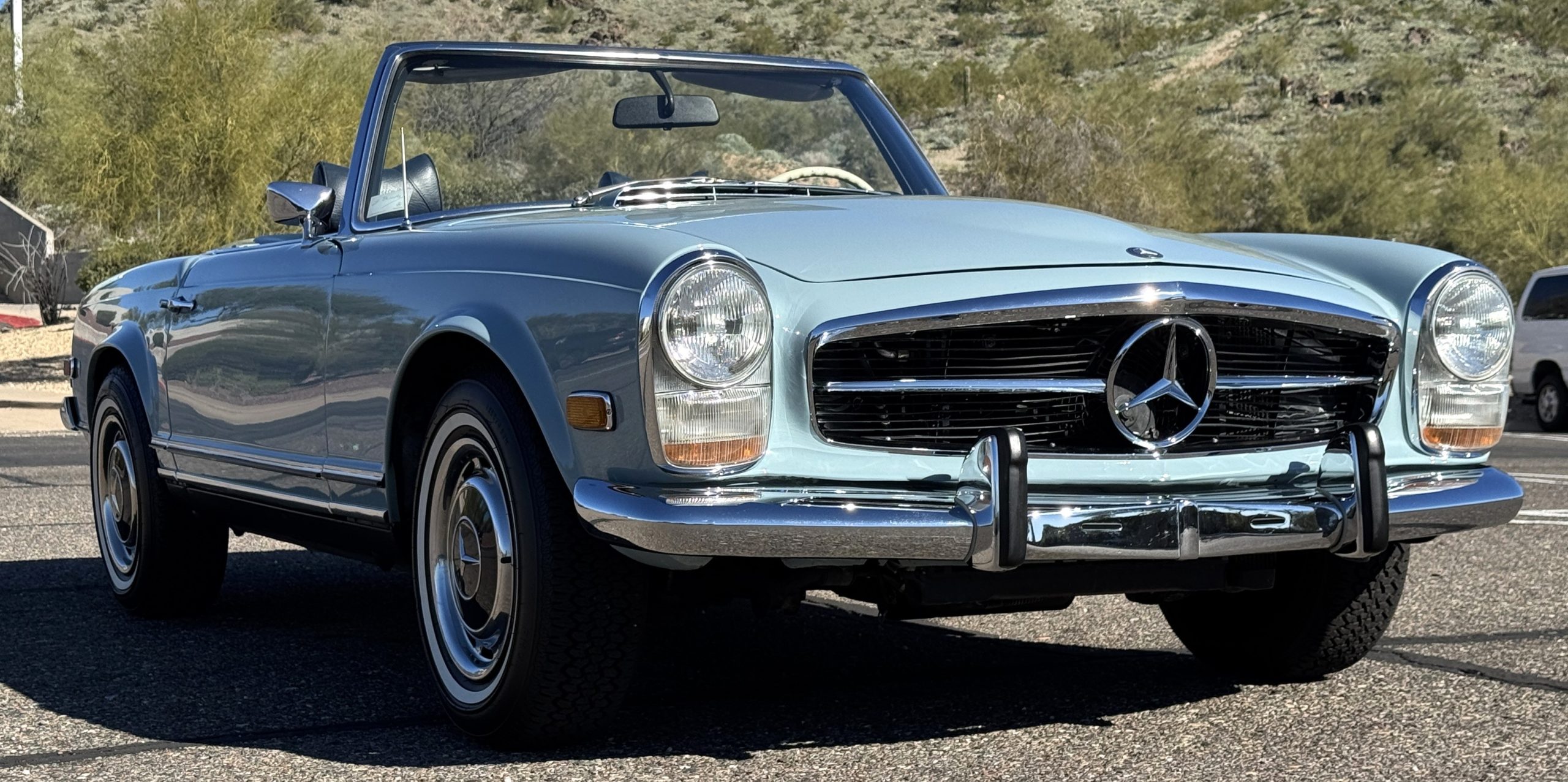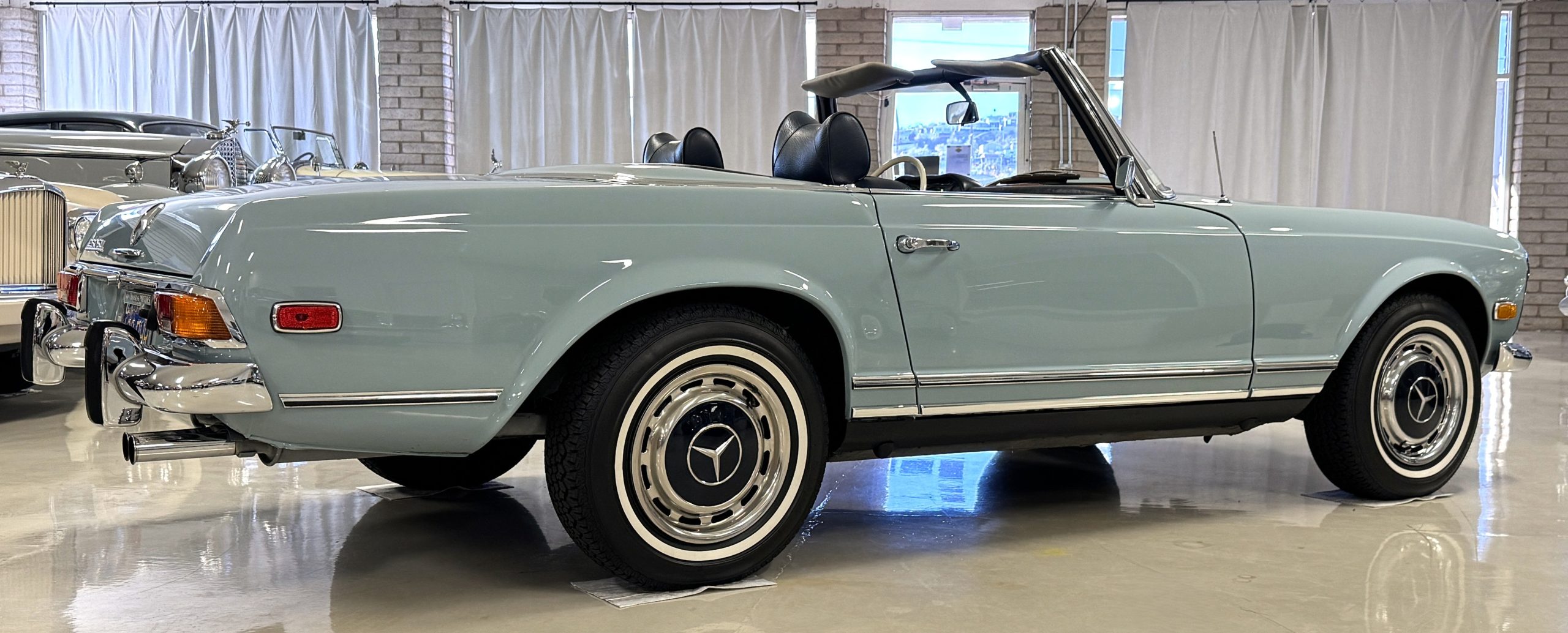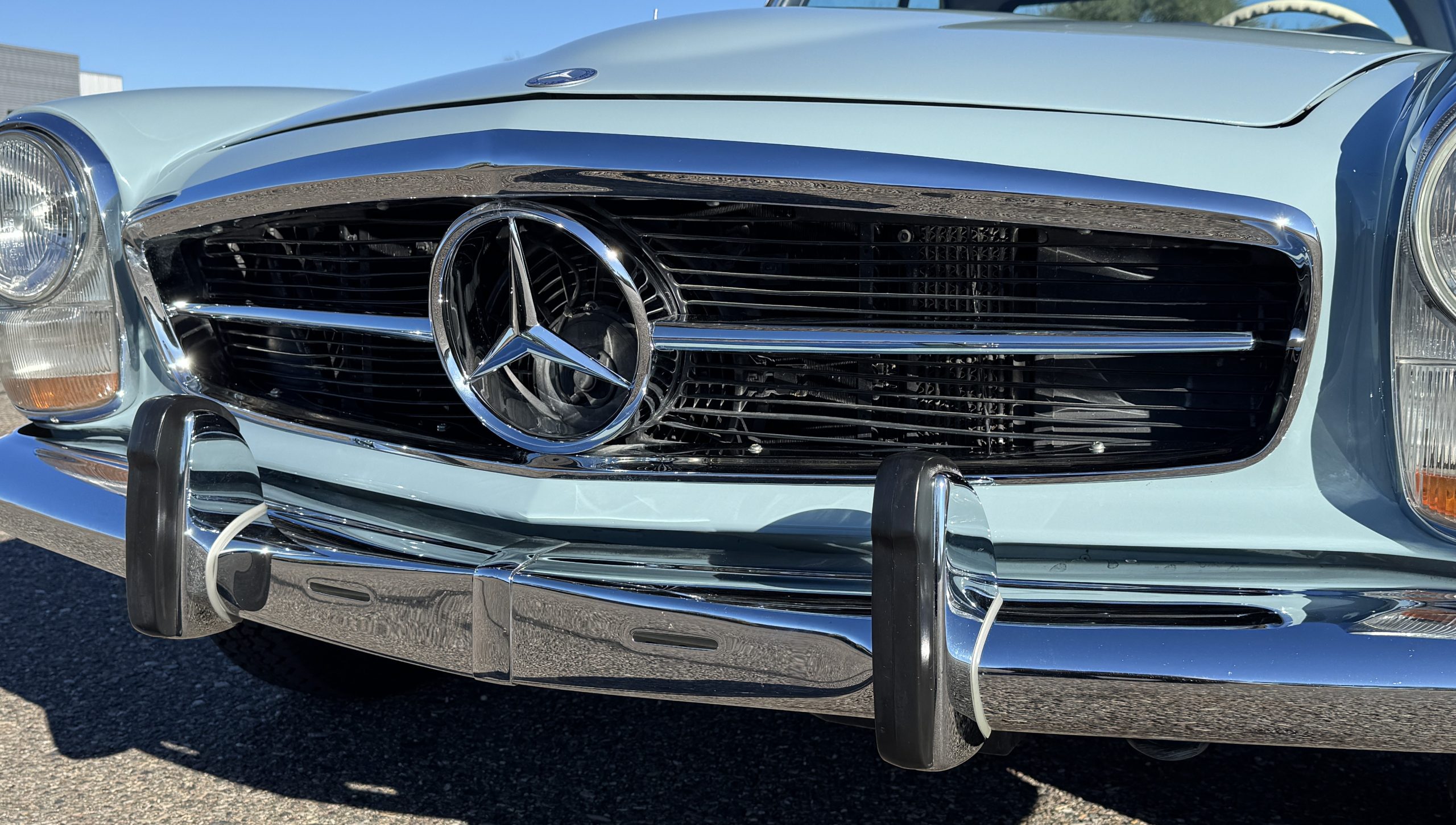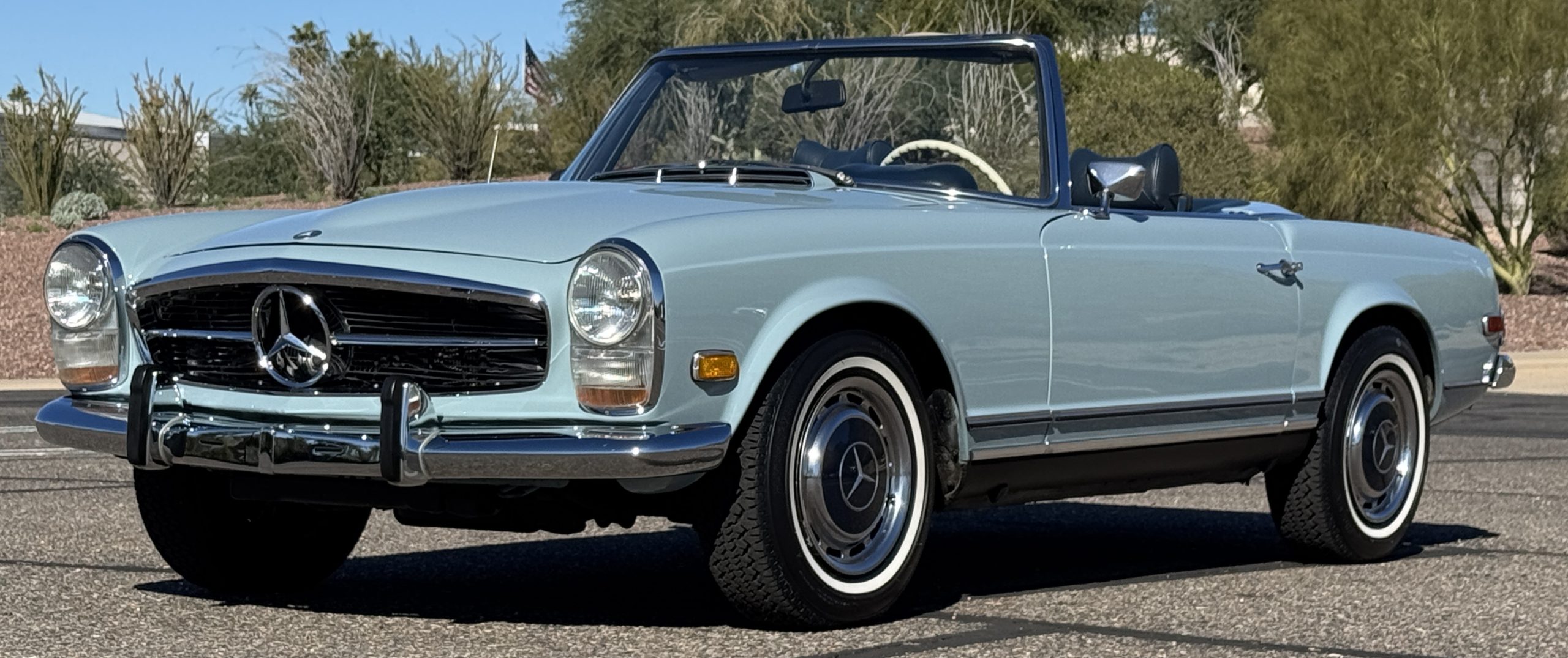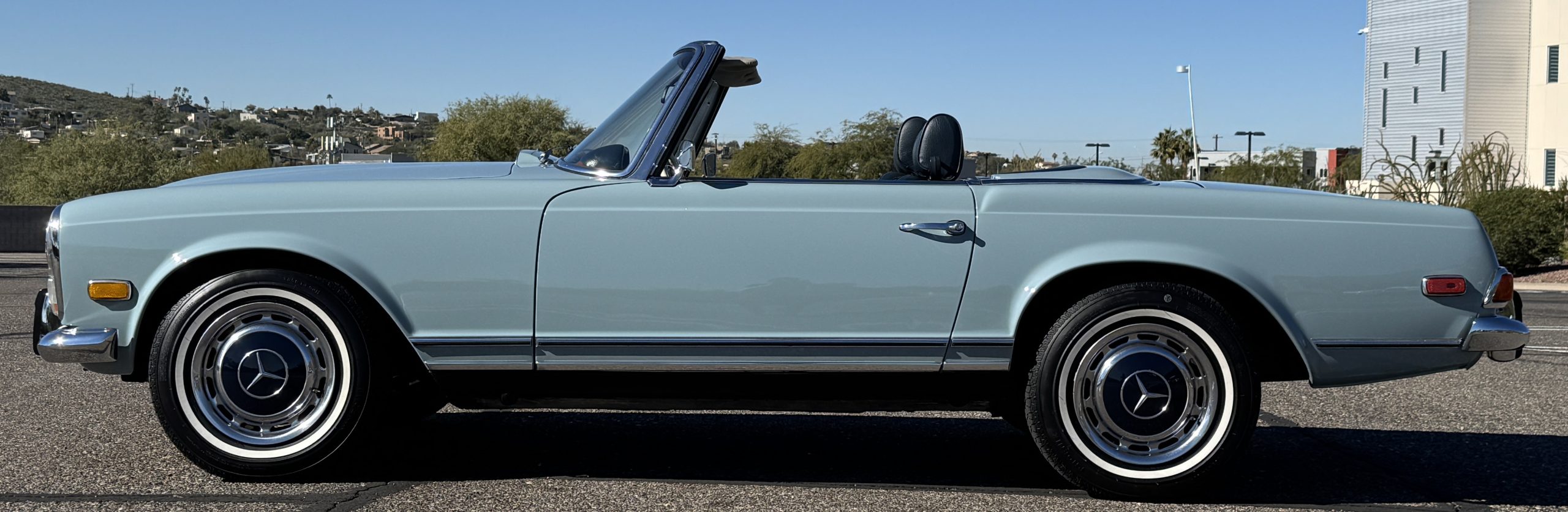 Power is provided by the 2.8L inline-six producing approximately 180 horsepower, paired with a four-speed automatic transmission. The Mercedes has power steering, disc brakes all around, and dual exhaust. During its lifetime, this Mercedes has been cared for meticulously, proactively and underwent a no expense spared frame off restoration. Unless unavailable, parts were replaced with original factory parts. The engine was replaced with a factory rebuilt engine special ordered from Germany. Key items that were completed in its history including a rebuilt fuel injection pump, distributor replaced with a modern improved distributor that delivers three times the voltage but looks original, the radiator was rebuilt featuring a high efficiency core, and fully replaced air condition system including compressor, hoses, evaporator and condenser. The right front fender is missing the weld spots on the inner trim though we don’t have historical information on why or when that happened. After being kept in storage and driven infrequently, the Mercedes was fully inspected and serviced to be road ready in November 2025. The items most recently replaced were all four tires (Phoenix 185R14), battery, bushings, valve cover gaskets, fuel line and all fluids. The Mercedes is fully sorted and is in great mechanical condition!
