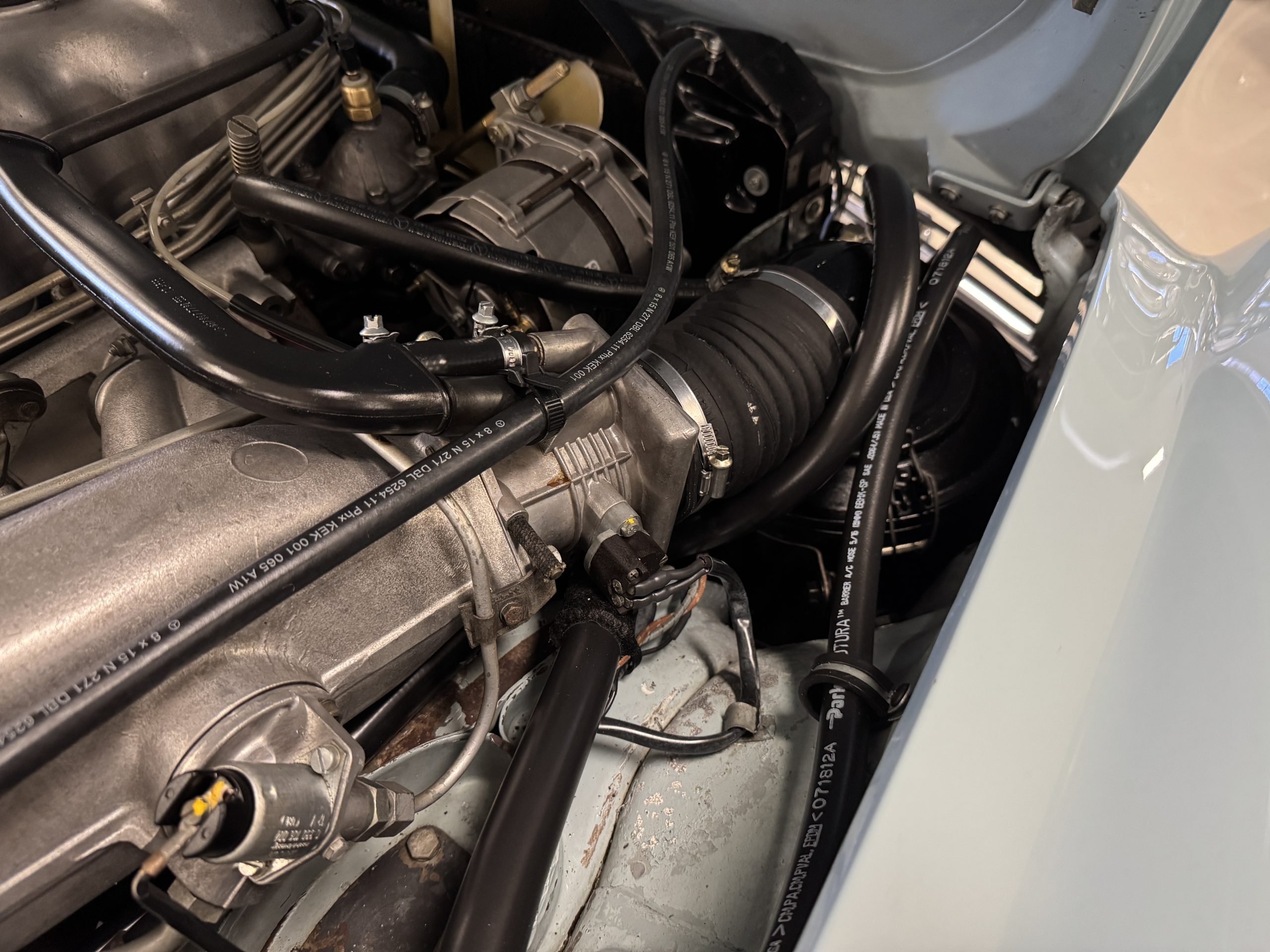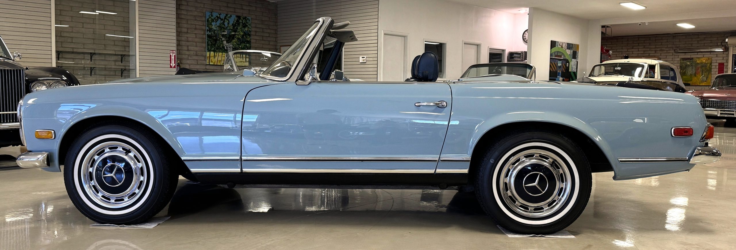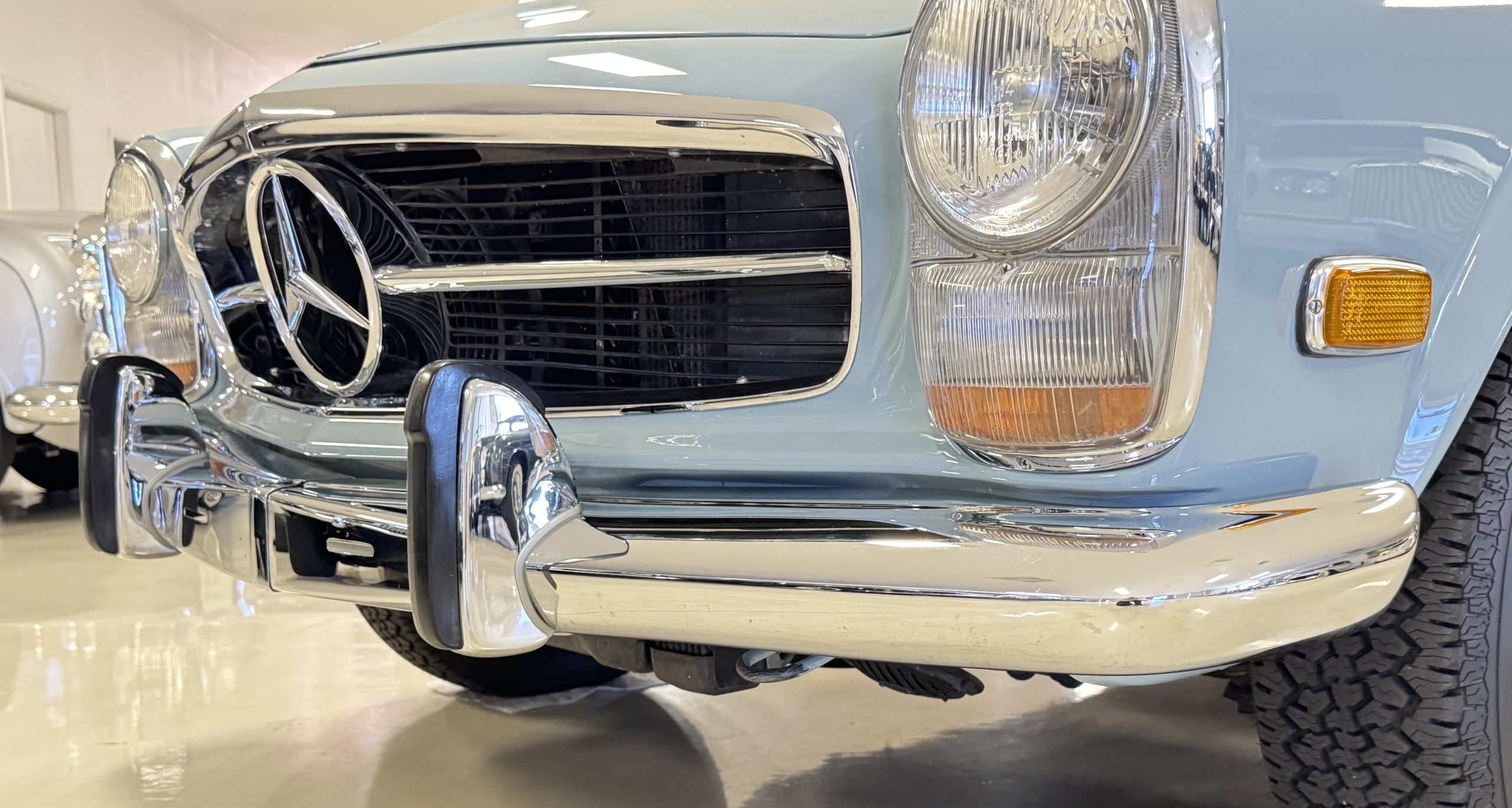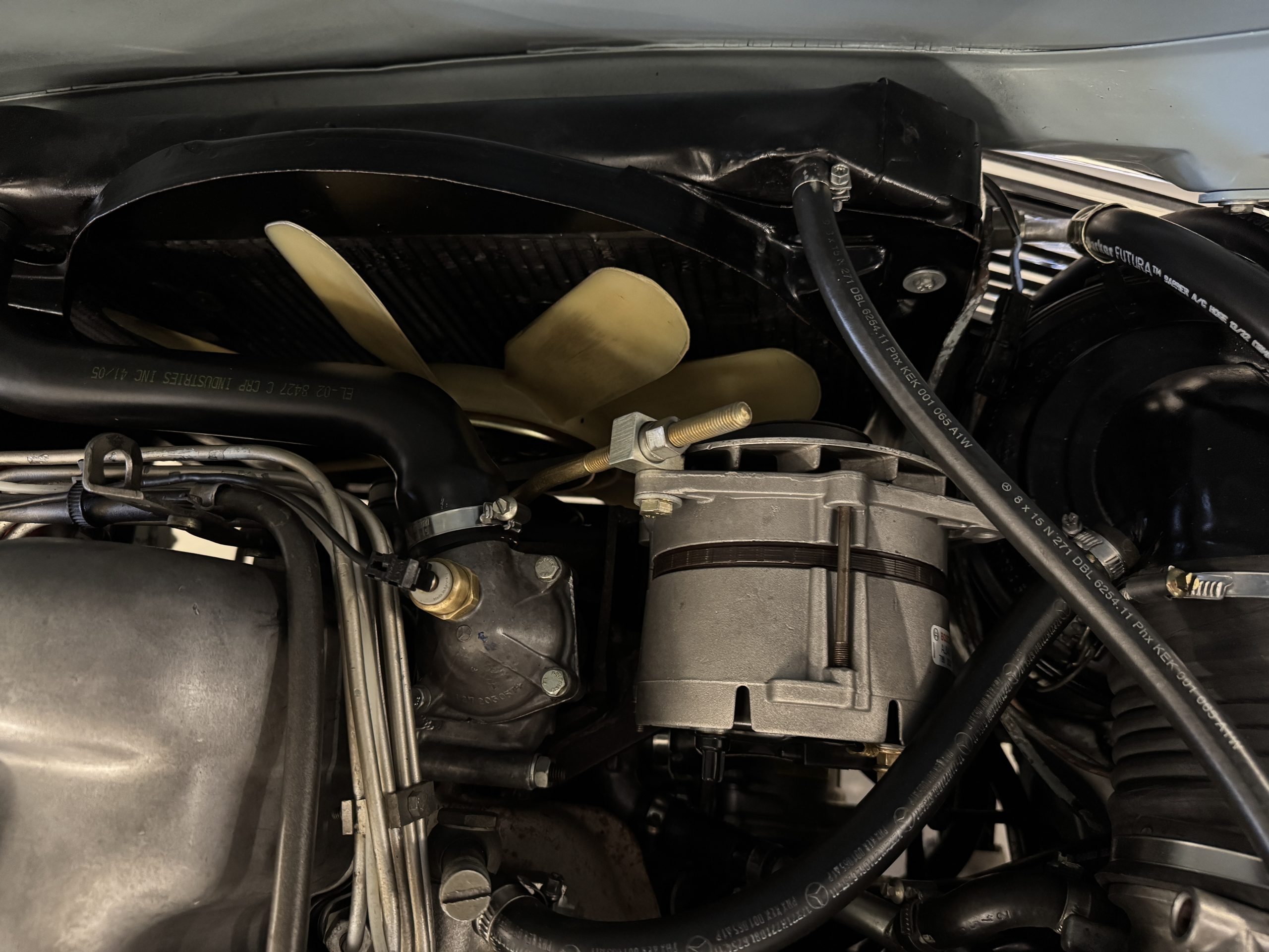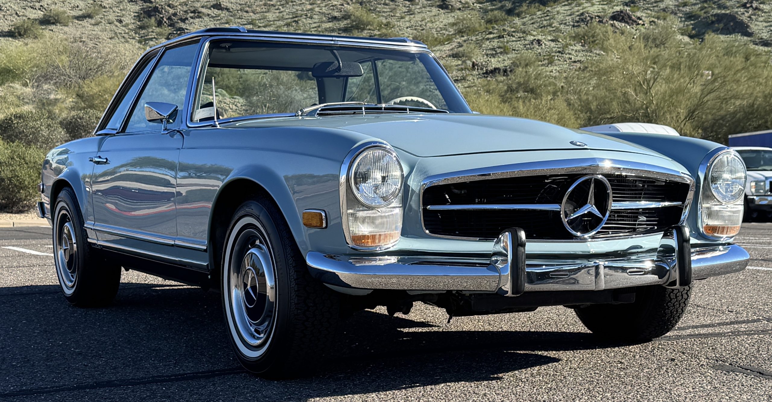 Power is provided by the 2.8L inline-six producing approximately 180 horsepower, paired with a four-speed automatic transmission. The Mercedes has power steering, disc brakes all around, and dual exhaust. During its lifetime, this Mercedes has been cared for meticulously, proactively and underwent a no expense spared frame off restoration. Unless unavailable, parts were replaced with original factory parts. The engine was replaced with a factory rebuilt engine special ordered from Germany. Key items that were completed in its history including a rebuilt fuel injection pump, distributor replaced with a modern improved distributor that delivers three times the voltage but looks original, the radiator was rebuilt featuring a high efficiency core, and fully replaced air condition system including compressor, hoses, evaporator and condenser. The right front fender is missing the weld spots on the inner trim though we don’t have historical information on why or when that happened. After being kept in storage and driven infrequently, the Mercedes was fully inspected and serviced to be road ready in November 2025. The items most recently replaced were all four tires (Phoenix 185R14), battery, bushings, valve cover gaskets, fuel line and all fluids. The Mercedes is fully sorted and is in great mechanical condition!