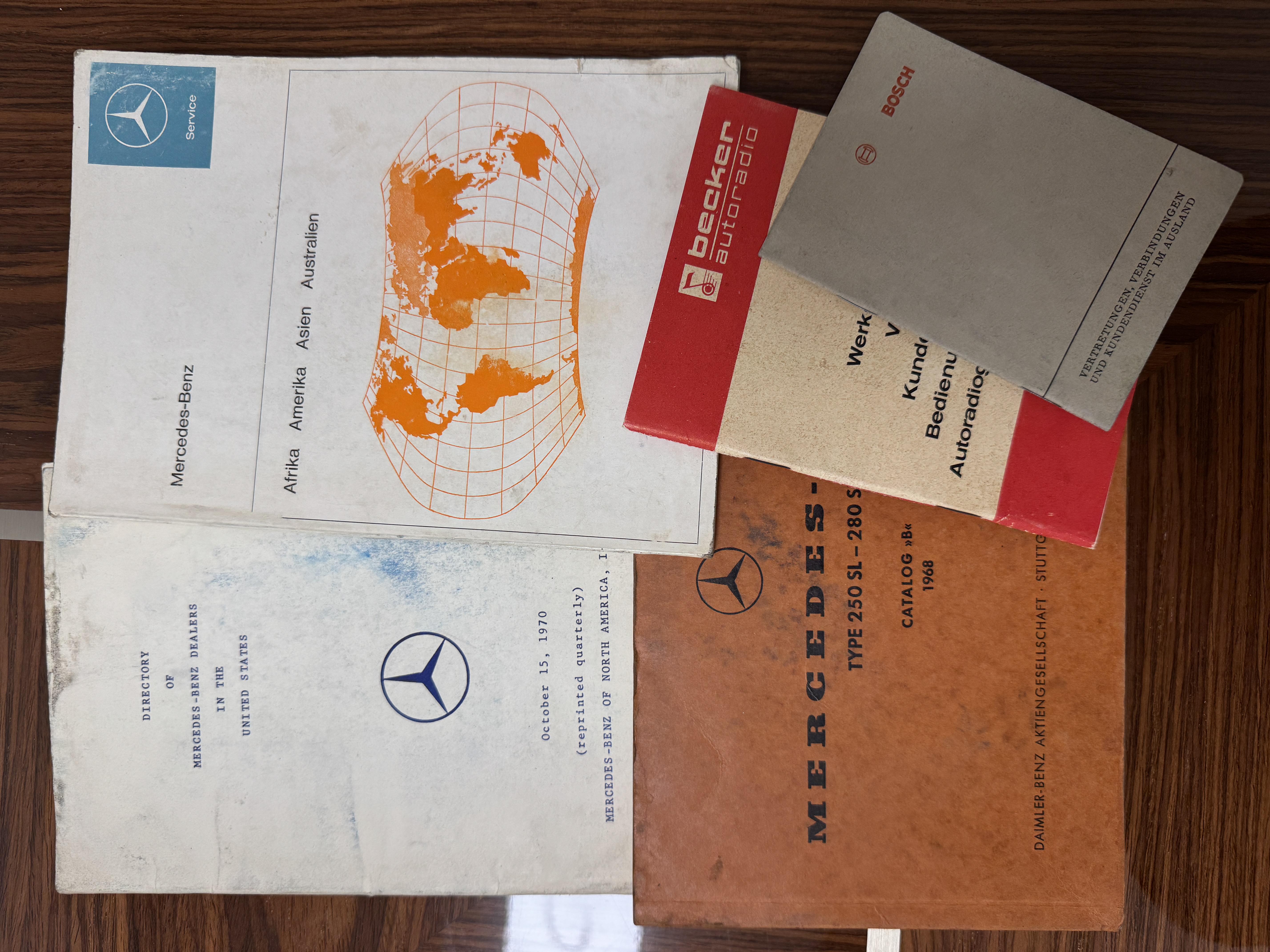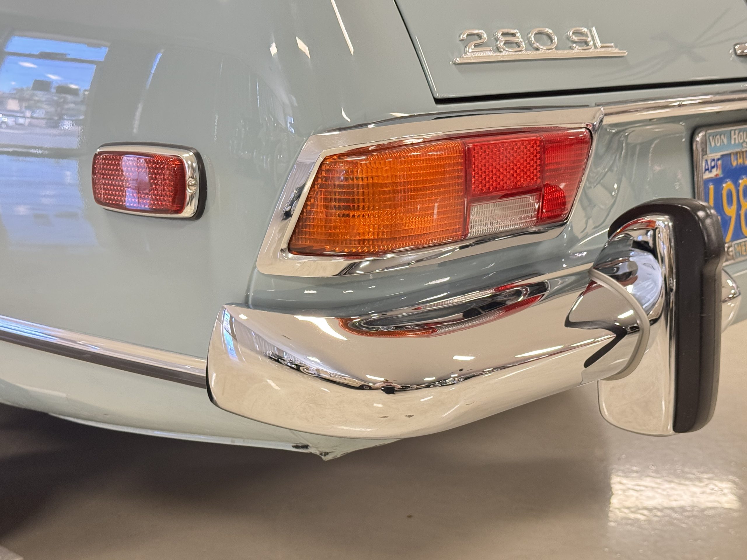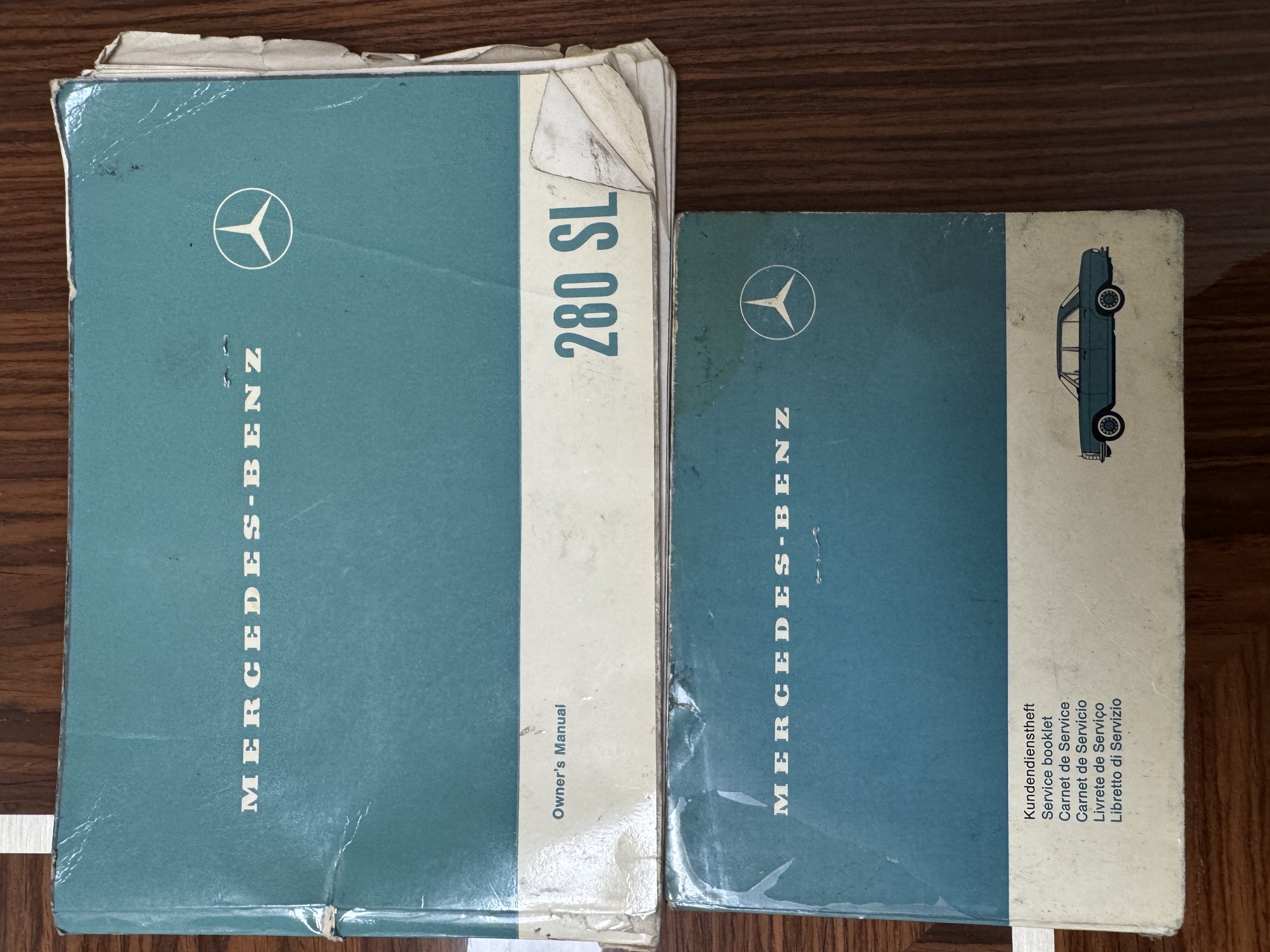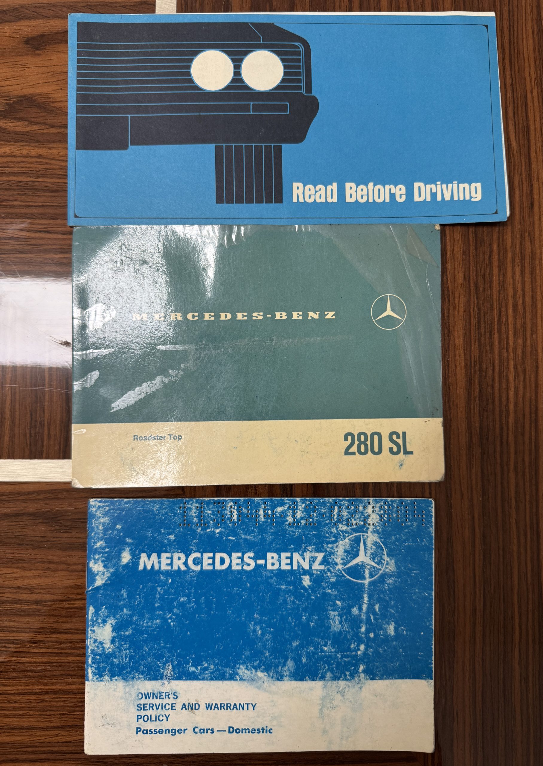 This 280SL comes complete with original owner’s and service manuals, owner certificate card, new blue Coco floor mats, spare tire with cover in the trunk, partial service records, and four additional hubcaps.