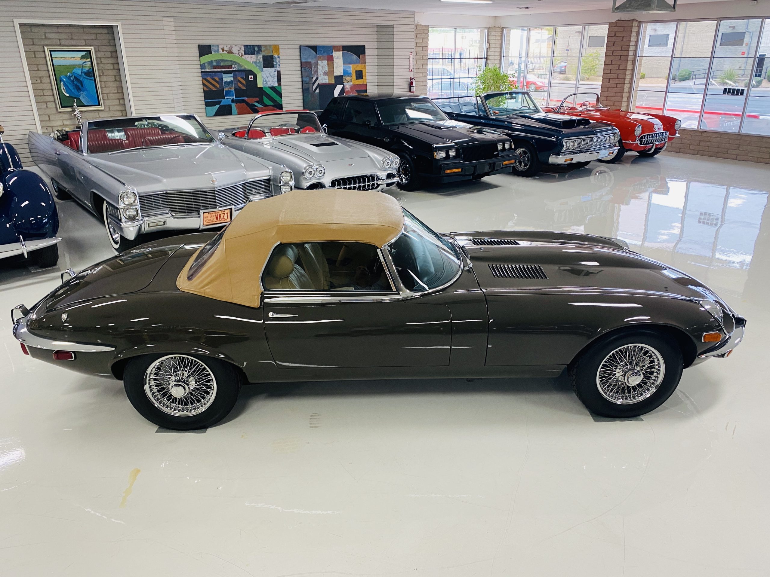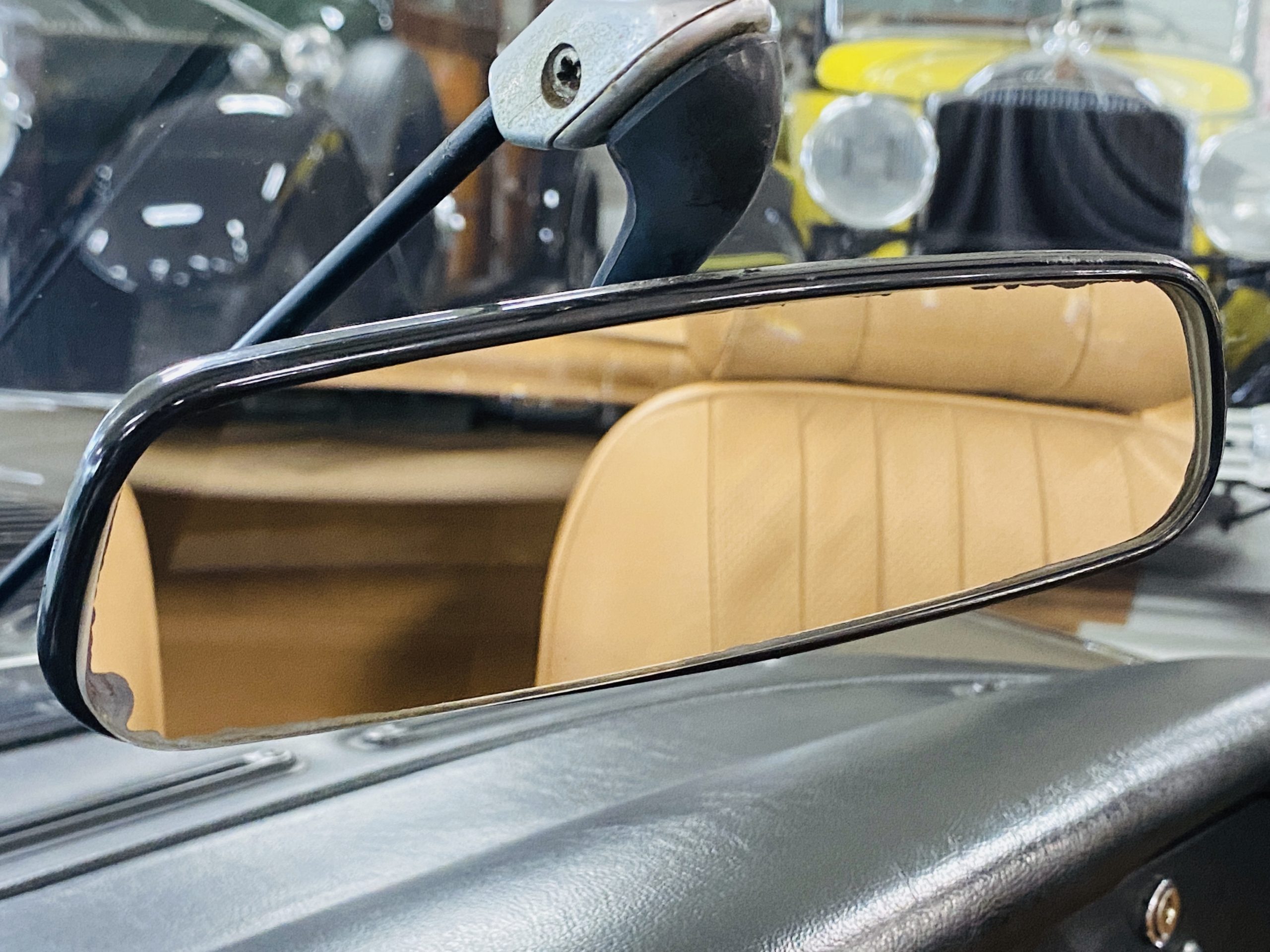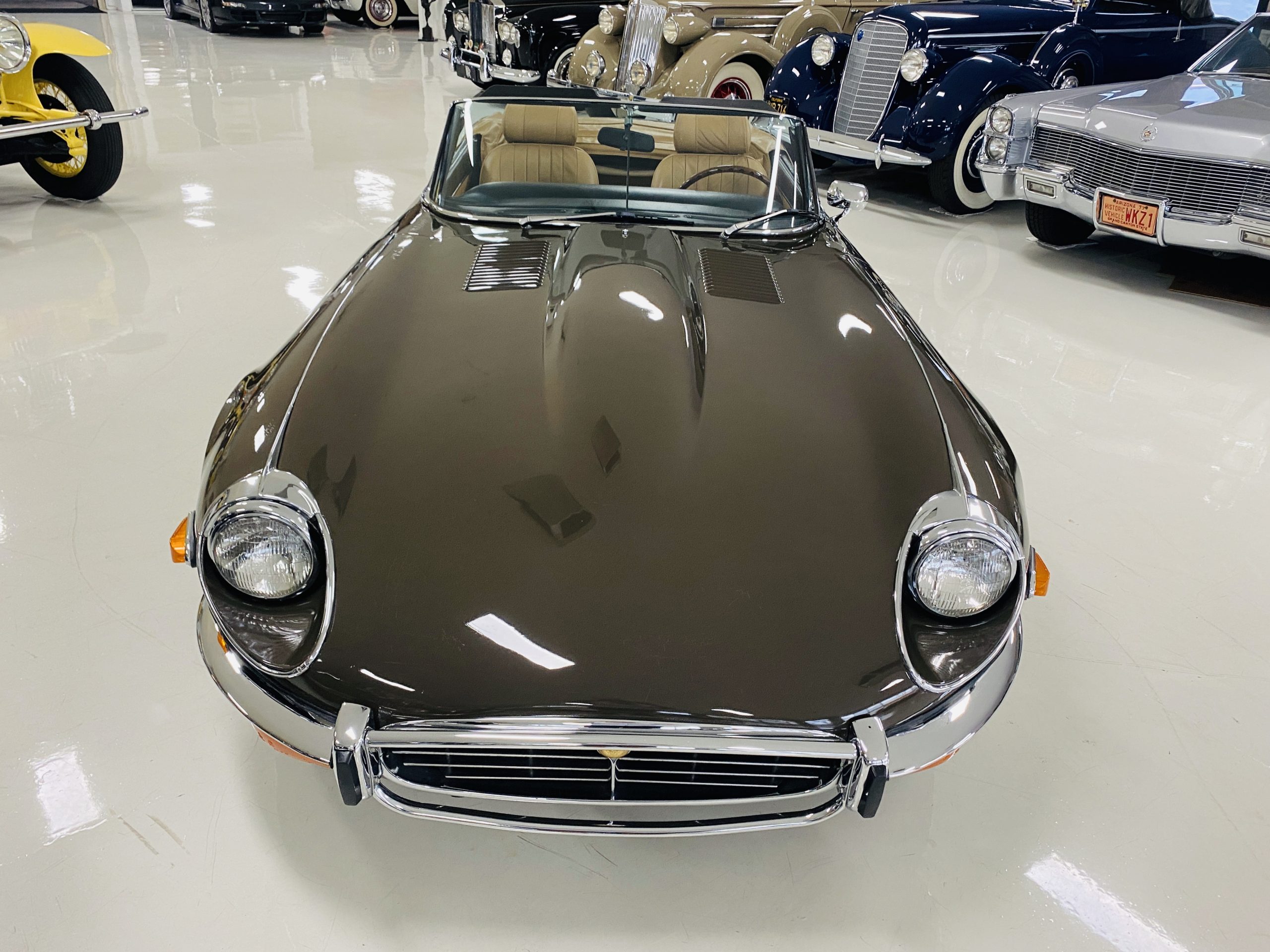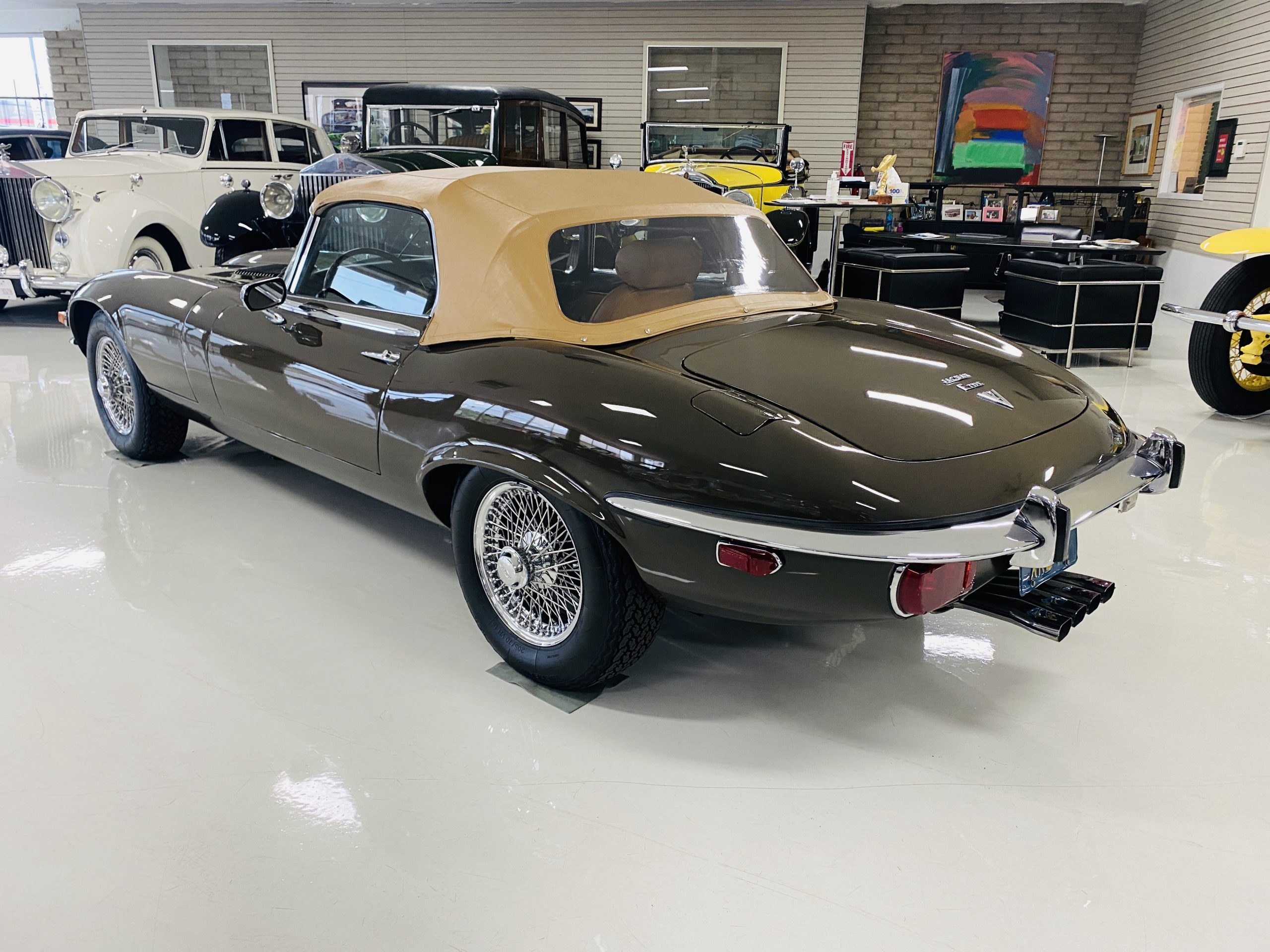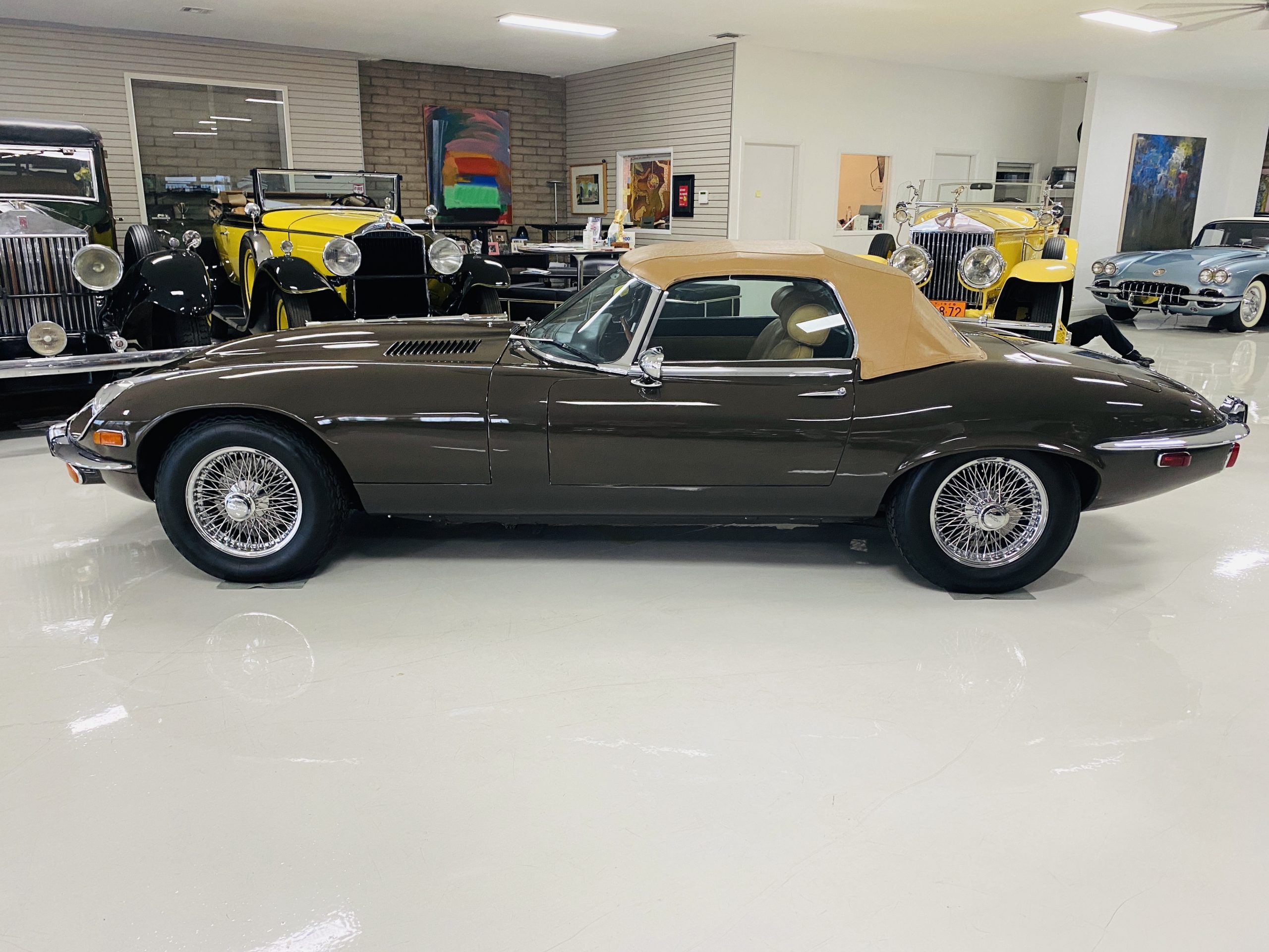 The Sable Brown livery is beautiful. Over the years much of the paint has been touched up leaving about one-quarter of the paint being original. There are several areas where there is normal lacquer cracking evident which we highlight in our video inspection. The overall presentation is stunning and, in our opinion, this would not be a car to repaint as it is 48 years old and still has a gorgeous luster and shine without any areas of paint rubbed through to primer. The paint is complimented with its all original chrome that is as-new. From the sculpted headlight surrounds, the “small” bumpers, the wire wheels to the door handles, the chrome on this Jaguar is in showroom condition. The convertible top was replaced 18 years ago, but is in absolutely excellent condition.