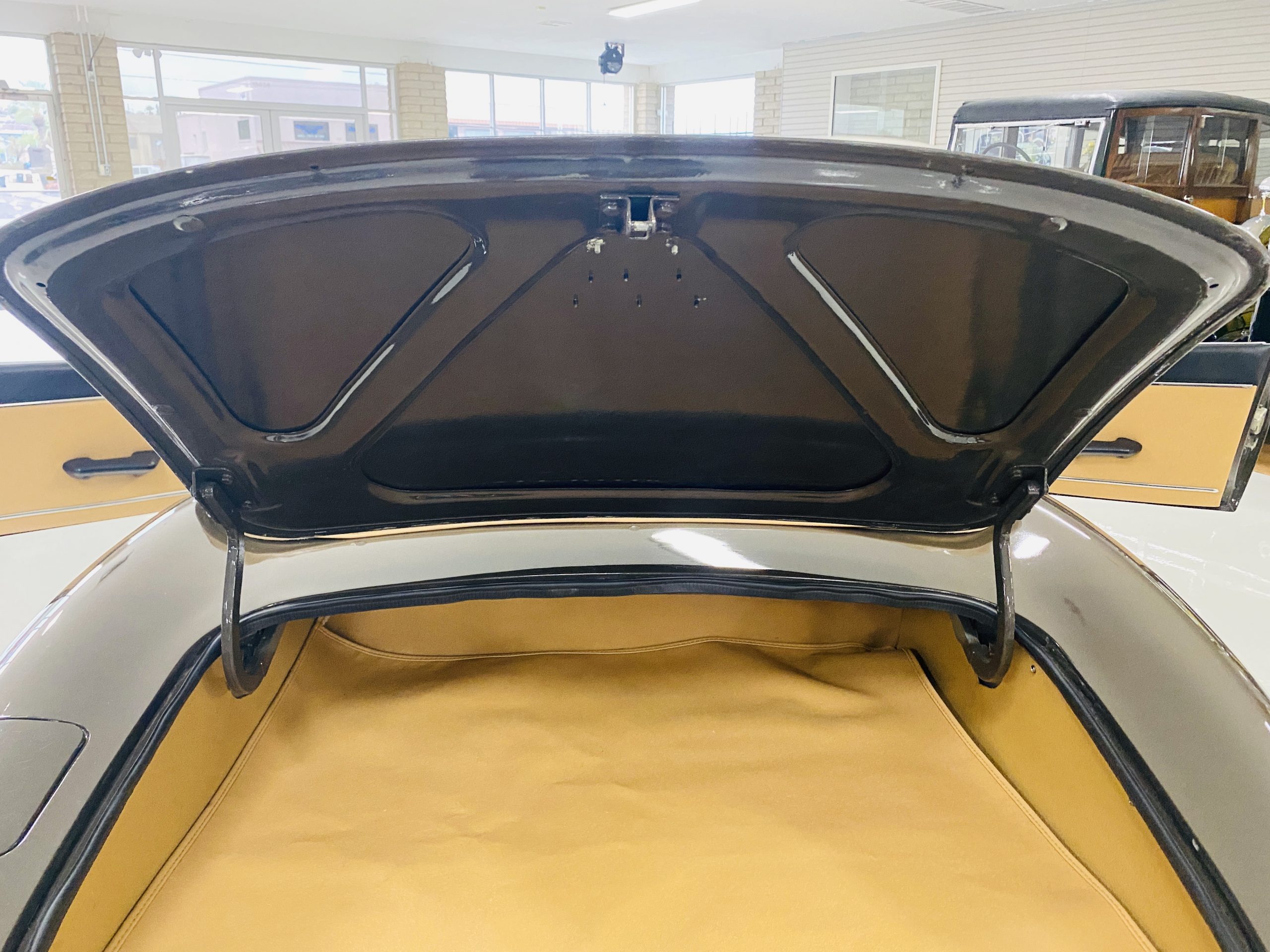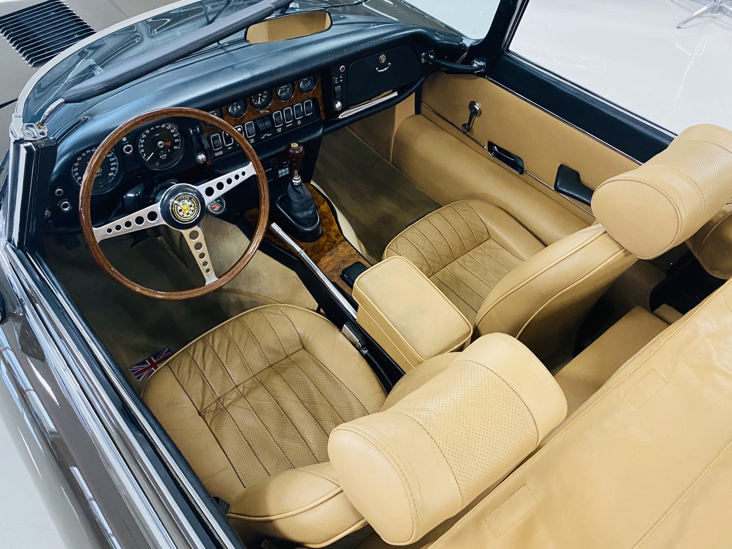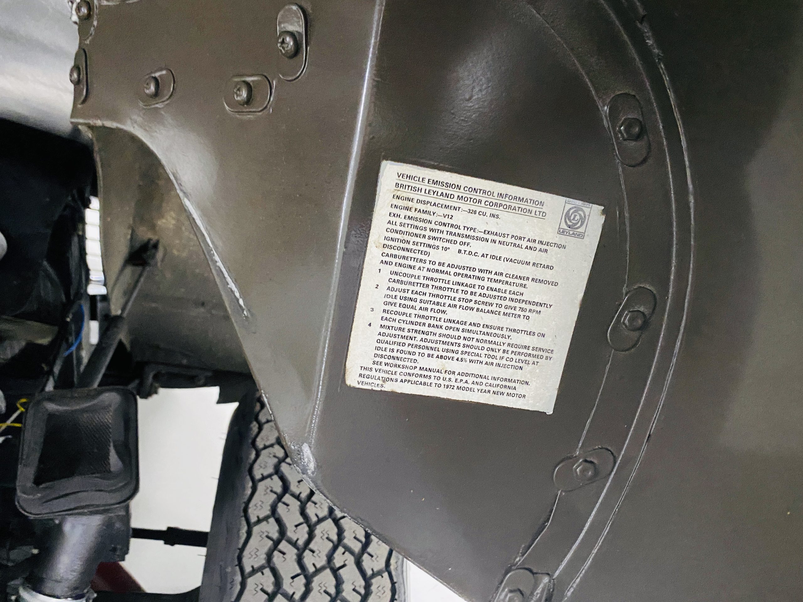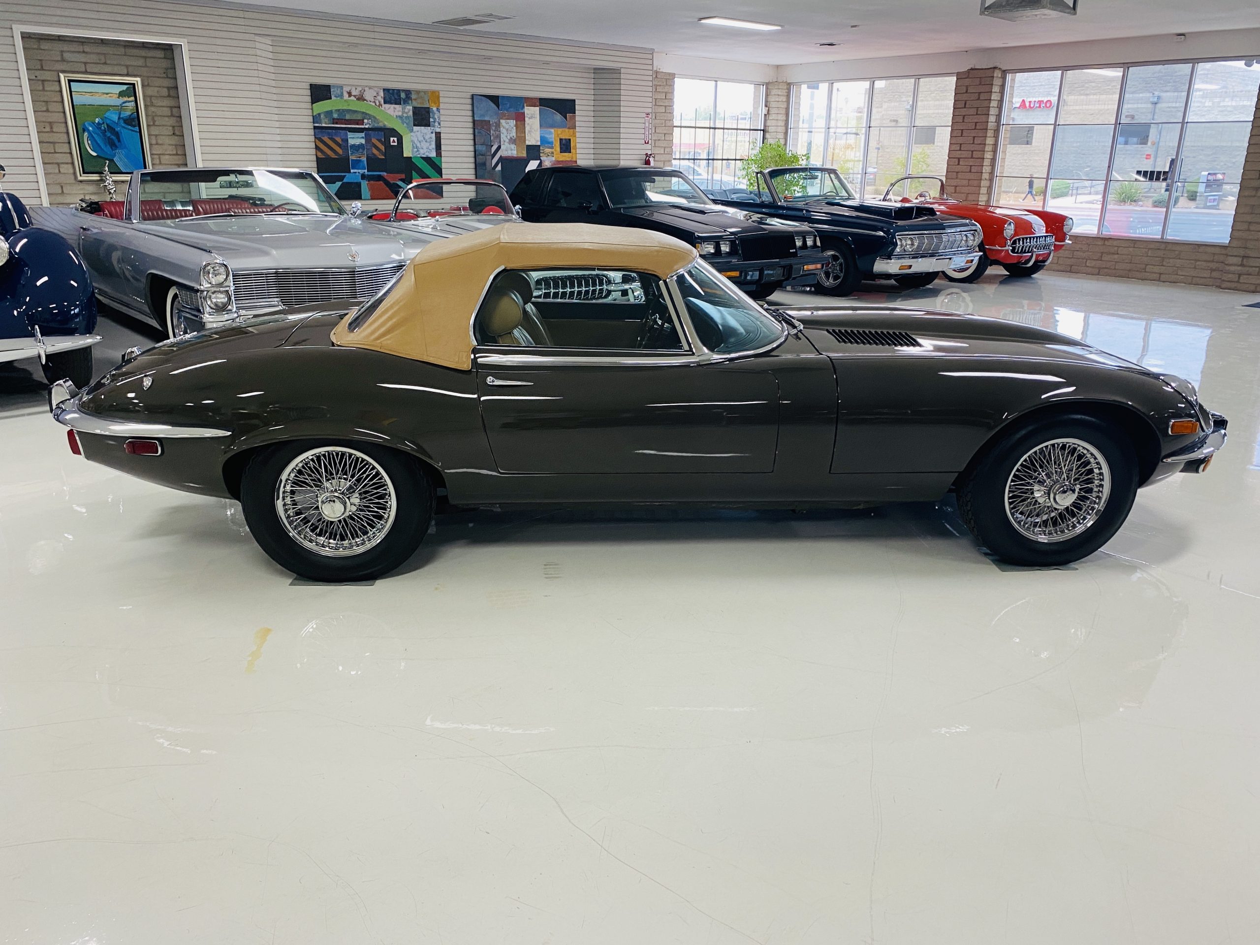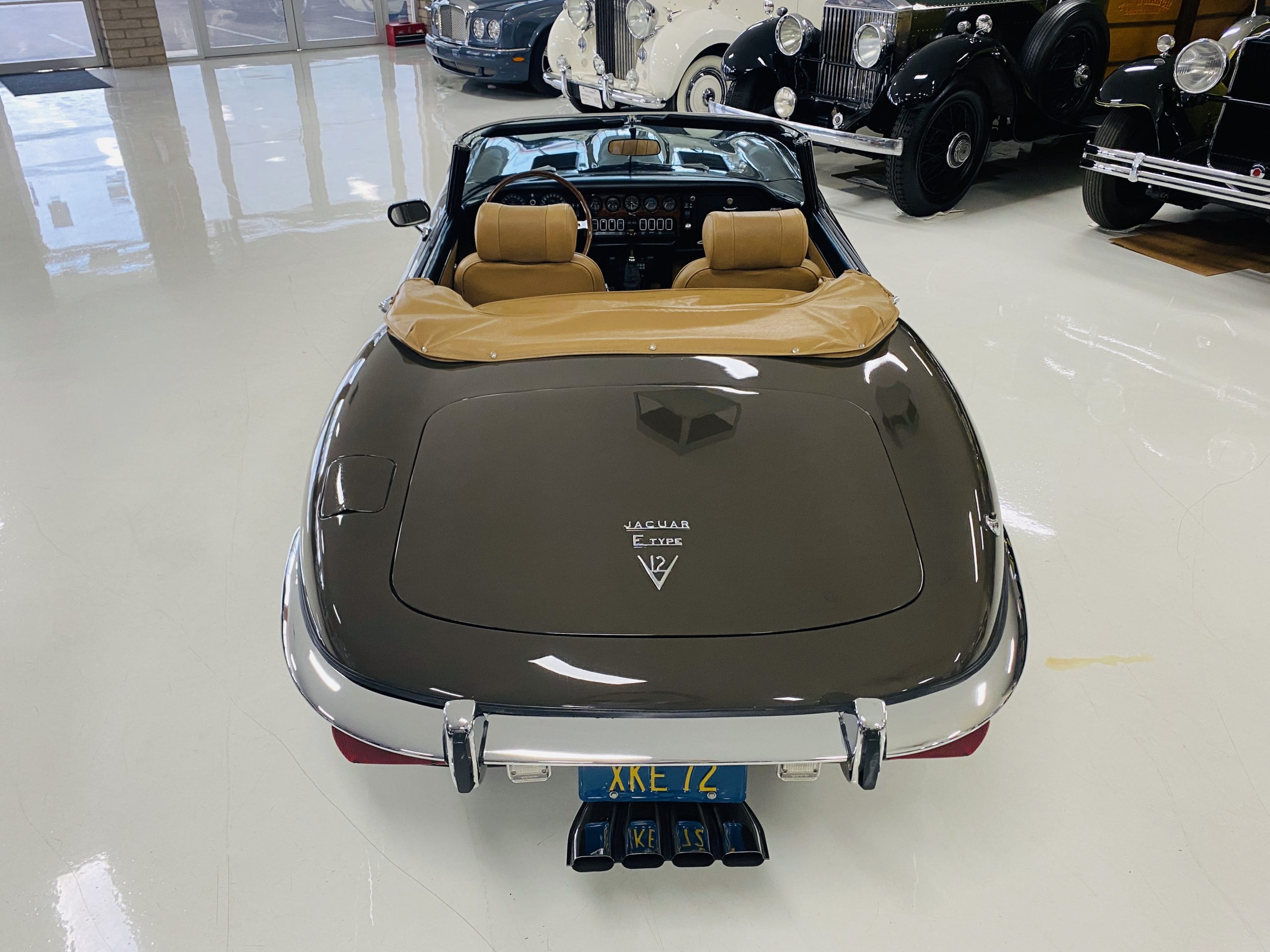 The Sable Brown livery is beautiful. Over the years much of the paint has been touched up leaving about one-quarter of the paint being original. There are several areas where there is normal lacquer cracking evident which we highlight in our video inspection. The overall presentation is stunning and, in our opinion, this would not be a car to repaint as it is 48 years old and still has a gorgeous luster and shine without any areas of paint rubbed through to primer. The paint is complimented with its all original chrome that is as-new. From the sculpted headlight surrounds, the “small” bumpers, the wire wheels to the door handles, the chrome on this Jaguar is in showroom condition. The convertible top was replaced 18 years ago, but is in absolutely excellent condition.