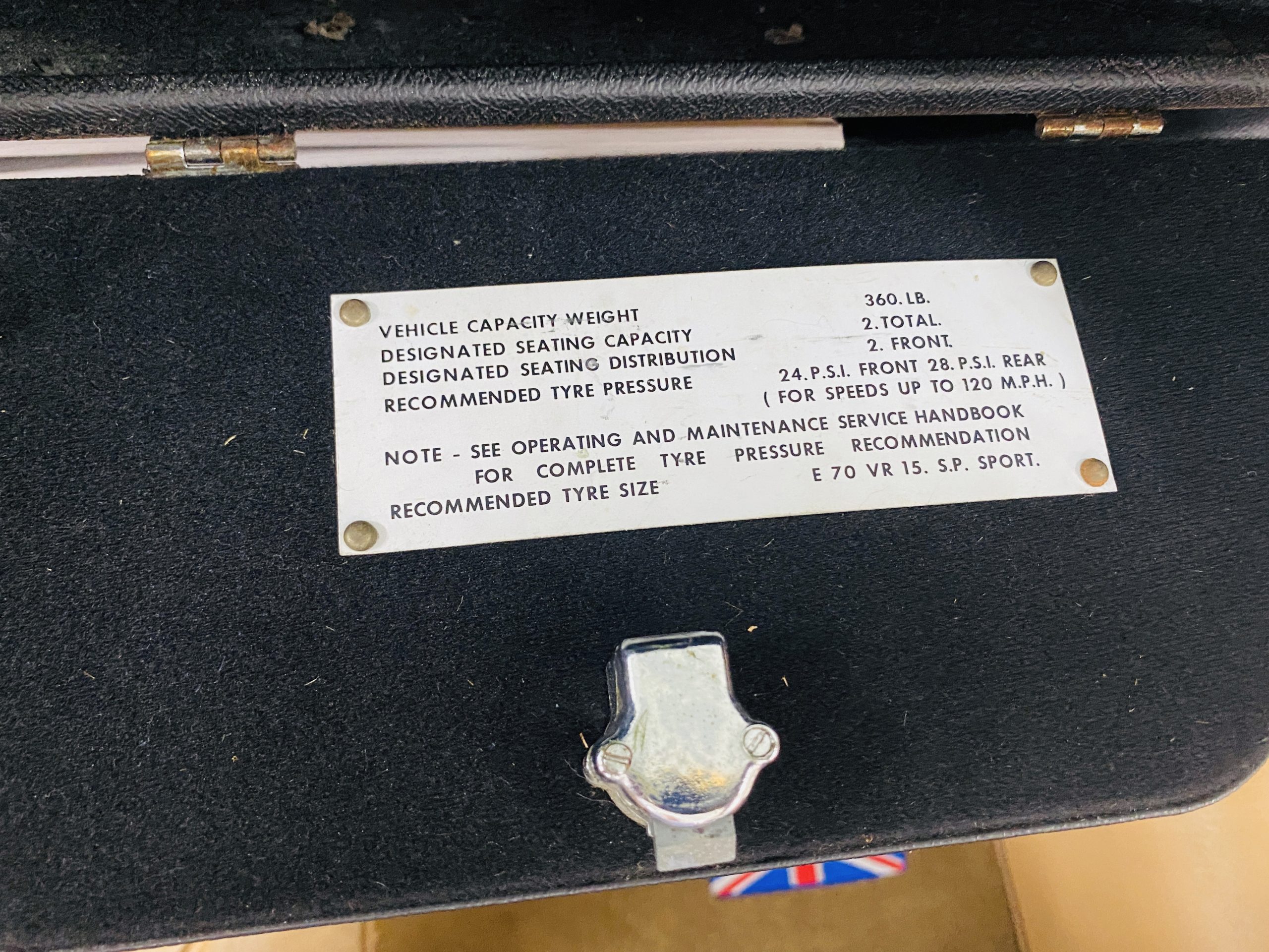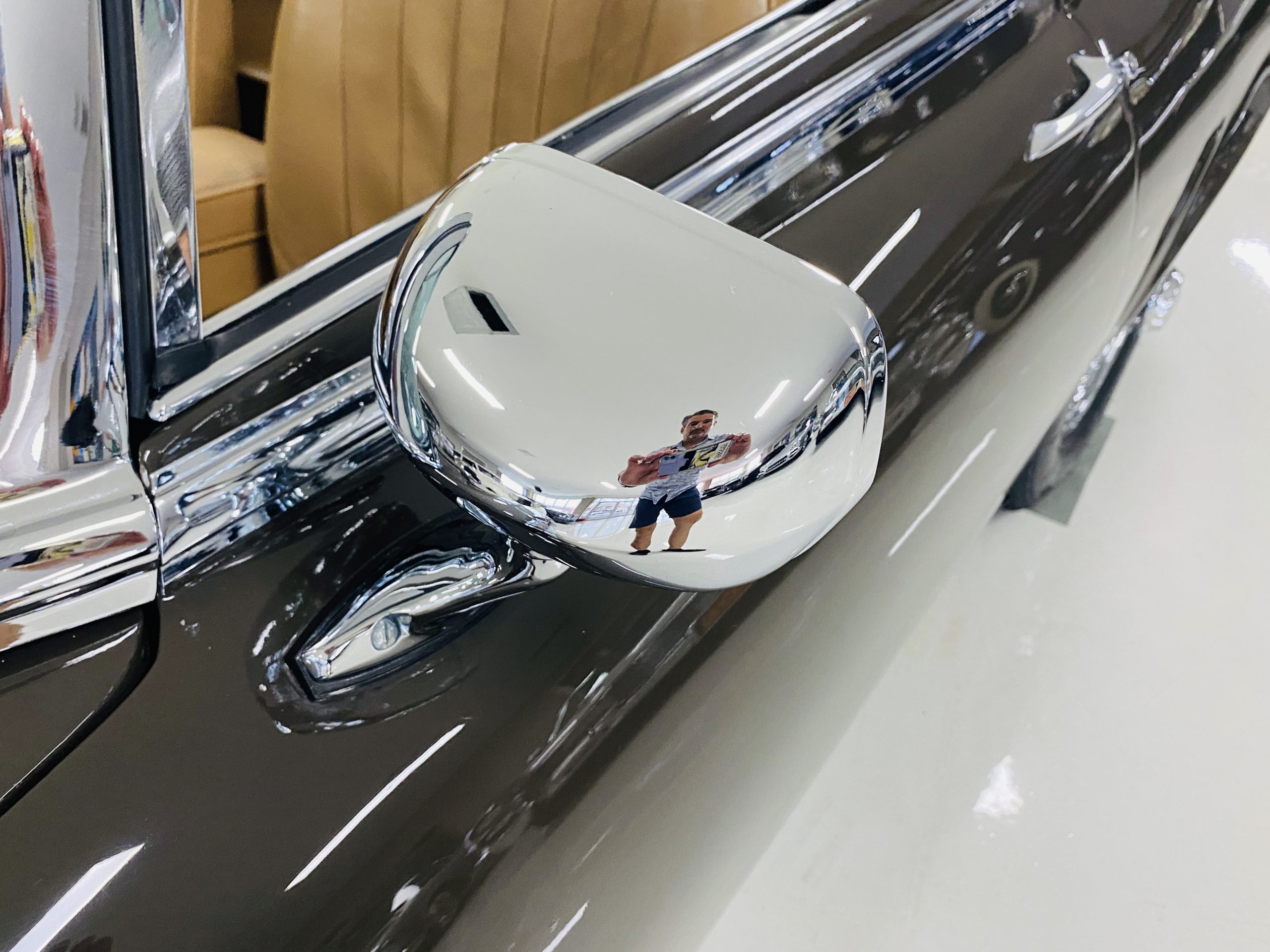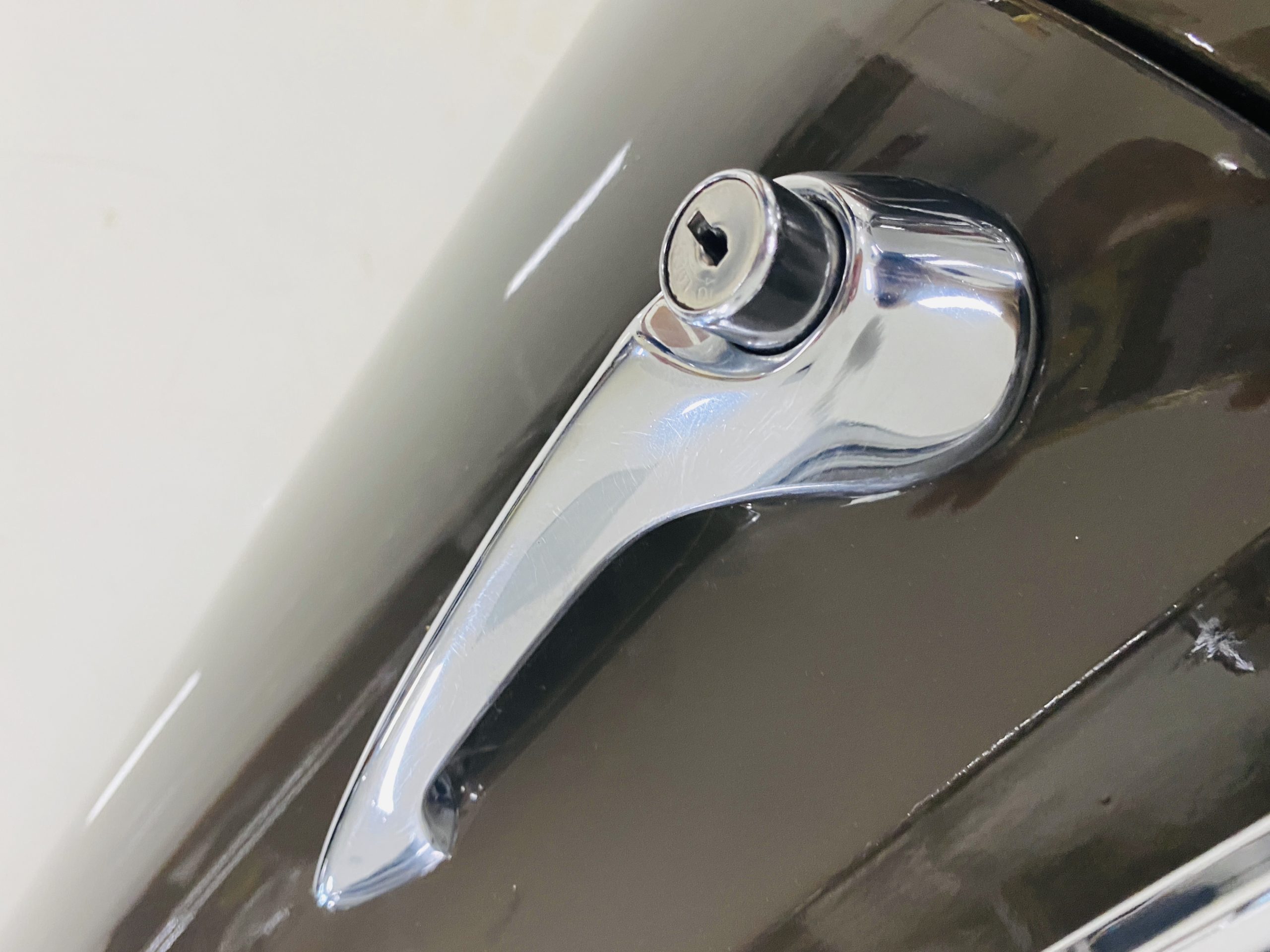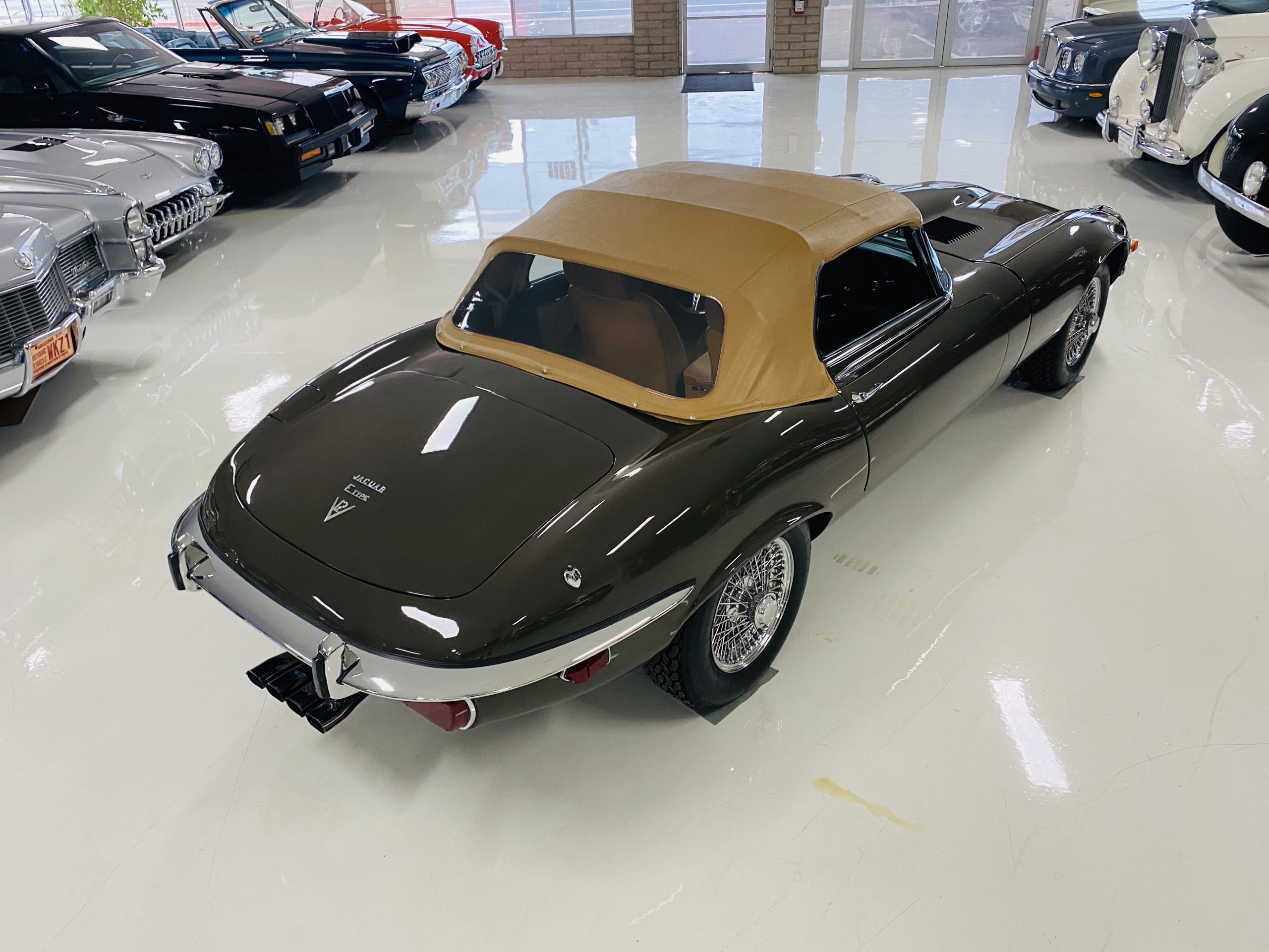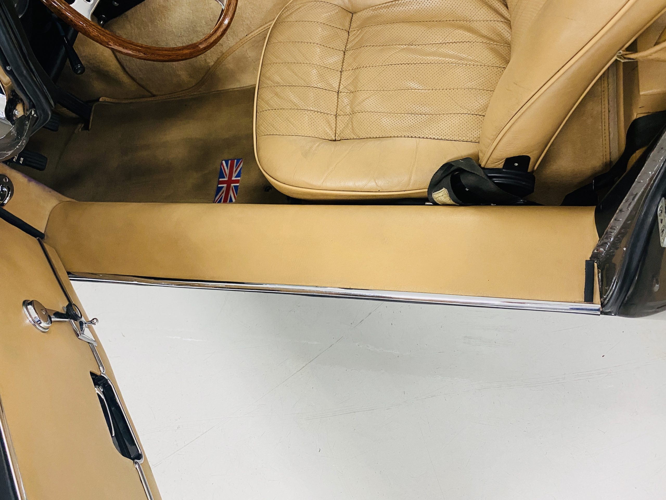 The Sable Brown livery is beautiful. Over the years much of the paint has been touched up leaving about one-quarter of the paint being original. There are several areas where there is normal lacquer cracking evident which we highlight in our video inspection. The overall presentation is stunning and, in our opinion, this would not be a car to repaint as it is 48 years old and still has a gorgeous luster and shine without any areas of paint rubbed through to primer. The paint is complimented with its all original chrome that is as-new. From the sculpted headlight surrounds, the “small” bumpers, the wire wheels to the door handles, the chrome on this Jaguar is in showroom condition. The convertible top was replaced 18 years ago, but is in absolutely excellent condition.