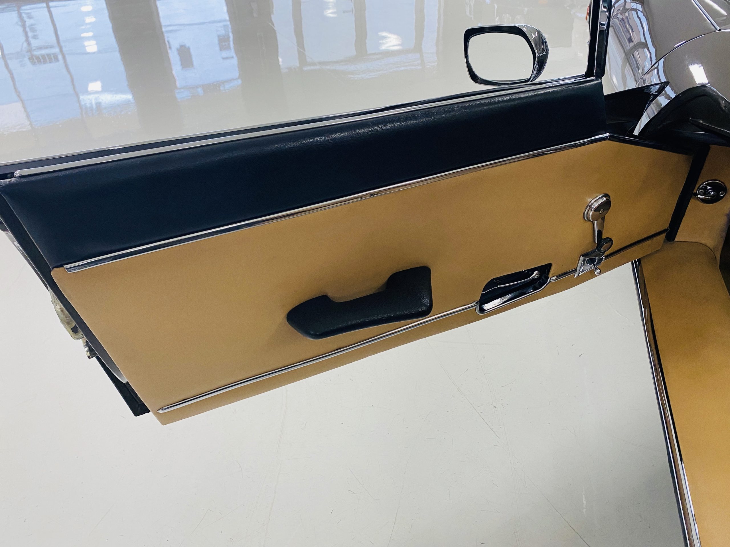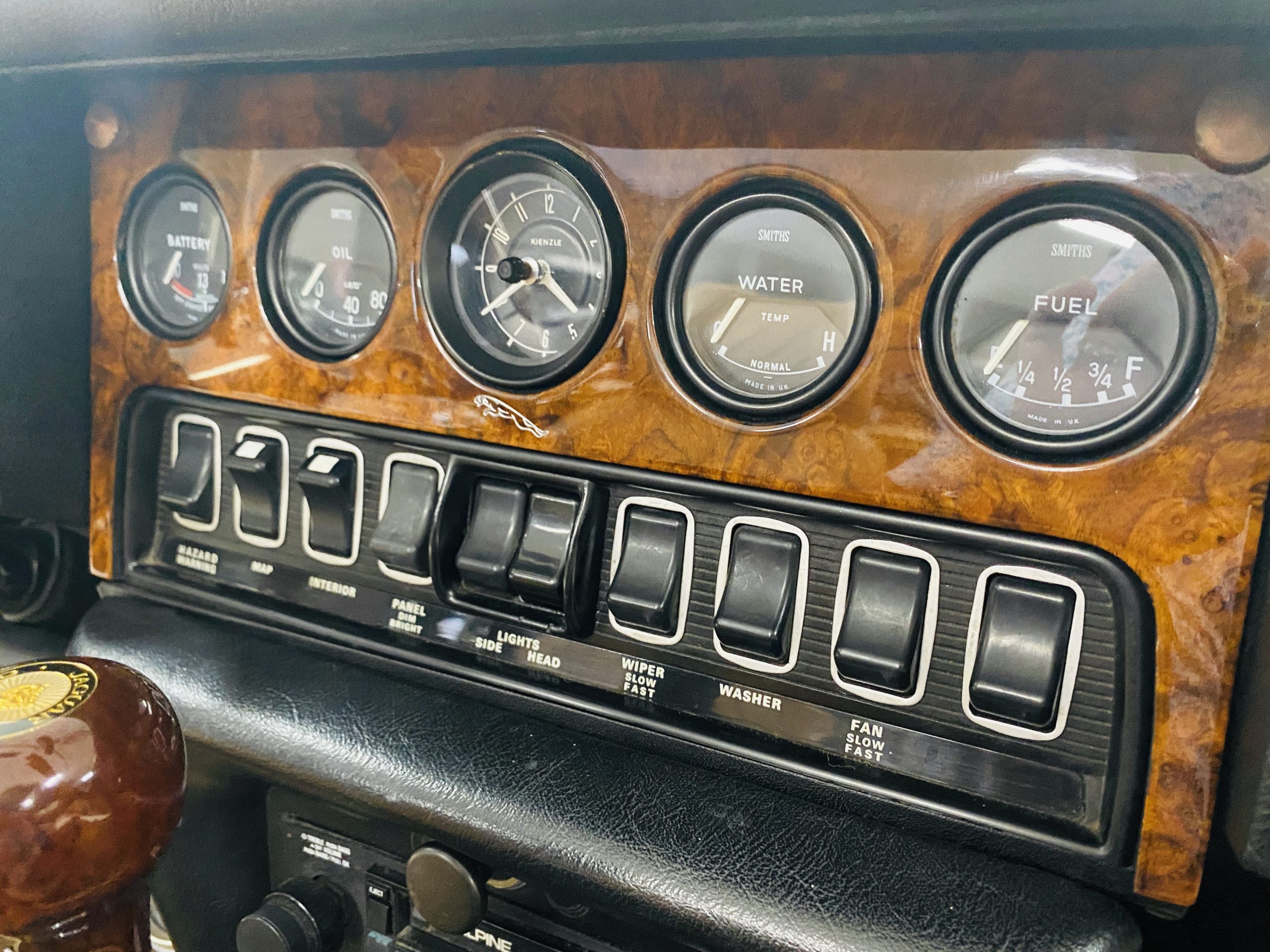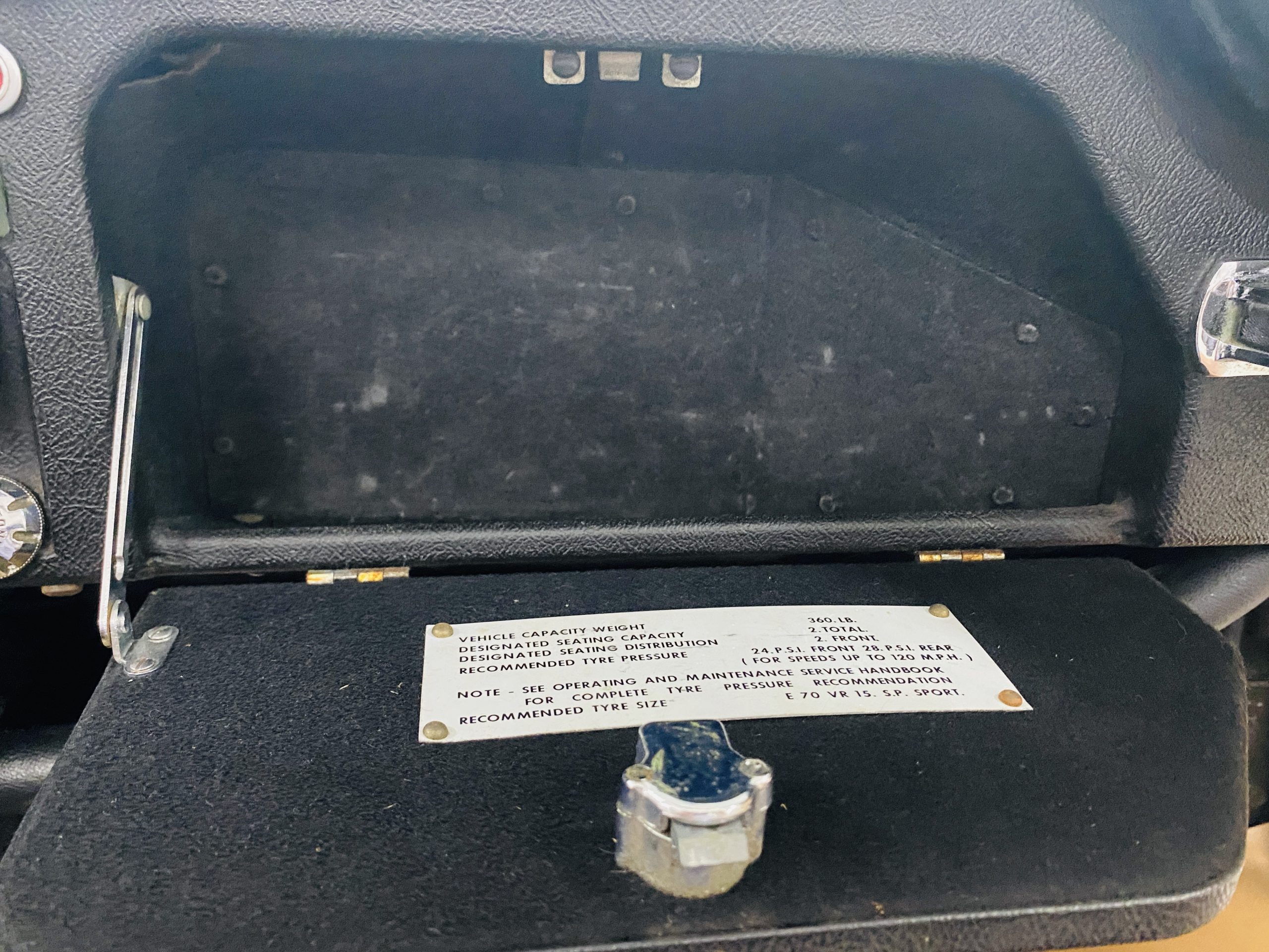 The iconic dashboard is all original and without cracks or markings. The instruments are as-new and there is nearly no wear on any of the switches and levers. Beautiful burl walnut veneers have been added to the center dash and console and provide a very elegant finish to the interior. The burlwood compliment the new replacement wood rimmed steering wheel and shift knob.
