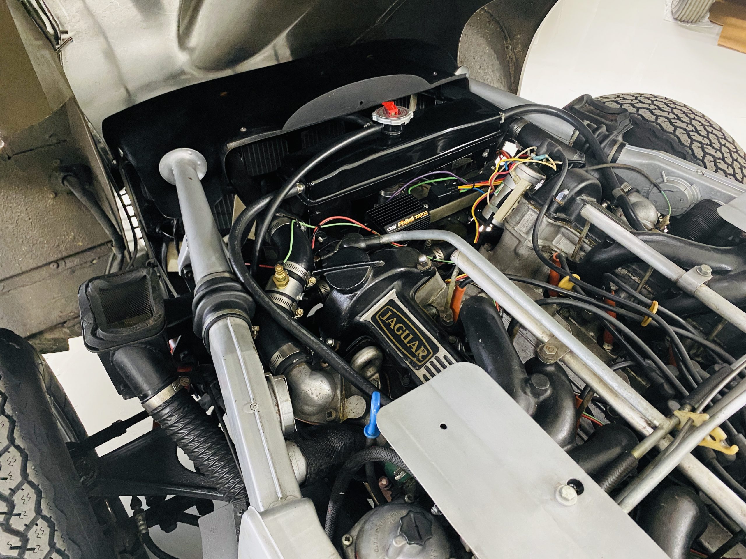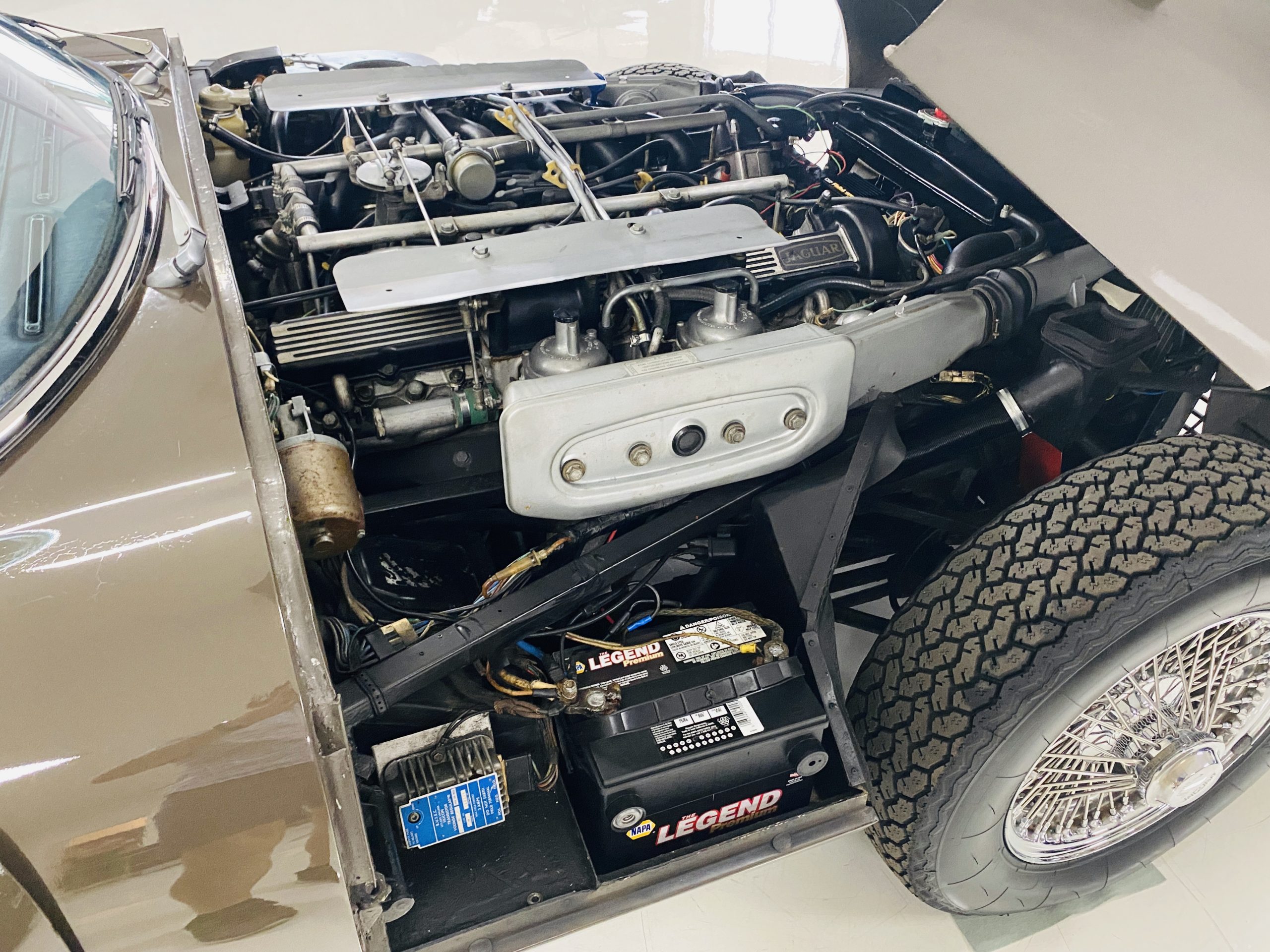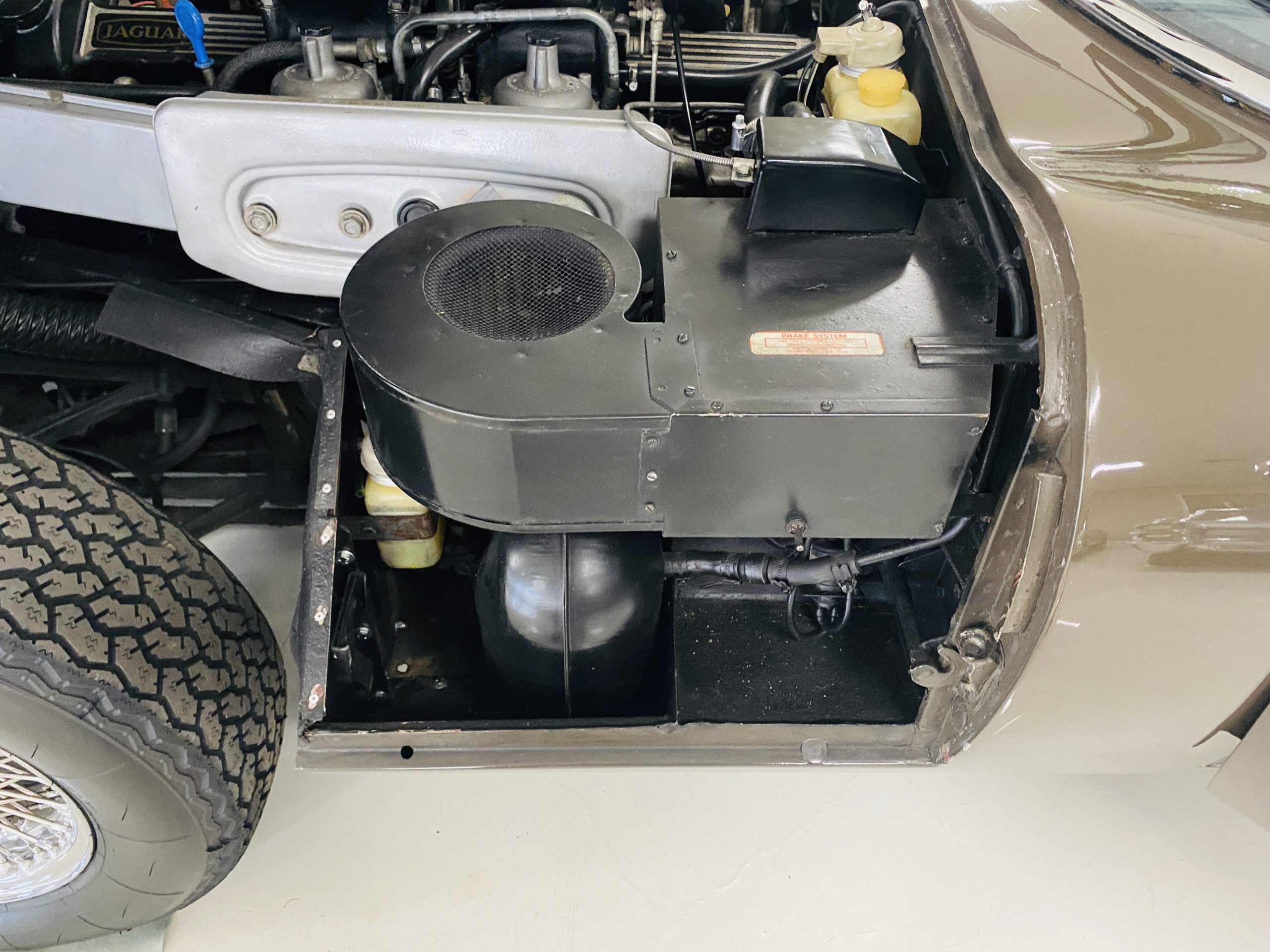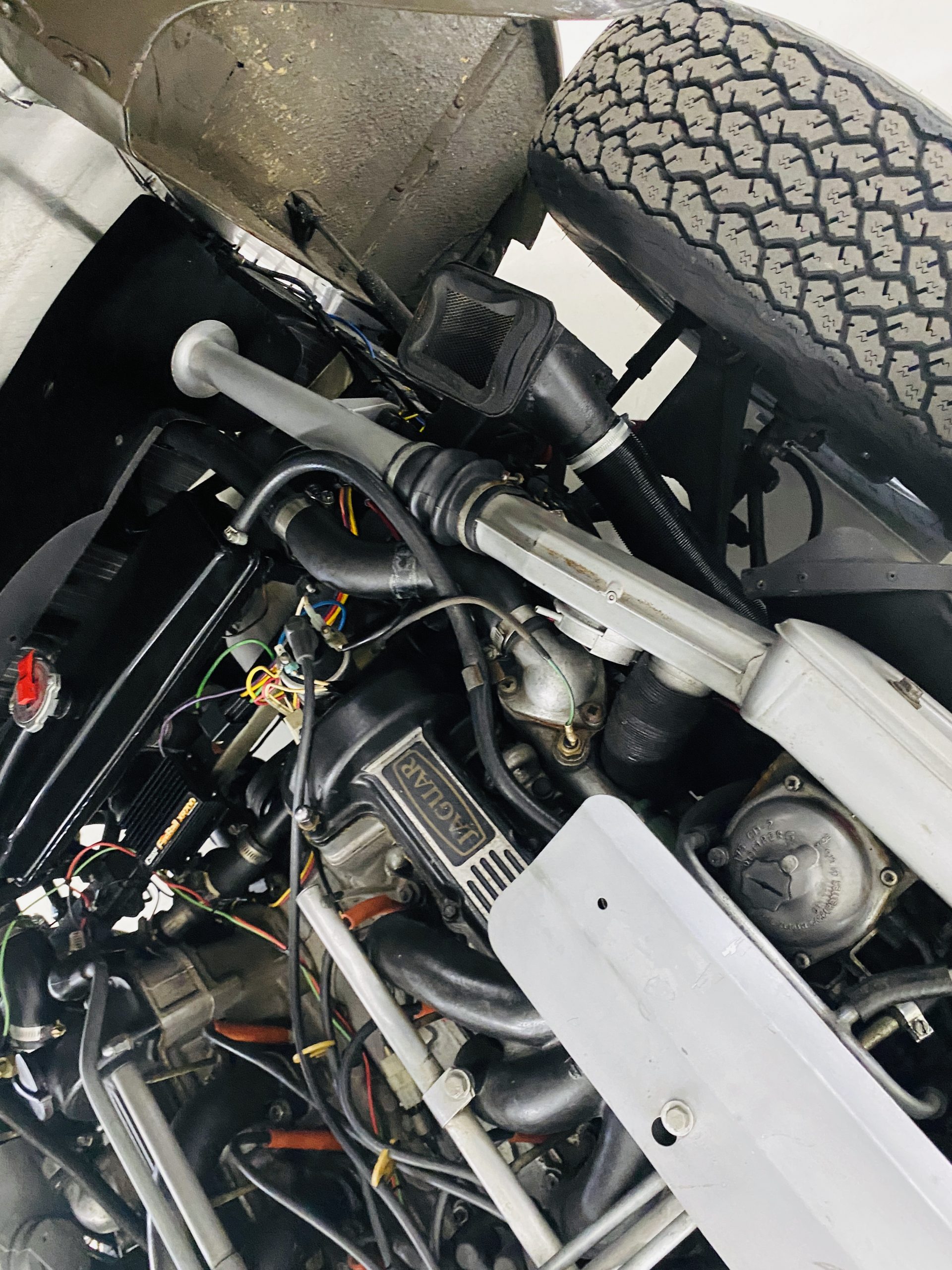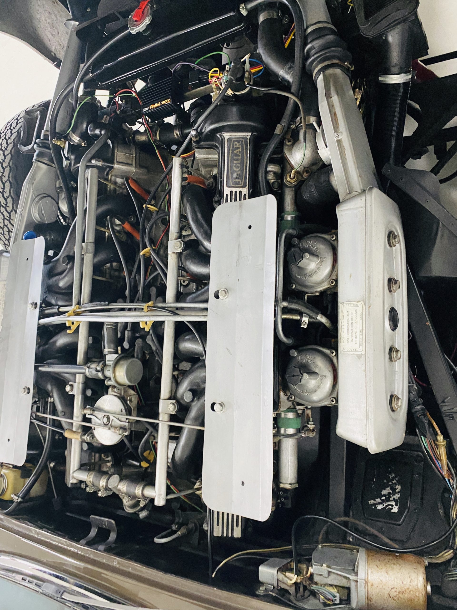 Mechanically, the 312 HP V-12 is powerful and smooth. Our inspection shows that the smog pump has long been bypassed by removing the drive belt. Everything works as it should. All gauges, lights and accessories work well. Scott also had the ignition converted to electronic ignition to provide better performance and reliability. The E-Type presents strong oil pressure and runs at appropriate engine temperatures.
