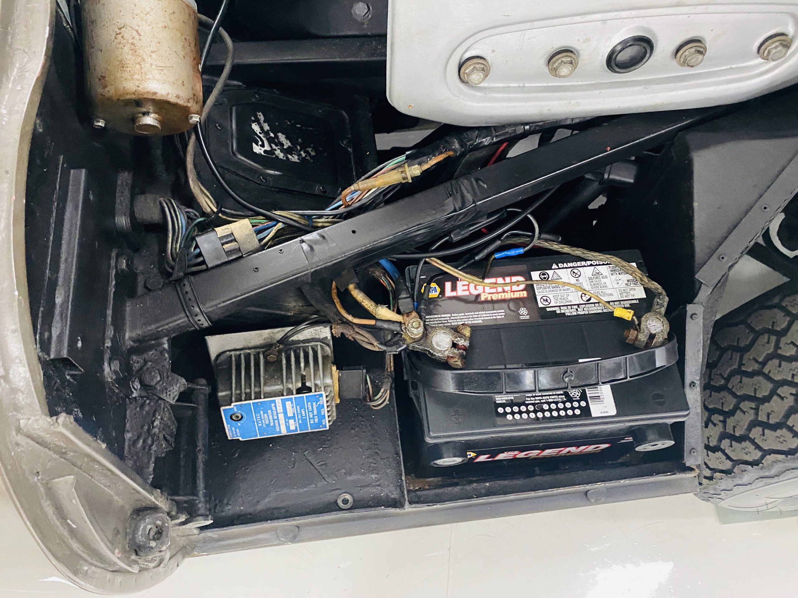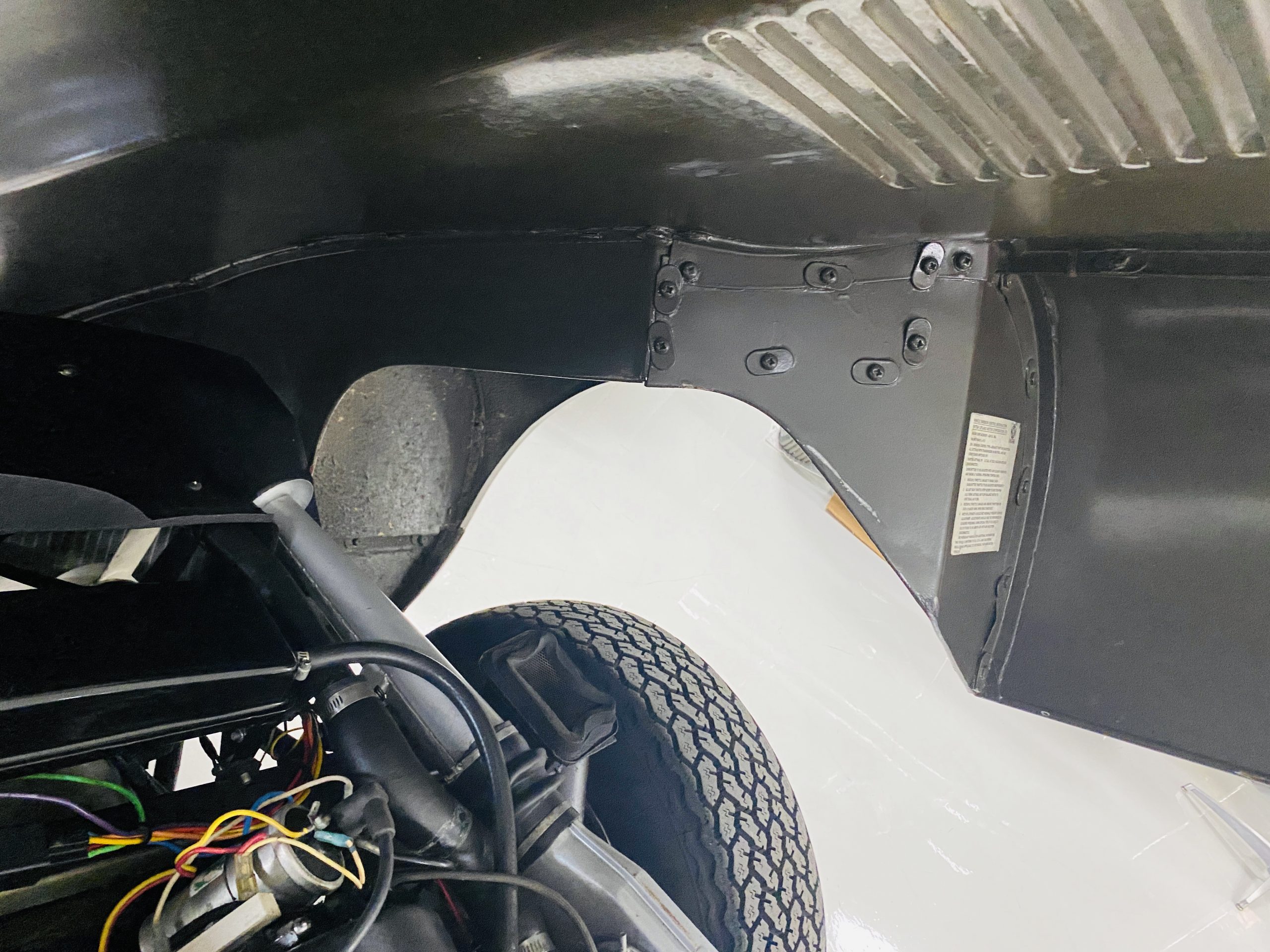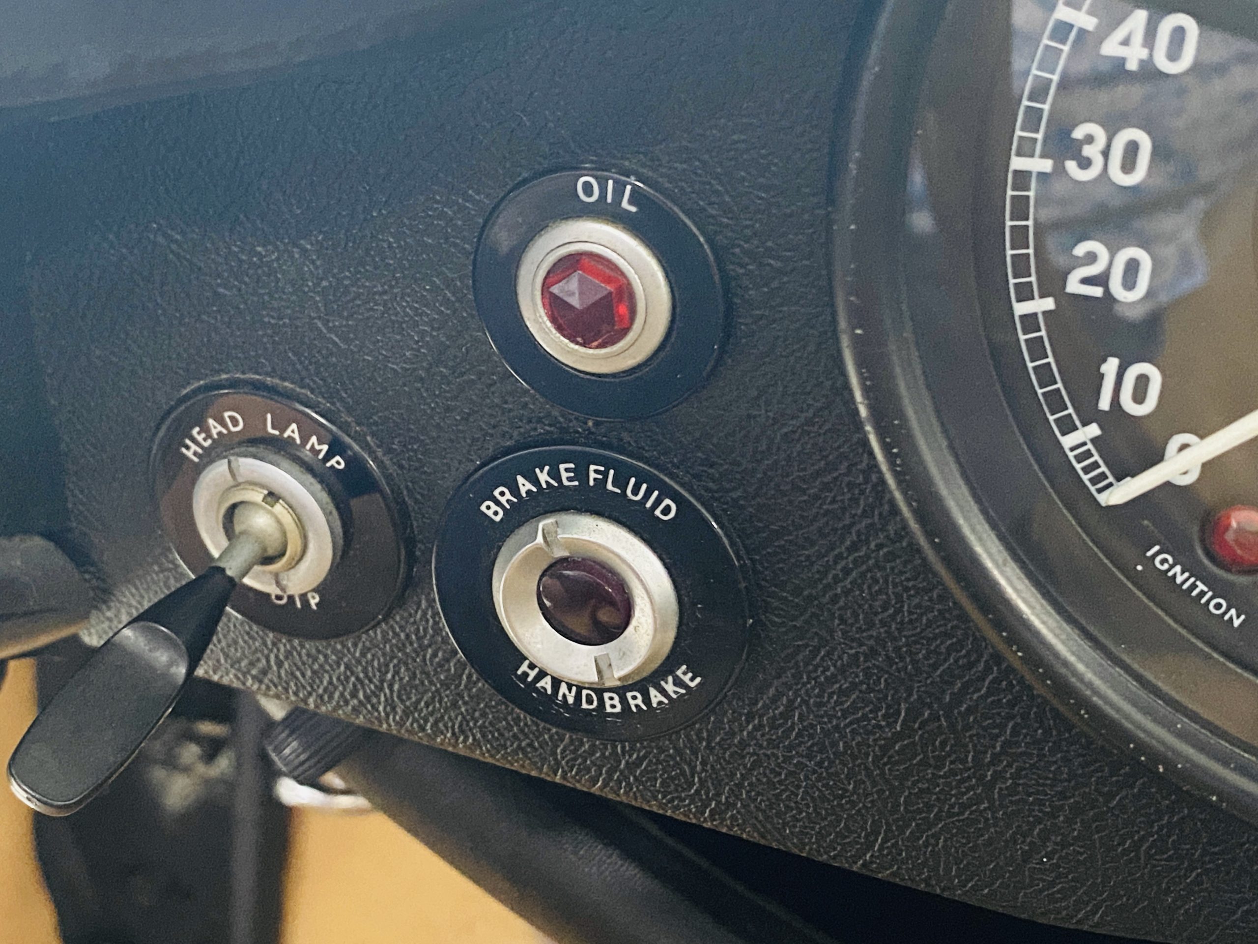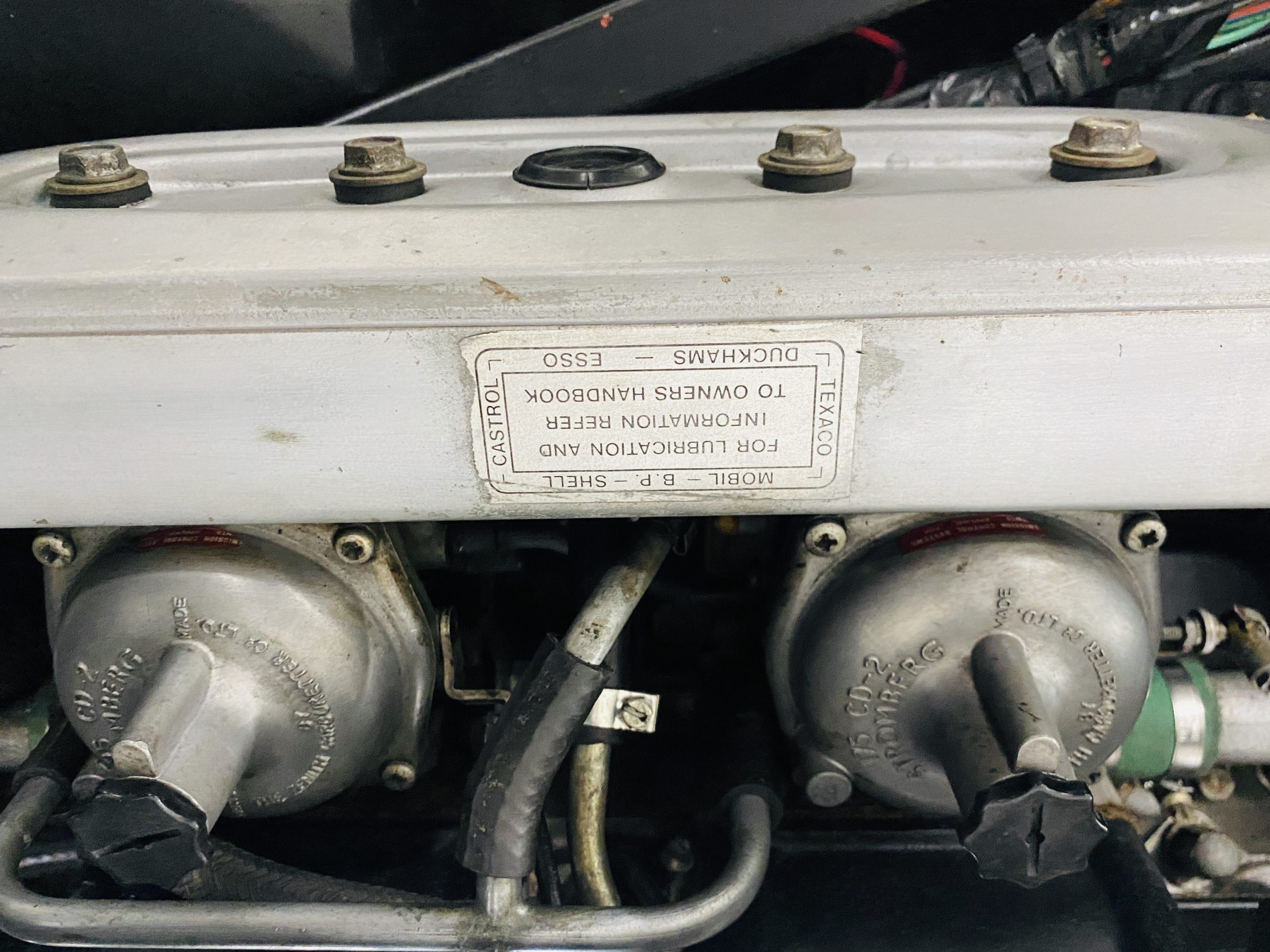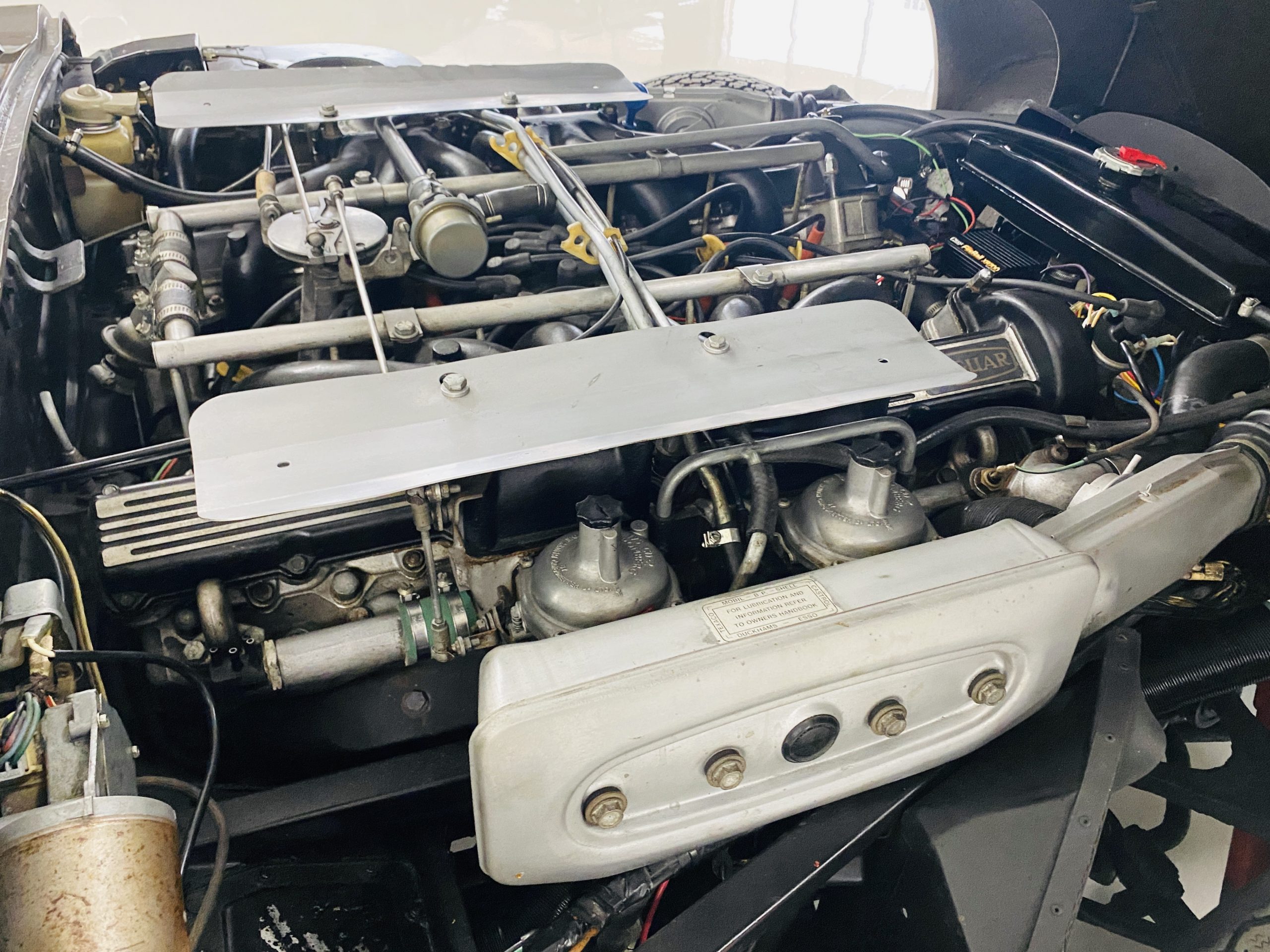 Mechanically, the 312 HP V-12 is powerful and smooth. Our inspection shows that the smog pump has long been bypassed by removing the drive belt. Everything works as it should. All gauges, lights and accessories work well. Scott also had the ignition converted to electronic ignition to provide better performance and reliability. The E-Type presents strong oil pressure and runs at appropriate engine temperatures.