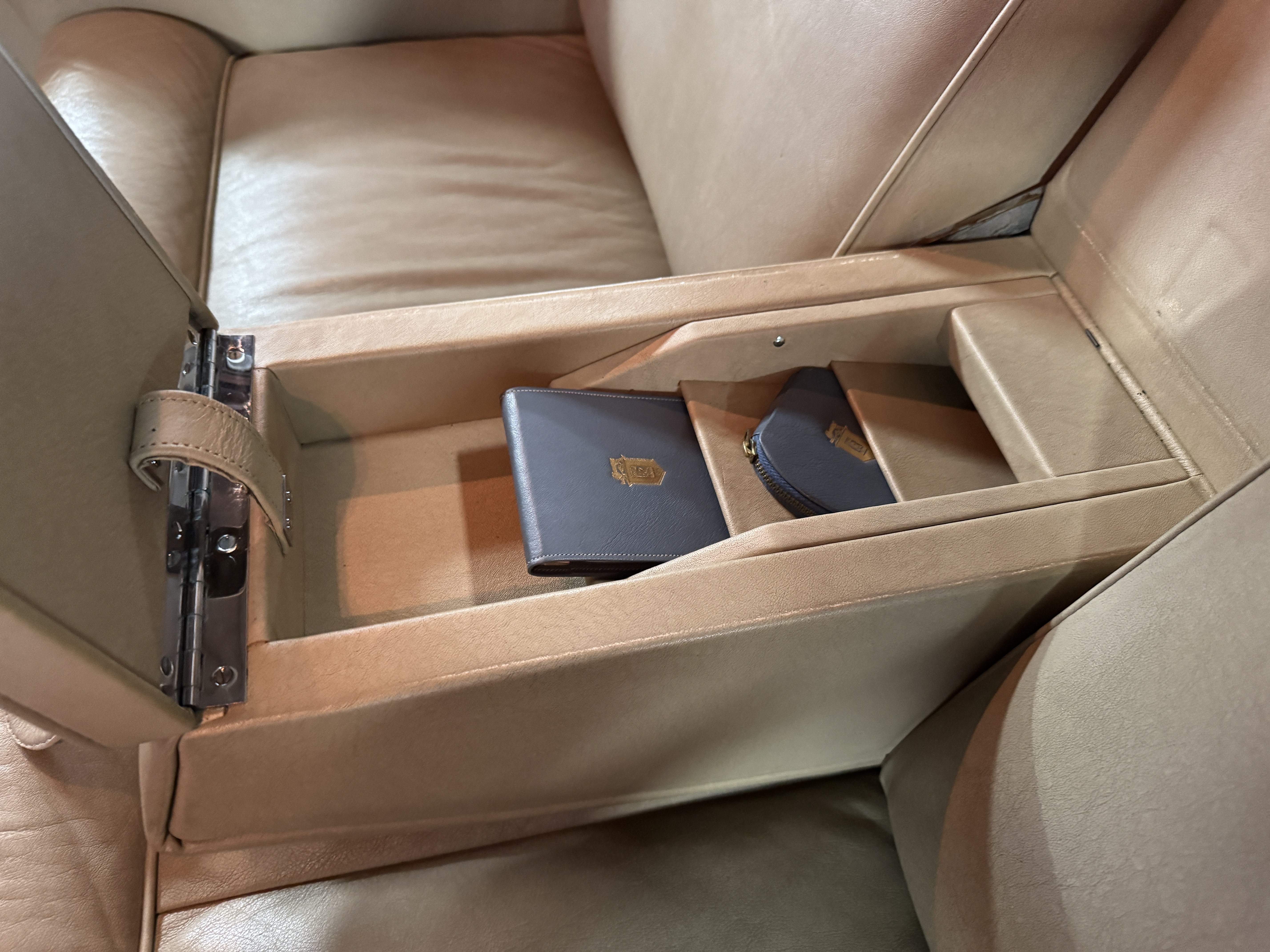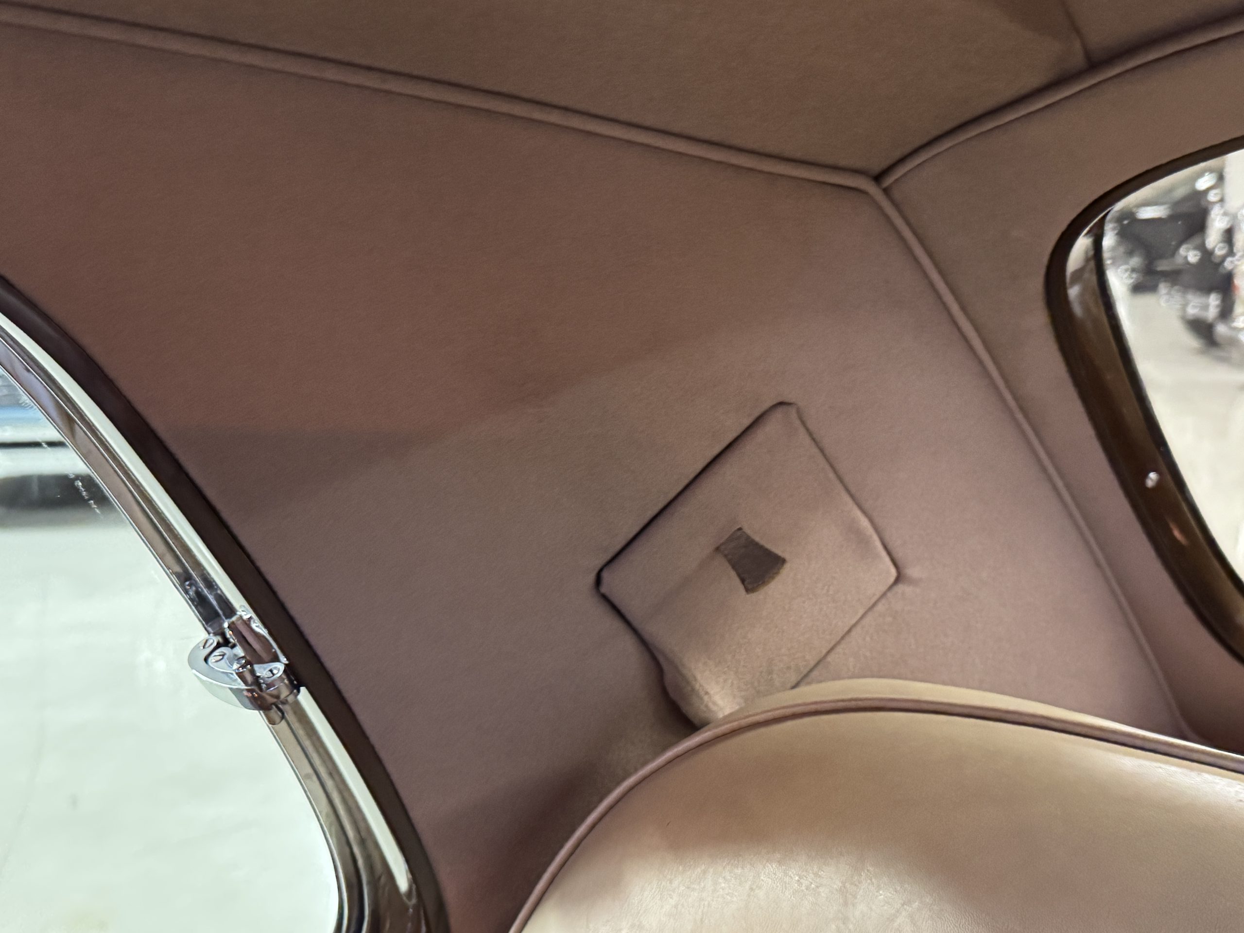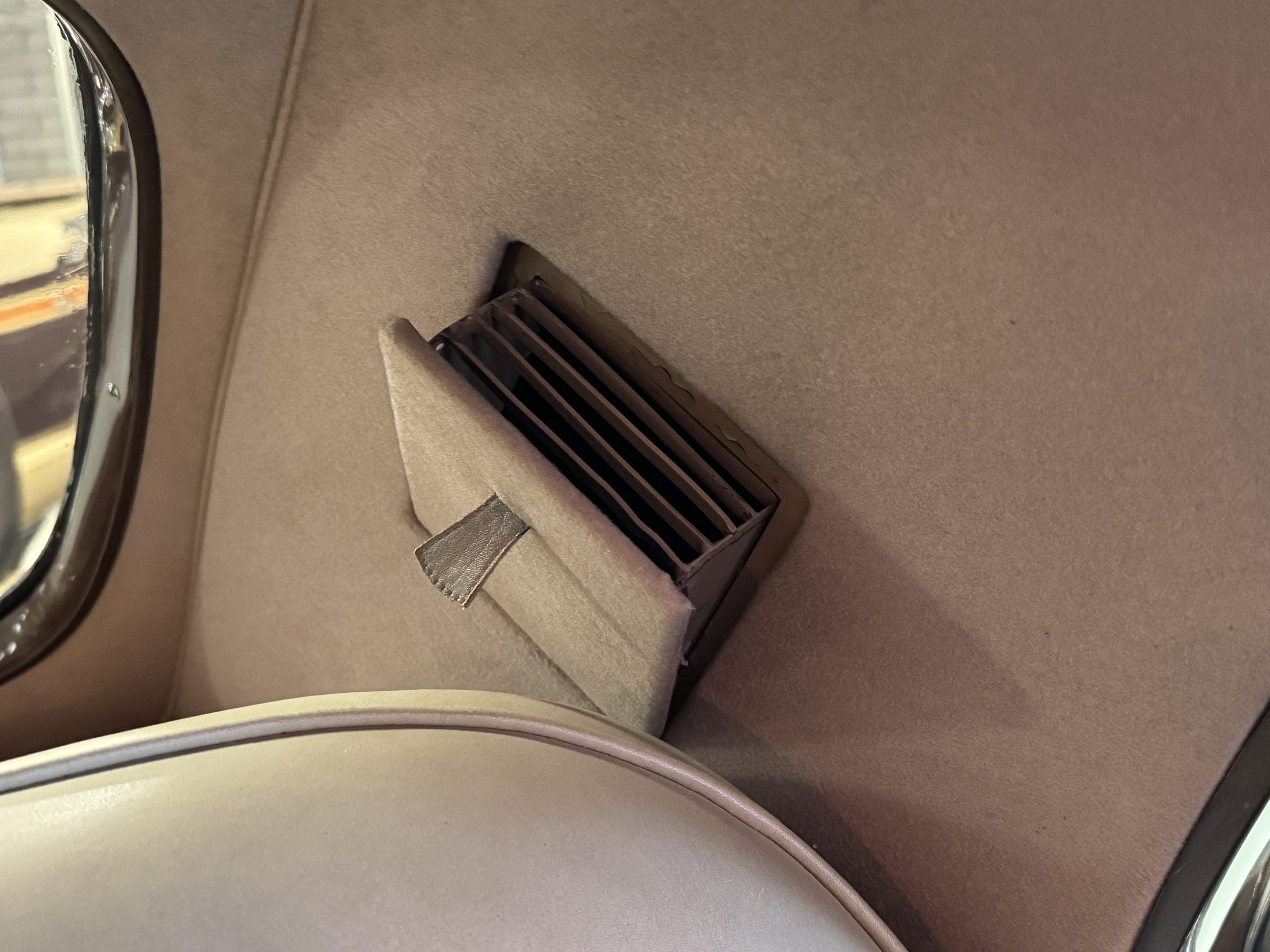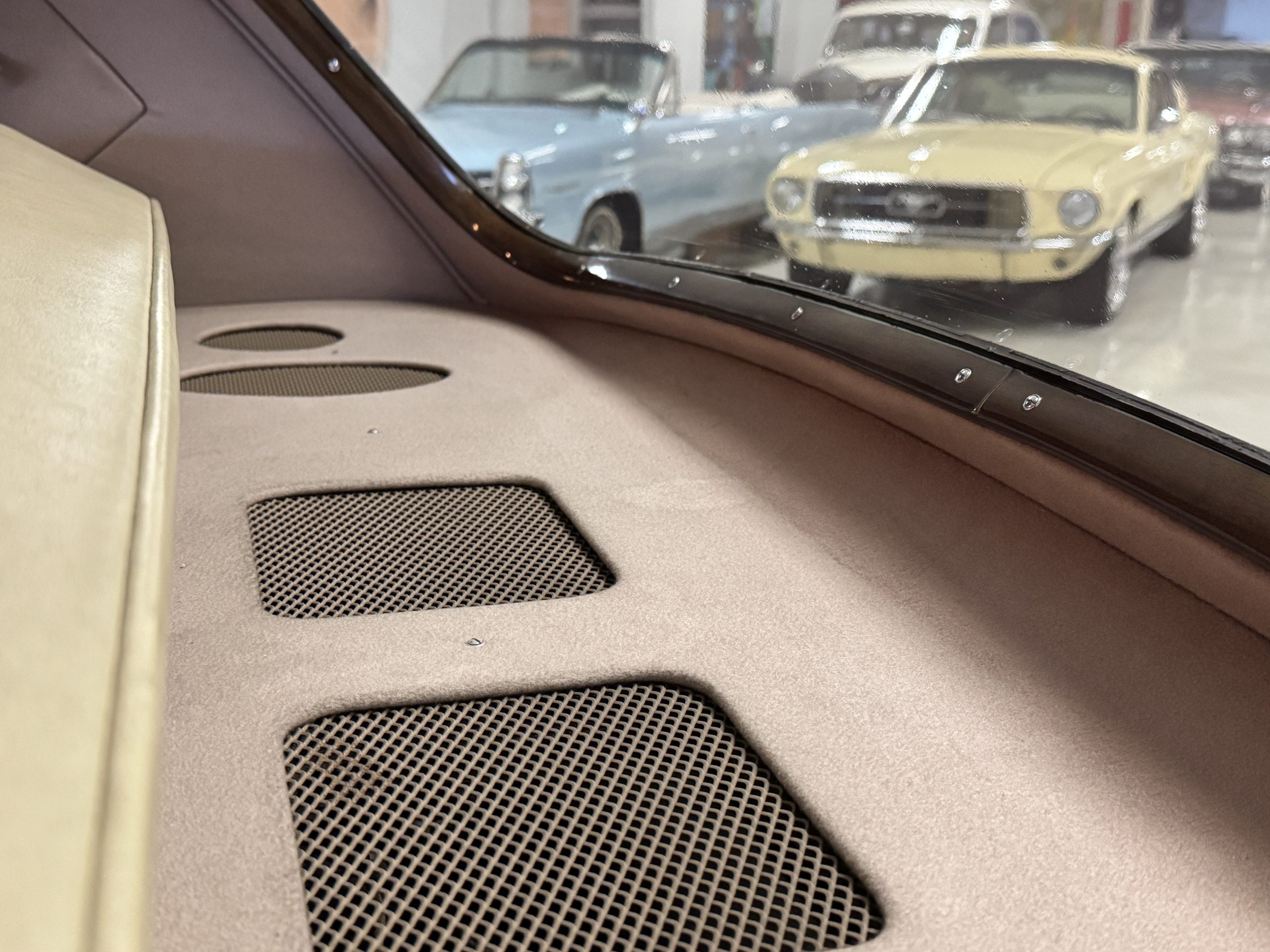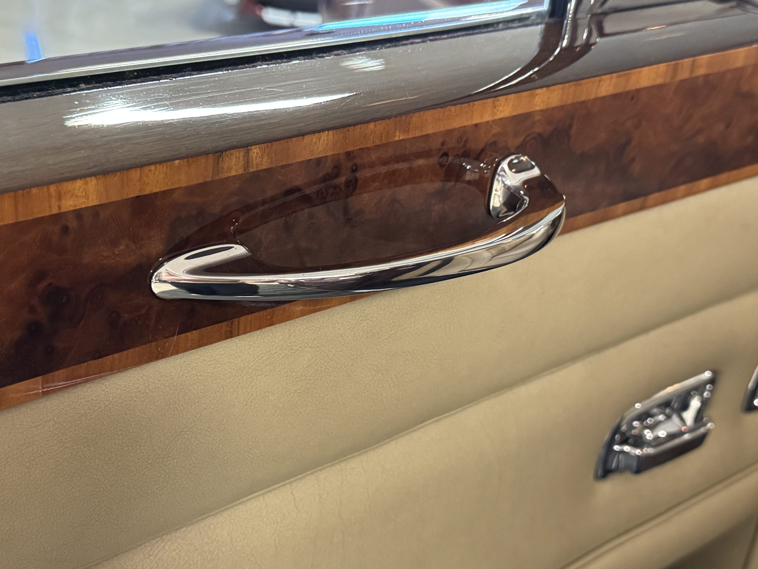 The interior is completely original and is in excellent condition, befitting a 12,000-mile original example that has been well maintained in important collections. The rear passenger compartment features its gorgeous original Beige leather (Trim Code VM3234) and its original Beige Wilton wool carpeting (TRB.66). The leather is soft and supple and shows little wear. The beautiful burl walnut is featured throughout the interior and is cross-banded veneers and is in excellent original condition.