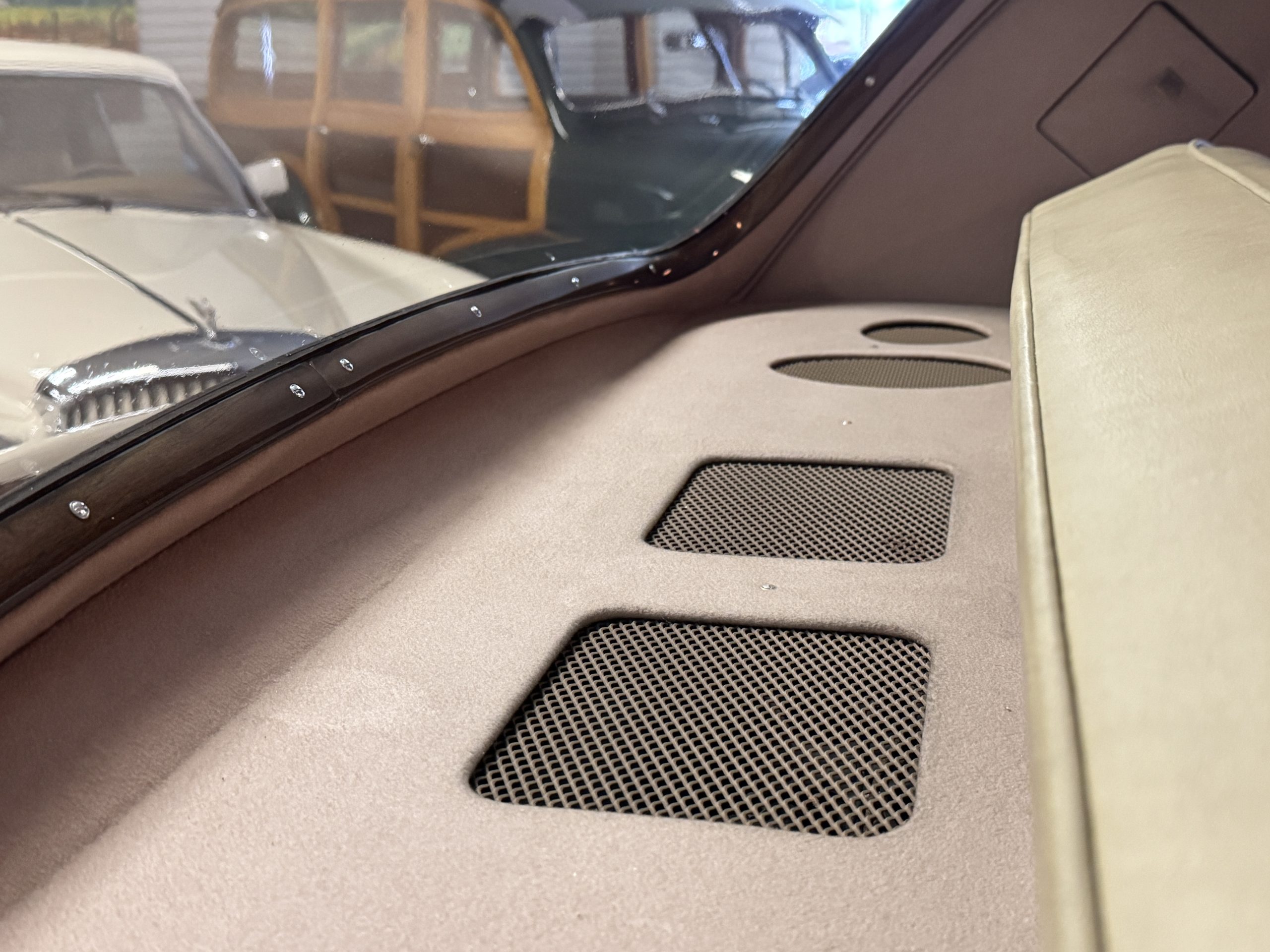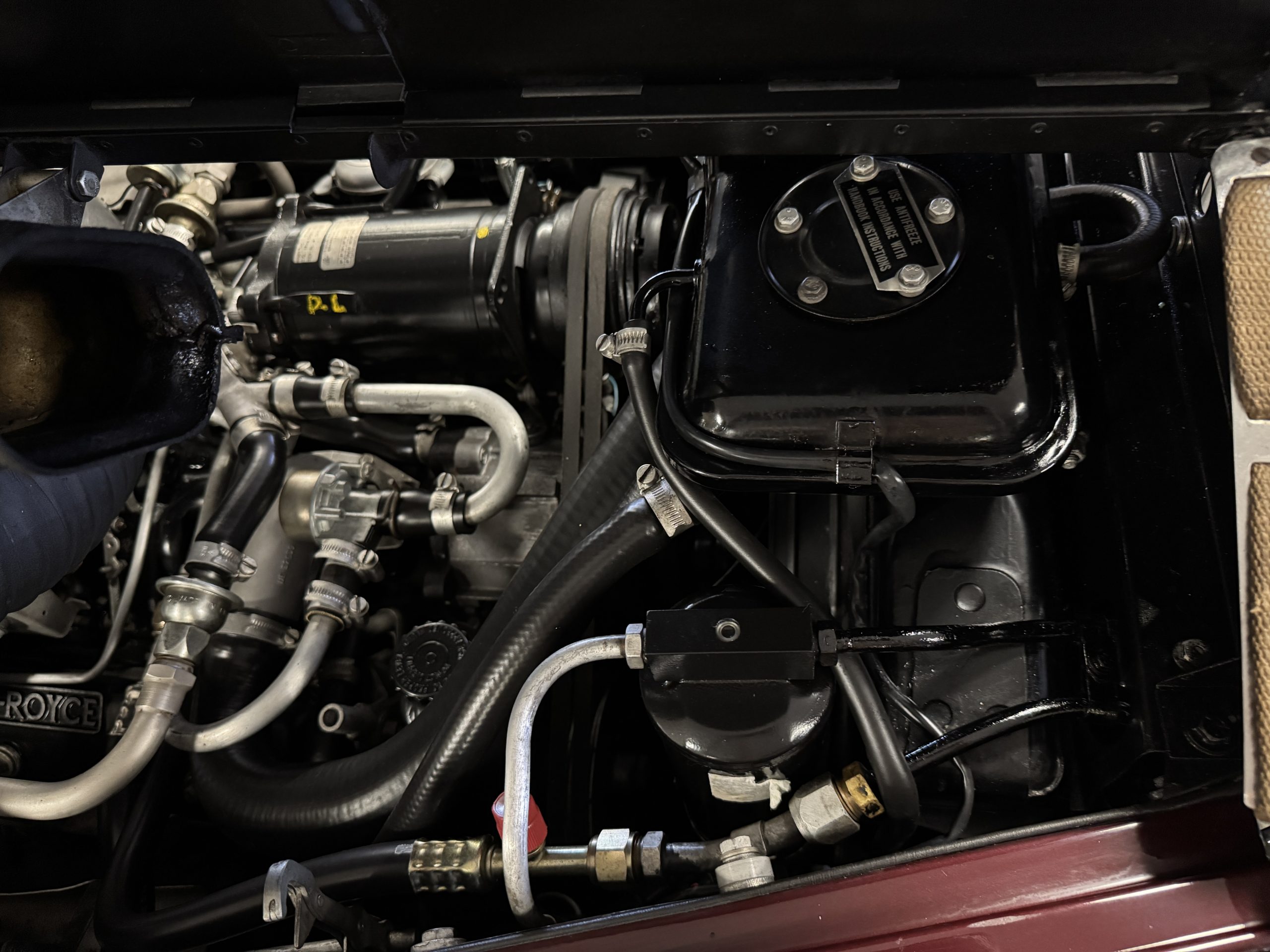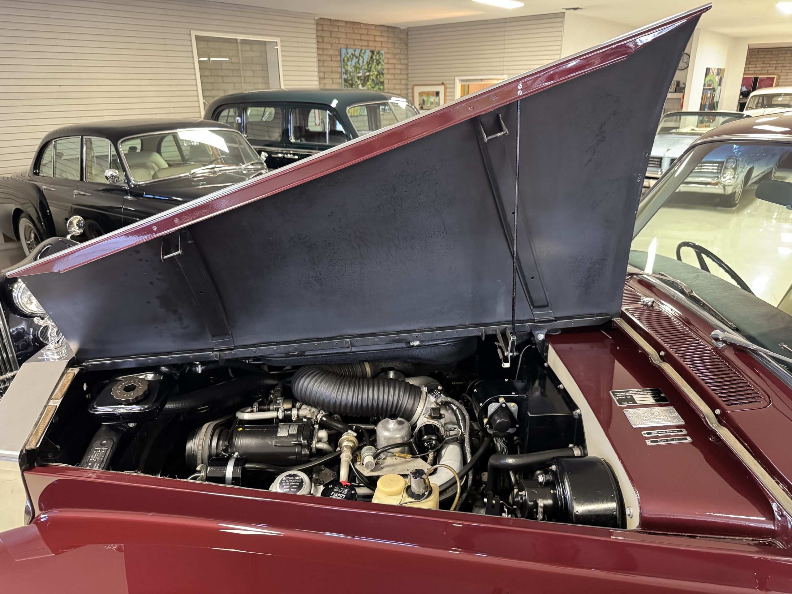 The engine compartment features the venerable 6.2 liter V8 and mechanically the Phantom is in excellent condition with its 12,000 miles accumulated from new. The engine compartment has been beautifully detailed and is in show condition. The four-speed automatic transmission shifts smoothly. The special order Fiamm Avanti air horns have a foot controller and still function well (albeit very loud!).