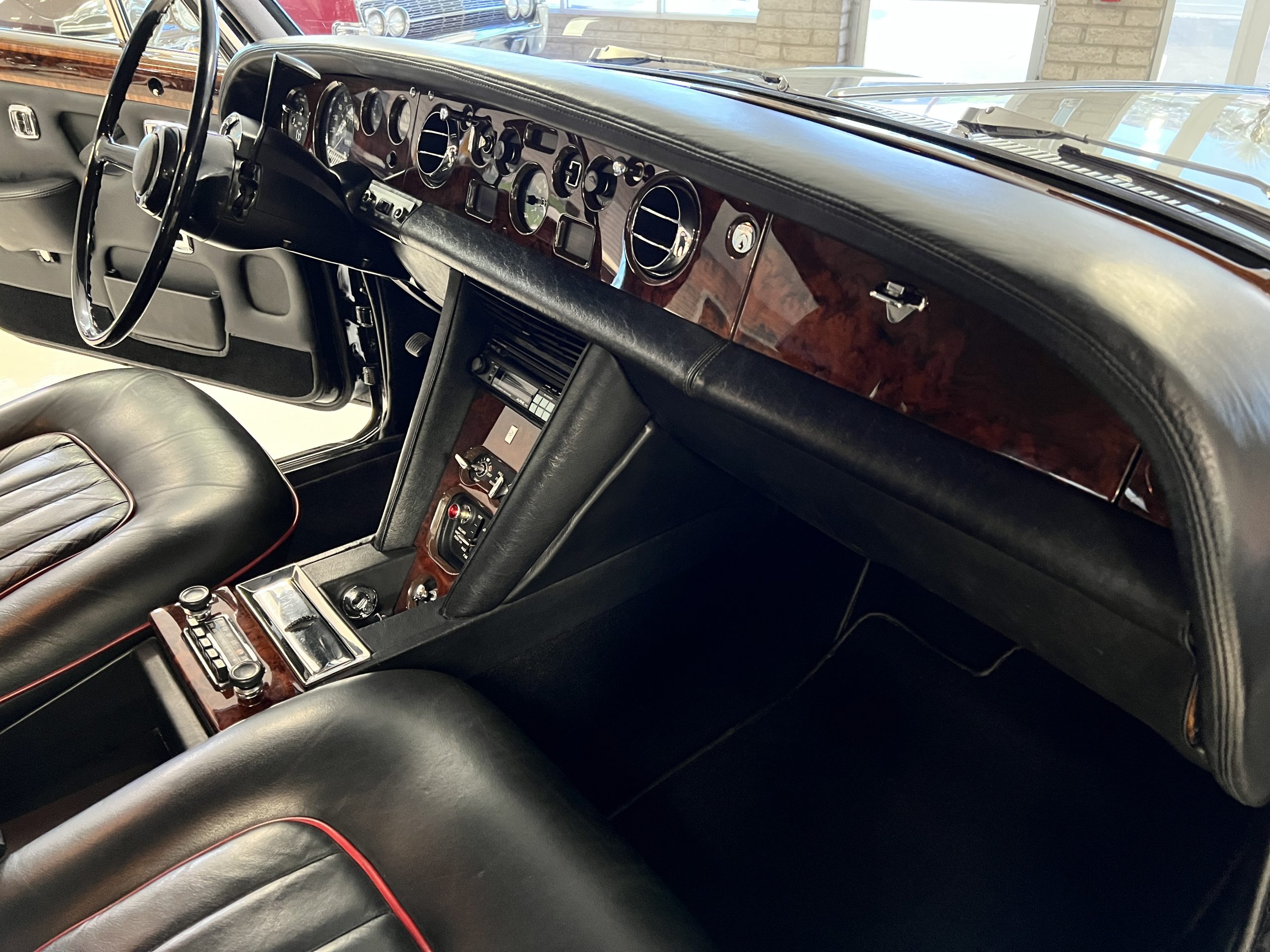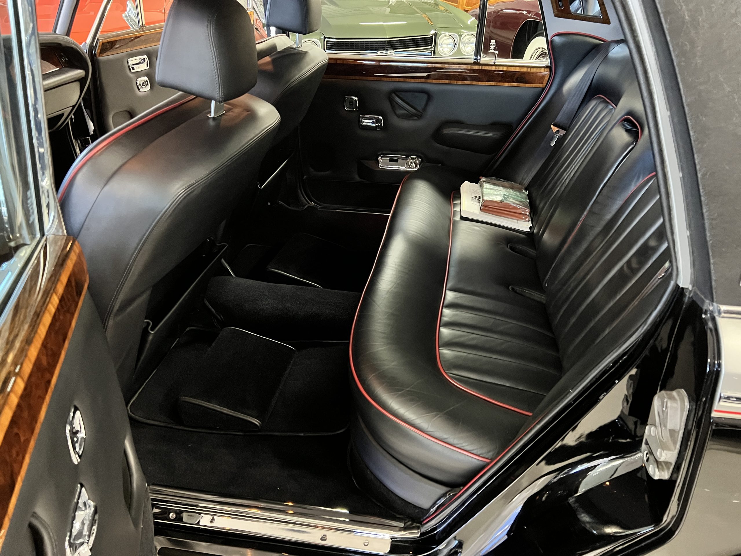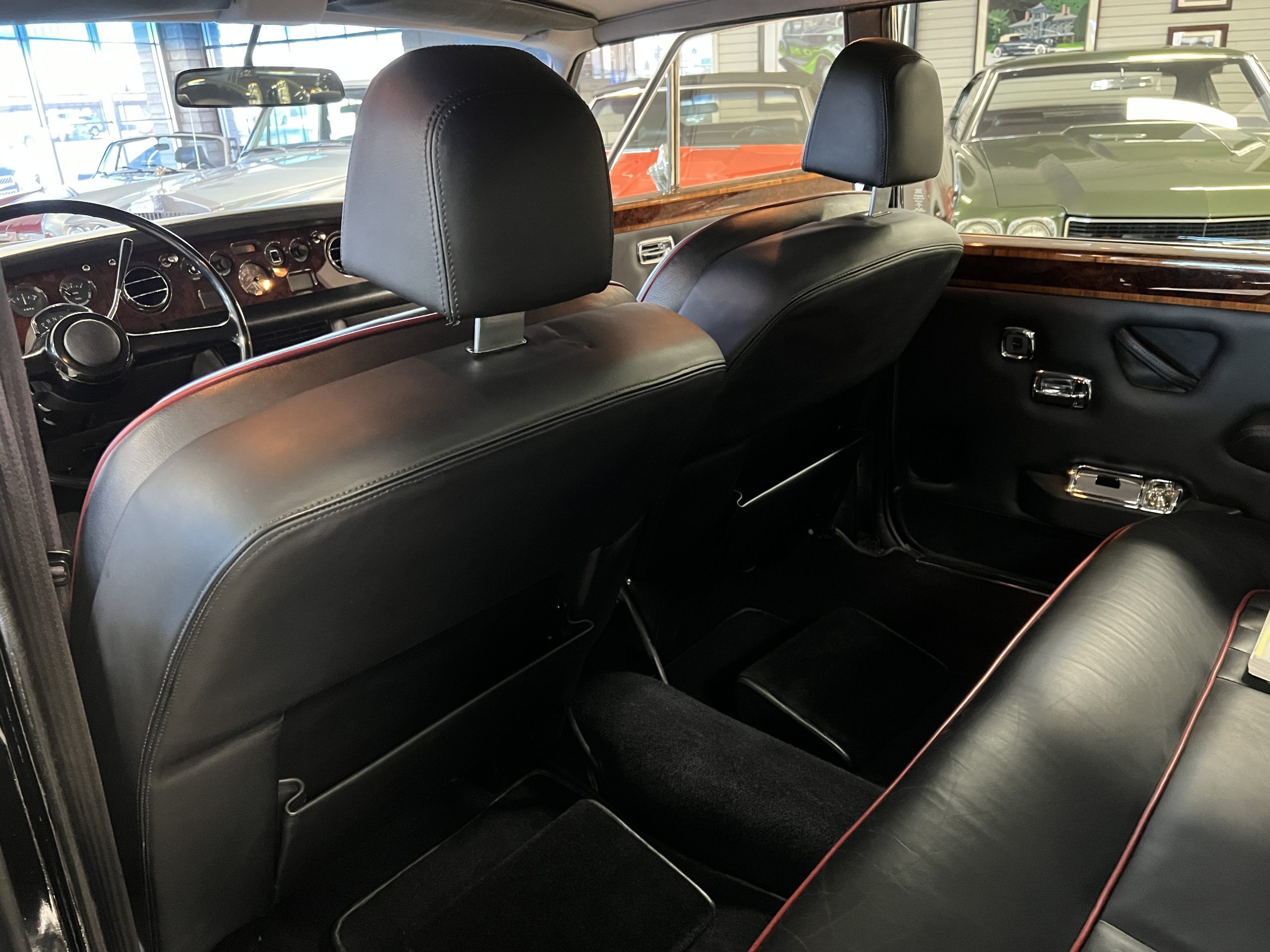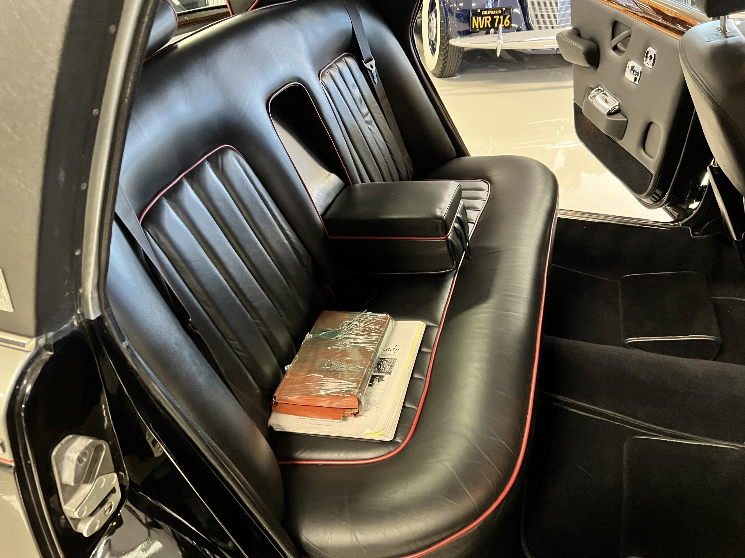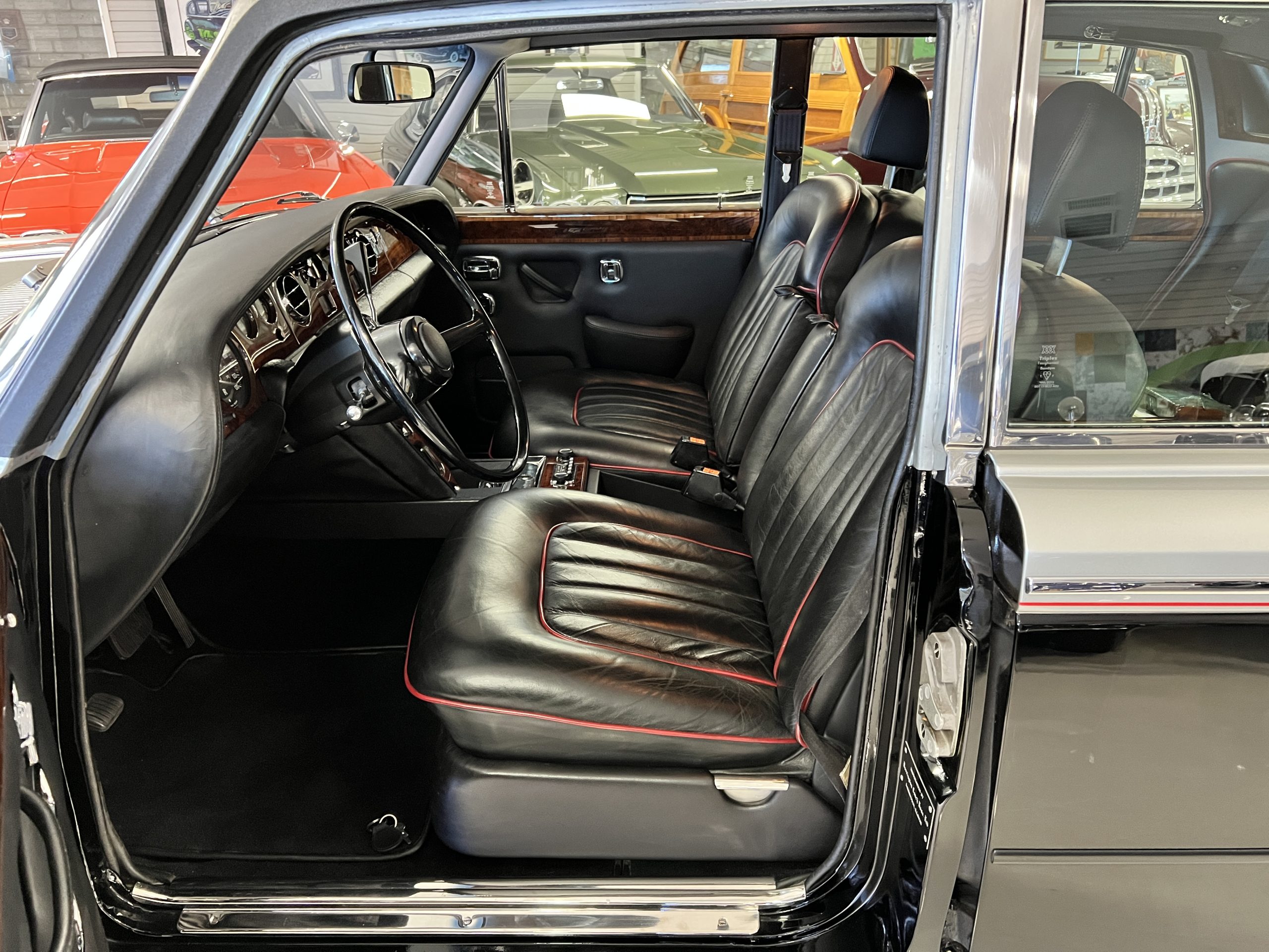 The livery was refinished exactly as originally ordered when new in Shell Gray (Code 9500434) over Masons Black (Code 9500701) and complimented with red coachstripes. The owner invested $20,000 for the paint alone, with five coats of primer, four coats of paint and three coats of clear coat. The paint is absolutely in showroom condition, as is everything on this example. The chrome and stainless-steel trim are all in excellent show condition. The Black Everflex (Code 5218/DH) is perfect as well and was standard on the long-wheelbase models. We love the stainless RR badging that stands out well against the black roof.