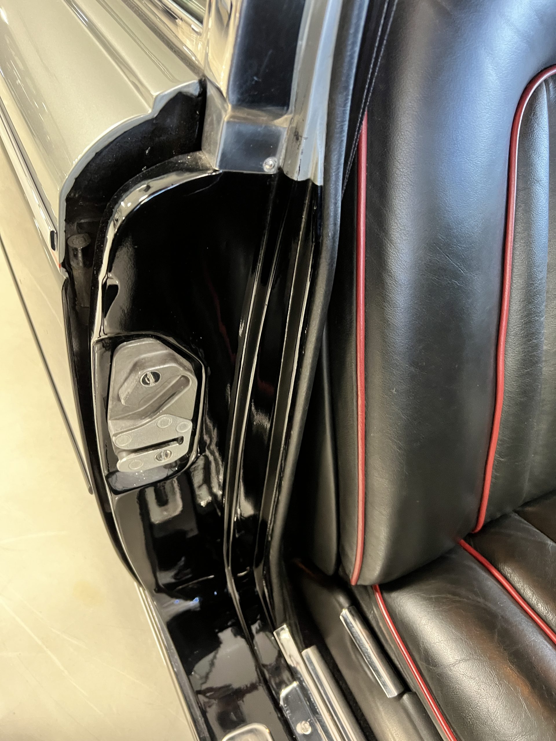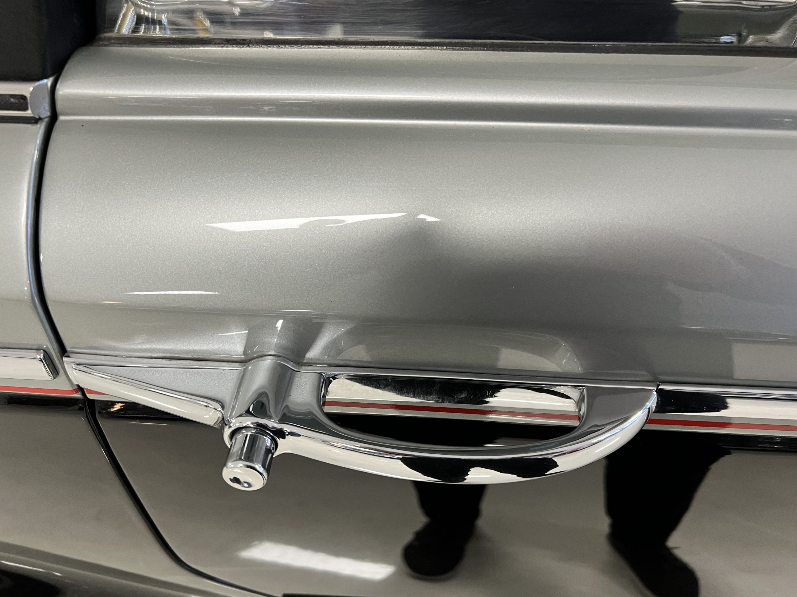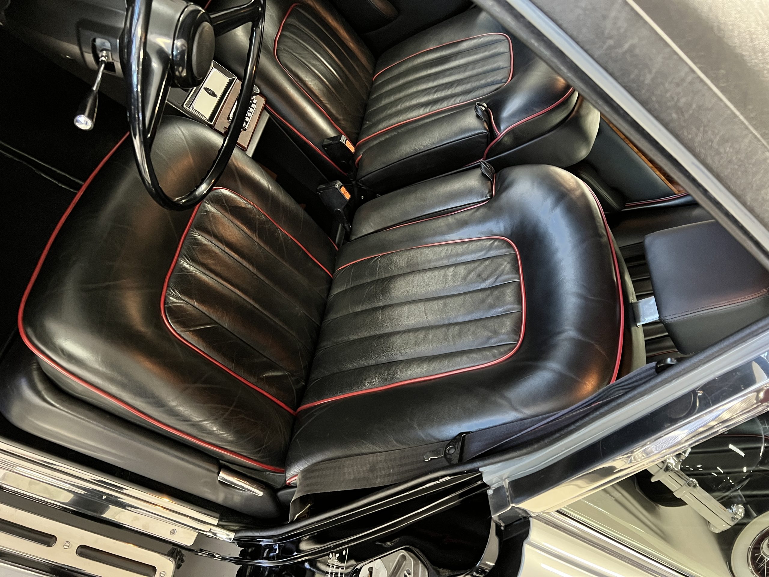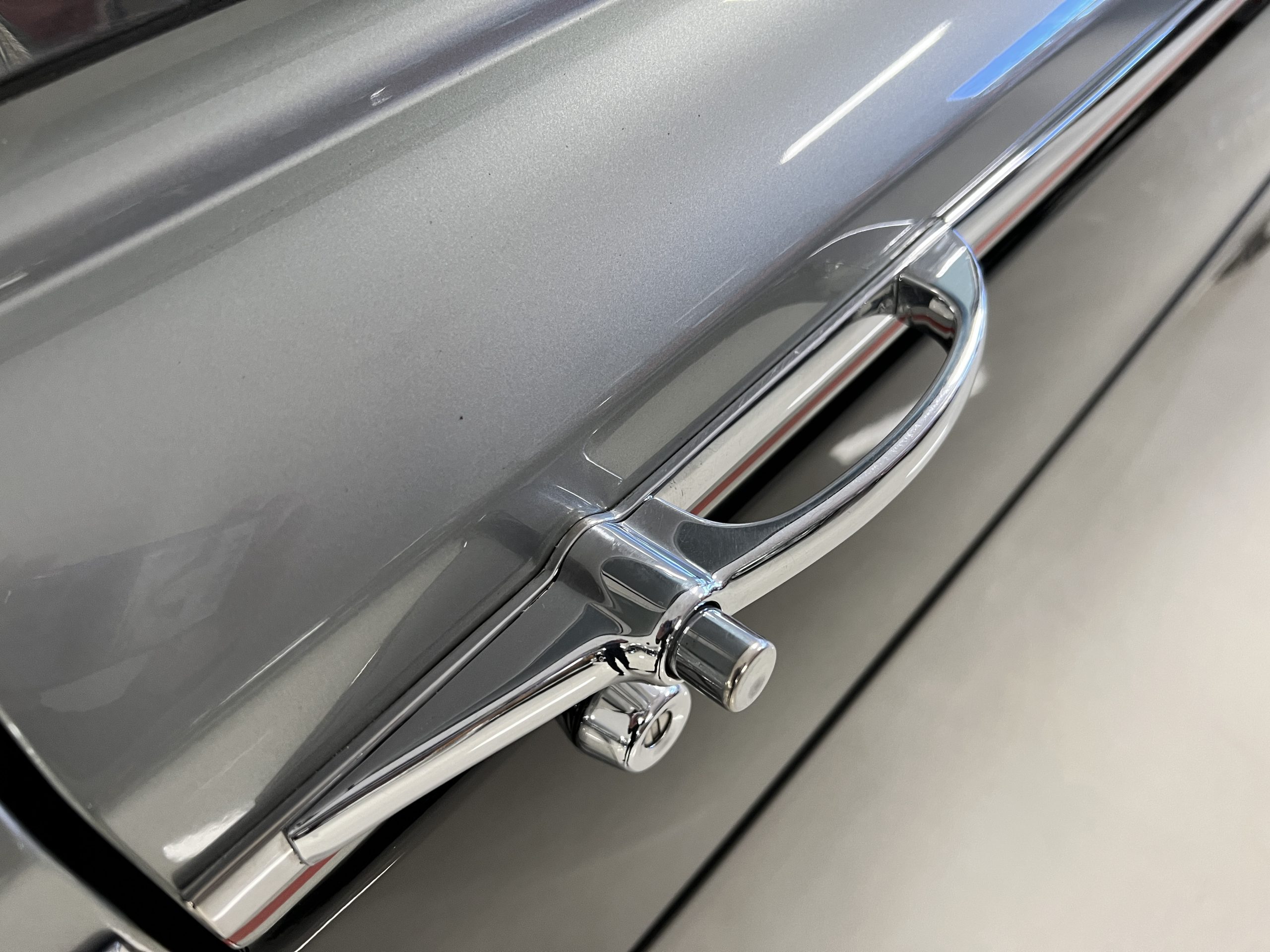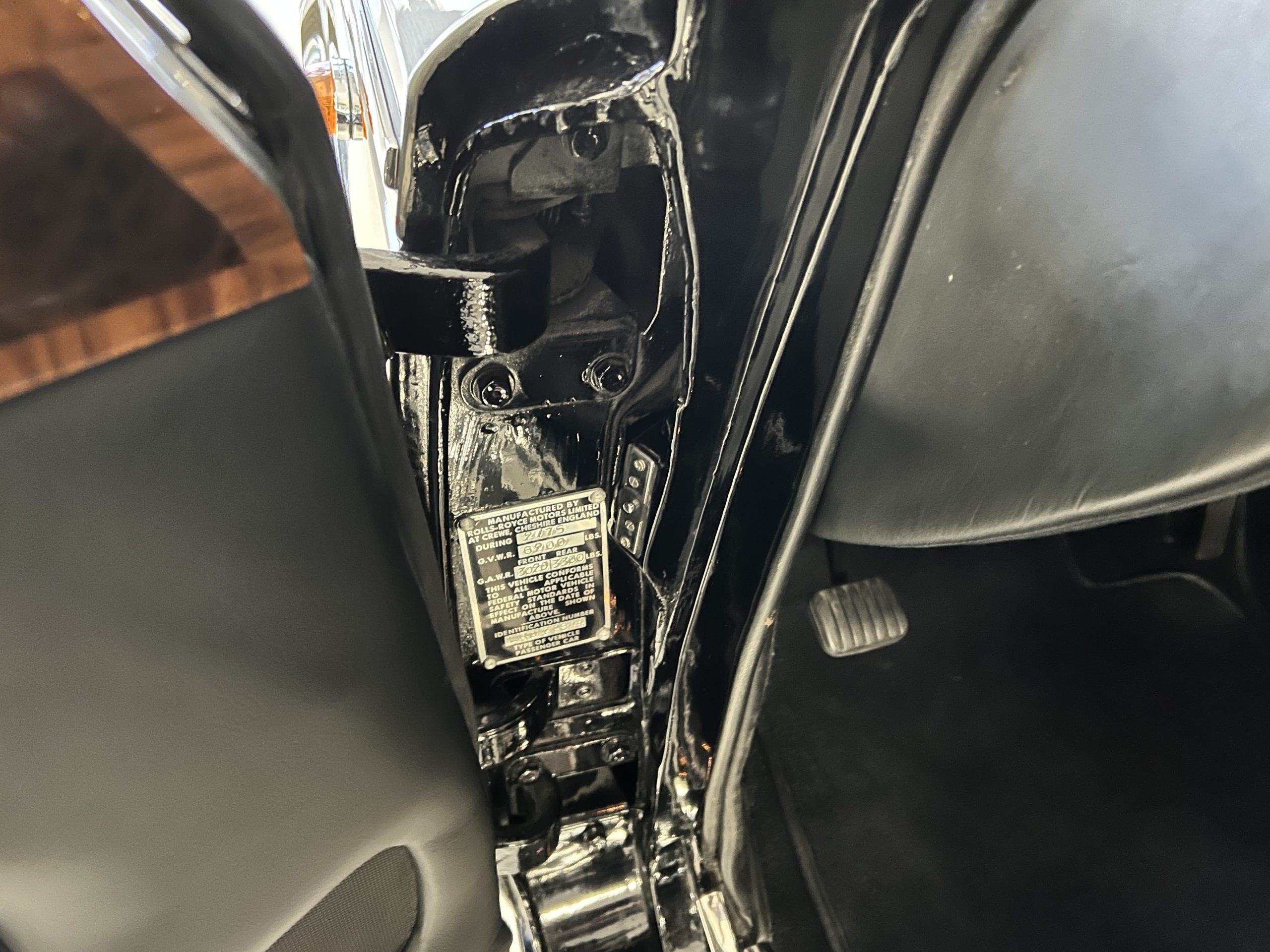 The livery was refinished exactly as originally ordered when new in Shell Gray (Code 9500434) over Masons Black (Code 9500701) and complimented with red coachstripes. The owner invested $20,000 for the paint alone, with five coats of primer, four coats of paint and three coats of clear coat. The paint is absolutely in showroom condition, as is everything on this example. The chrome and stainless-steel trim are all in excellent show condition. The Black Everflex (Code 5218/DH) is perfect as well and was standard on the long-wheelbase models. We love the stainless RR badging that stands out well against the black roof.