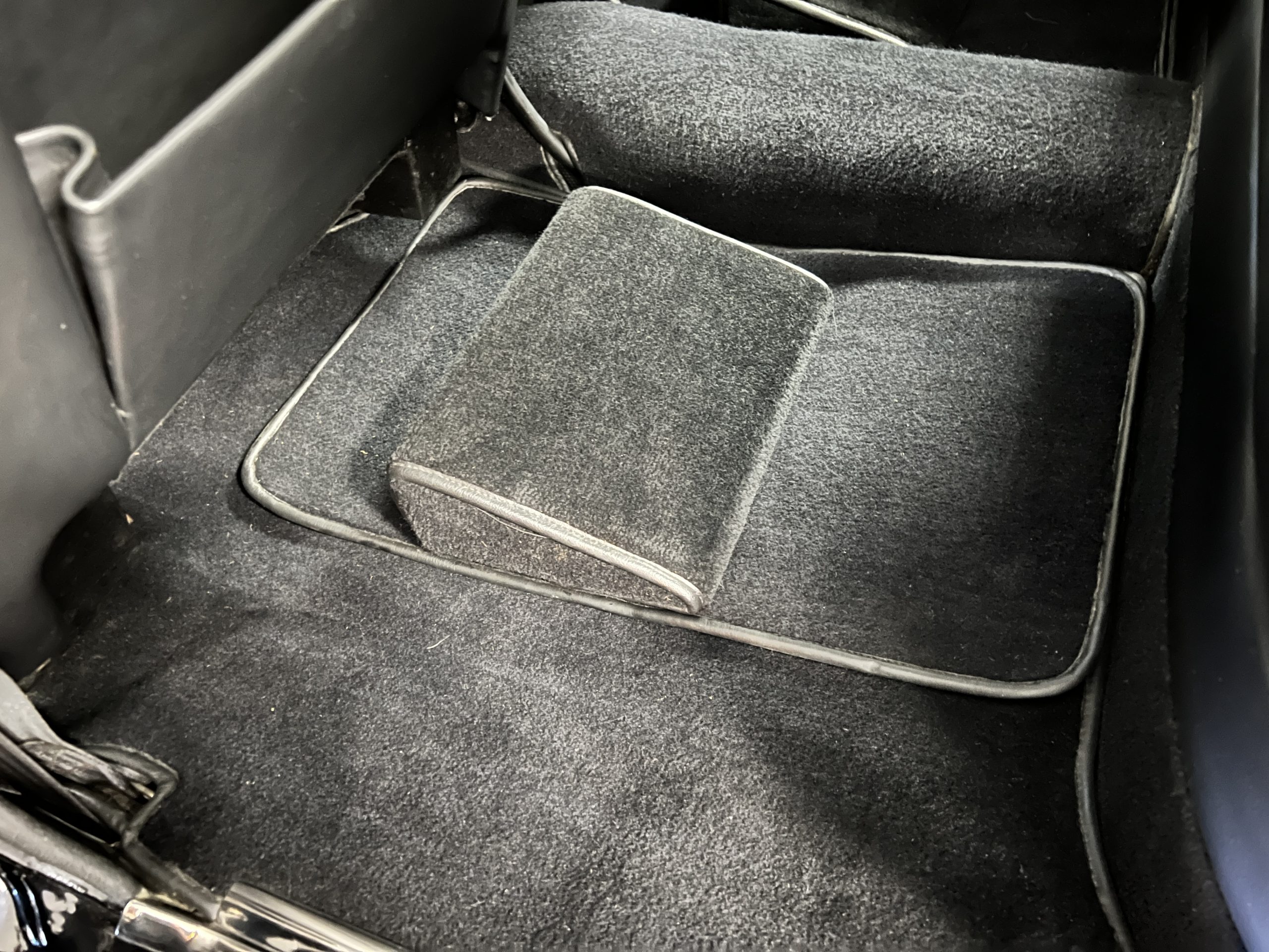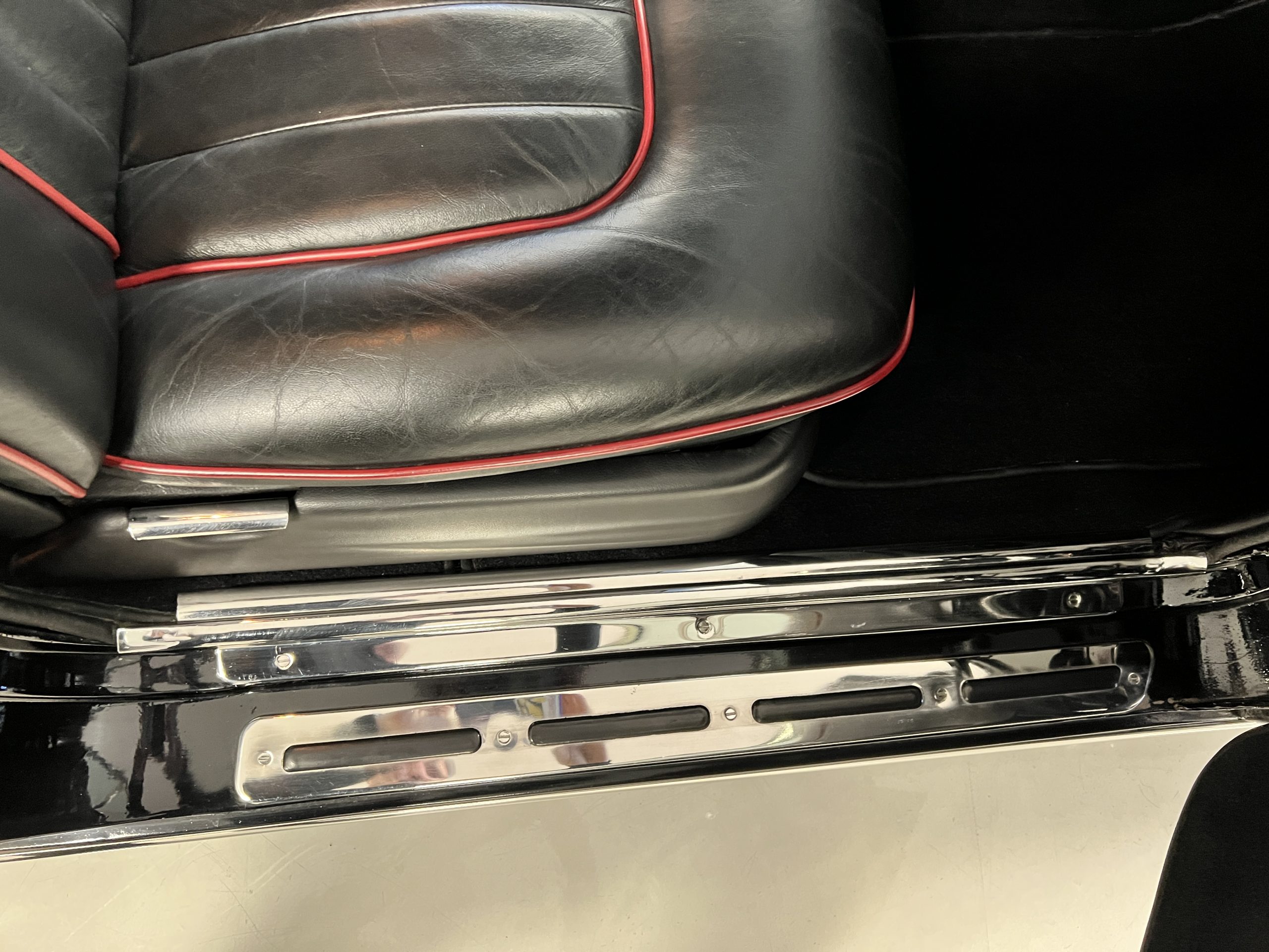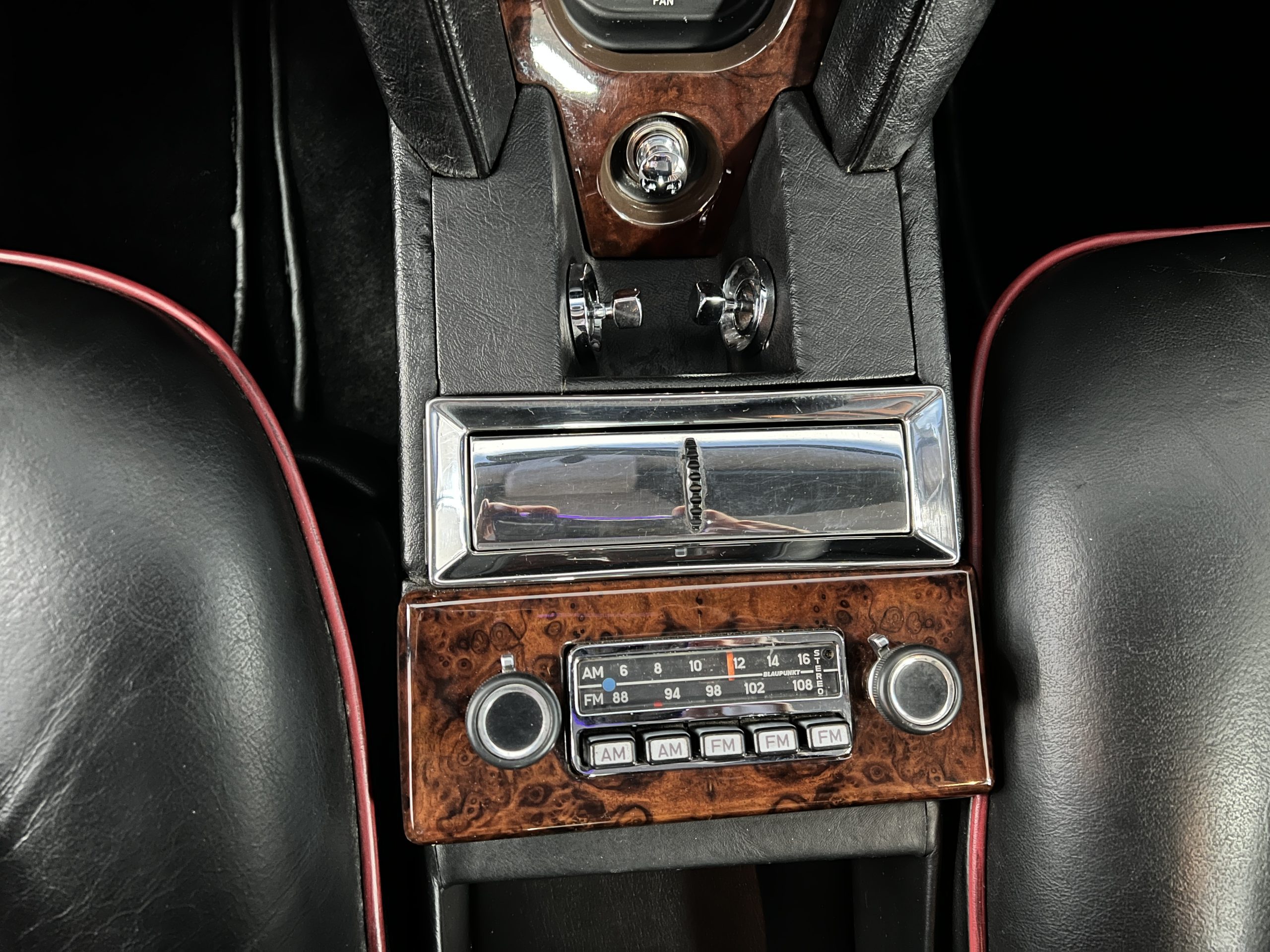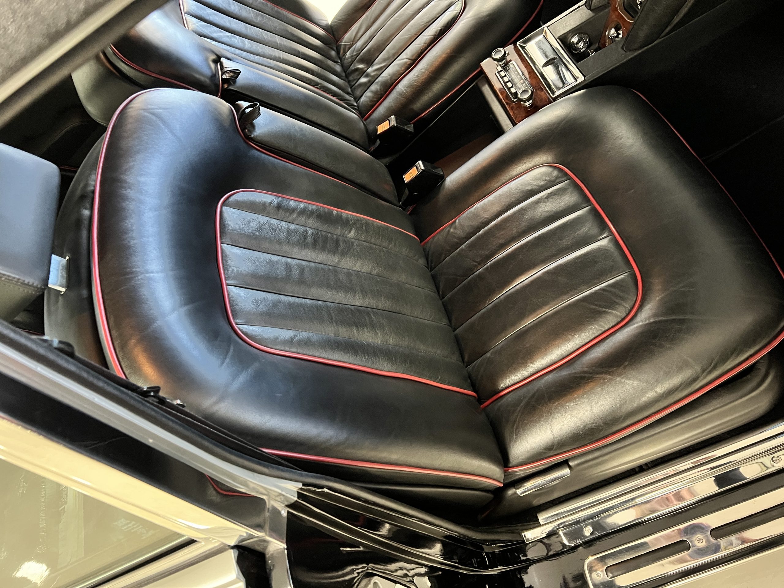Inside, the all-new black Connelly leather is complimented by red piping. The leather is soft and supple and looks nearly showroom new. The black Wilton wool carpeting is also as-new. The wood is dark and rich and in concours condition.