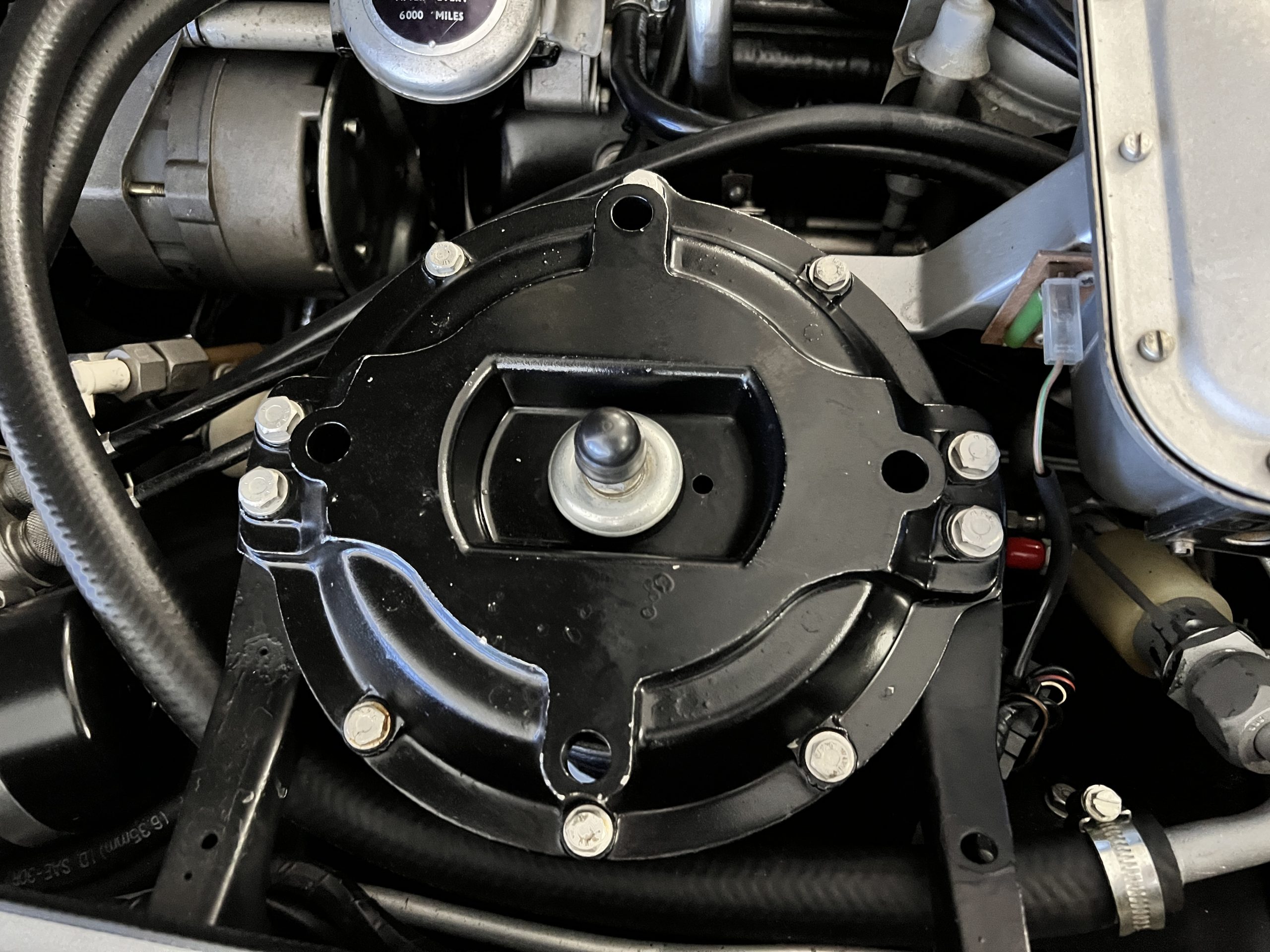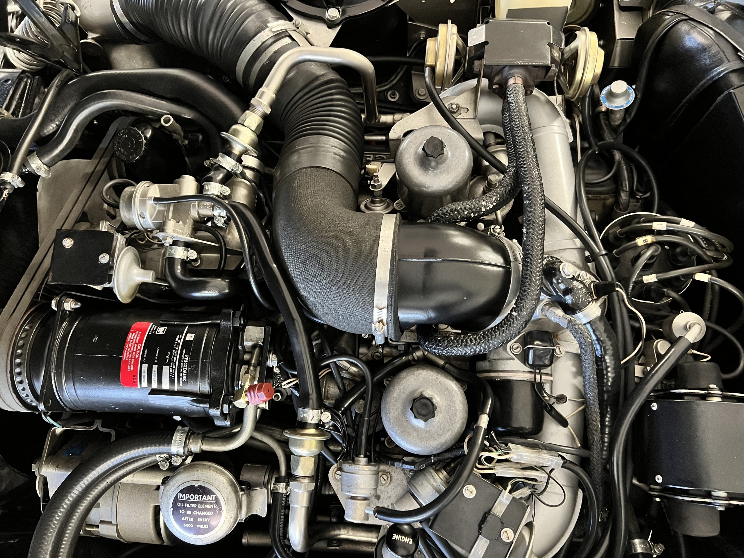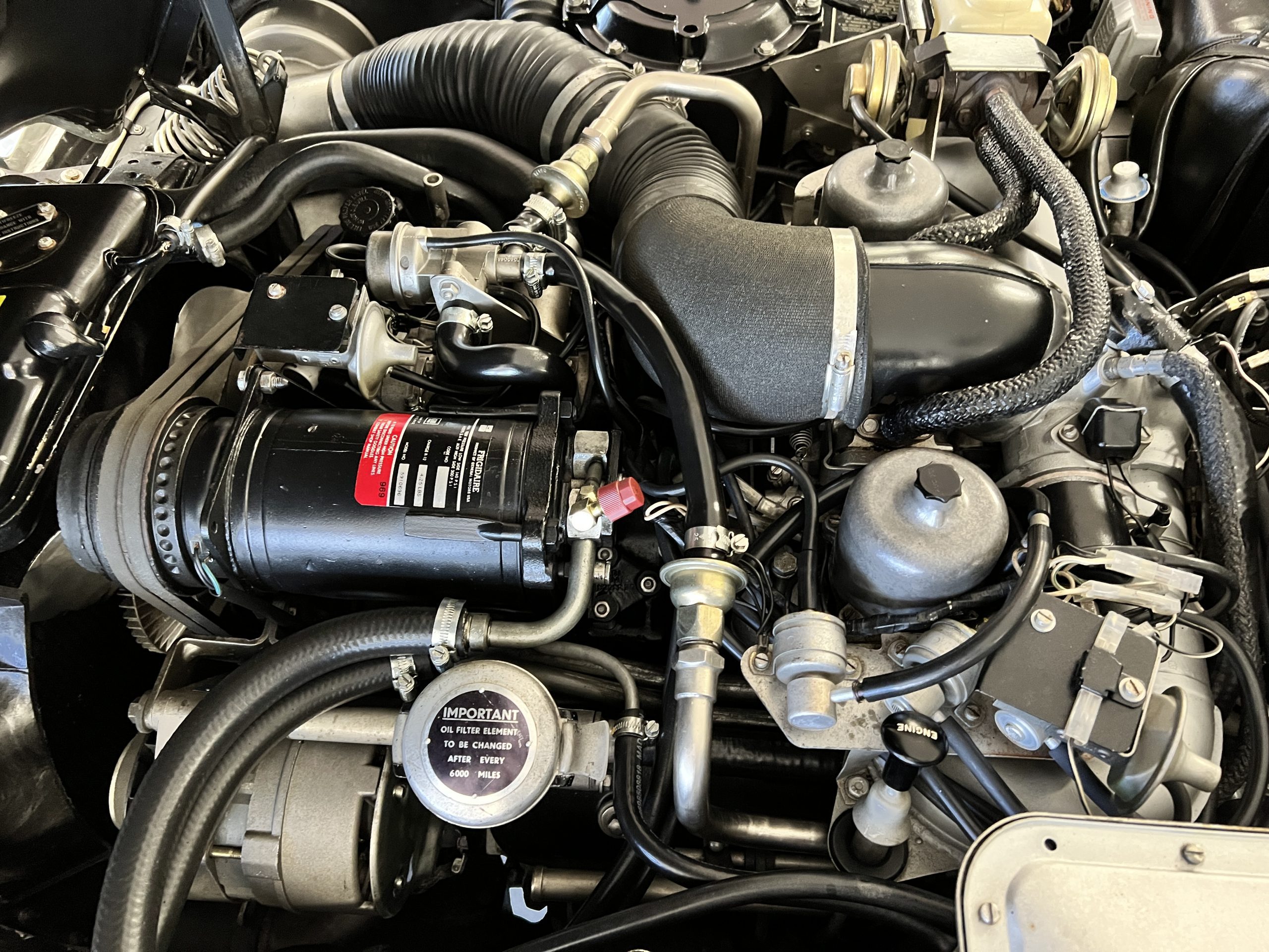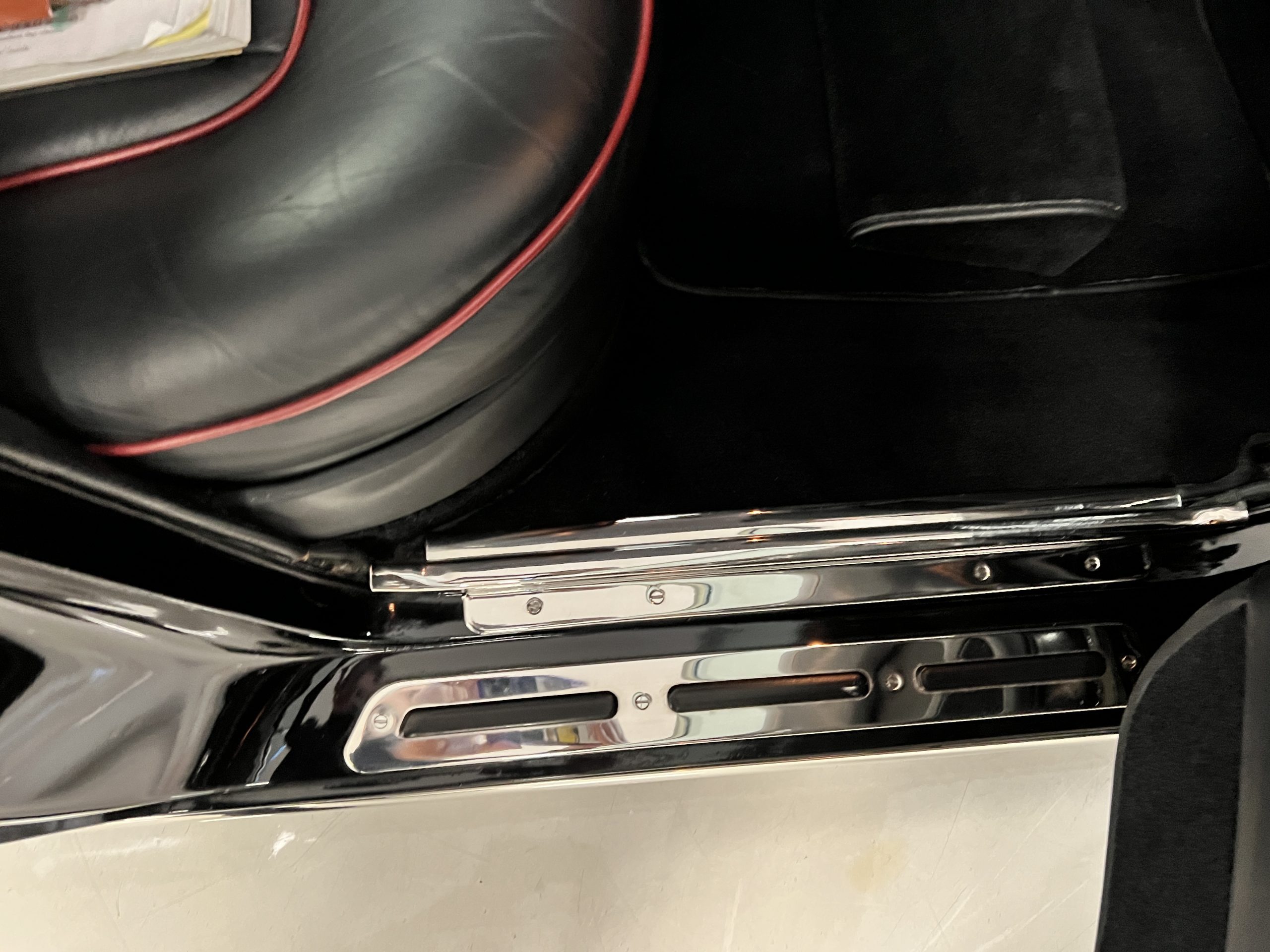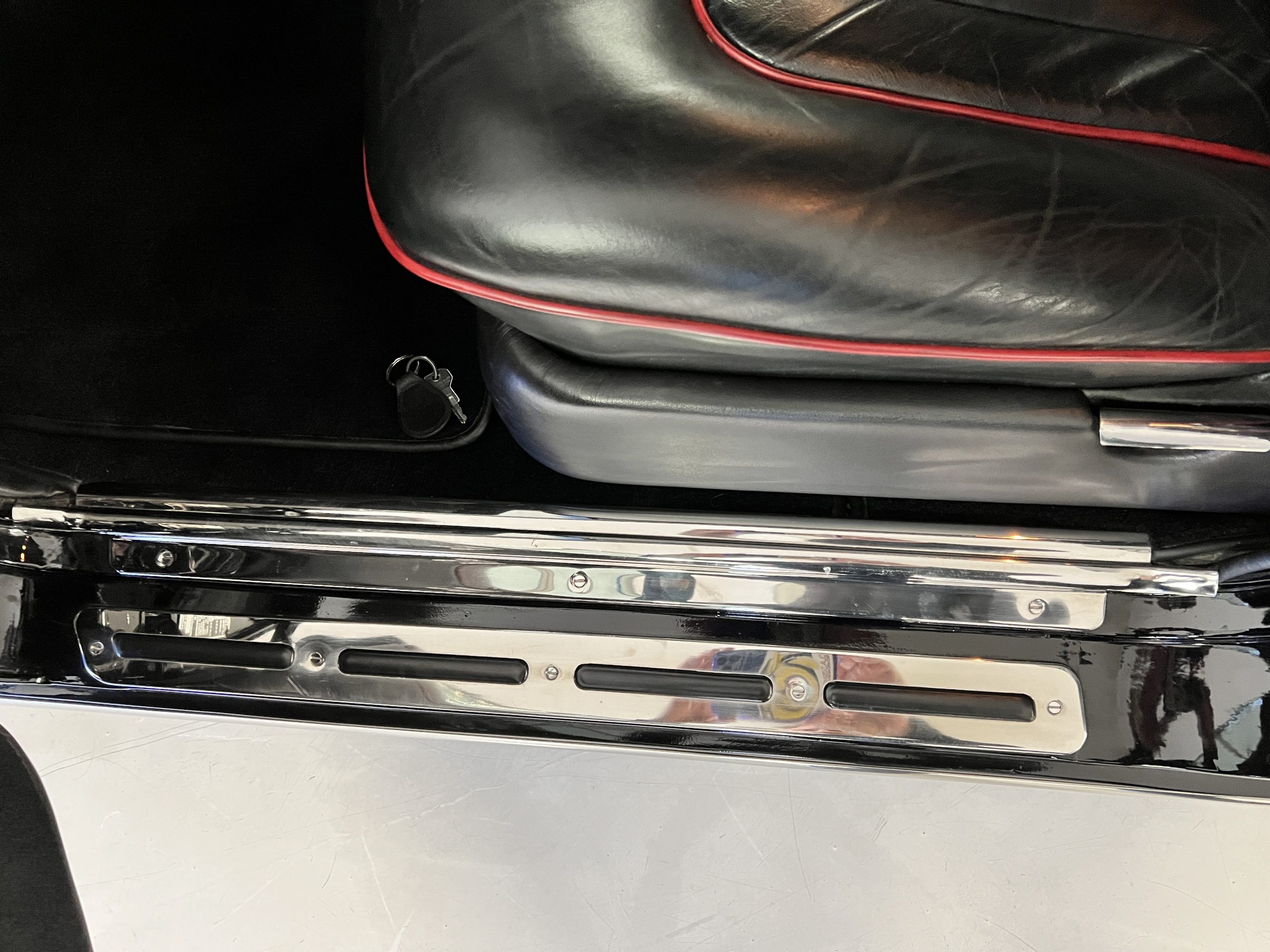 Inside, the all-new black Connelly leather is complimented by red piping. The leather is soft and supple and looks nearly showroom new. The black Wilton wool carpeting is also as-new. The wood is dark and rich and in concours condition.