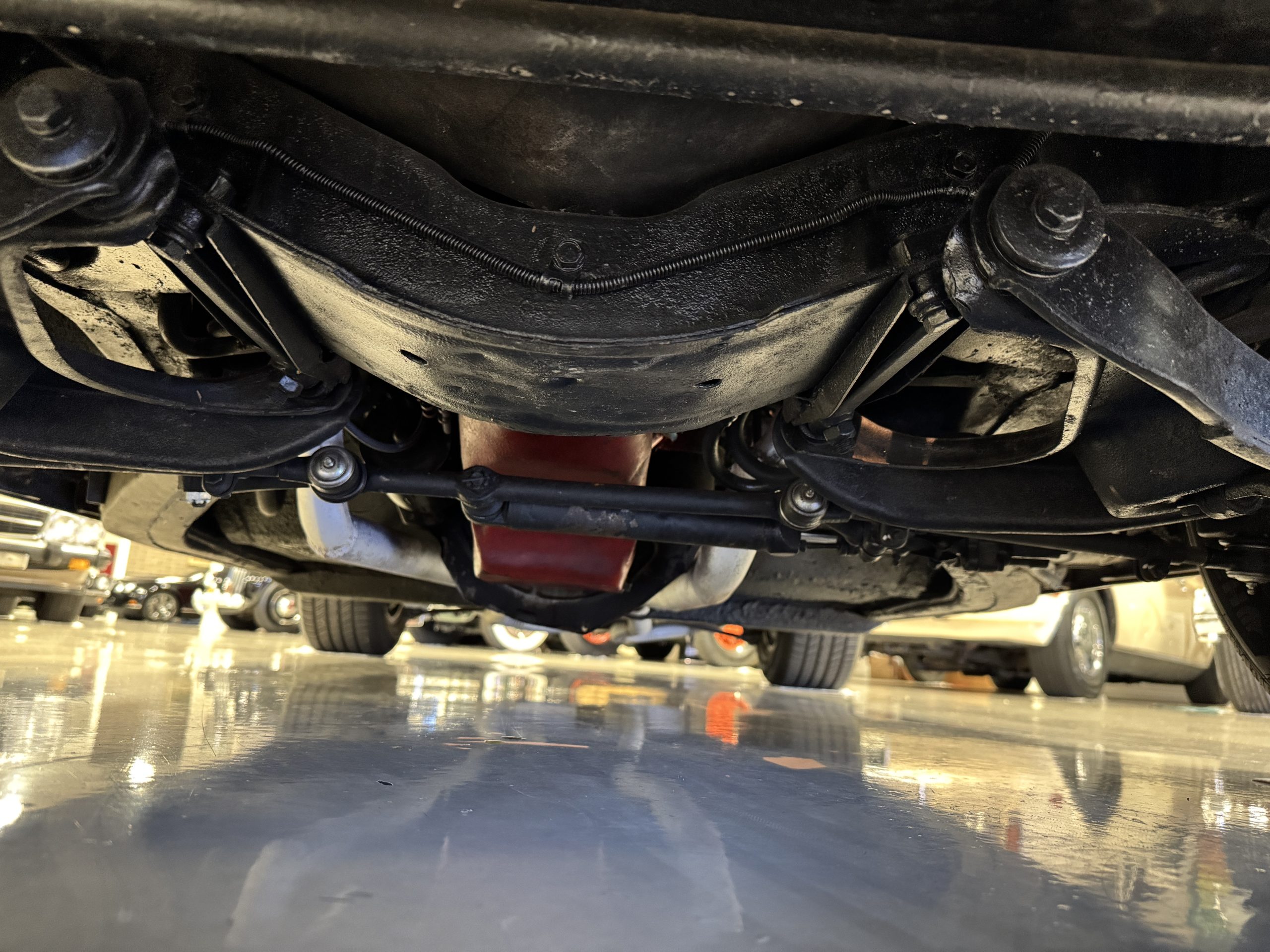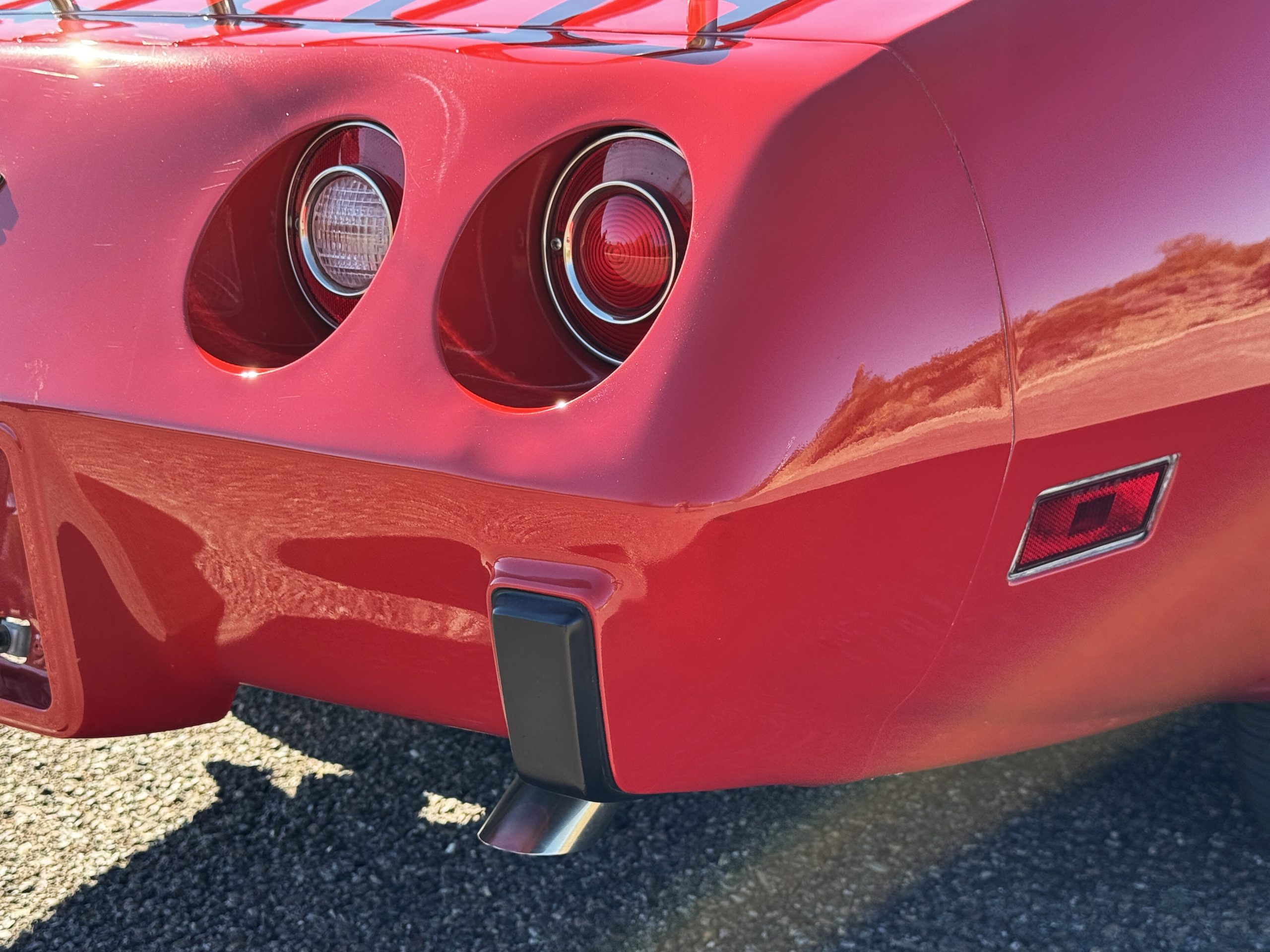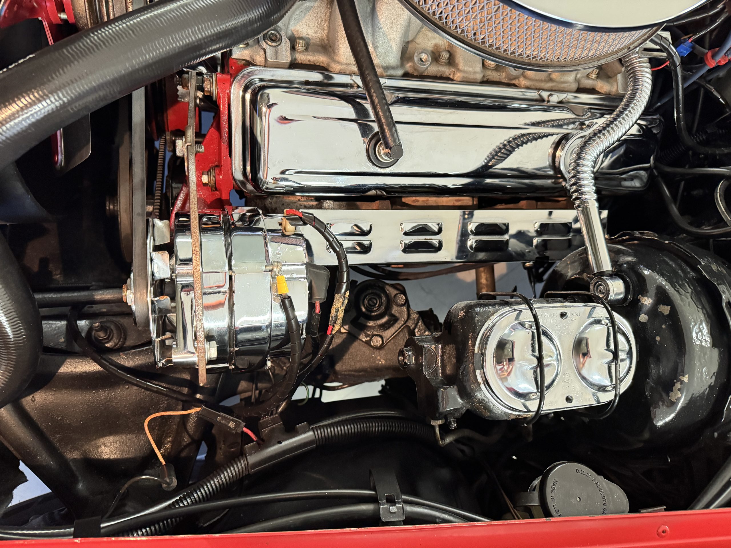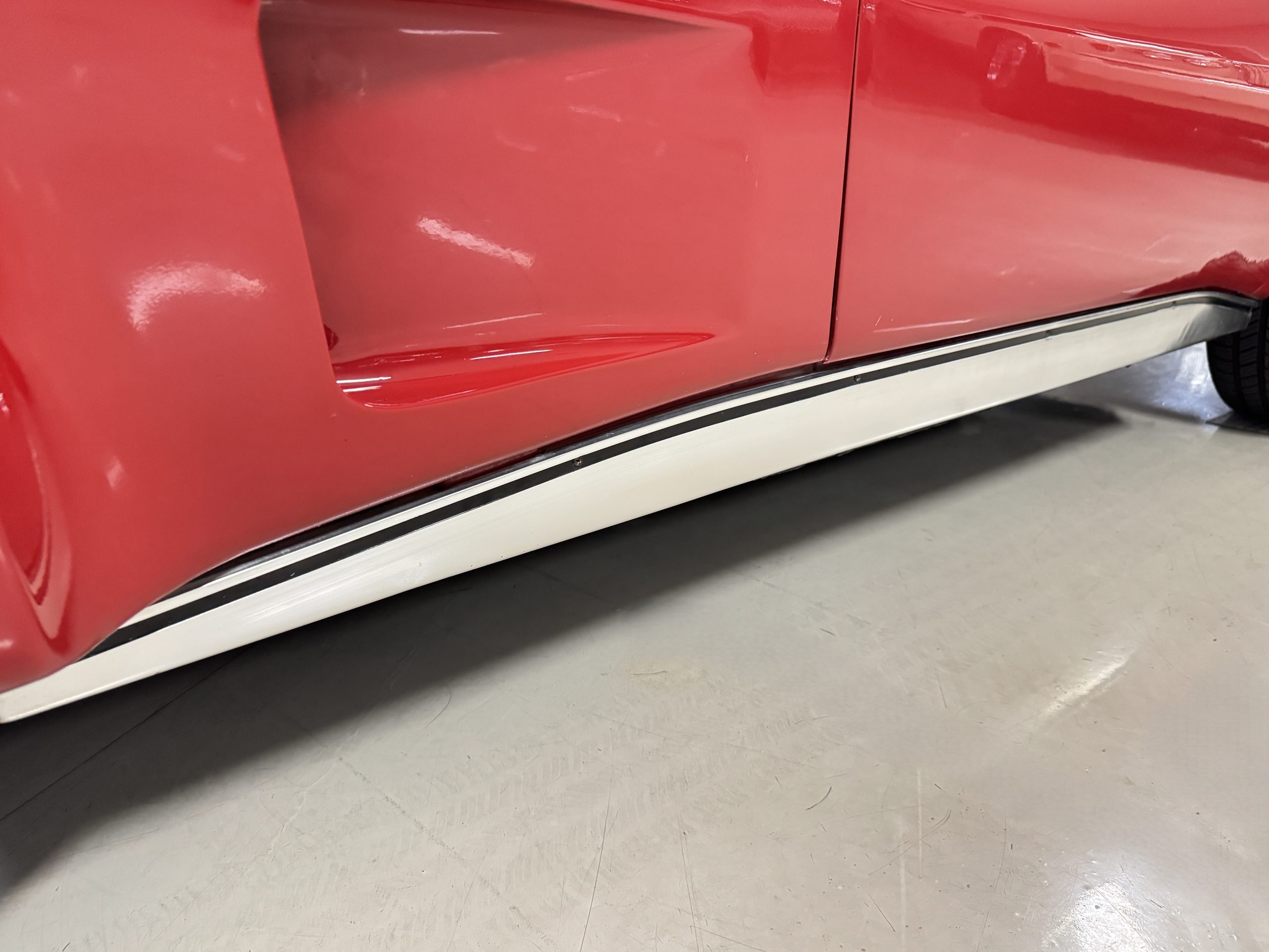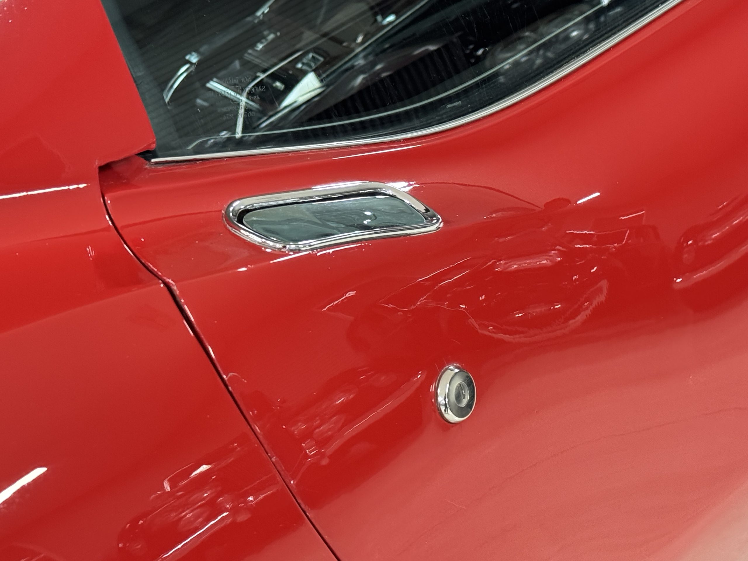 The fiberglass body retains the unmistakable C3 profile with long hood, flared fenders, pop-up headlights, straight and removable T-top roof panels. Originally finished in Black Tuxedo, this Corvette has been refinished in Red Medium which is in good overall condition. There are small paint bubbles, chips, and minor imperfections concentrated toward the front end. Body panels remain in very good overall condition, and the upgraded 15-inch aluminum wheels provide both a visual and weight-saving improvement over stock, wrapped in Hankook Kinergy 245/60R15 tires in very good condition. A rear luggage rack allows convenient T-top storage or additional cargo capacity, and 1977 marks the final year of the distinctive “sugar scoop” rear window design.