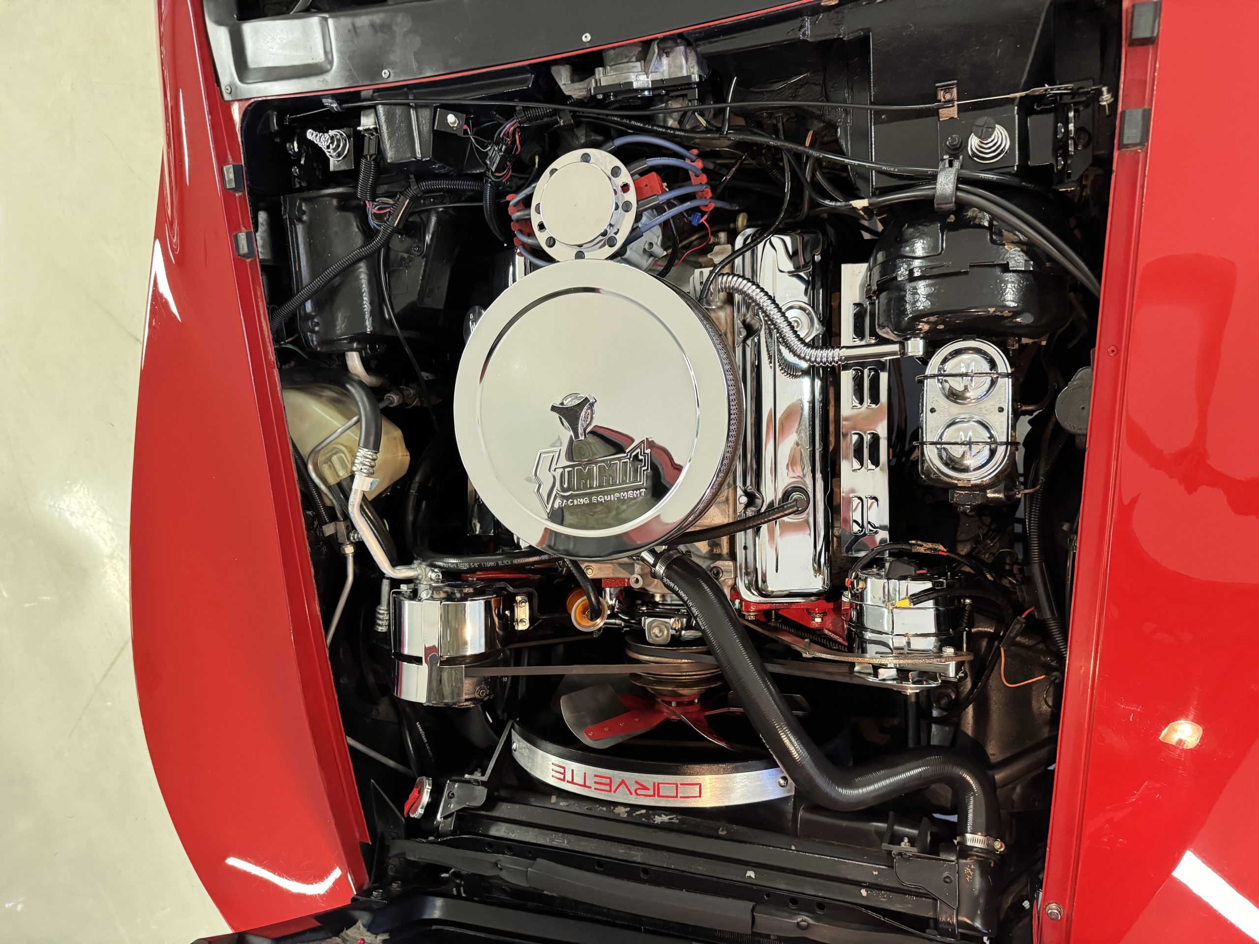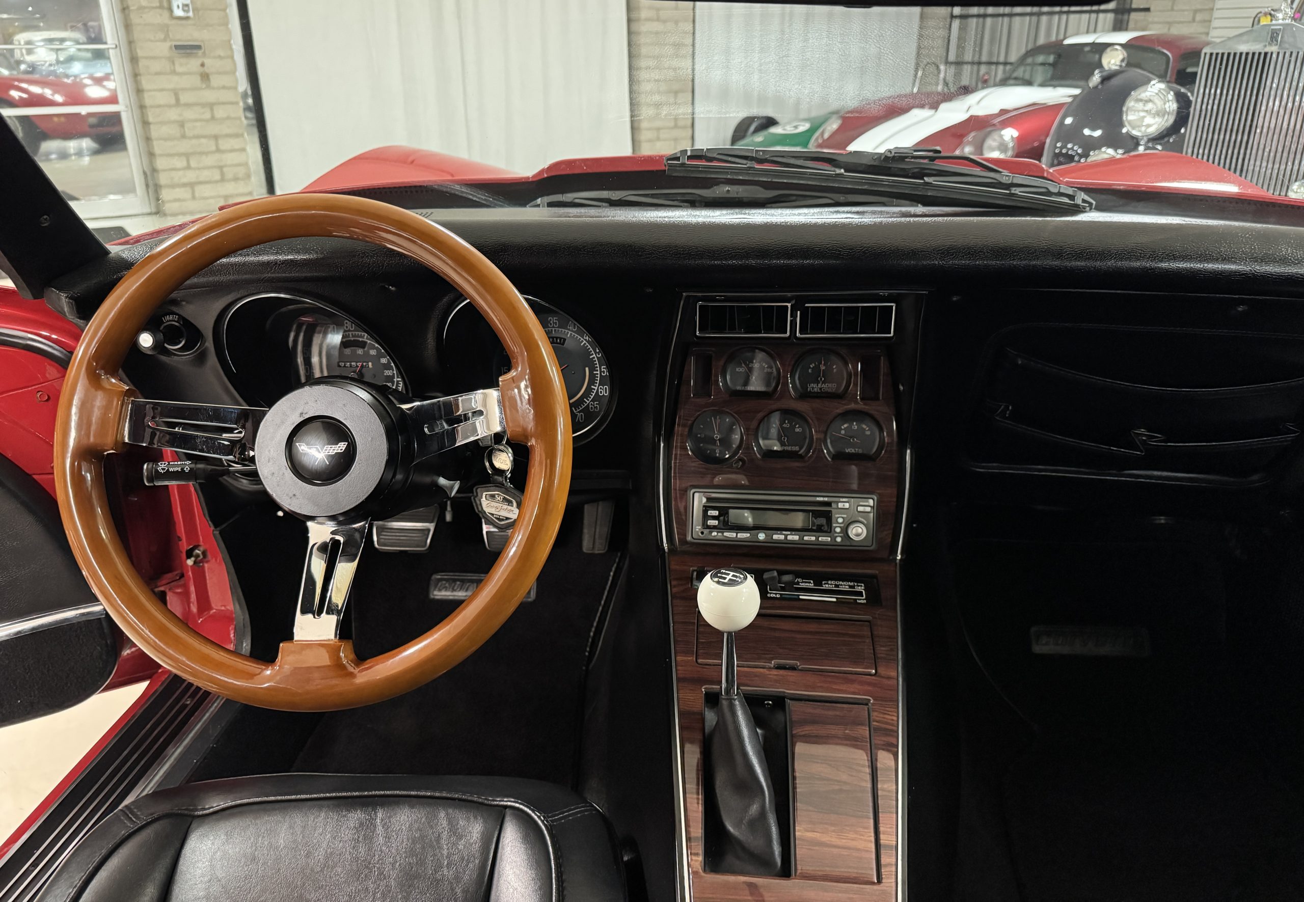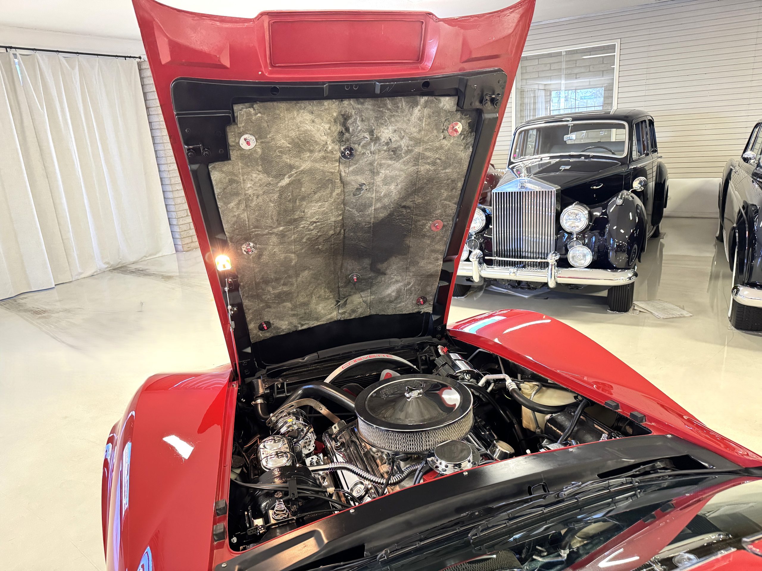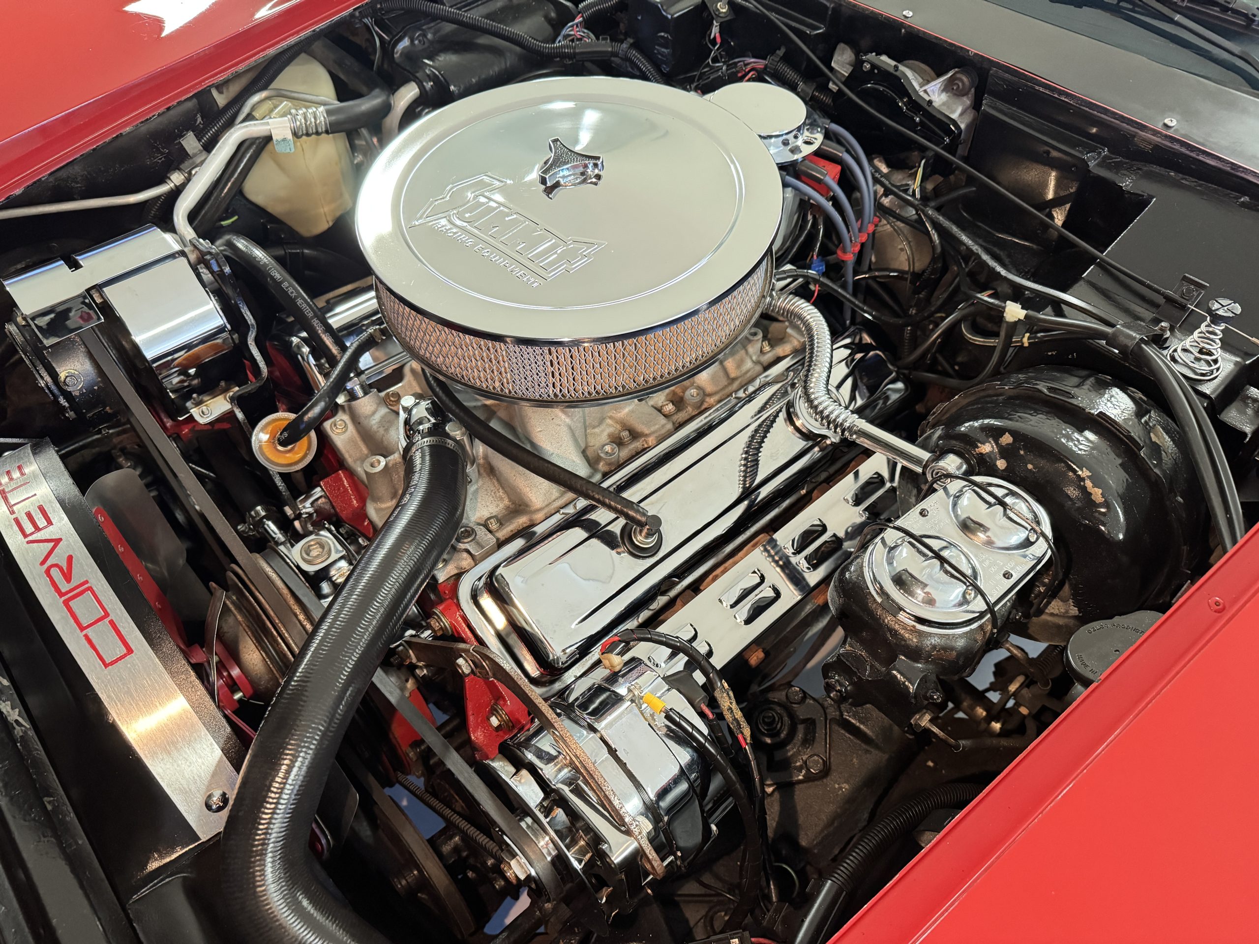 Power comes from the optional L82 350 cubic inch V8, producing 210 horsepower and delivers a noticeable step up in performance over the base L48. The engine is paired with a four-speed manual transmission, engaging through the shorter center-console shifter introduced for improved ergonomics. Key performance attributes for the L82 include four-bolt-main construction, four-barrel carburetor, and higher compression ratio. Dual exhaust provides the unmistakable small-block V8 sound, while independent suspension, power steering, and four-wheel power disc brakes deliver balanced handling and confident stopping power. The Corvette retains its factory safety features, including energy-absorbing steering column and dual seat and shoulder belts, rounding out an enjoyable C3 Corvette package.