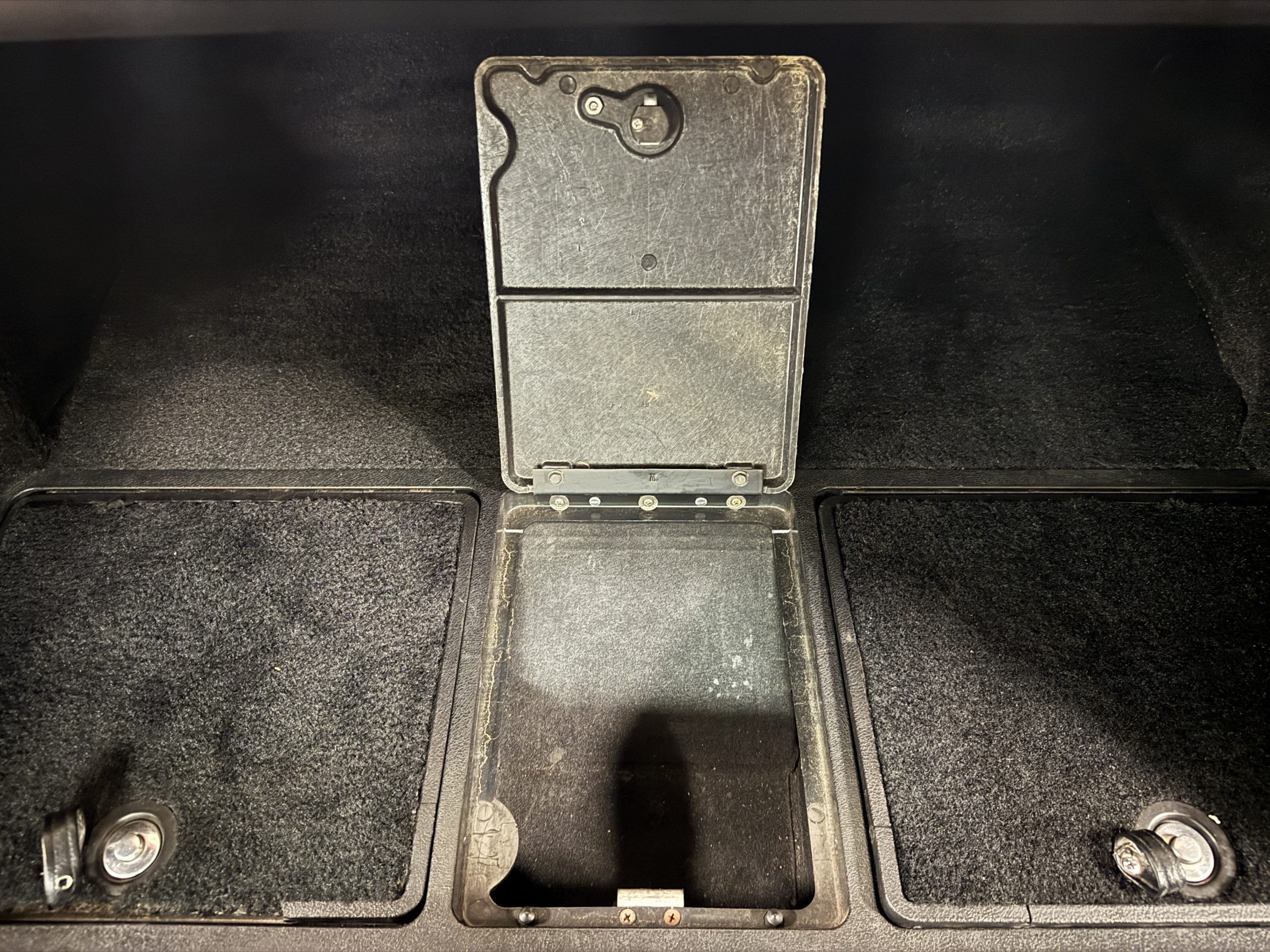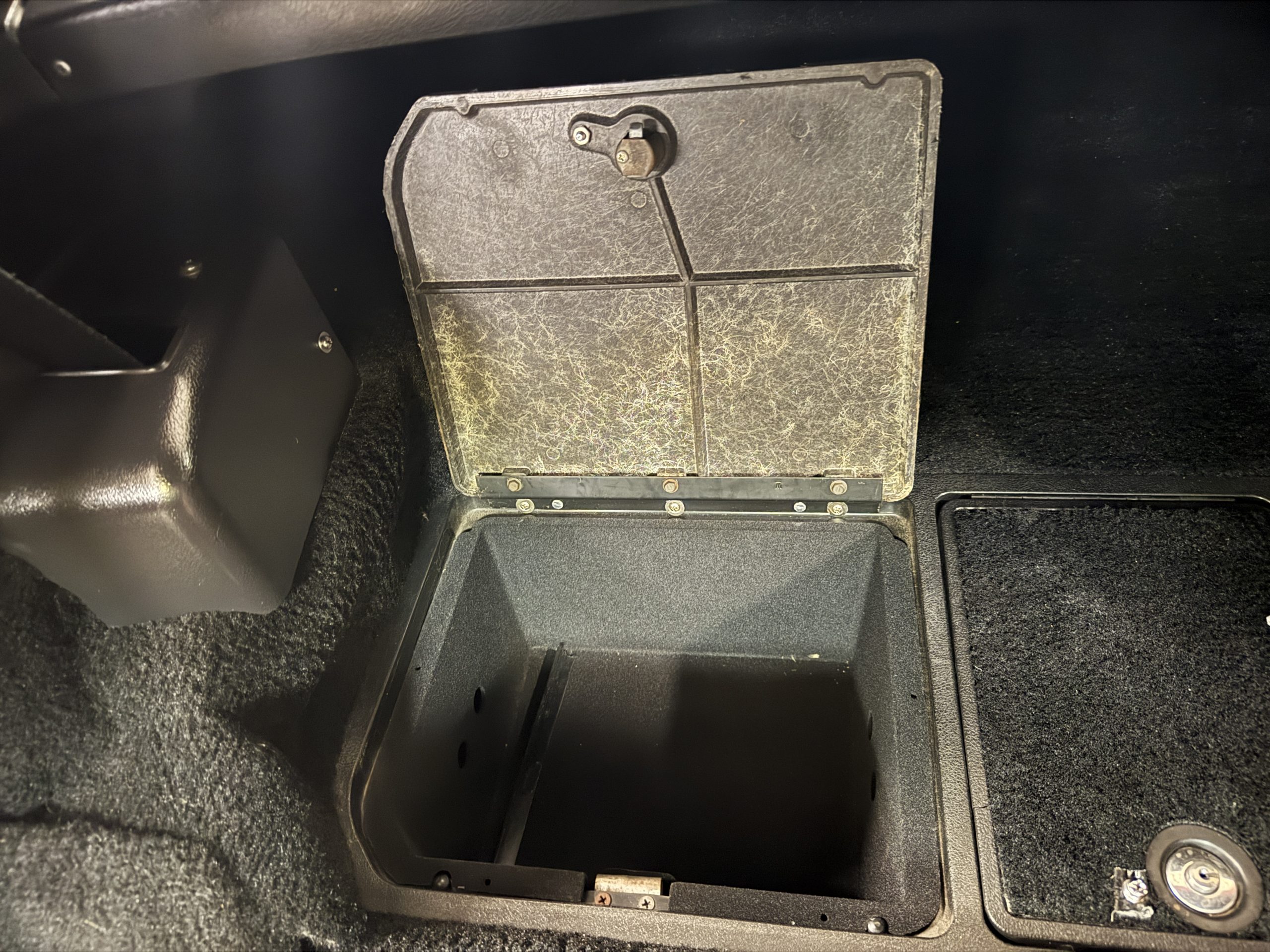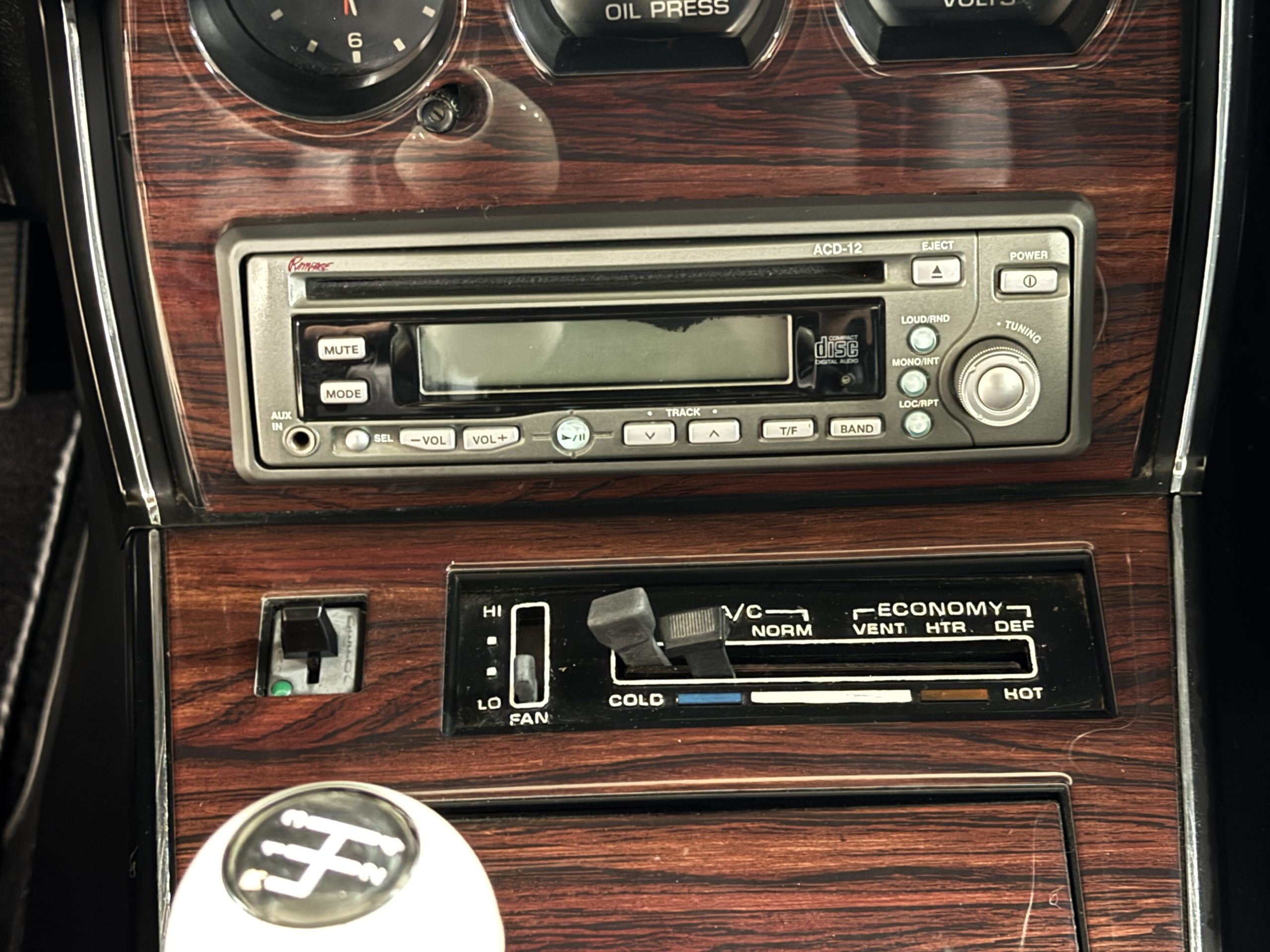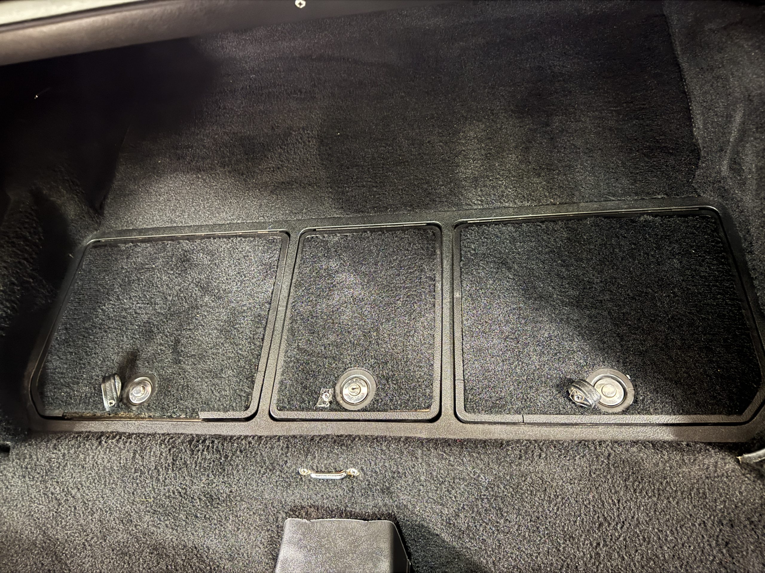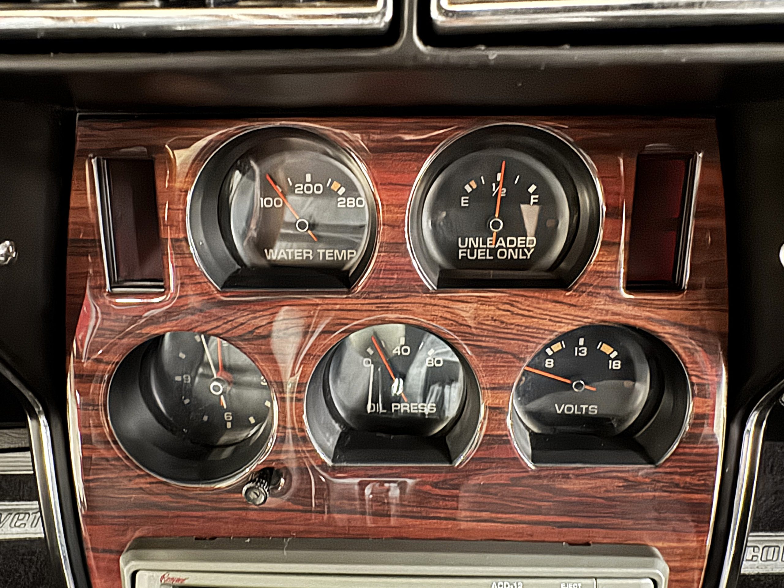 The interior features black leather bucket seats that are in excellent condition. Black cut-pile carpeting presents well, and the woodgrain center console houses a full complement of working gauges with a tilt-telescopic three-spoke steering wheel. Power windows, heat, and air conditioning are in working condition, while the upgraded AM/FM/CD radio functions despite an inoperative display.