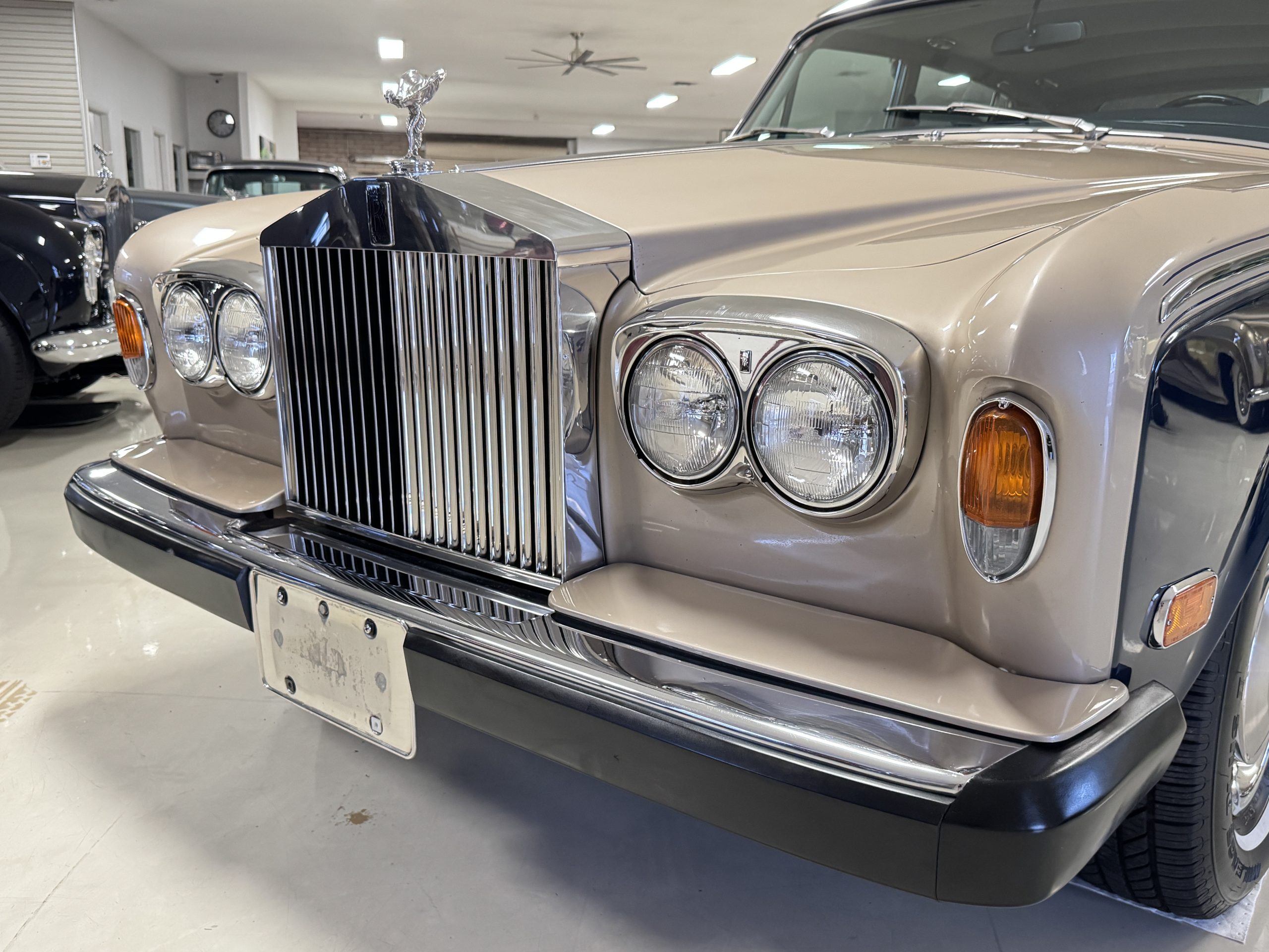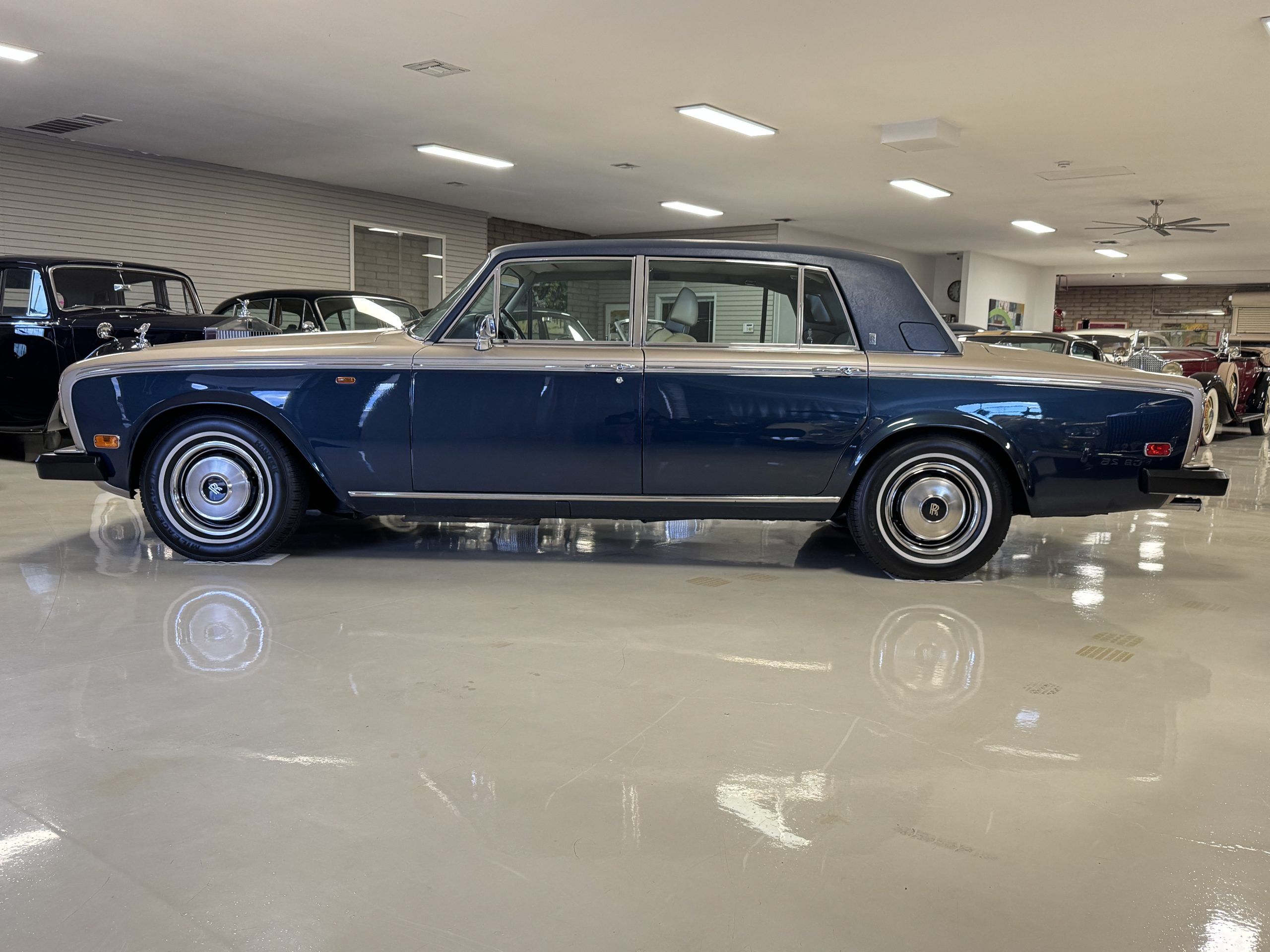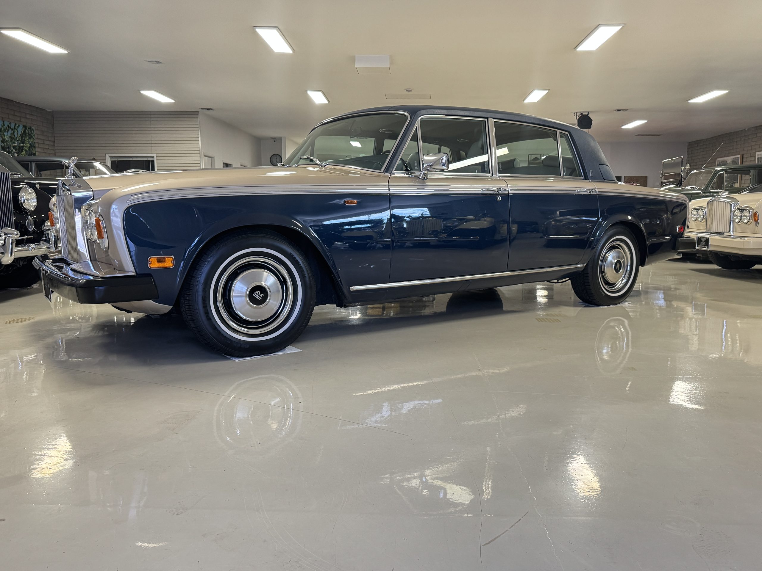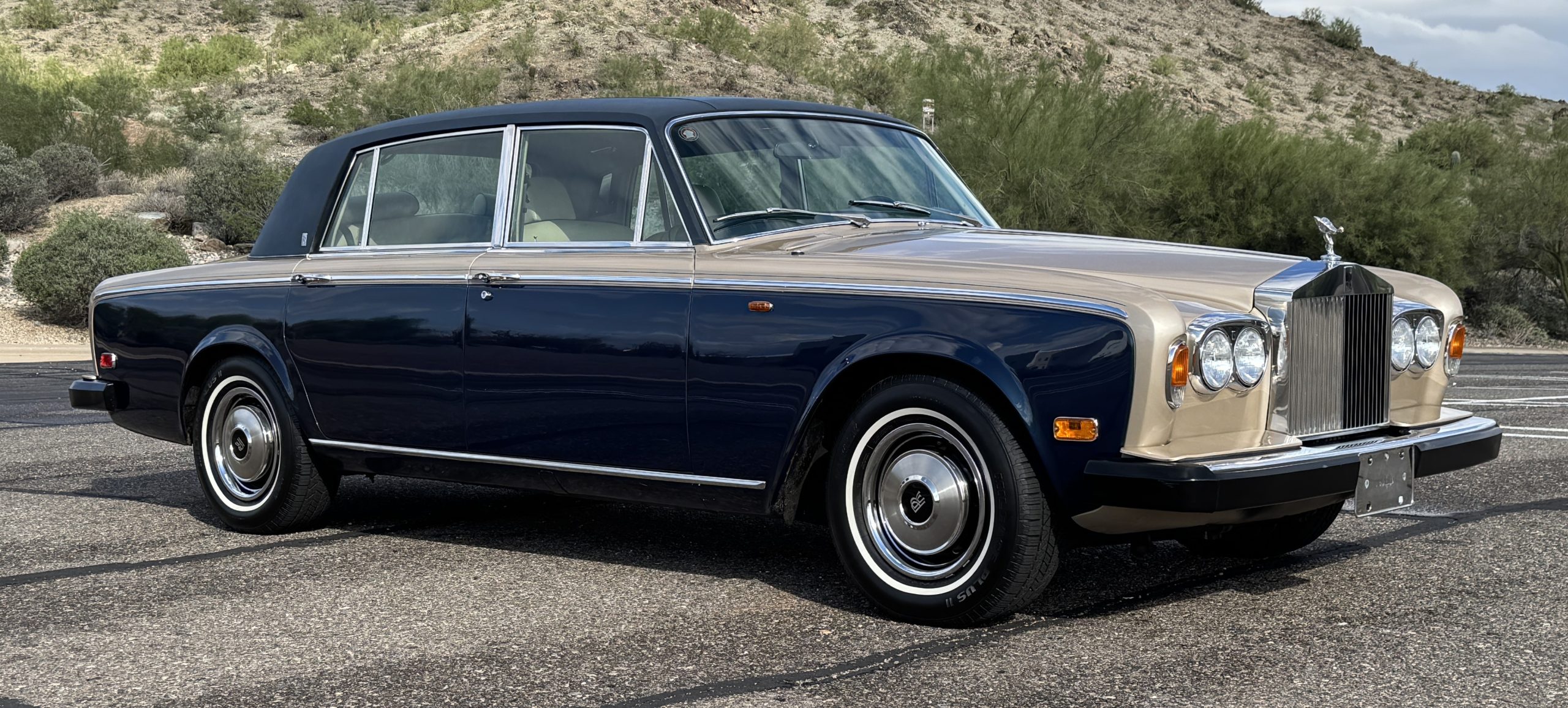 PRICE REDUCED TO SELL! The 1980 Rolls-Royce Silver Wraith II represents the final evolution of the celebrated Silver Shadow series and stands as a pinnacle of British motoring refinement. As the long-wheelbase counterpart to the Silver Shadow II, the Silver Wraith II offered a heightened sense of formality, distinguished by its extended proportions, Everflex roof, smaller rear opera window, and elegant Corniche/Camargue-pattern wheel covers. Chassis number LRL039349, finished in an exquisite two-tone combination of Silver Sand over Athenian Blue with coordinating Dark Blue fine lines, presents in remarkable condition with just 43,555 original miles. As a final-year example, this Silver Wraith II encapsulates the craftsmanship and dignity that defined the marque’s coachbuilt era, making it both an exceptional driver and a highly collectible motorcar.