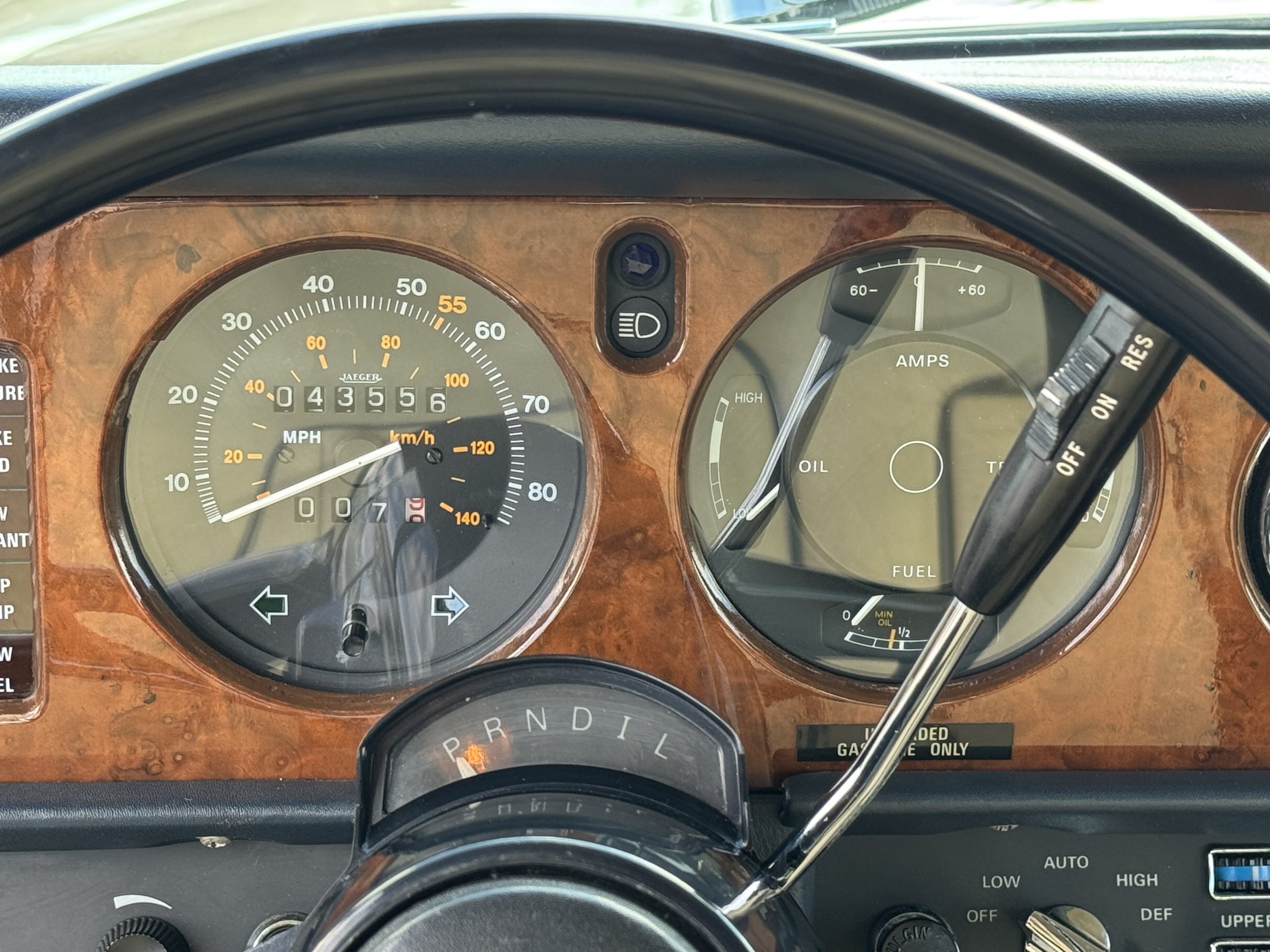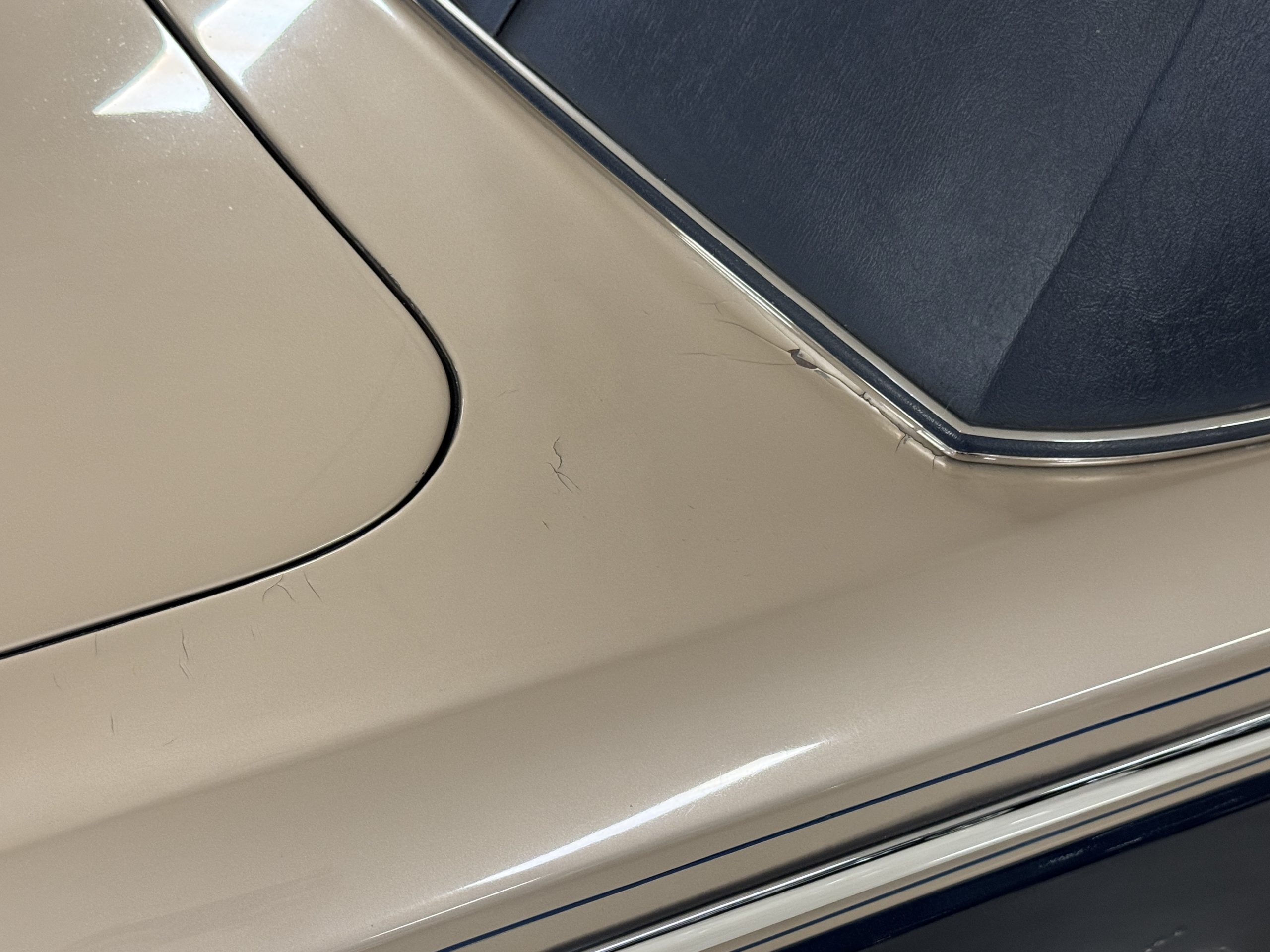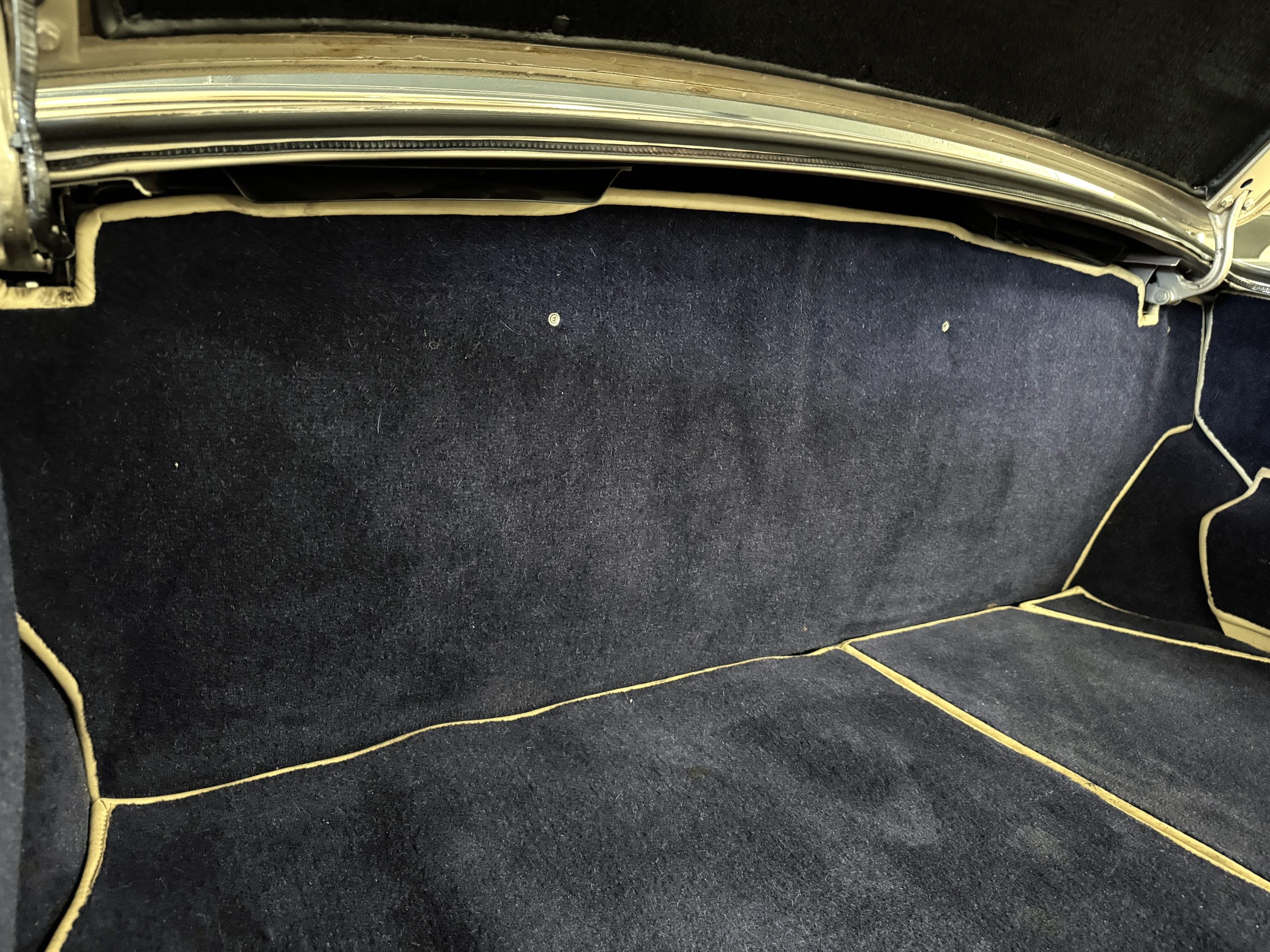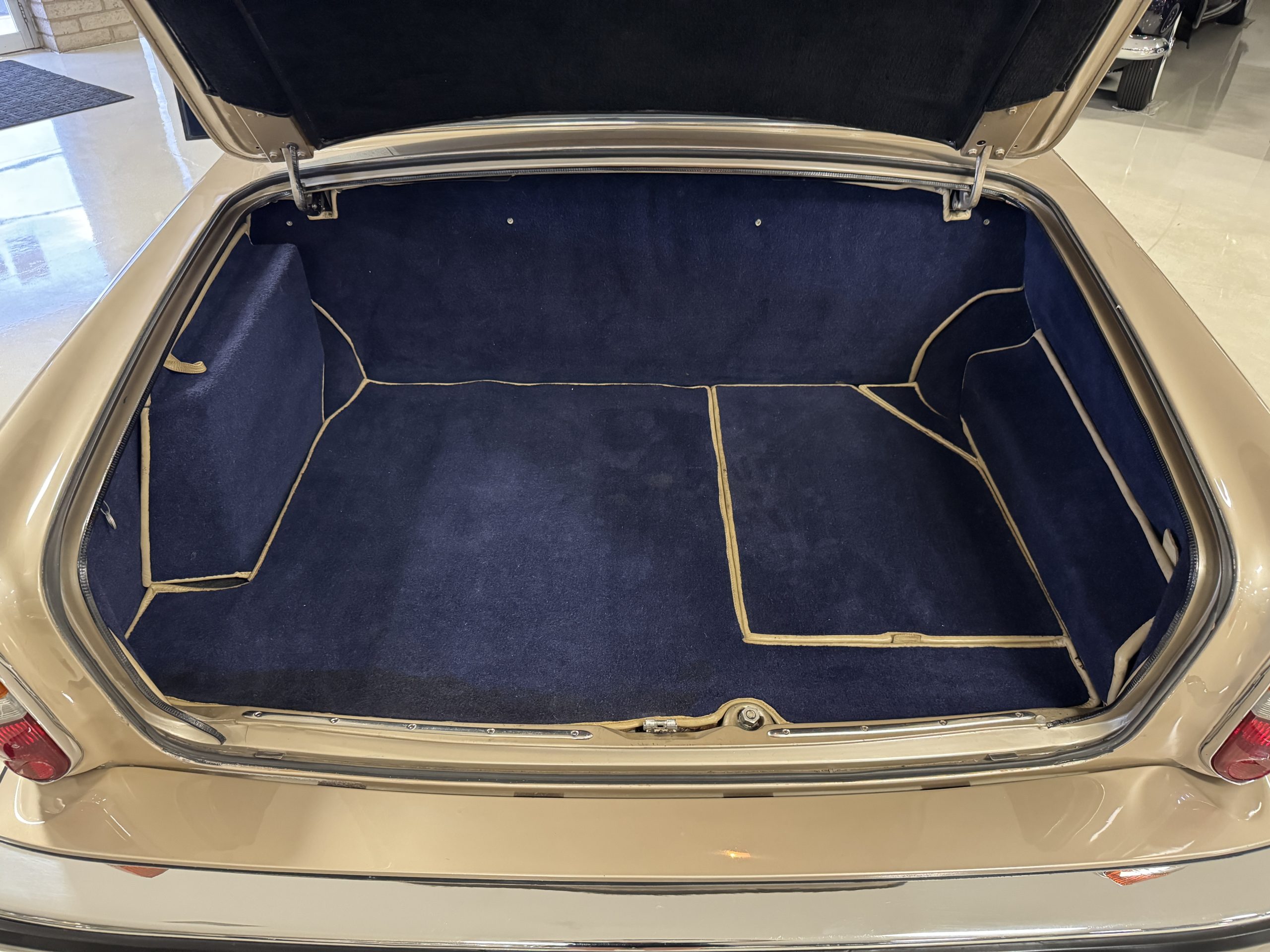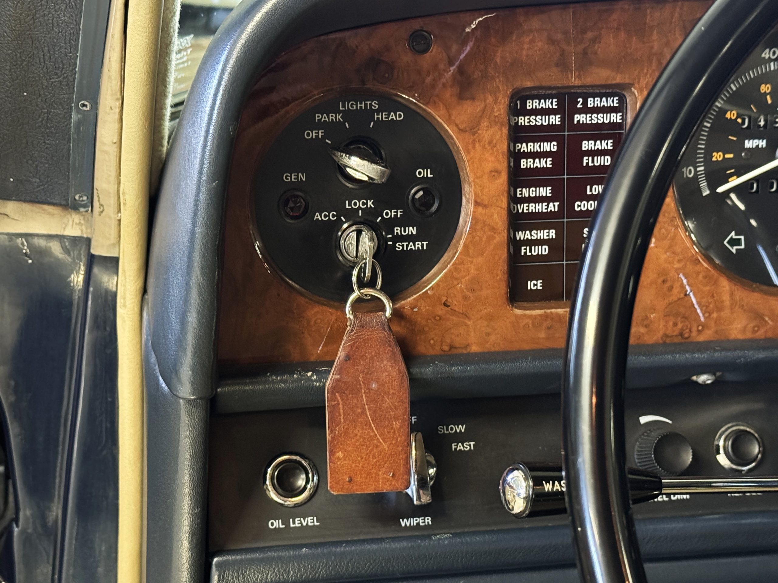 Inside, the Rolls-Royce presents the serene luxury expected of the brand. The cabin features original Beige Connolly hides with Dark Blue piping accents, showing gentle creasing consistent with age, complemented by beautifully preserved rich Lombardy walnut veneers. The Wilton wool carpeting and Dark Blue Mouton lambswool overlays remain in very good condition, reflecting careful ownership. The hides display the rich depth and texture typical of Connolly Vaumol leather with Luxan Grain, a natural, hand-rubbed finish that gives the leather its subtle burnished tones. Soft, supple, and well-preserved, the leather presents with just the slightest, correct patina. Every surface reflects the care of its owners, and the quality craftsmanship Rolls-Royce is known for. Interior amenities include dual-zone automatic climate control with functioning cold air conditioning, a Blaupunkt AM/FM stereo with Pioneer cassette deck, power locks and cruise control. Overall, the interior remains a warm, inviting environment that reflects both craftsmanship and comfort.
