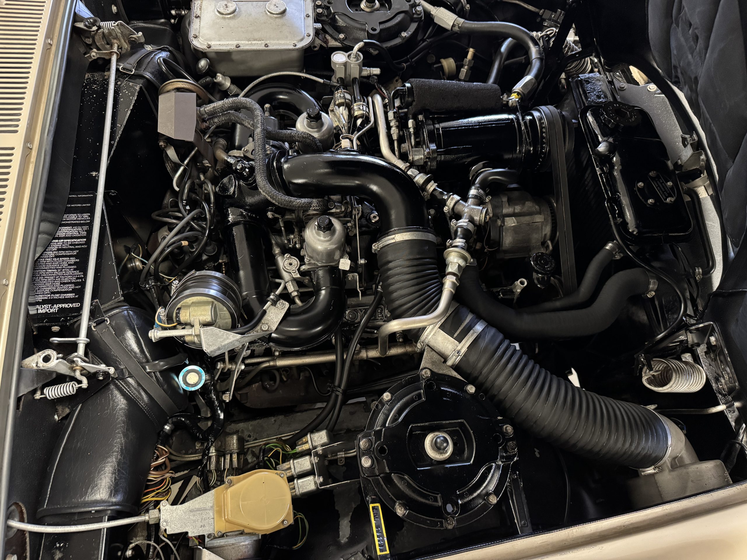 Mechanically, this Silver Wraith II is powered by the venerable 6.75-liter V8 engine paired with a smooth GM-sourced three-speed automatic transmission. The car retains Rolls-Royce’s hallmark hydropneumatic self-leveling suspension, offering a “magic carpet” ride that isolates occupants from the road. Four-wheel disc brakes remain firm and responsive, and the steering and suspension hydraulics perform smoothly. The car is accompanied by a Rolls-Royce build sheet, matching numbers confirmation from the RROC, partial service records and a nearly complete factory tool kit, missing only one bulb from the replacement set. The car’s road manners are serene and stately, perfectly befitting the grandeur of the Silver Wraith II.