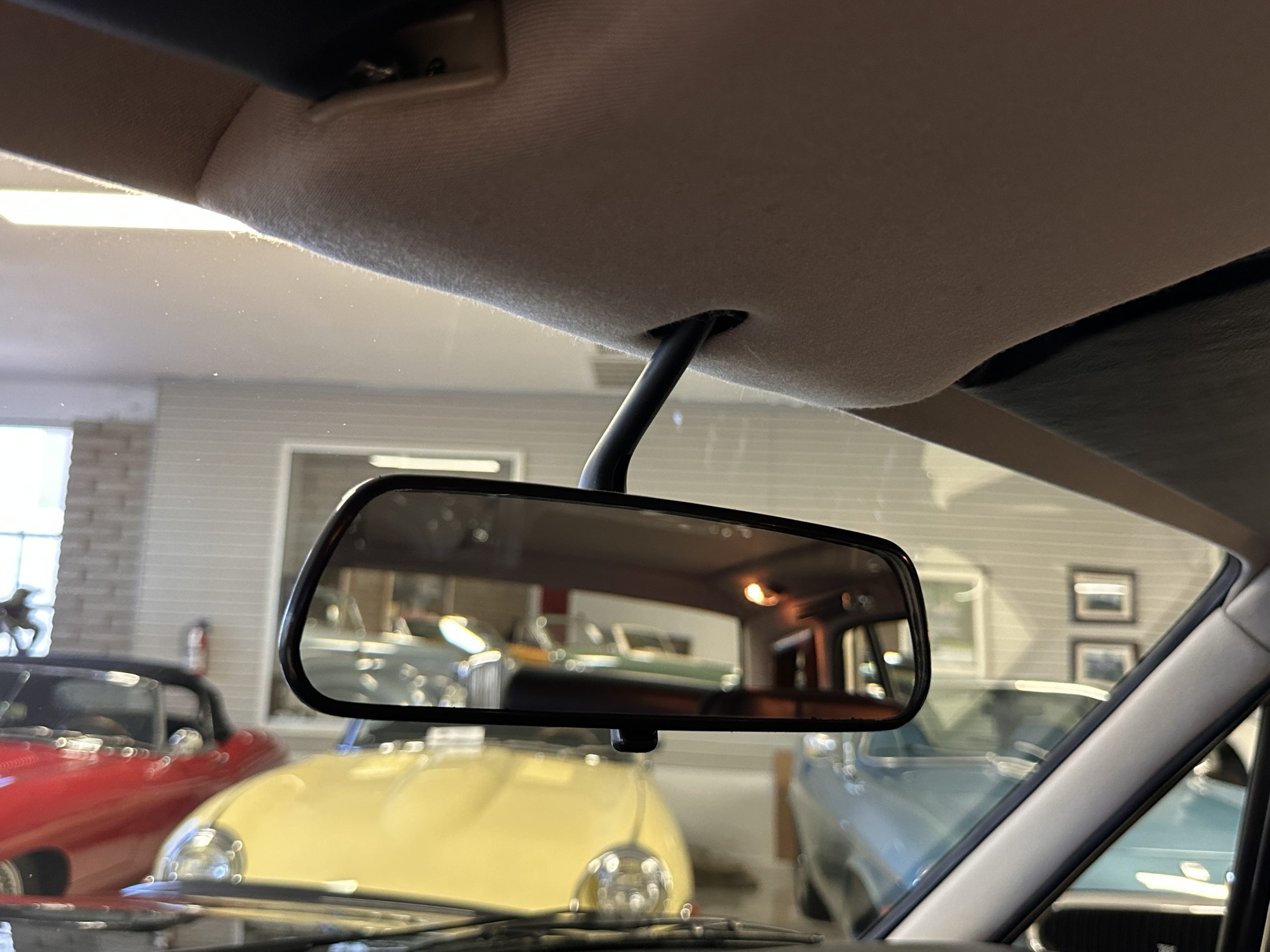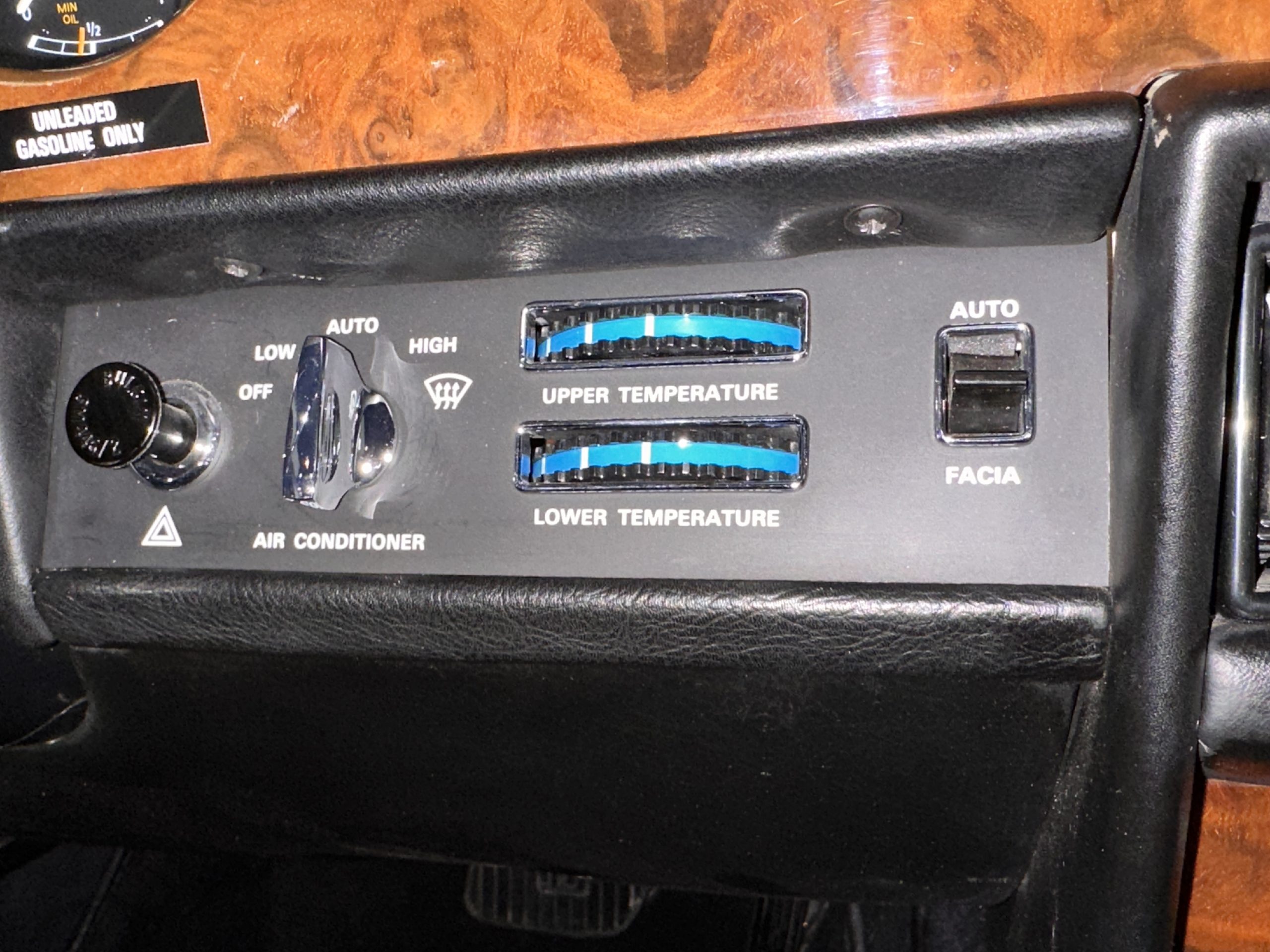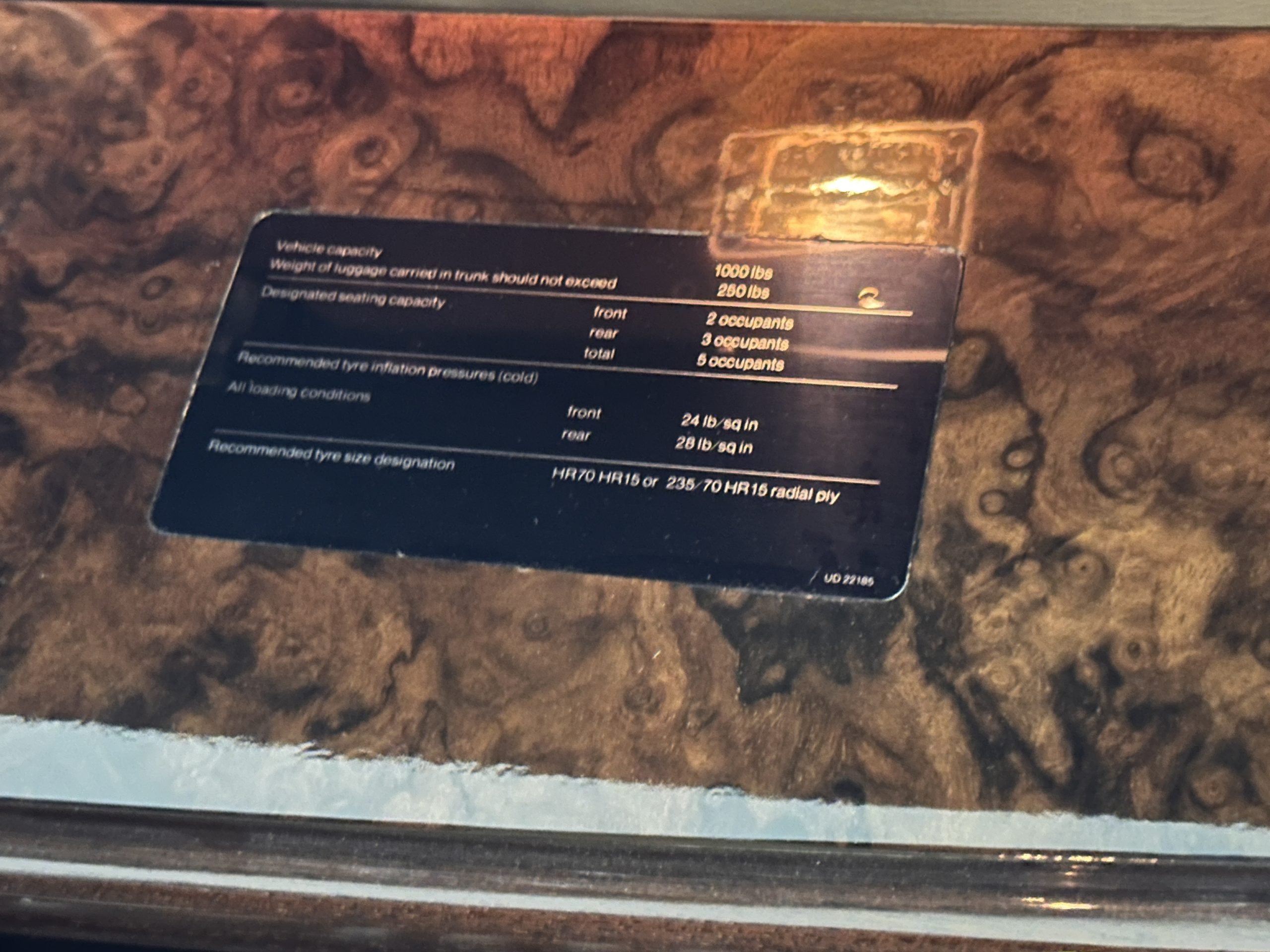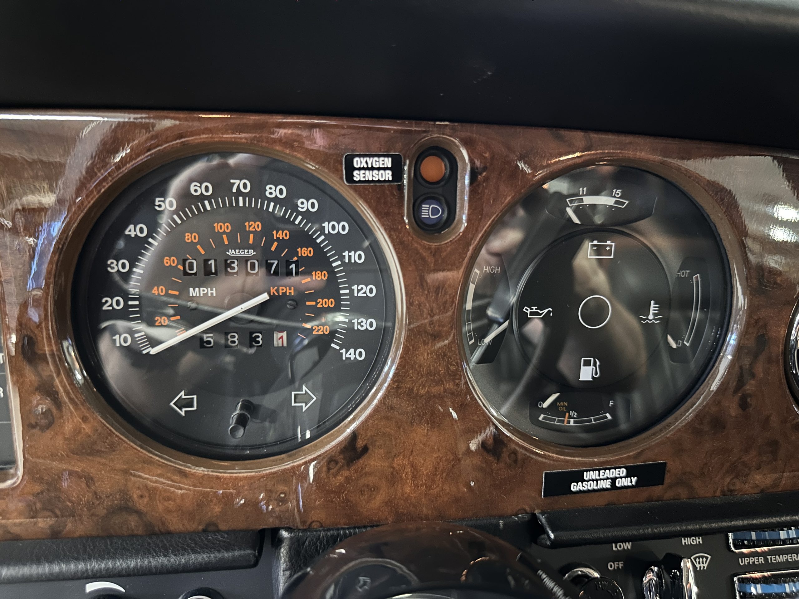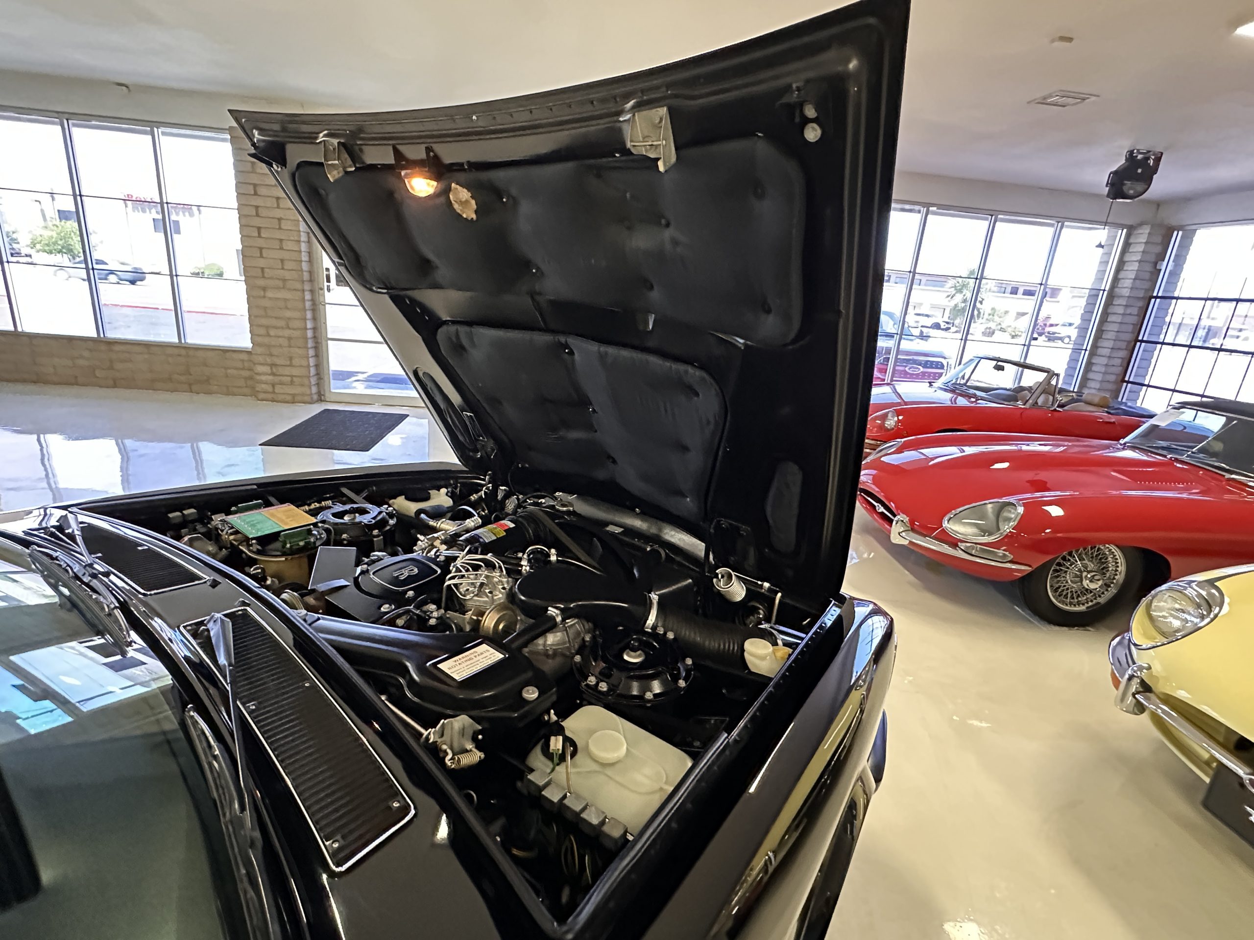 The Black leather interior is in excellent condition with only very minimal creasing and without tears. The leather is also fairly soft and truly exceptional for original 40-year-old leather. The Black Wilton wool carpeting is bound with black leather and has its black mouton sheepskin overlays. The gorgeous burl walnut wood has been refinished and looks perfect. The steering wheel has been upgraded to a wood and alloy Nardi wheel in perfect condition and the original wheel is included in the sale. The picnic tables have also been beautifully refinished, and the often-missing footrests are present for the rear seat passengers. The two rear mirrored vanities were not refinished and have the normal cracking present. Other than the wood, all of the interior is original and exceptional.