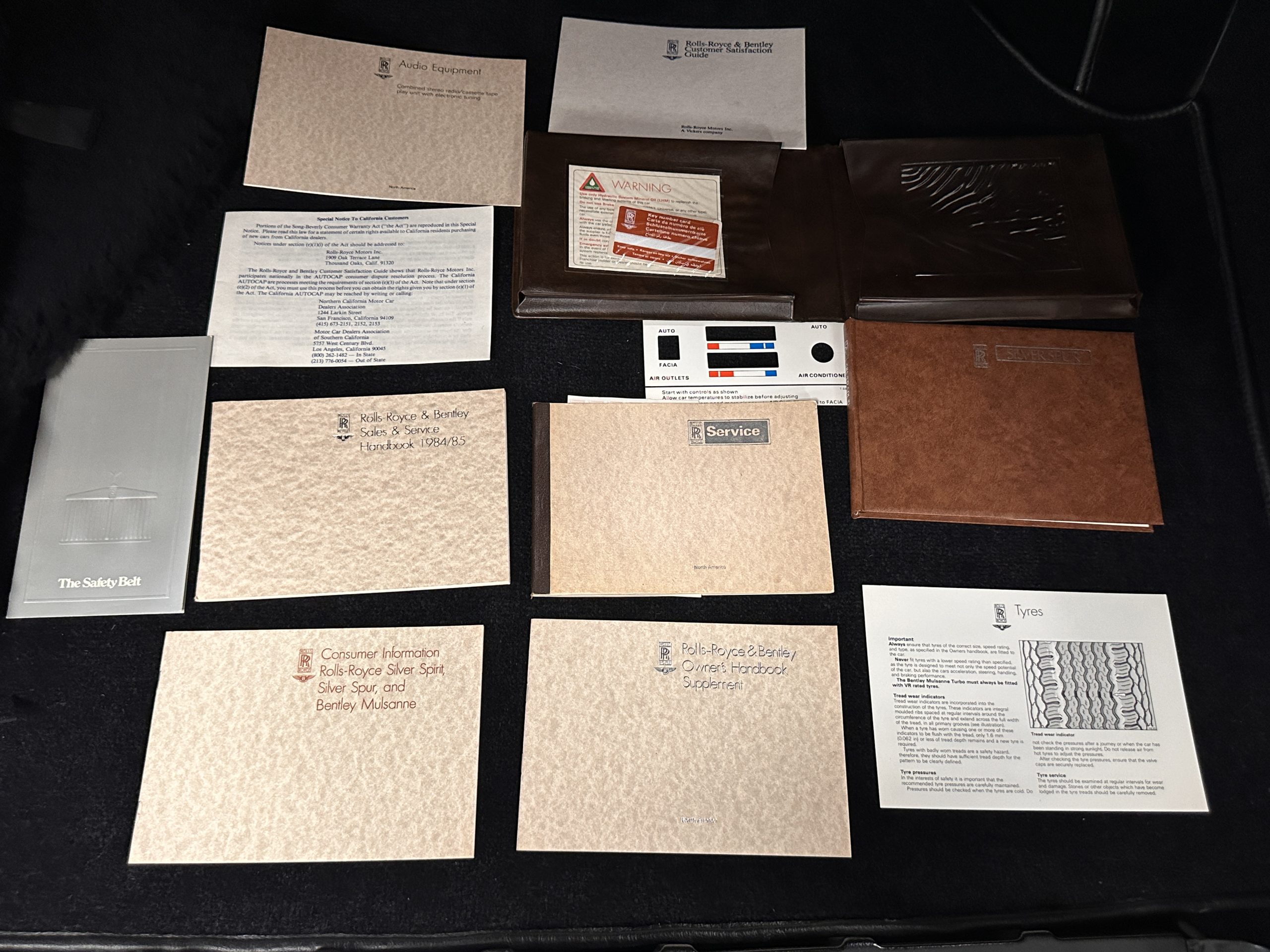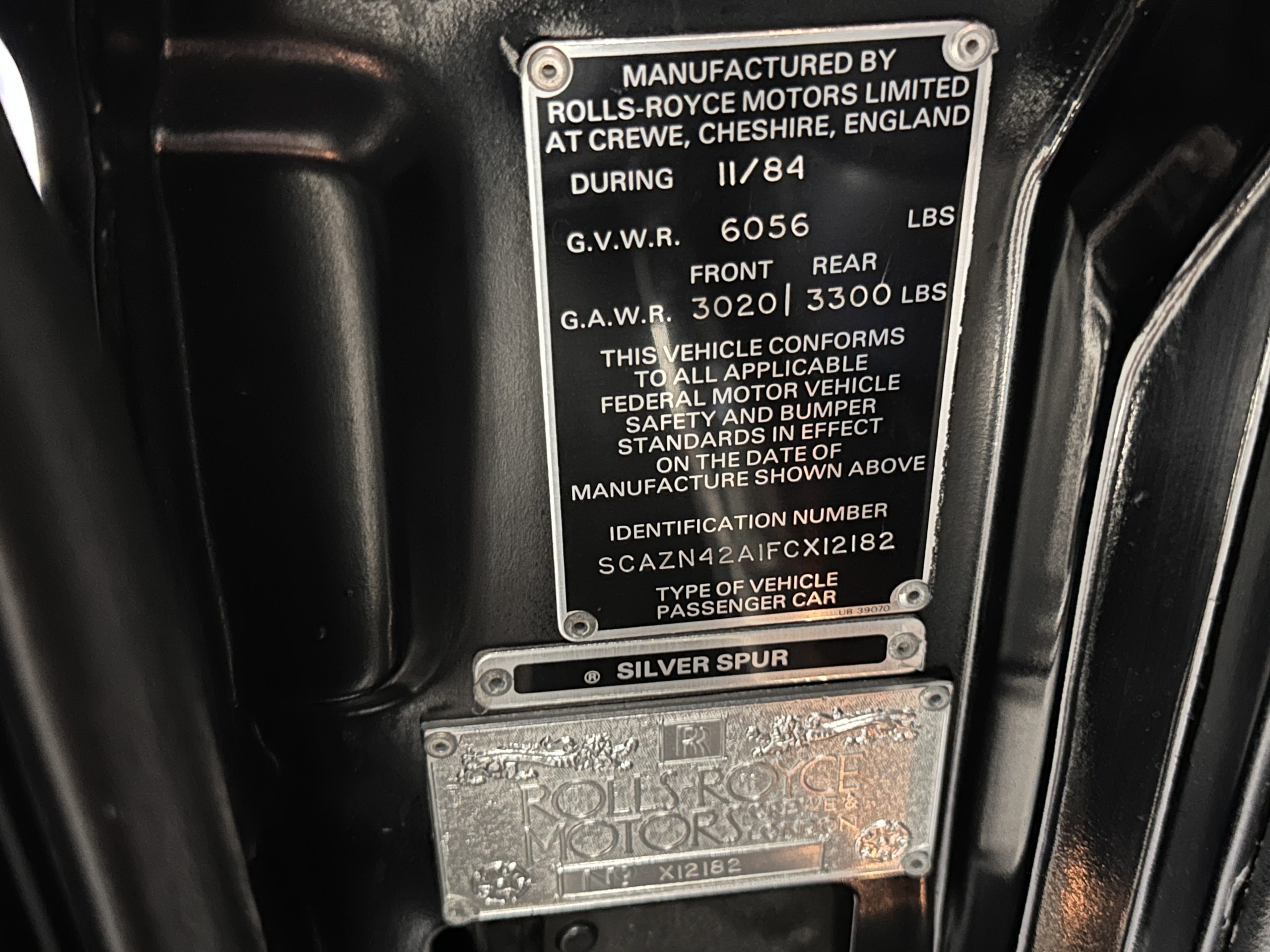 There were 671 LHD Silver Spurs produced worldwide in 1985. This Silver Spur was ordered by Roy Carver Inc. of San Diego on the 31st of July 1984. By the 23rd of November 1984, the Spur was shipped to Lyndhurst via the Sealand Voyager arriving on the 5th of December. The Spur was sold by Terry York Motor Cars in Encino, CA on December 28th, 1984, to the Berman Car Company of Chatsworth, CA for transport of VIP guests of Hollywood studios and entertainments companies. The Spur was faithfully serviced by marque specialist Rick’s Automotive in Granada Hills, CA. By 1990, the Rolls had accumulated 5,100 miles. This Rolls was acquired by its present owner, Mr. Solakian from Northern California, in October 2017 with just over 8,200 miles accumulated since new. He then sent it to the local Rolls-Royce engineer who started his career in Crewe at the factory. The Rolls now has just over 13,000 miles and is in near showroom condition in every way.
