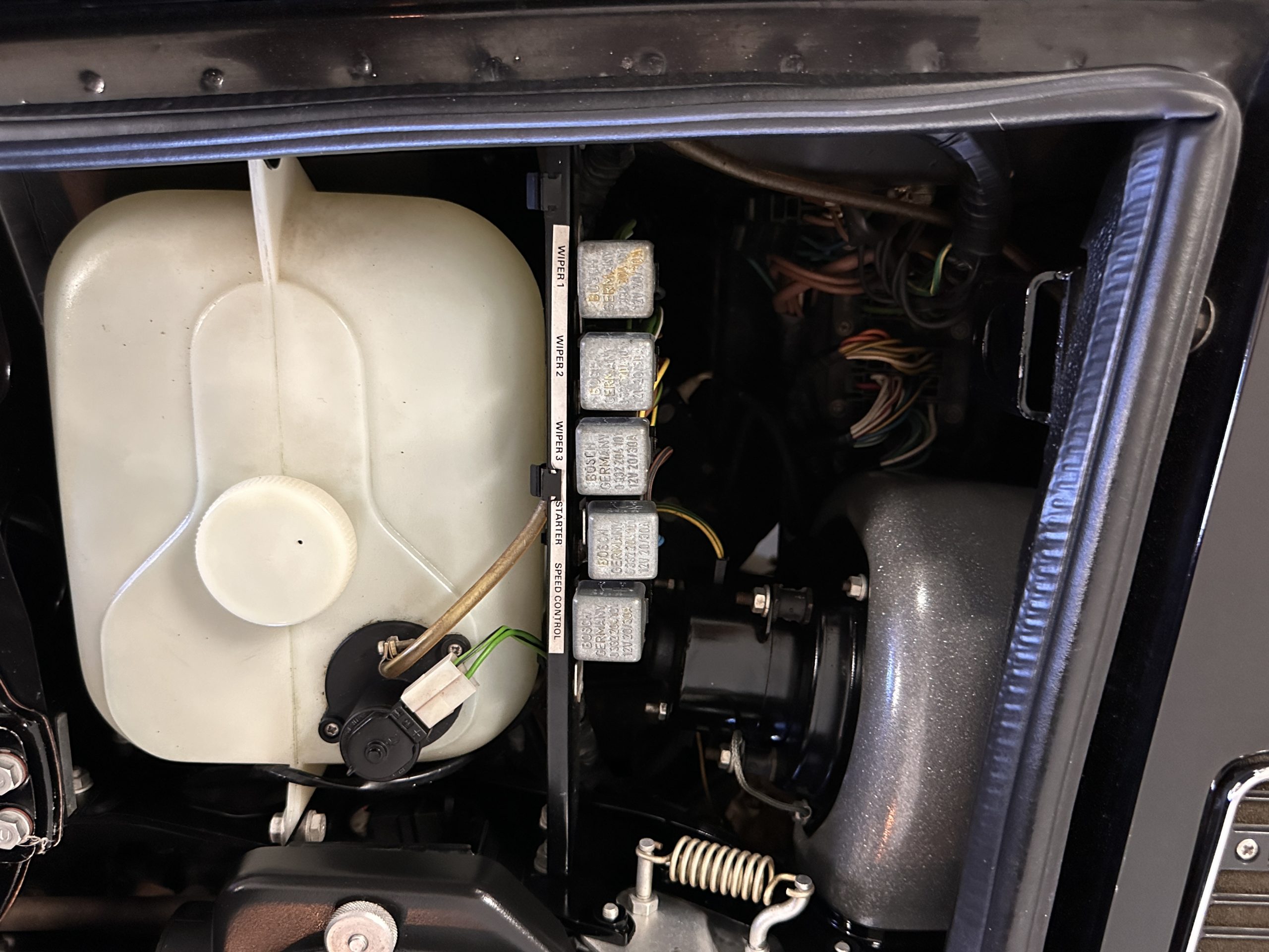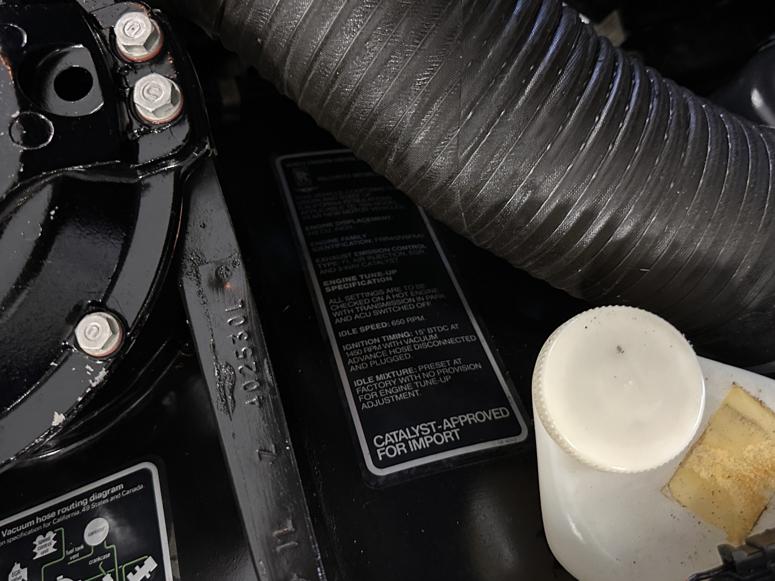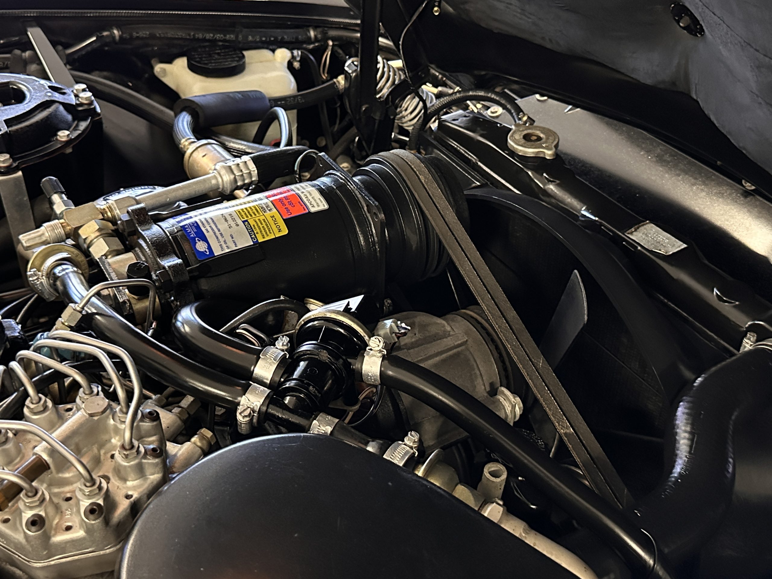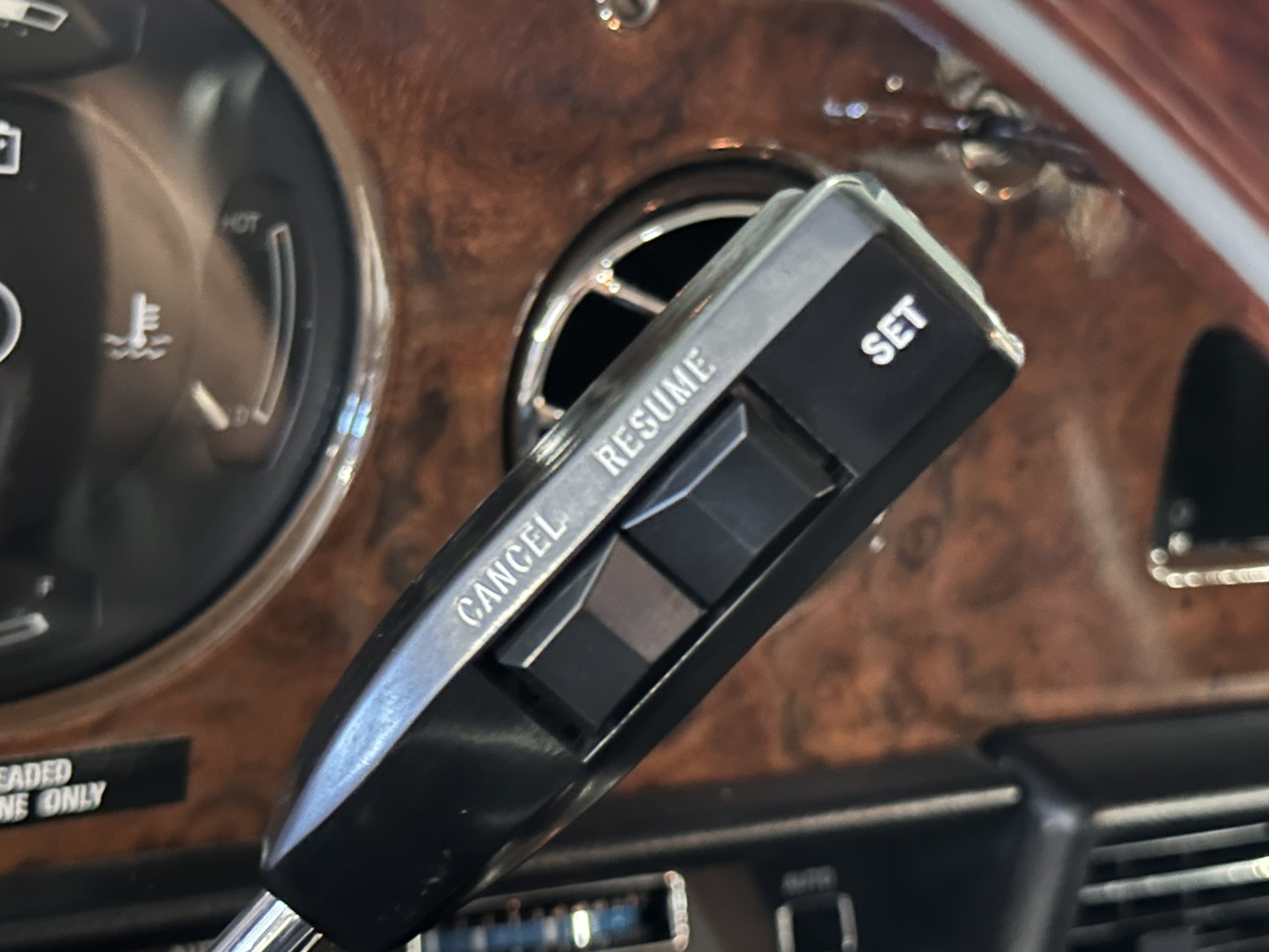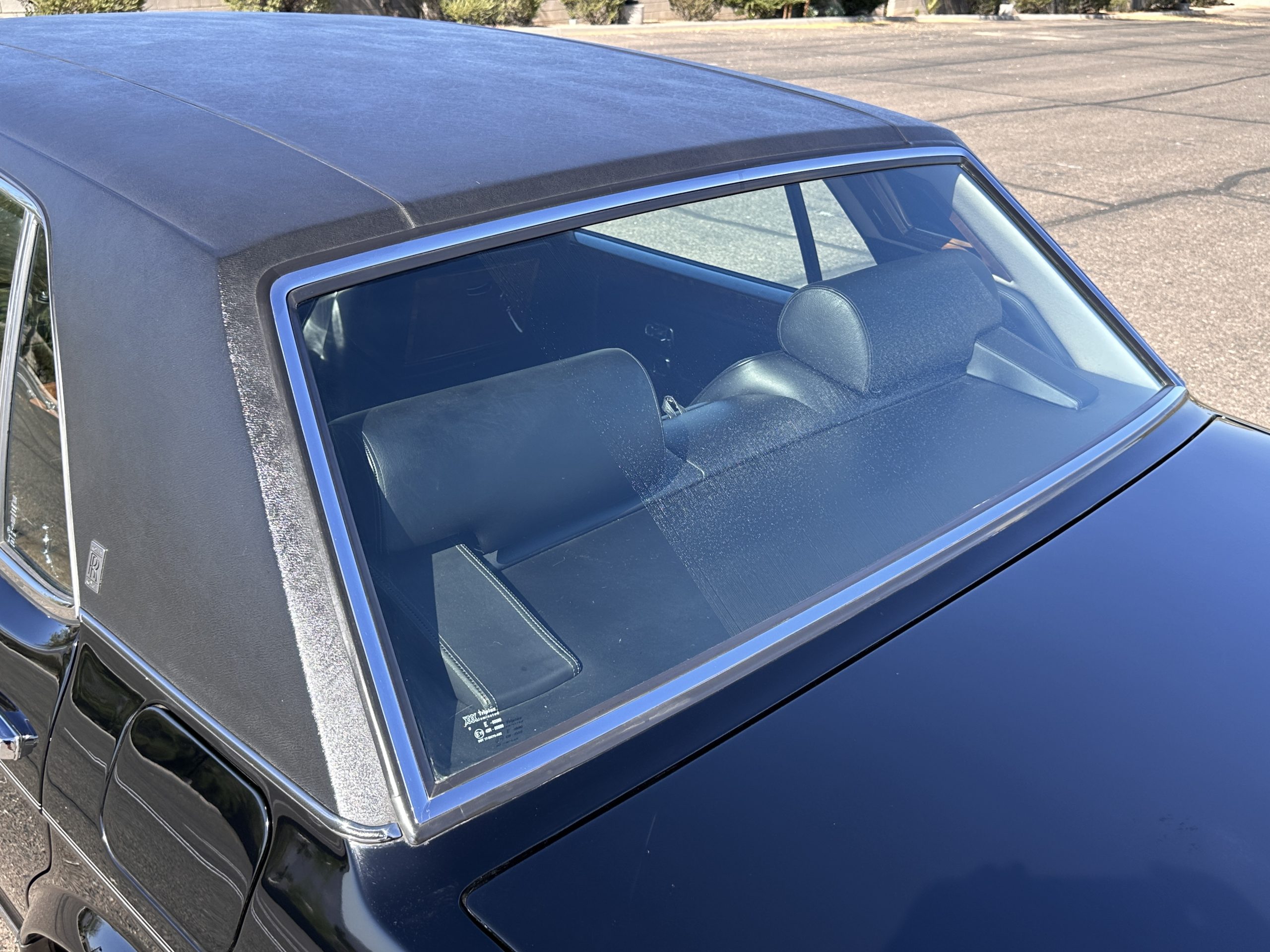 The original black livery (Paint Code 9500701) is spectacular, truly appearing as new with minimal evidence of being nearly 40 years old. The paint has perfect shine and luster and is complemented with double Silver coach stripes. The Black Everflex top (Code 5218/DH) is also in excellent condition without the normal sub-surface rust. It also looks in showroom condition. The chrome and stainless are also in fantastic condition with no issues. The white walled radials were installed by the present owner in 2017 and are in excellent condition.