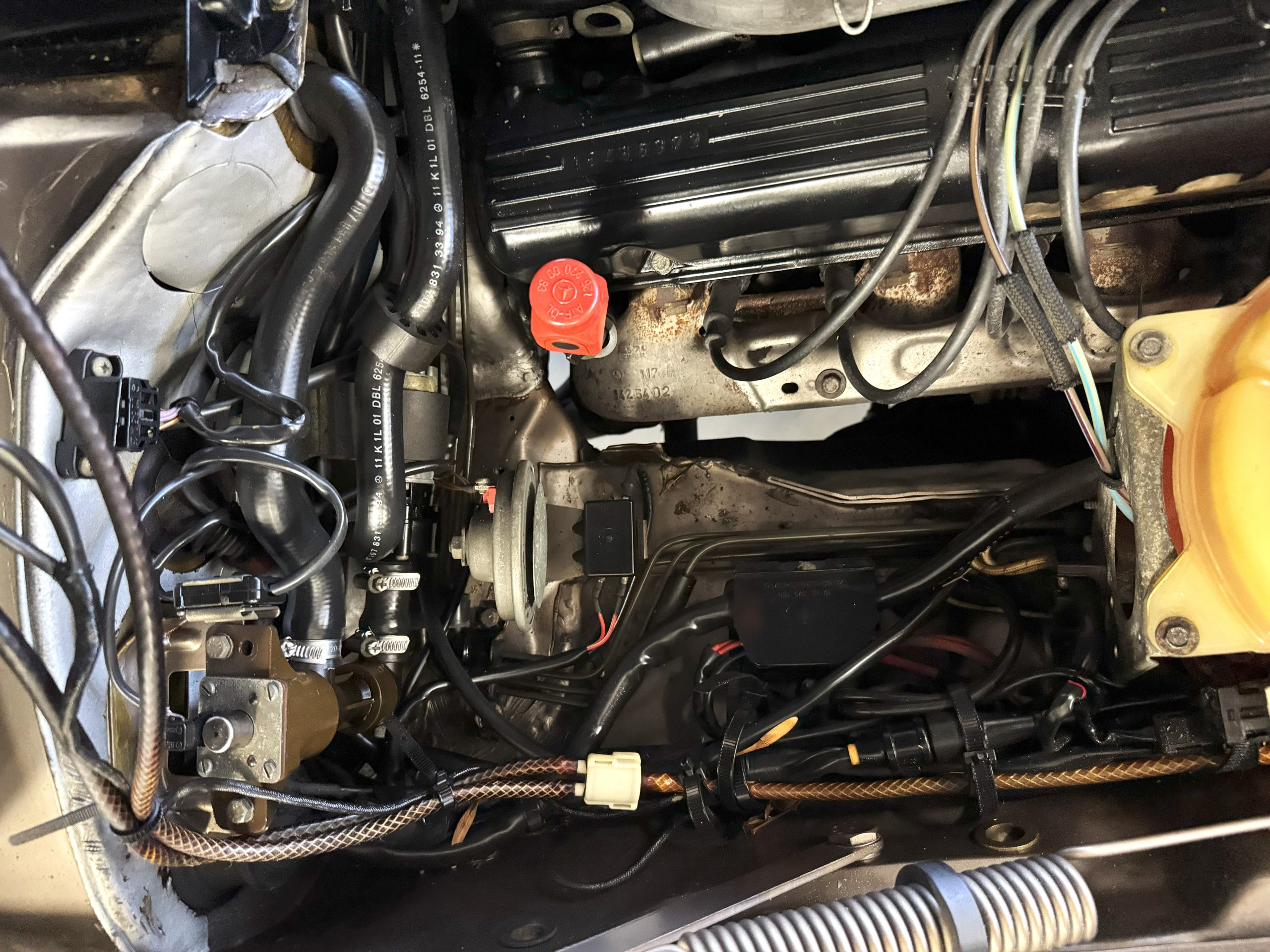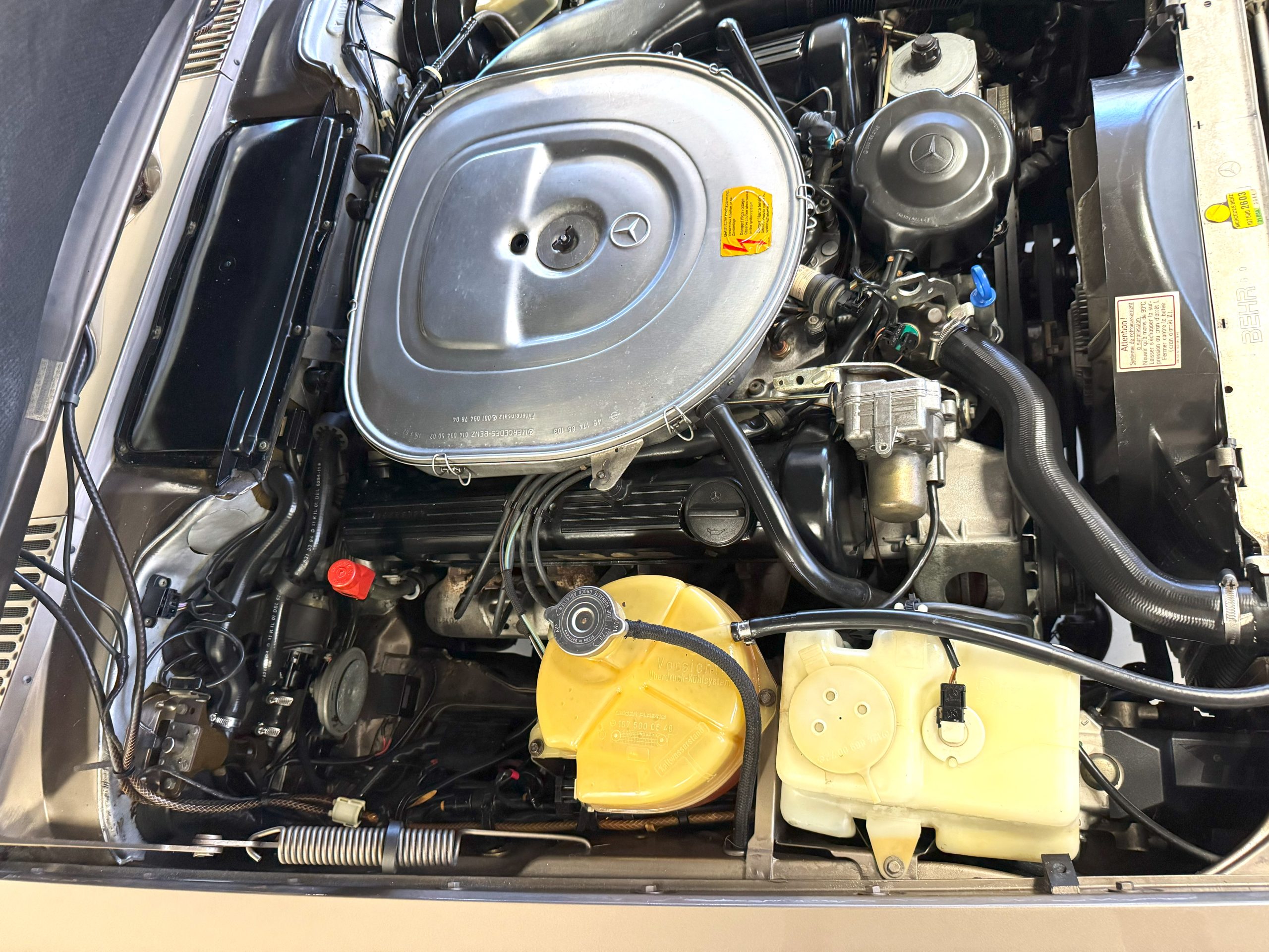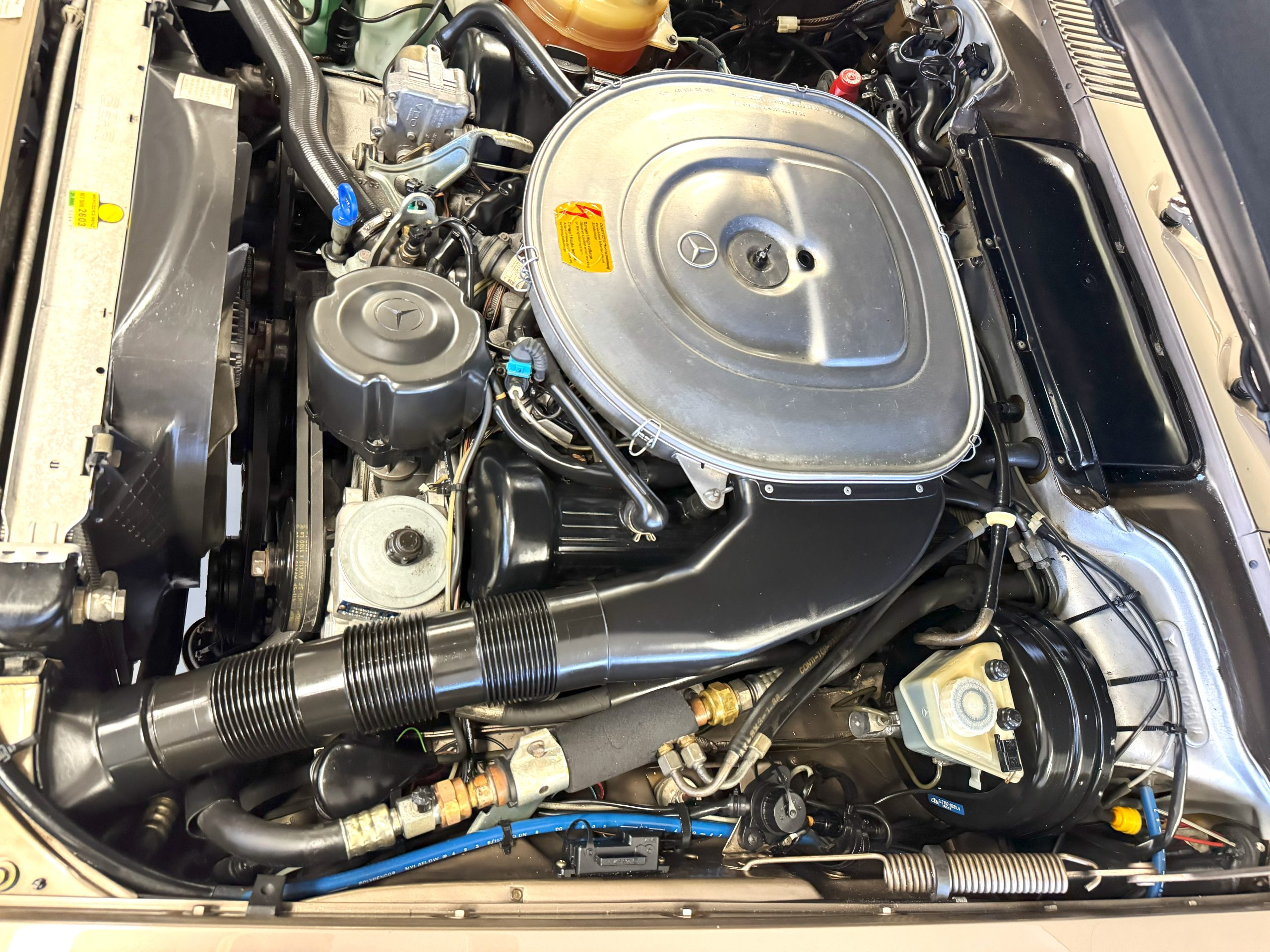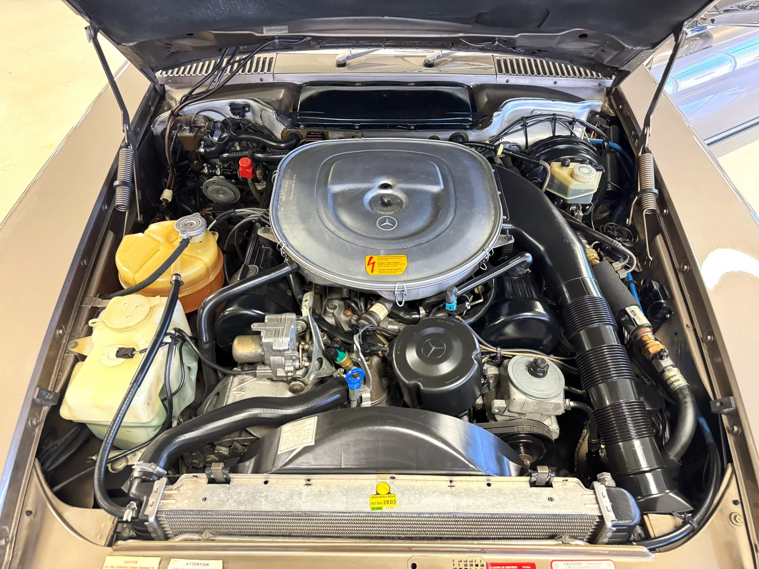 Power is supplied by the 5,549 cc SOHC V8, rated at 225 bhp at 5,200 rpm, paired with a four-speed automatic transmission and Bosch fuel injection. This Mercedes has independent suspension at all four corners and four-wheel disc brakes that are all in working order. The engine bay presents cleanly and has benefitted from recommissioning in 2025 including new fuel pumps, fuel tank, air injection pump assembly, main engine computer and air conditioning recharge. This 560SL can be driven in comfort with confidence.