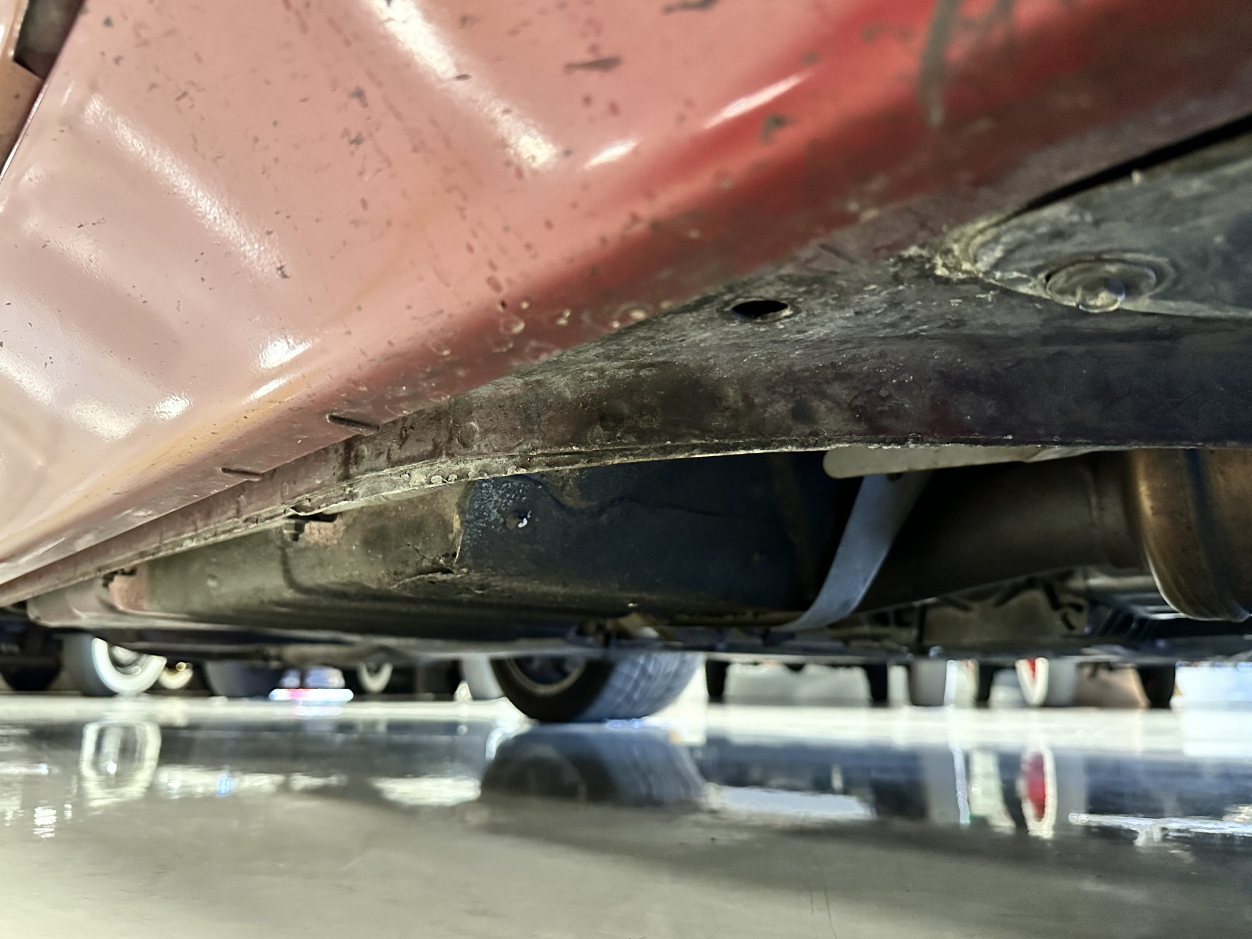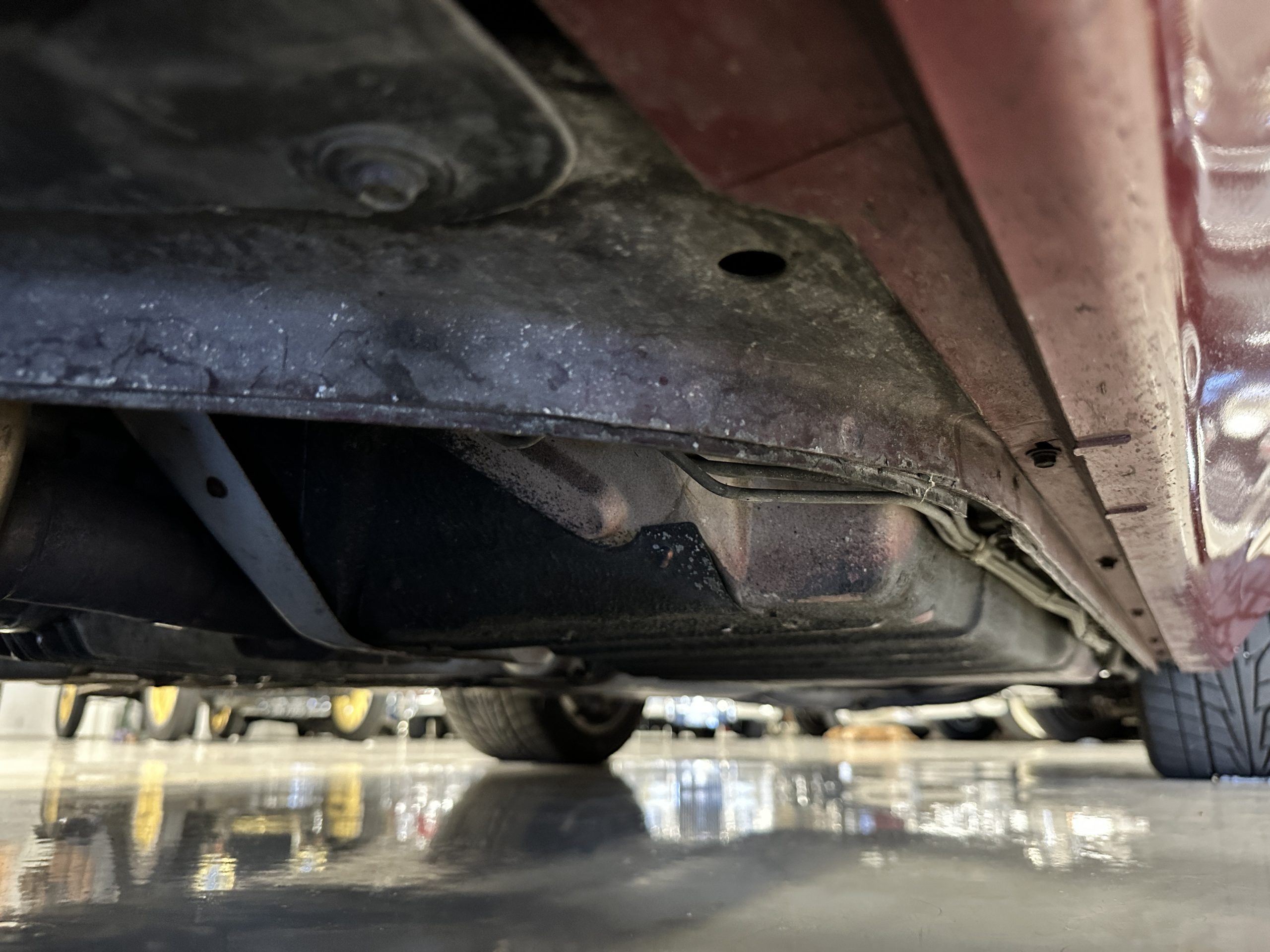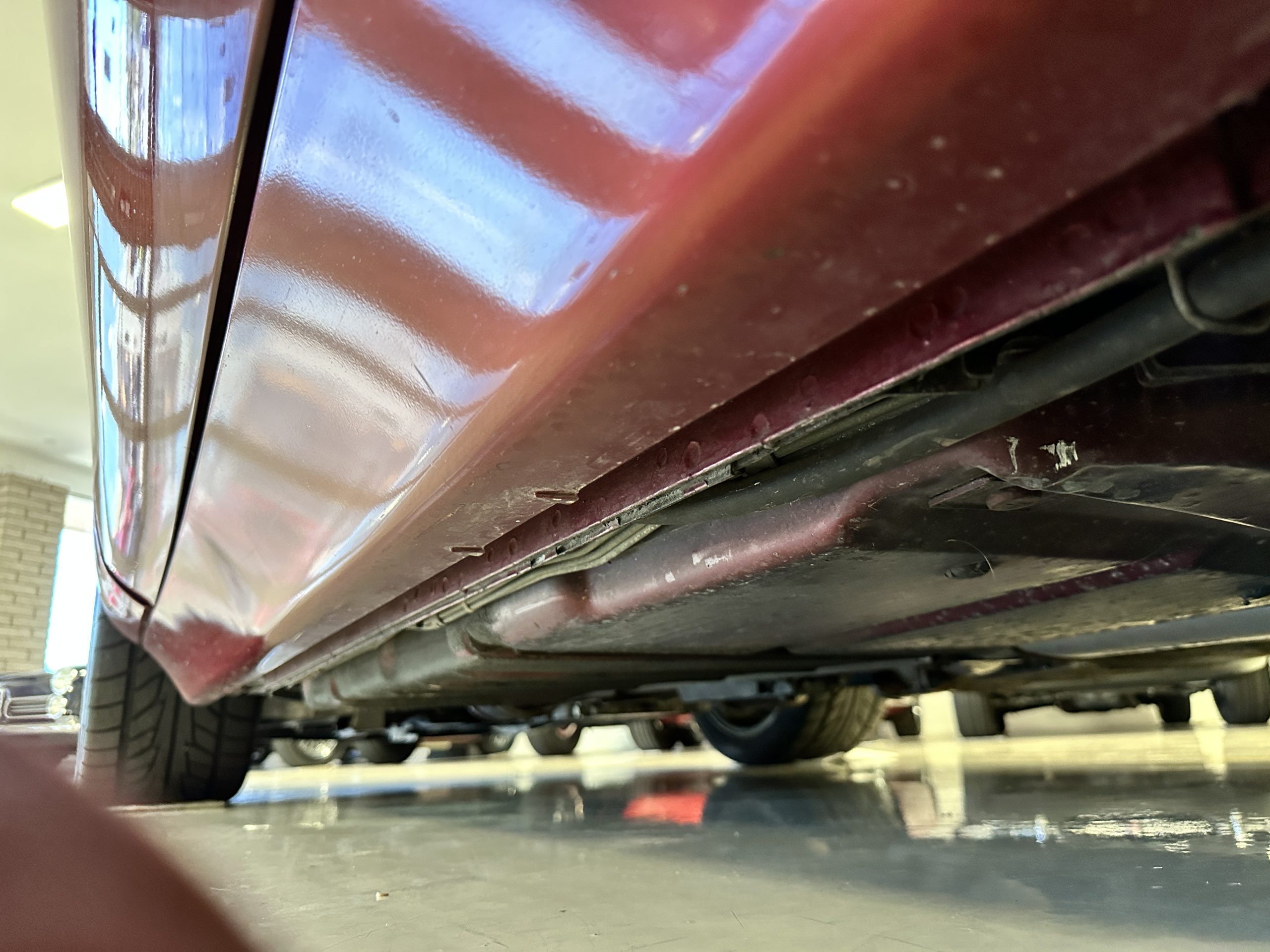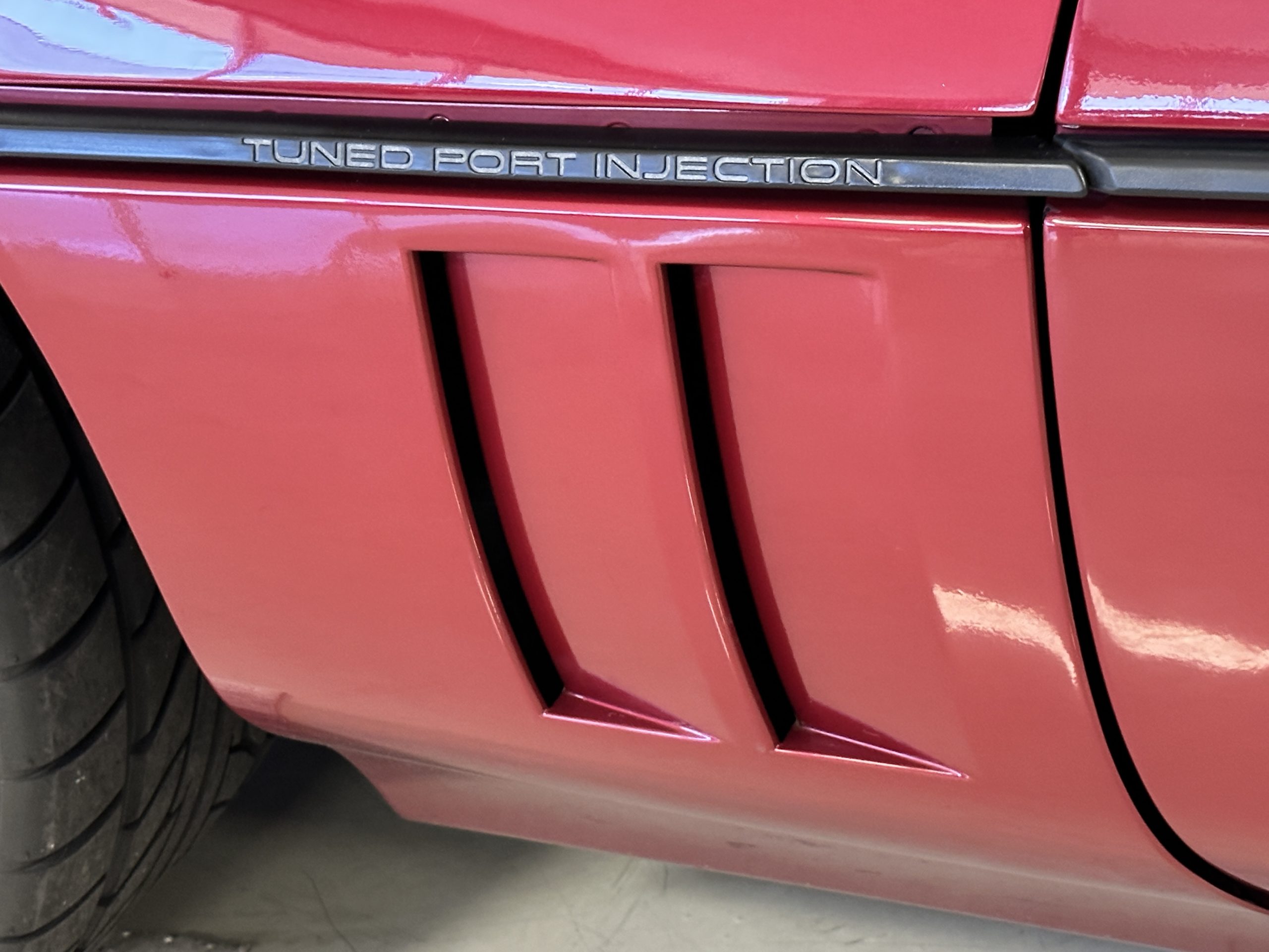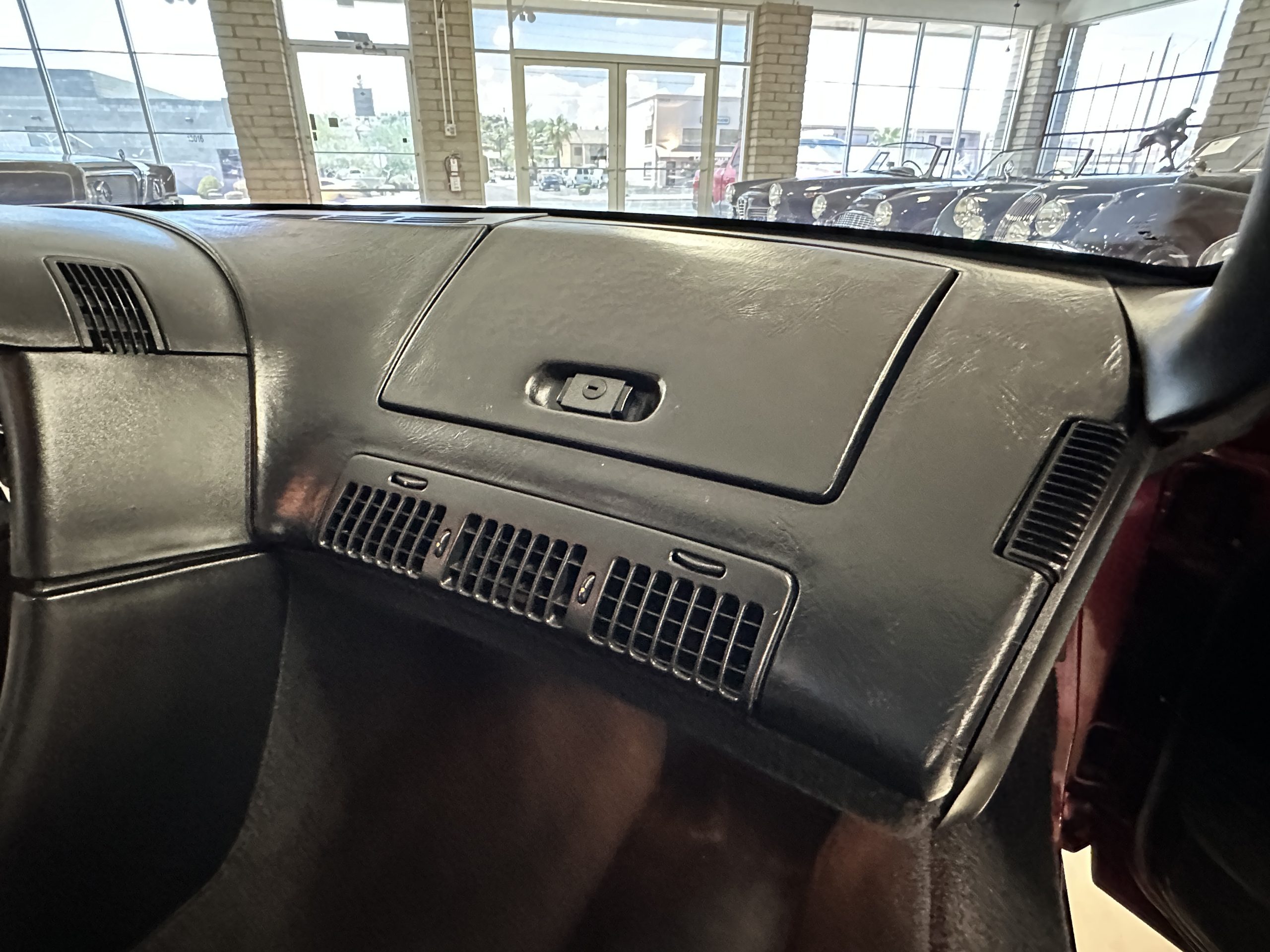 The livery is Dark Red Metallic with beautiful luster and shine. The paint shows very well overall with very few minor imperfections that are nearly unnoticeable and only visible upon very close inspection. The ZR-1 body is unique from the base Corvette in that the body work widens beginning at the leading edge of the doors and culminates in a tail that is 3” broader with a convex rear facia complete with square-lensed taillamps. The ZR-1 moniker is located on the lower right of the facia and will be visible to other drivers as you zoom past them. This additional rear width accommodates the Good Year Eagle P315/35ZR-17 Gatorback tires made specifically for the ZR-1. The cast aluminum “saw blade” wheels are in very nice condition, as is the optional removable roof panel. The ZR-1’s exterior is in beautiful overall condition and shows very well.