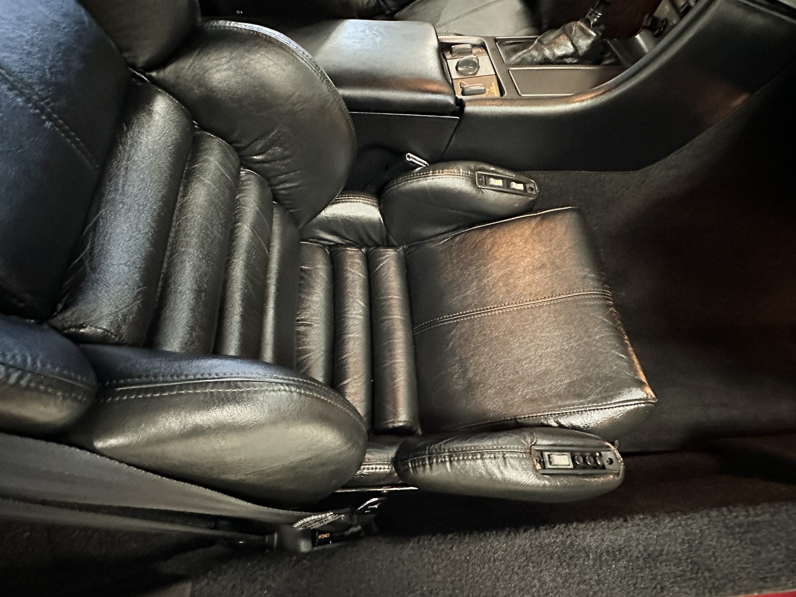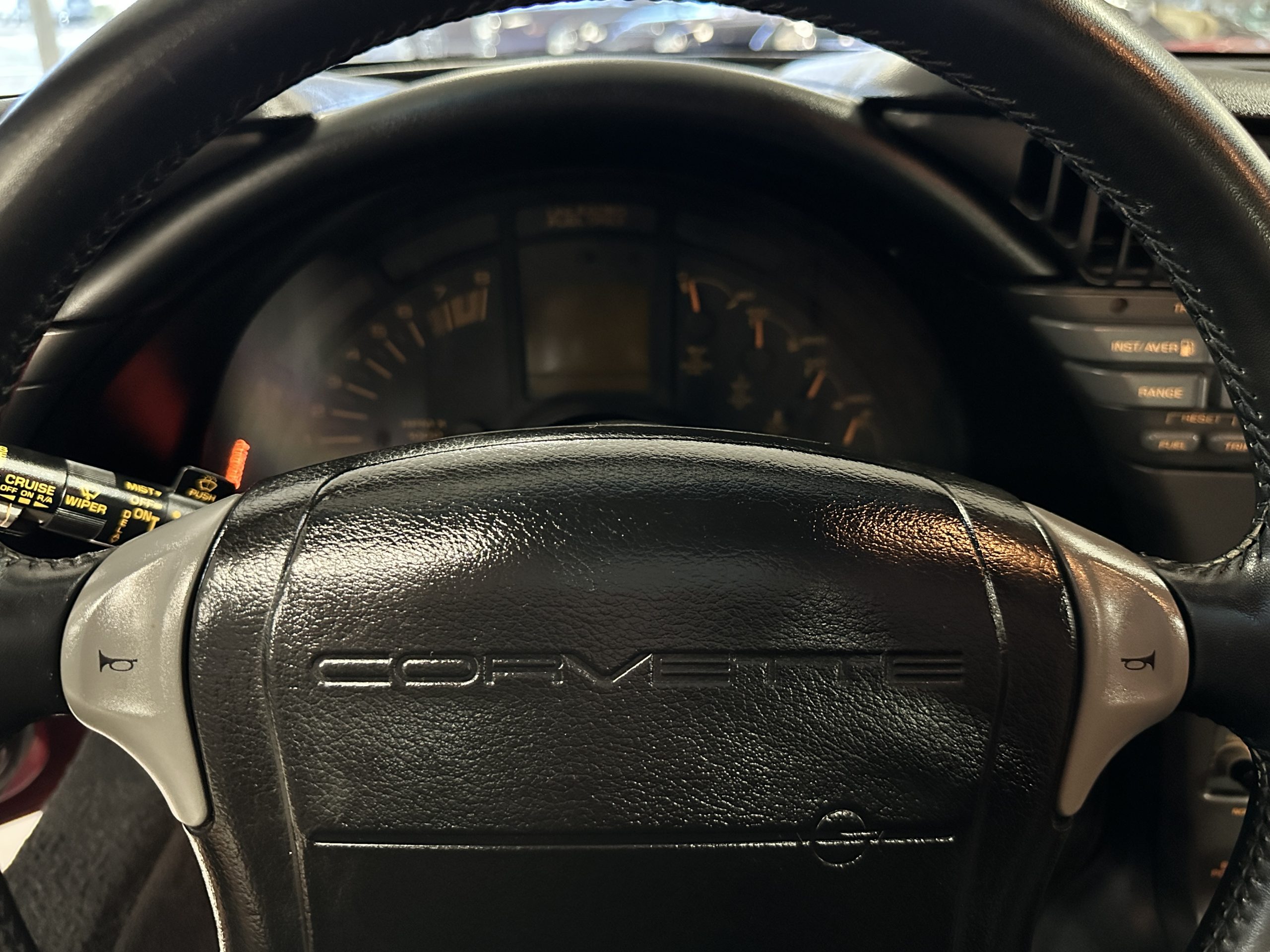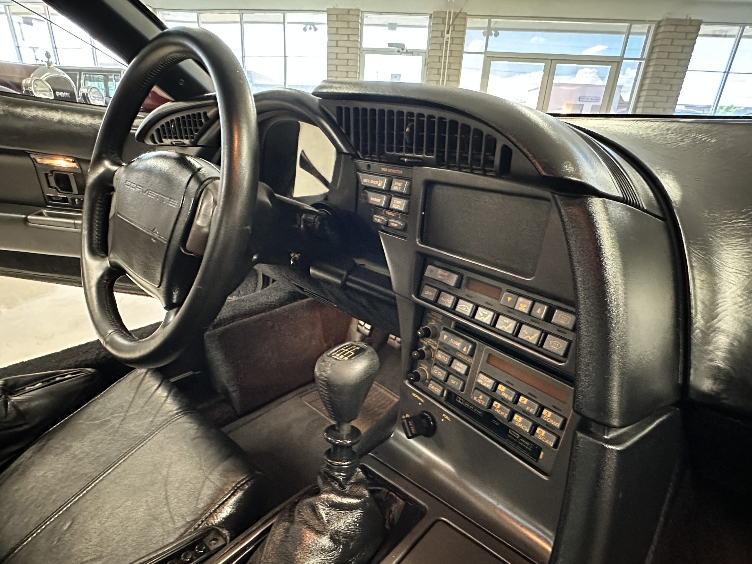 The interior is finished in black leather upholstered sport seats that show little wear and are in nice overall condition. The 6-way passenger and driver sport seats adjustable sport seats can be adjusted to an almost limitless number of driving positions. Even the seat wings and lumbar supports are power controlled. The dash shows well, and the instruments all function as designed. The black carpet is in nice condition, showing minimal wear. The interior is in nice condition reflecting the low mileage and care taken with this ZR-1.