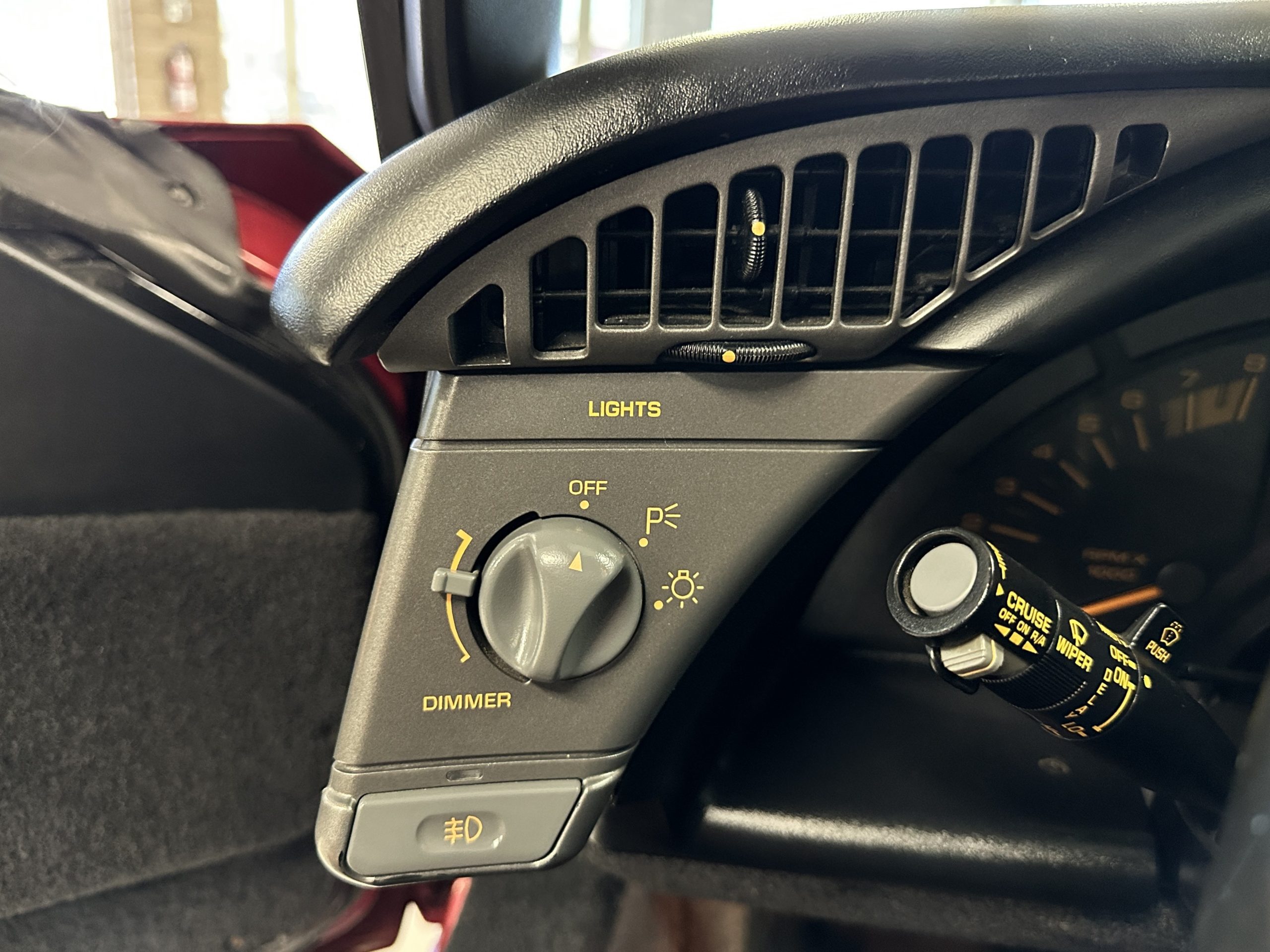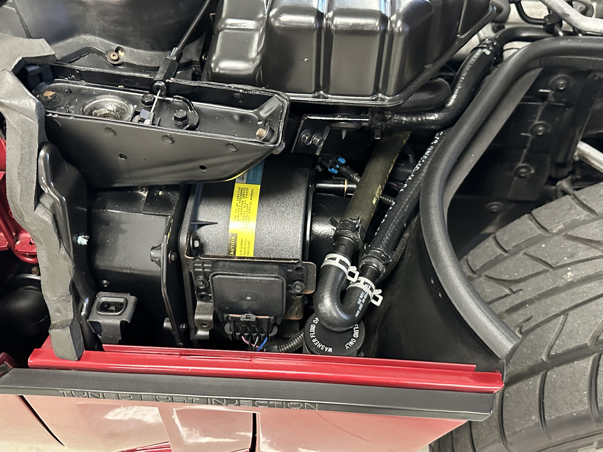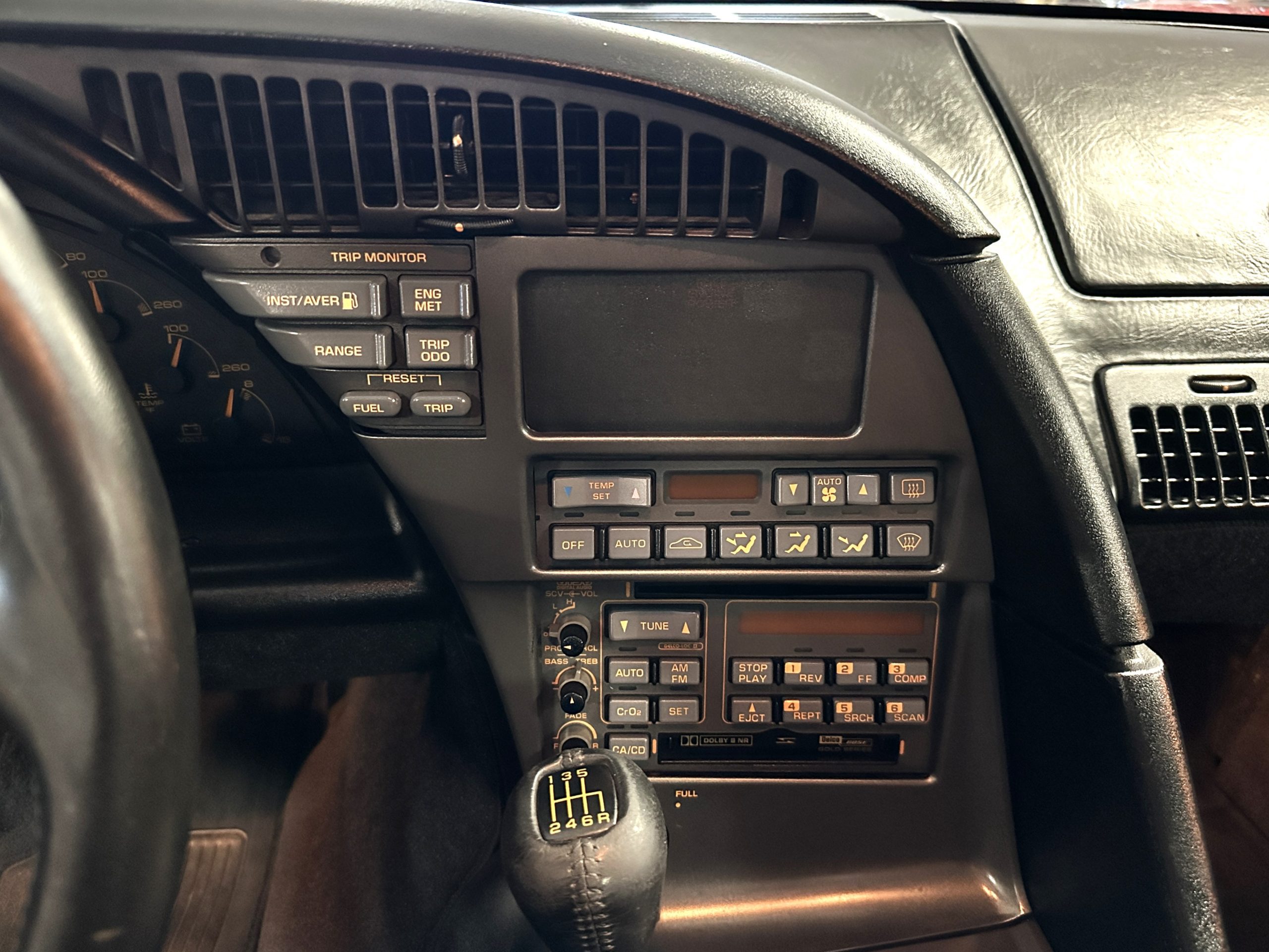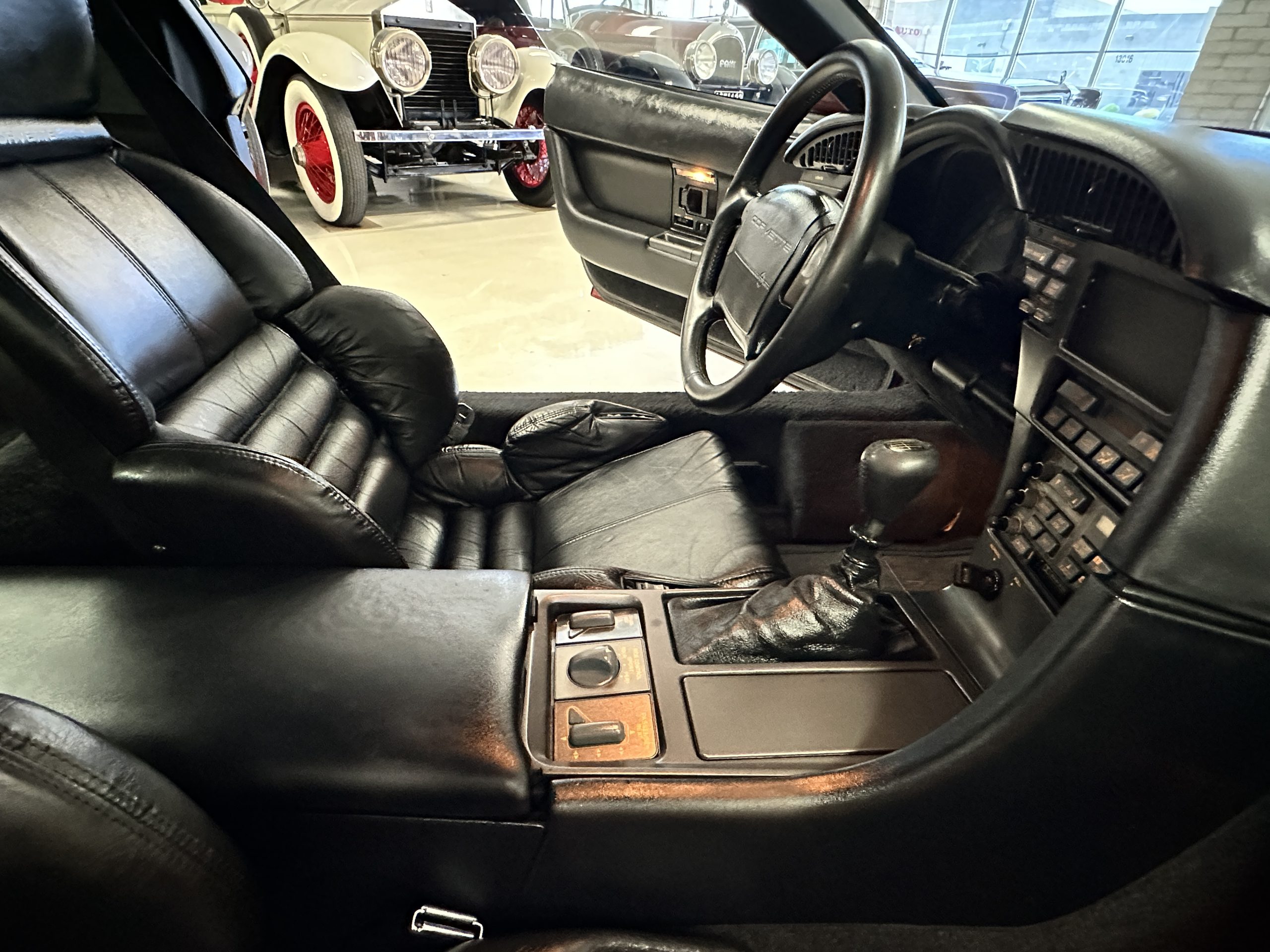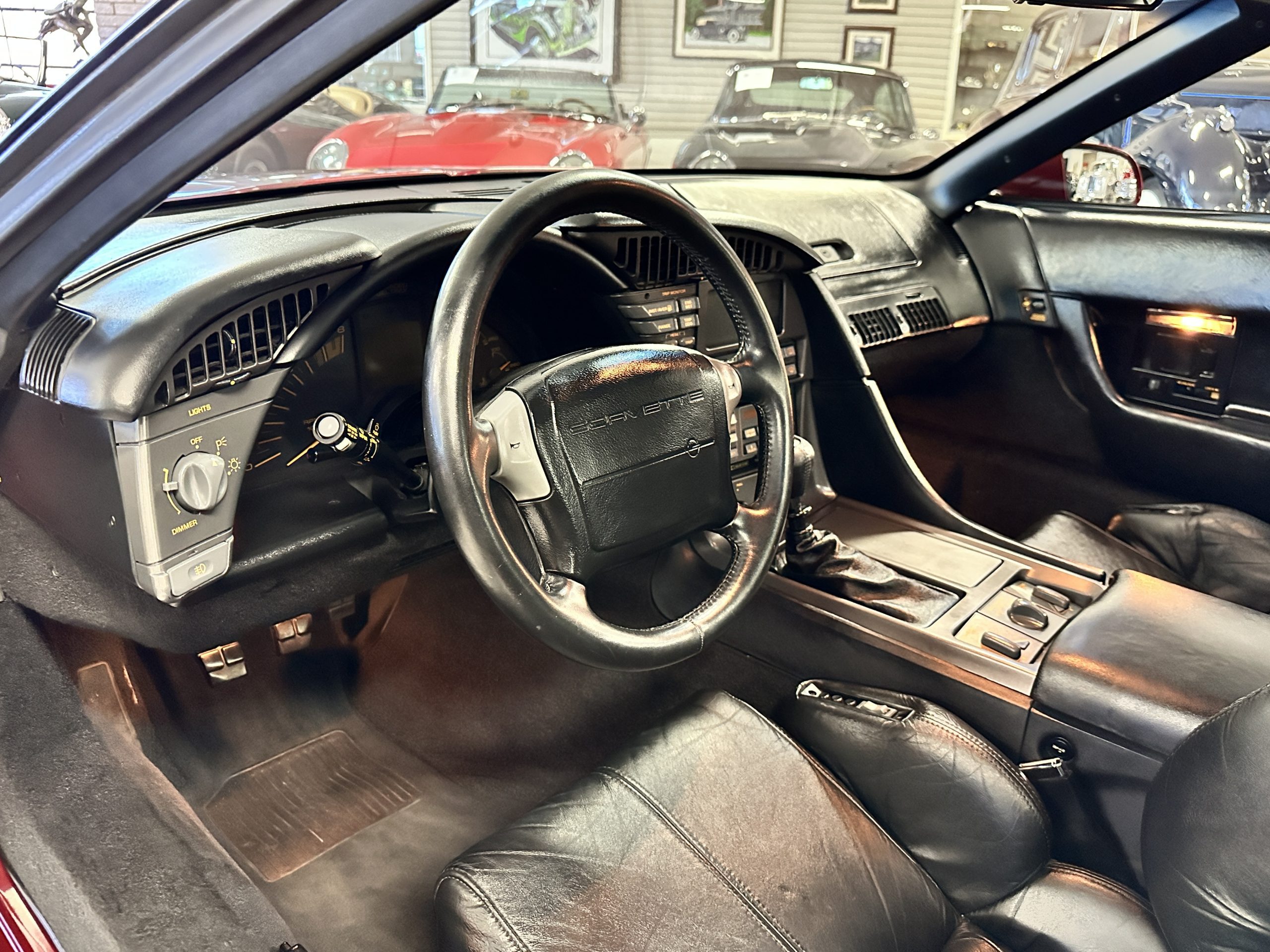 The venerable ZR-1 aluminum block engine is a 5.7-liter, 32-valve V-8 LT5 with double overhead cams and 4-valves per cylinder. The engines were designed by GM’s Lotus Division and further developed by GM. They were built under contract by Mercury Marine in Oklahoma. The 5.7-liter V-8 produced 380 hp at 6,200 rpm with 370 pound-feet of torque at 4,200 rpm. The power is transferred to the rear wheels through a fully synchronized 6-speed manual transmission. There is a power control dial located on the lower dash which can be set to “Normal” or “Full”. Car and Driver described the engines performance as “otherworldly”. We agree!