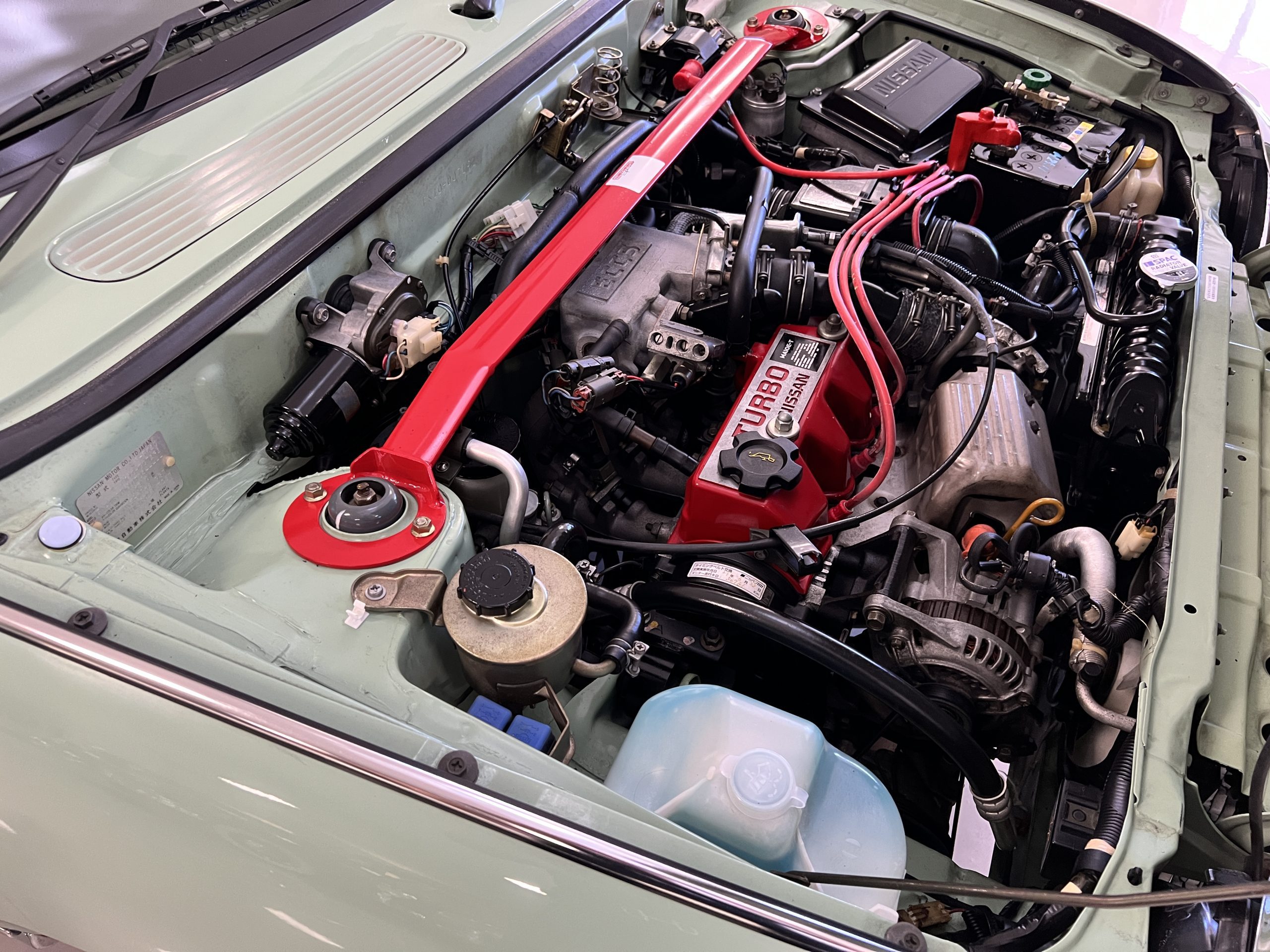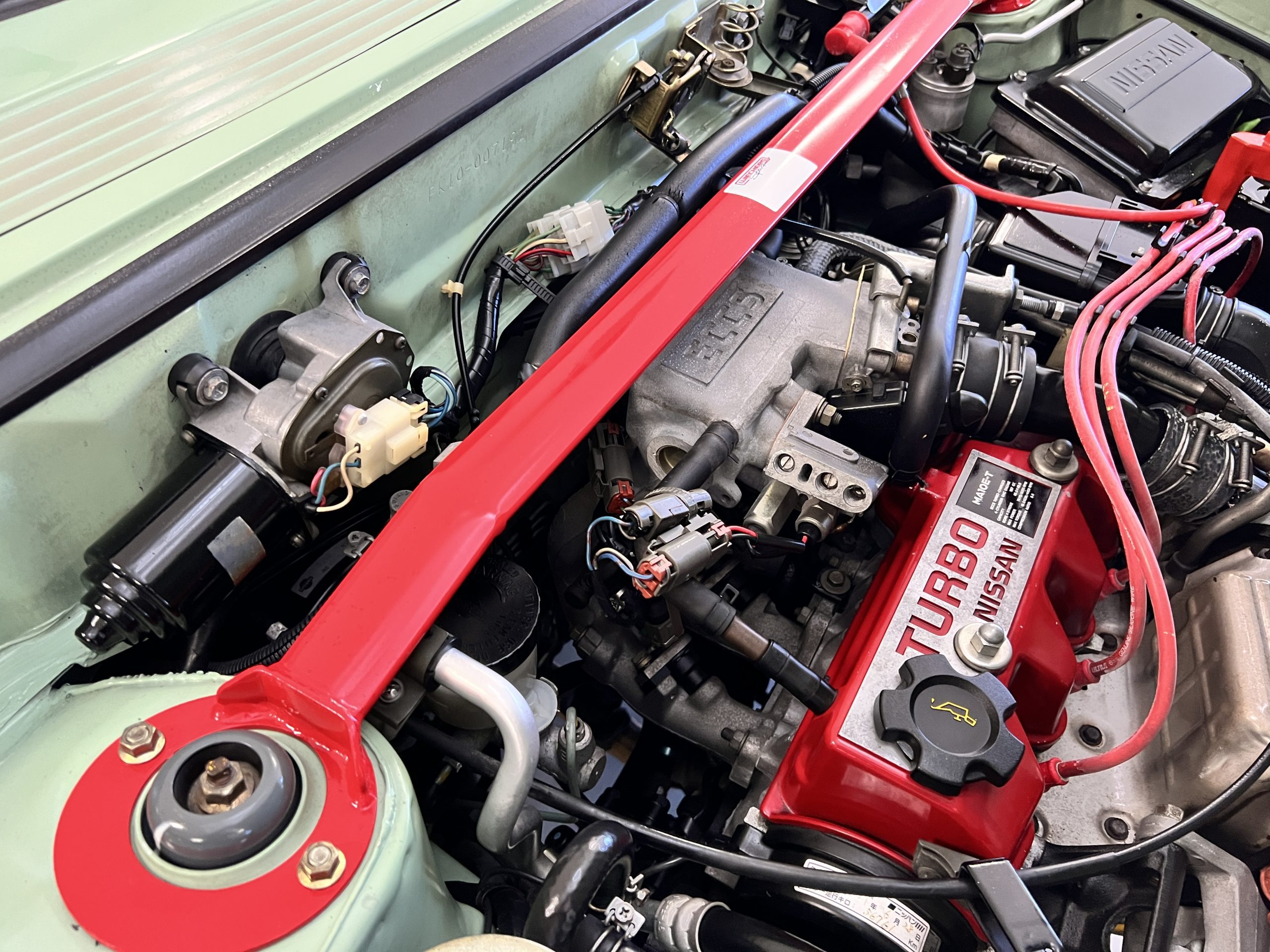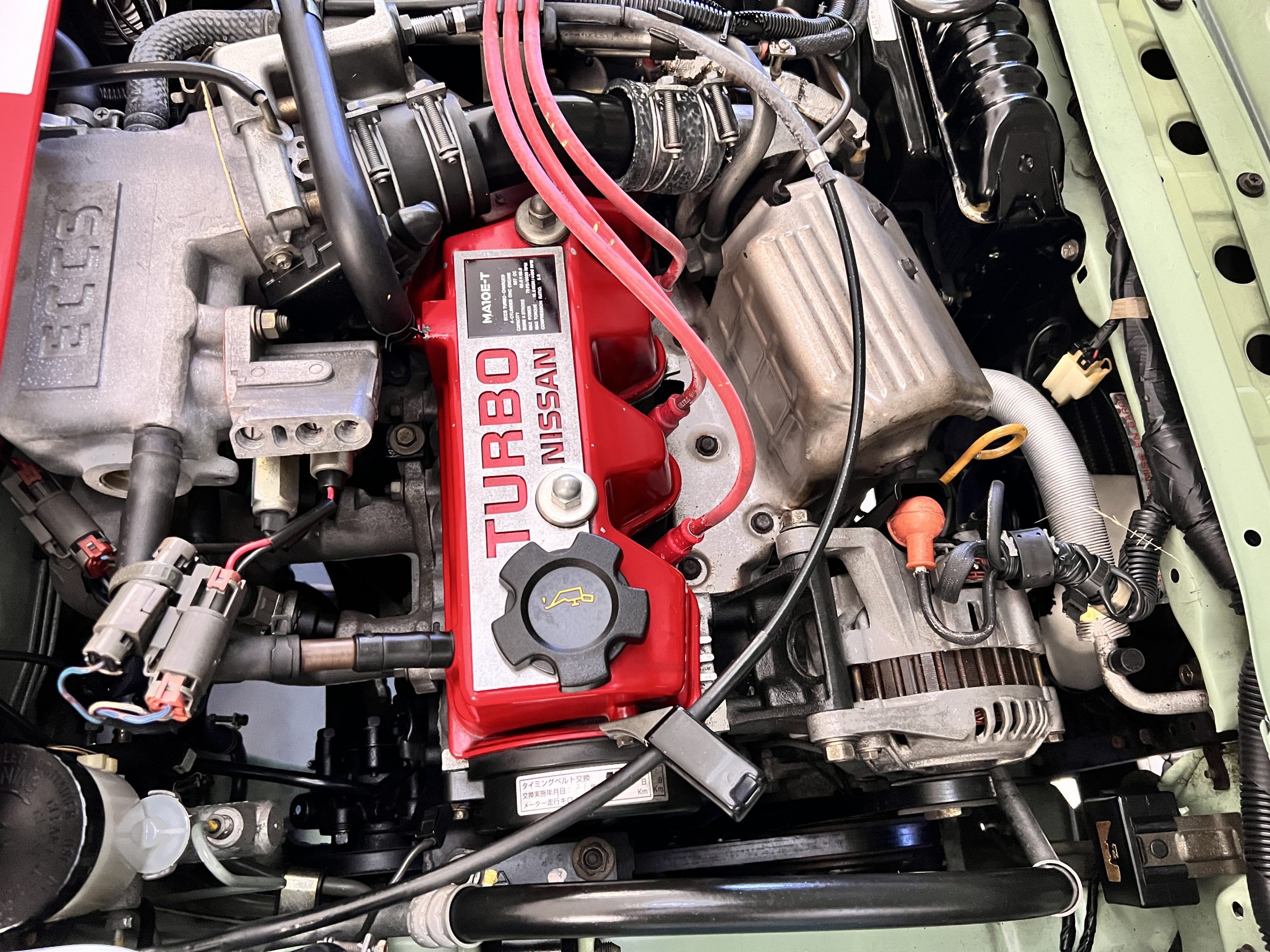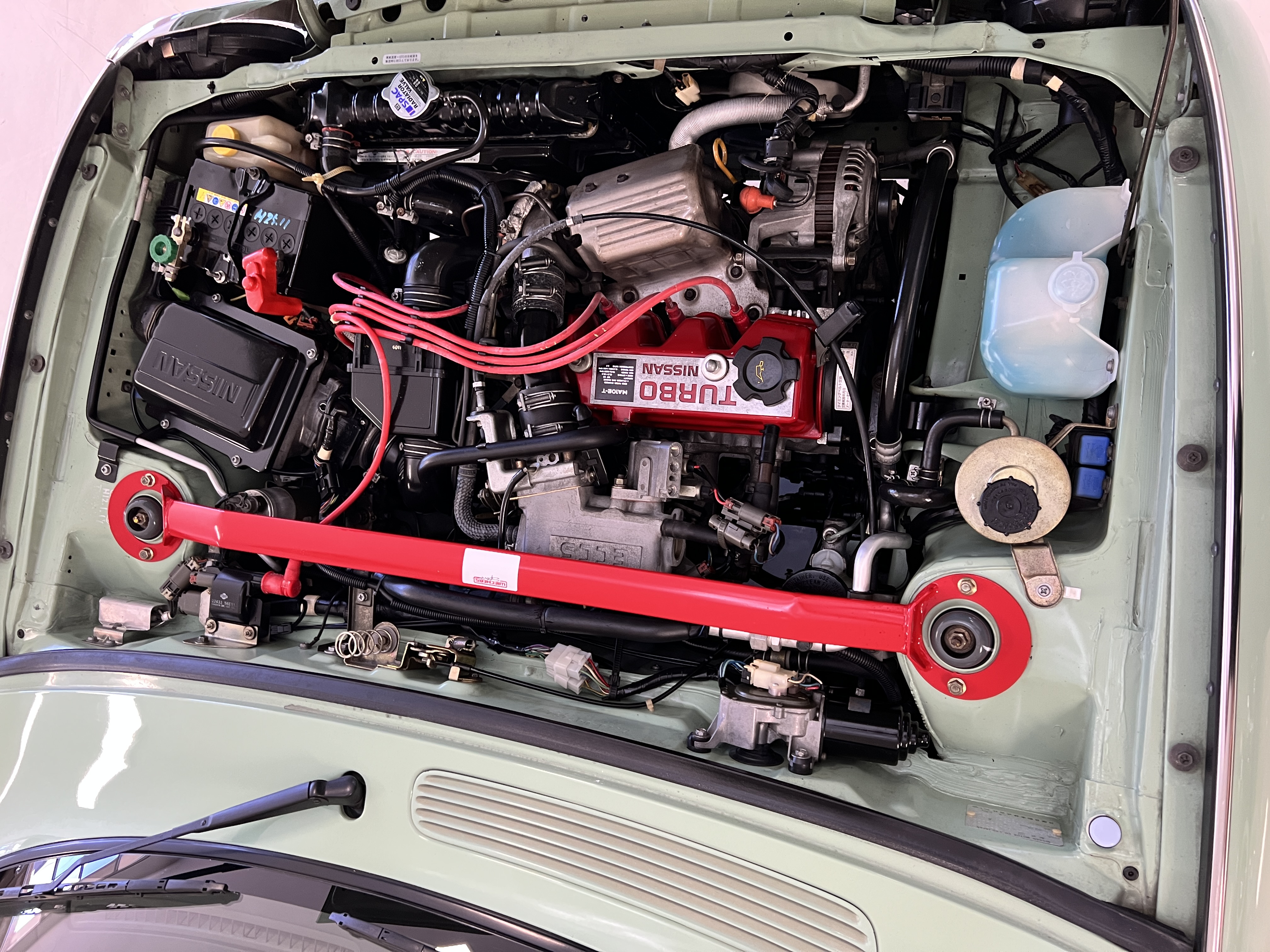 The Figaro features a turbocharged 987cc MA10ET inline-four that is factory rated at 75 horsepower and 78 lb-ft of torque. The transverse engine drives the front wheels through a three-speed automatic transaxle that shifts very smoothly. The engine compartment is very well detailed and shows the care that this Figaro has enjoyed through its life. The power front disc brakes provide excellent stopping power.