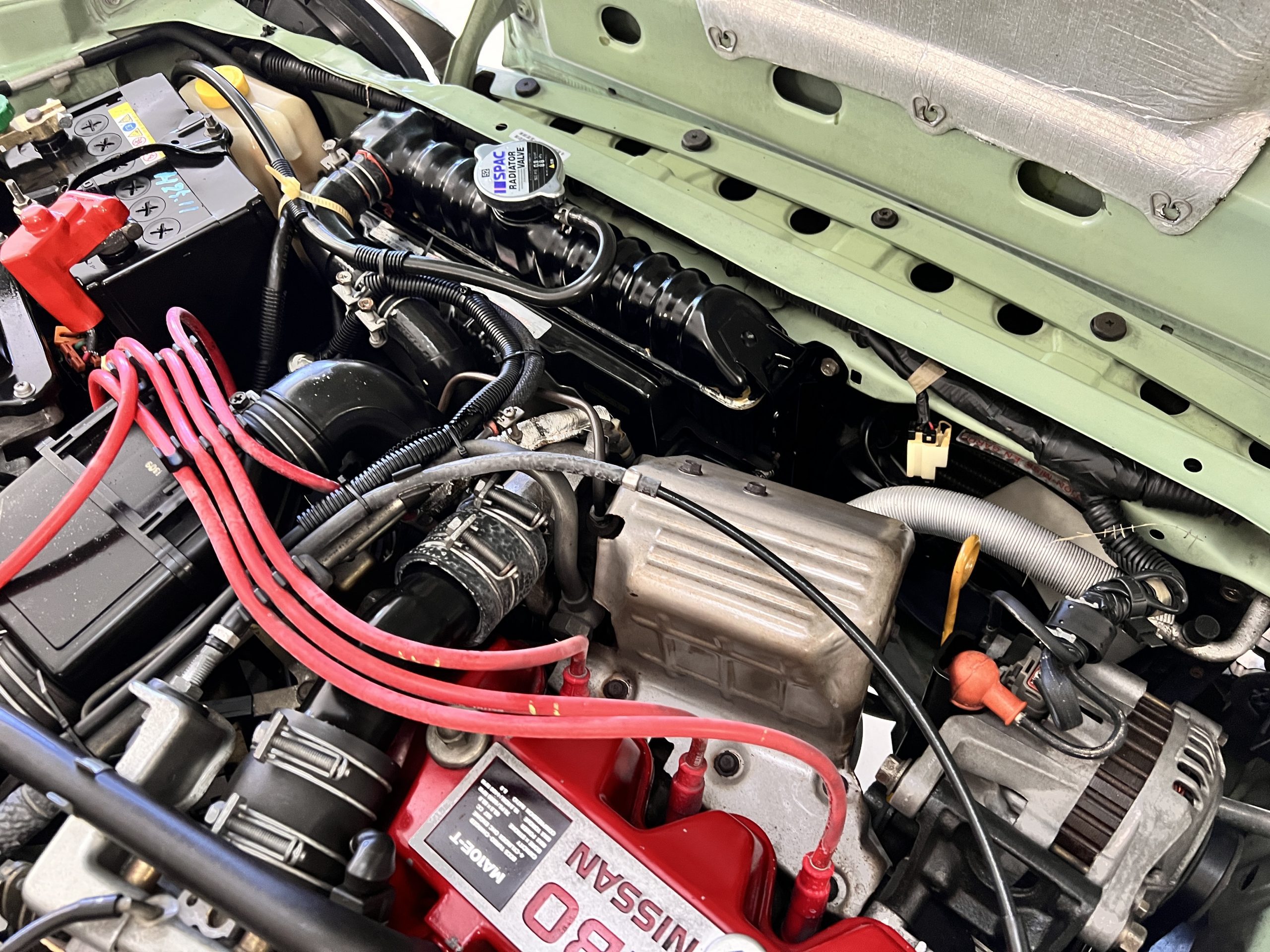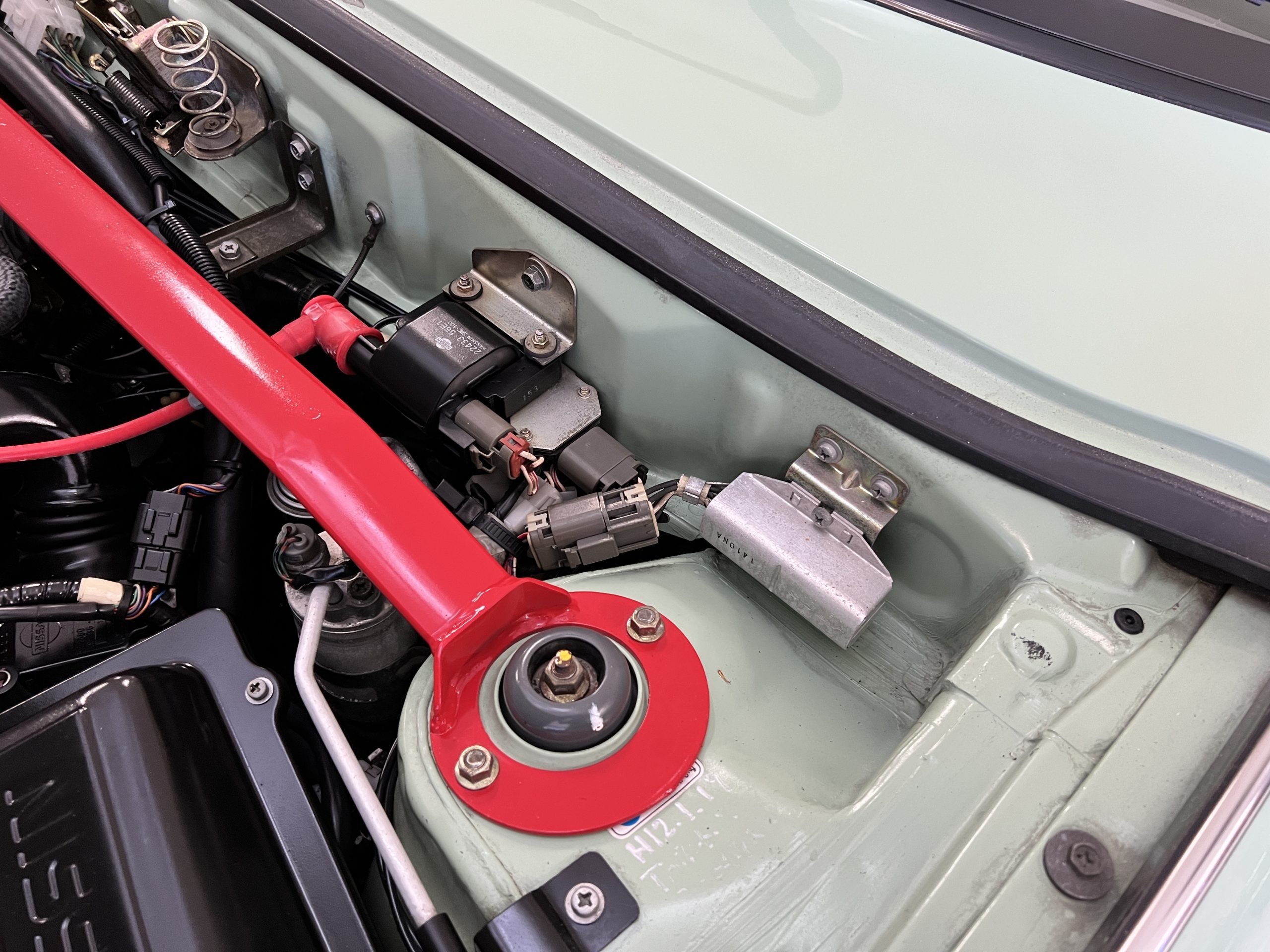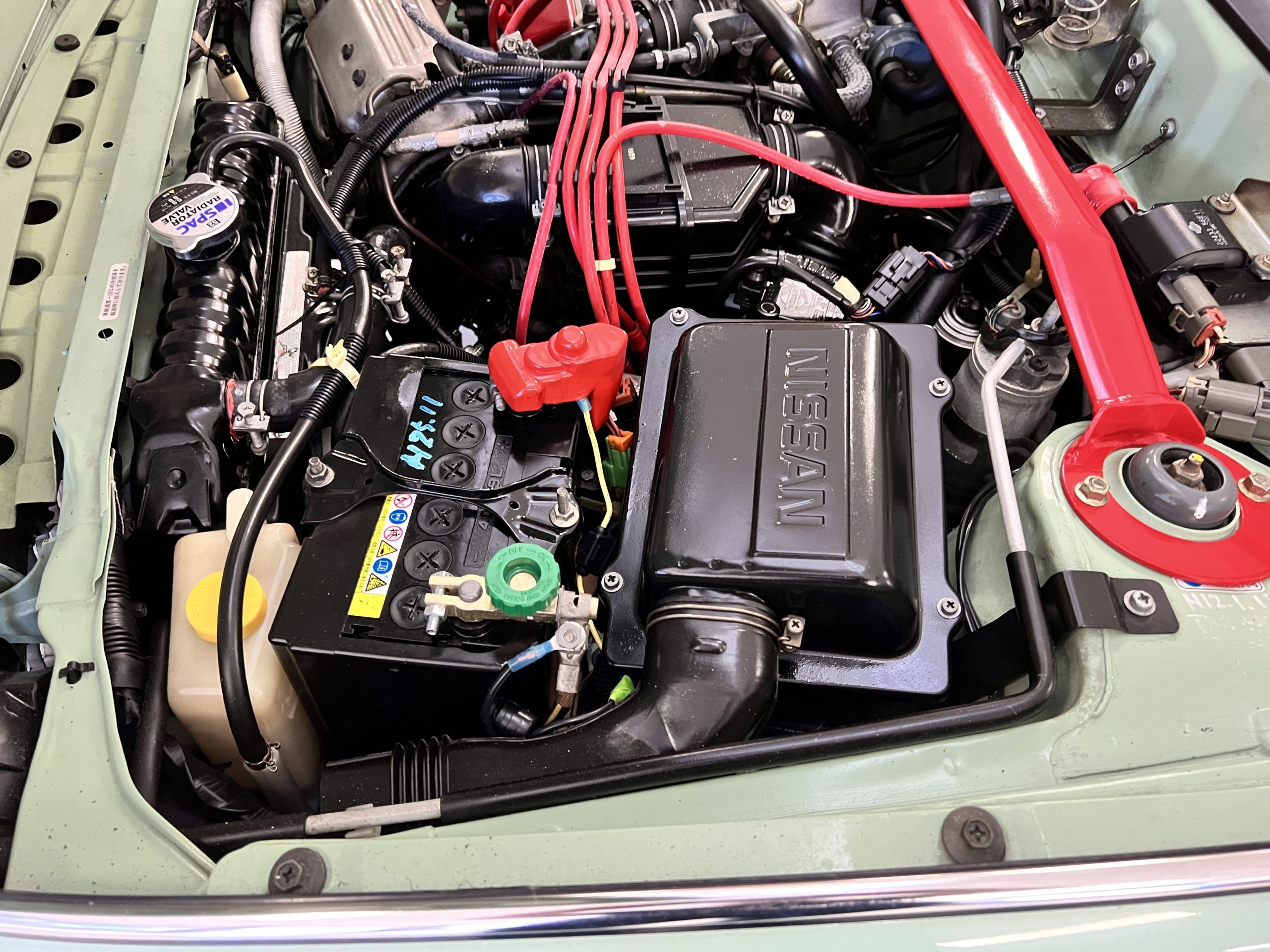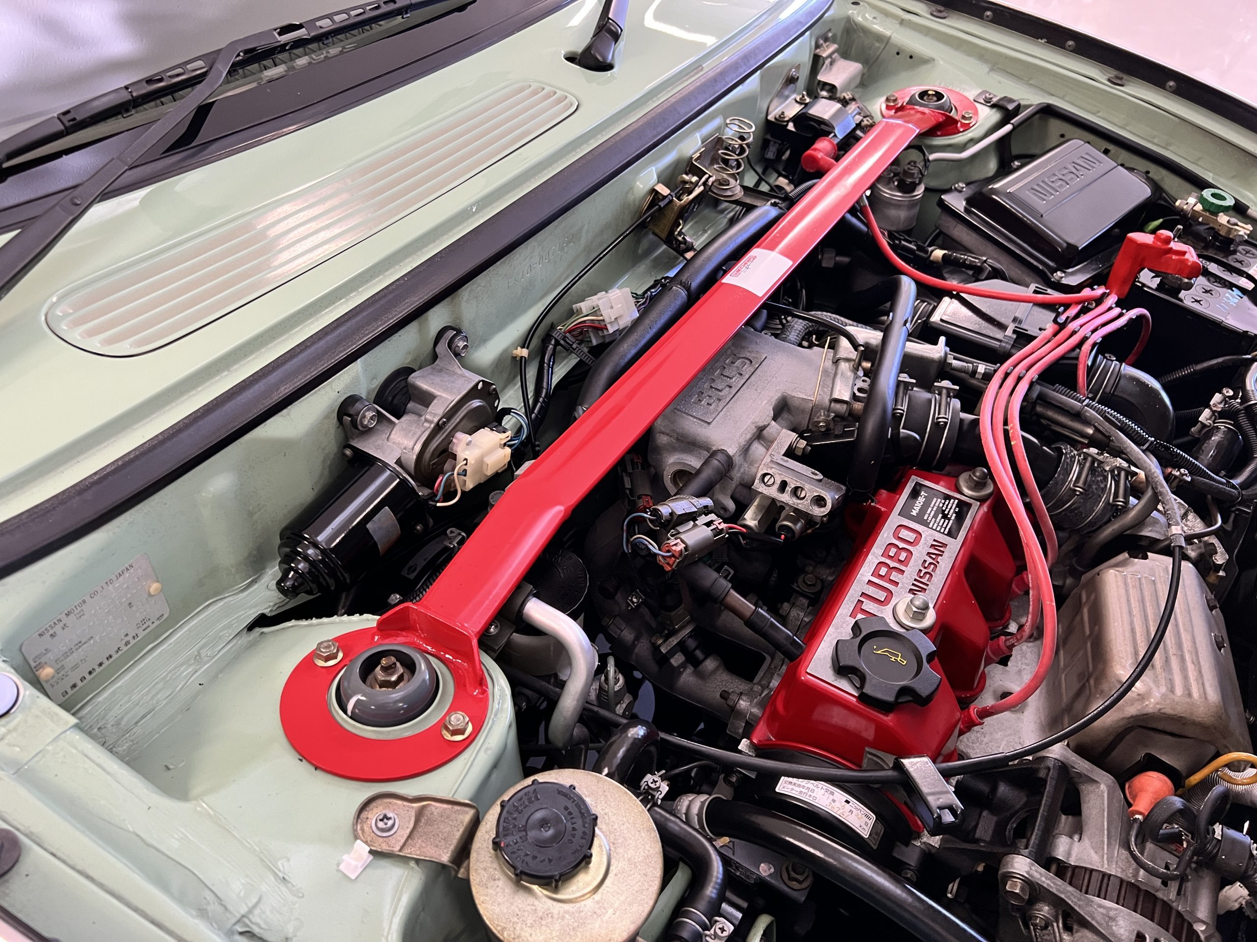 The Figaro features a turbocharged 987cc MA10ET inline-four that is factory rated at 75 horsepower and 78 lb-ft of torque. The transverse engine drives the front wheels through a three-speed automatic transaxle that shifts very smoothly. The engine compartment is very well detailed and shows the care that this Figaro has enjoyed through its life. The power front disc brakes provide excellent stopping power.