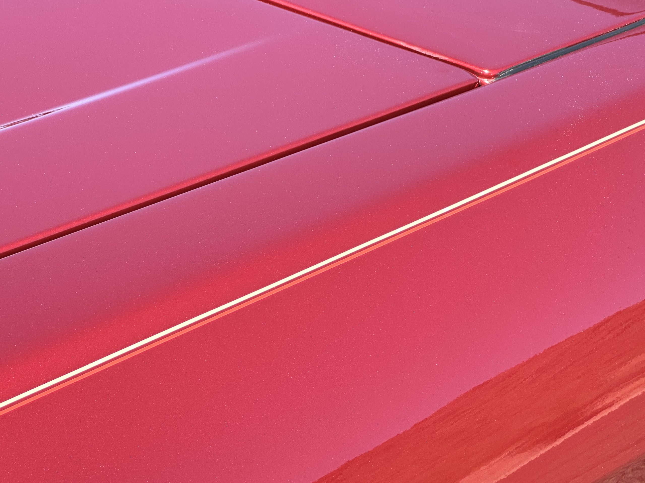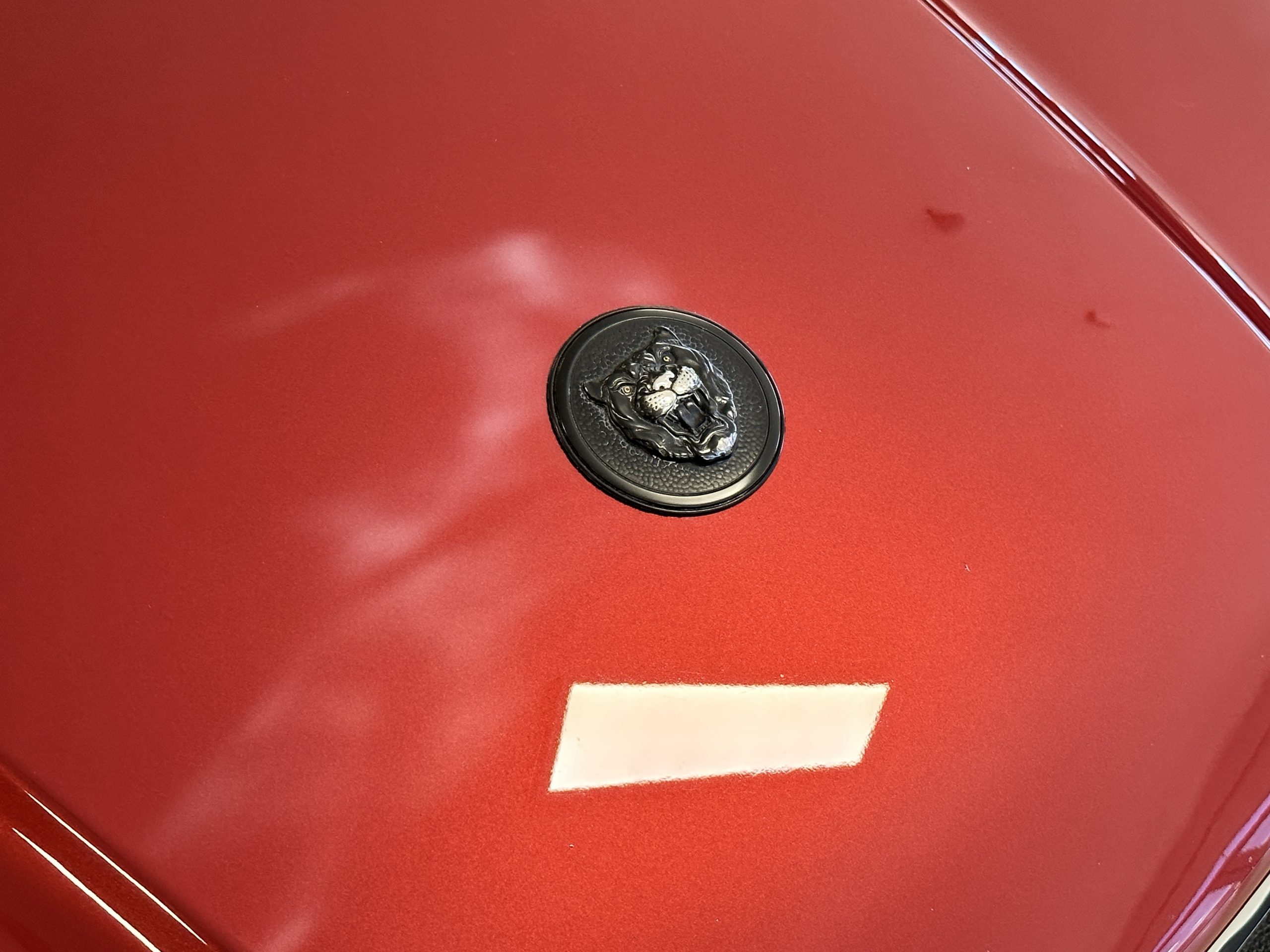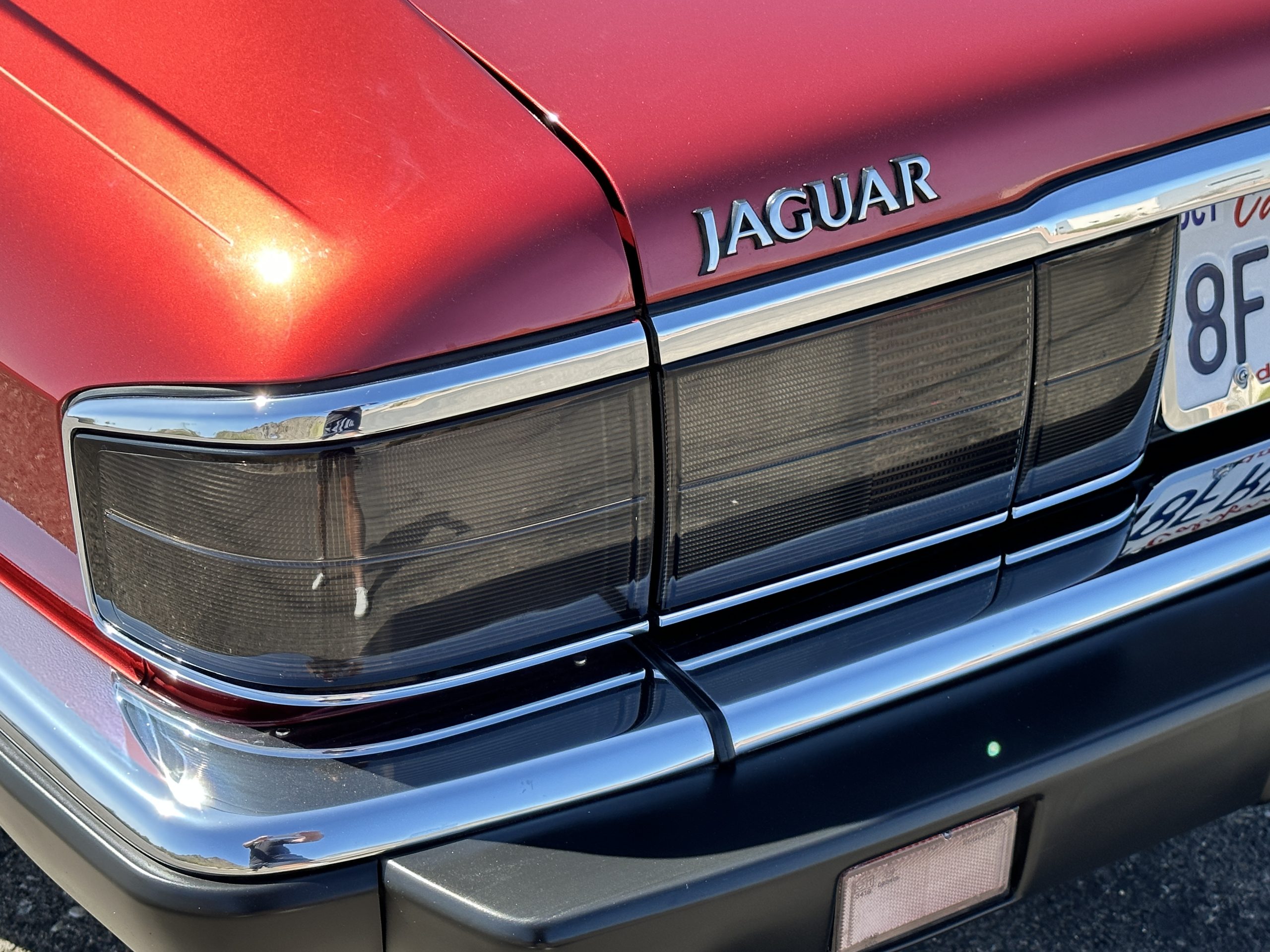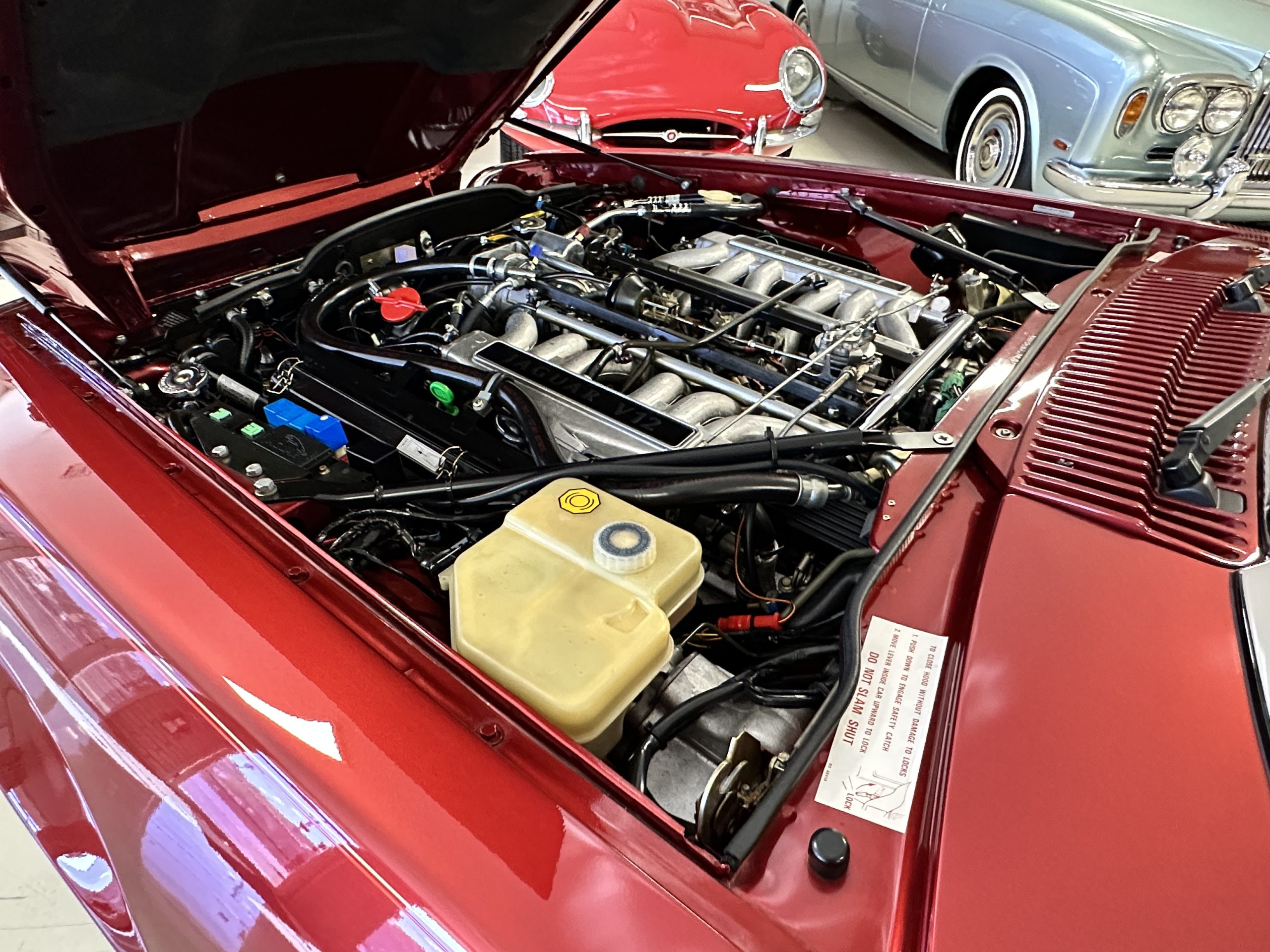 The gorgeous livery of this Jaguar is finished in Flamenco Metallic (Paint Code CFH) which has beautiful luster and shine which comes alive in daylight.  In the shade or evening light the paint is a darker Bordeaux yet in the sunlight the paint lights up brilliantly.  This era Jaguar was highly regarded for their gorgeous paint colors, and this is no exception.  The livery is nearly flawless in appearance with the exception of very few very small imperfections which are only noticeable upon close inspection. The livery is accented with red and tan pinstripes which really accentuate the sexy body lines of the XJS. The chrome and bright work show well throughout as do the cast aluminum wheels which are wrapped in new BF Goodrich T/A radial tires. The Flamenco color and finish really accentuates the stunning design of this gorgeous Jaguar XJS.