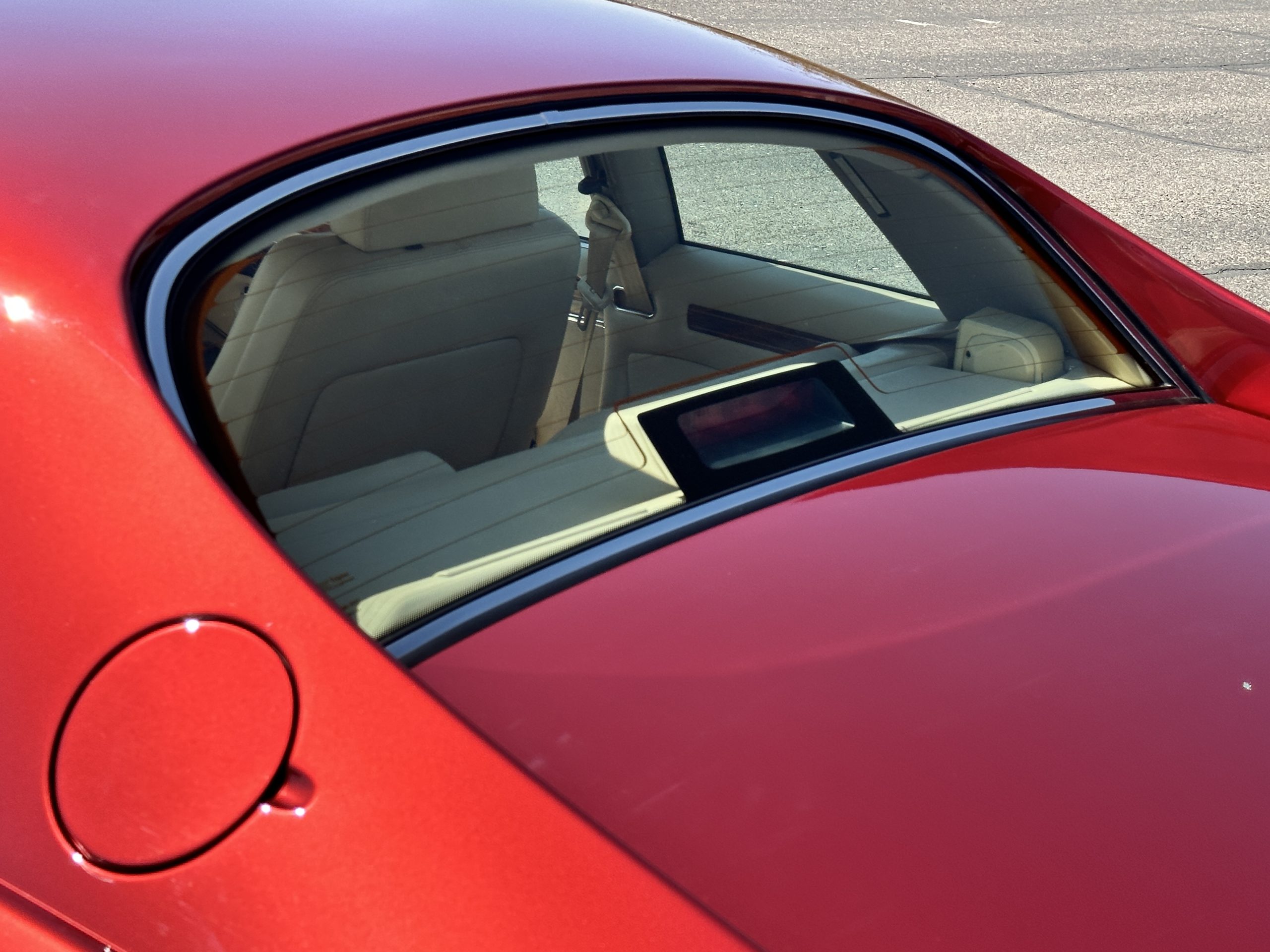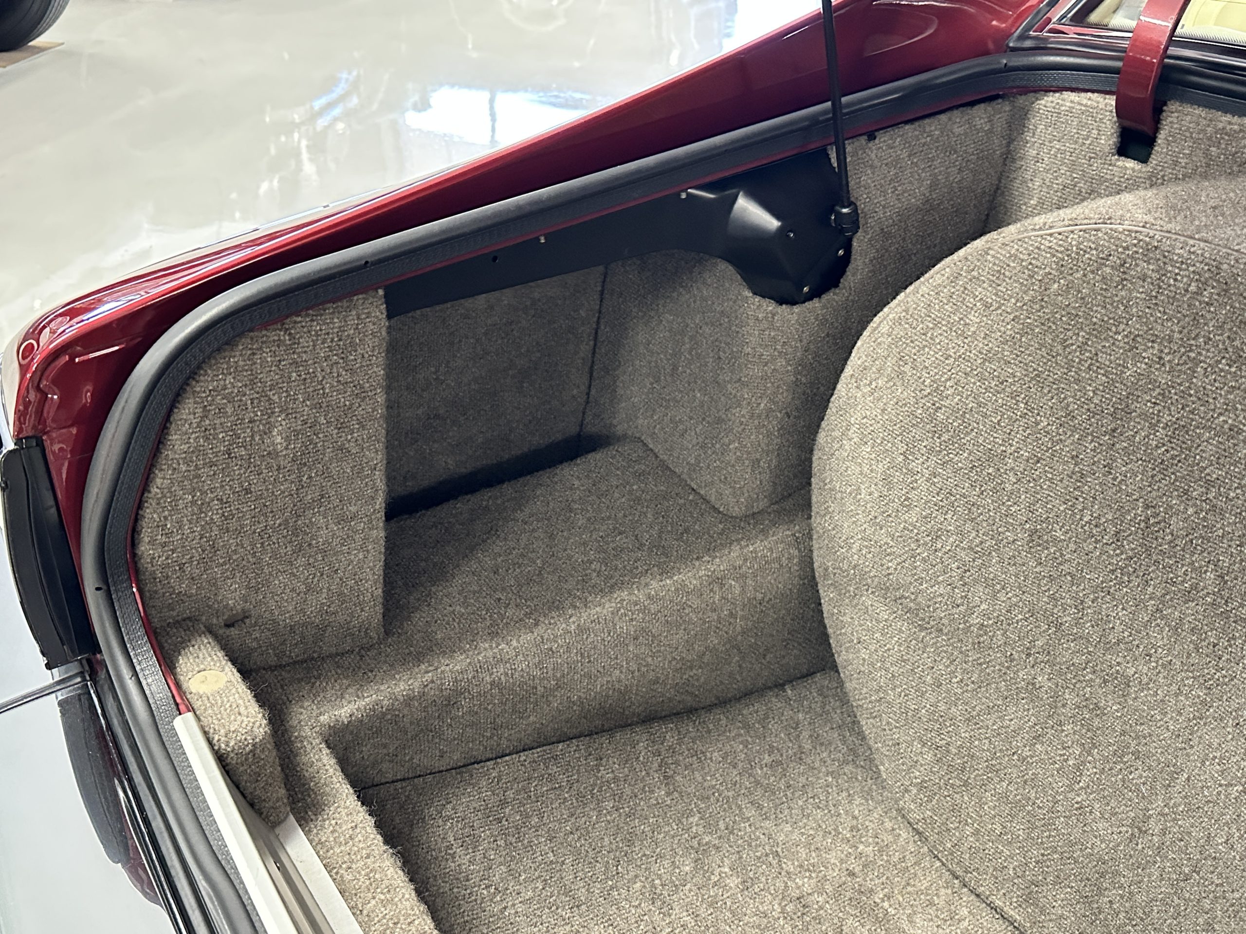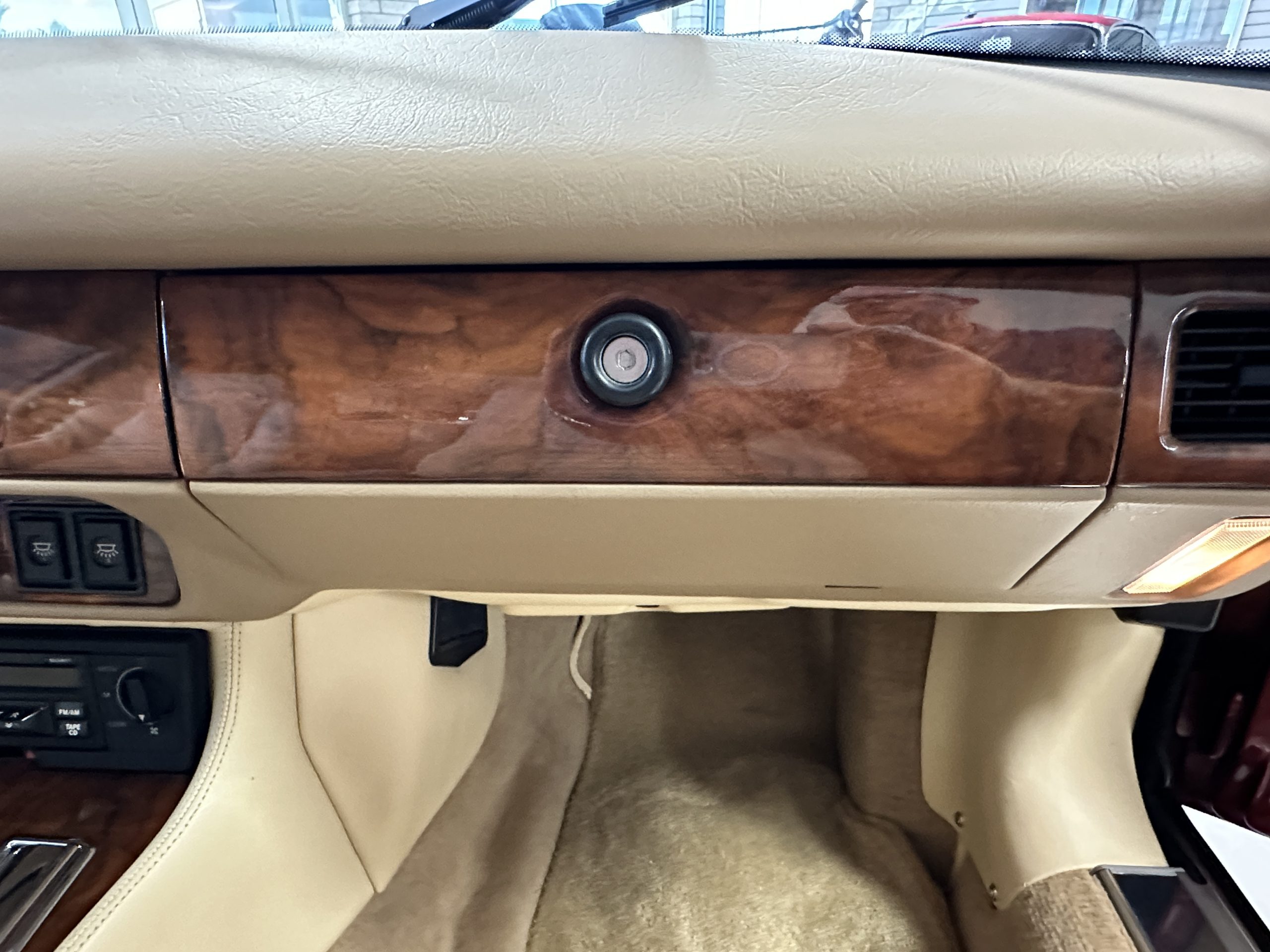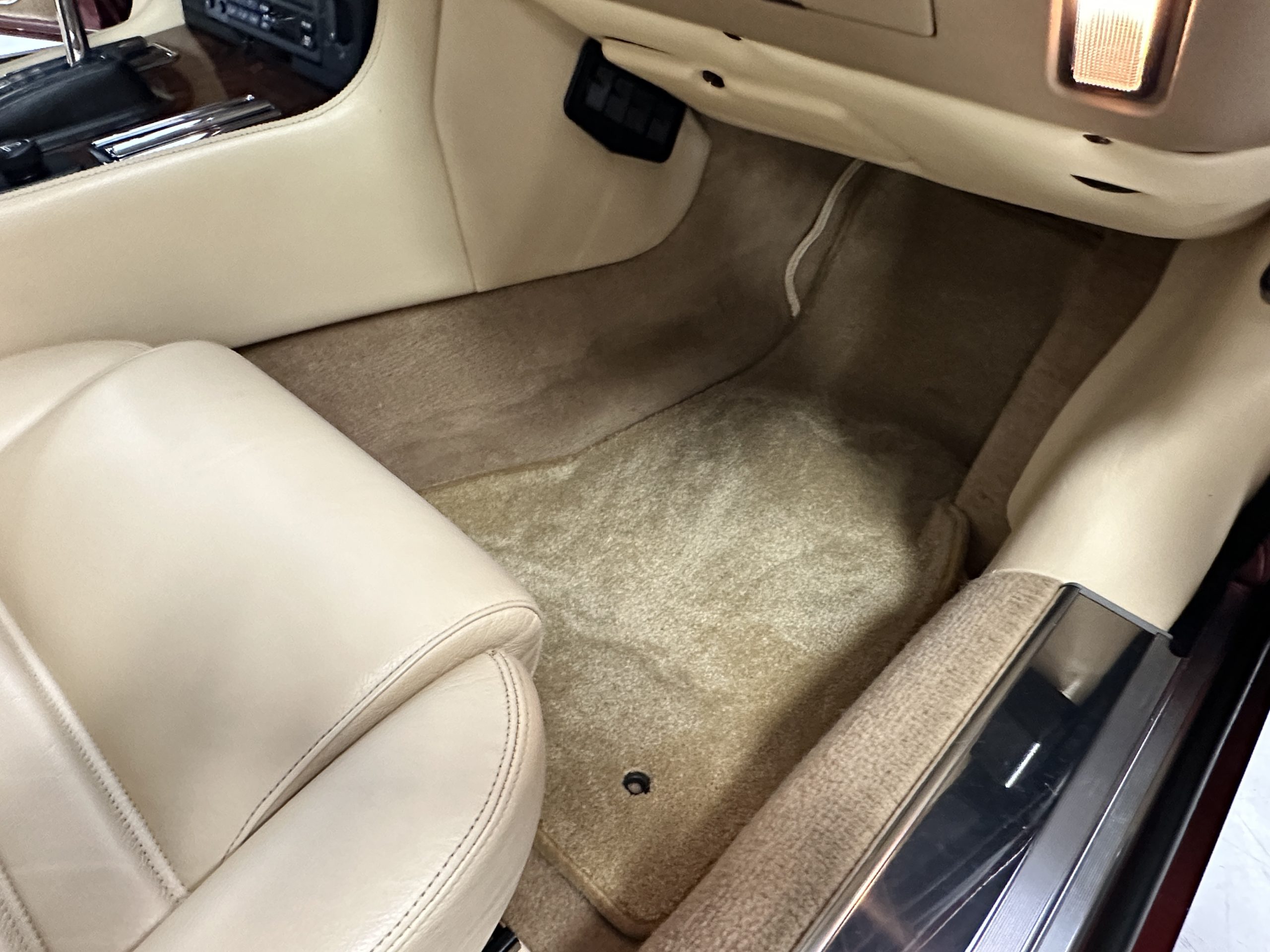 The stunning interior is finished in Magnolia Leather (Trim Code AEM) and is in beautiful condition. The leather upholstery shows very little wear and is a gorgeous complement to the Flamenco red exterior. The magnolia leather, the burl wood dash and the tan carpet are all in beautiful condition. The interior shows very well throughout and needs nothing the be enjoyed and shown.