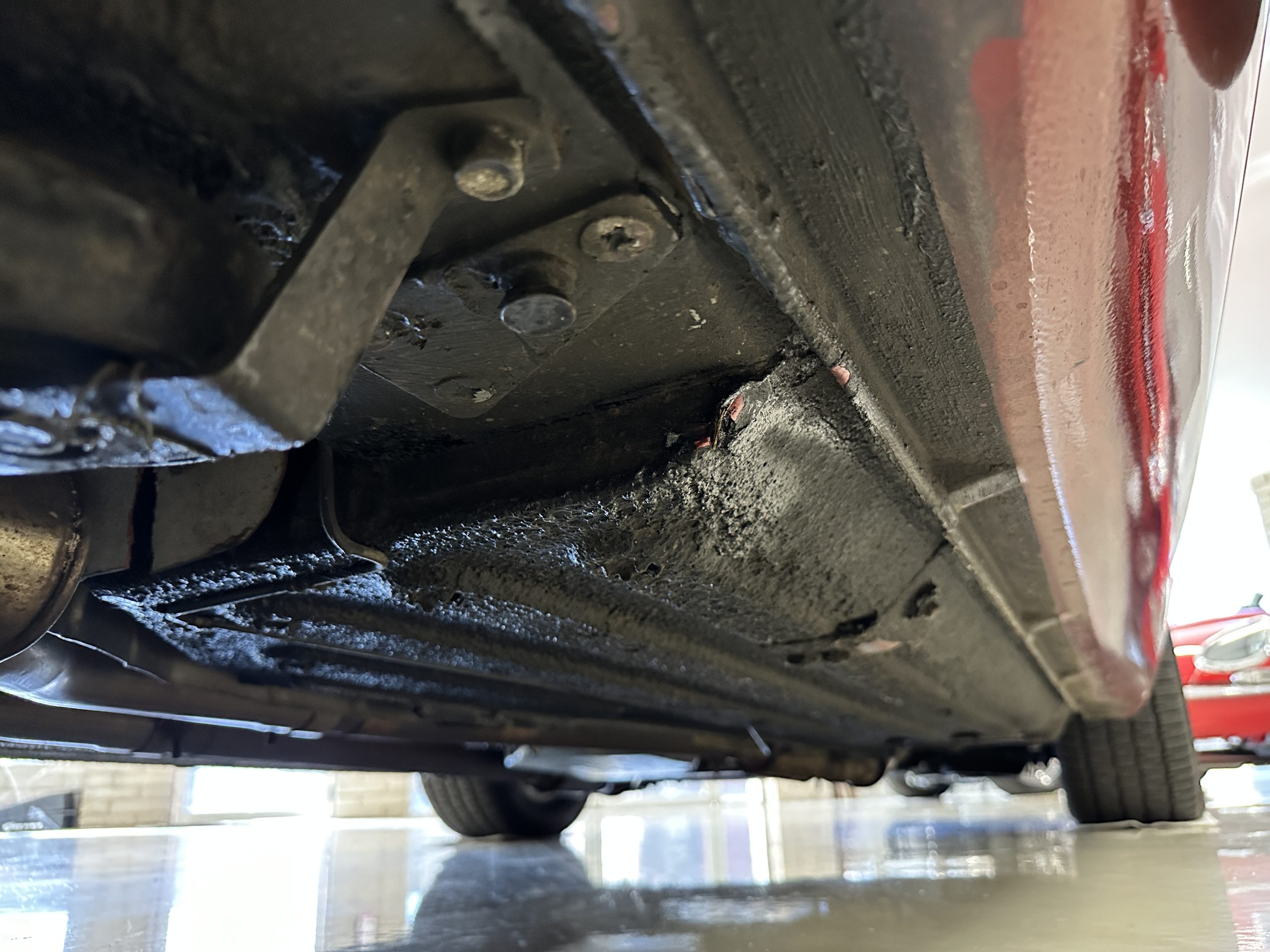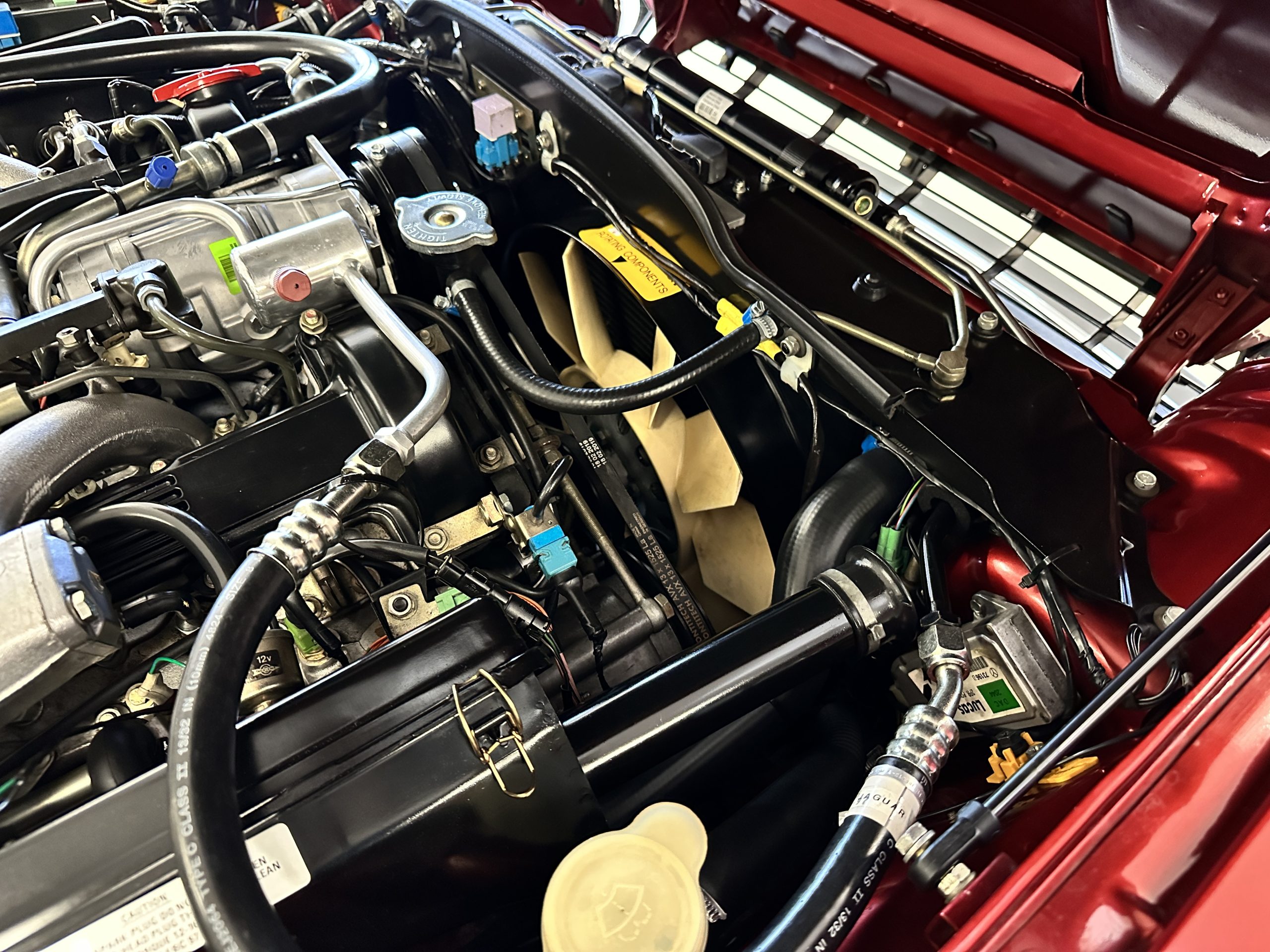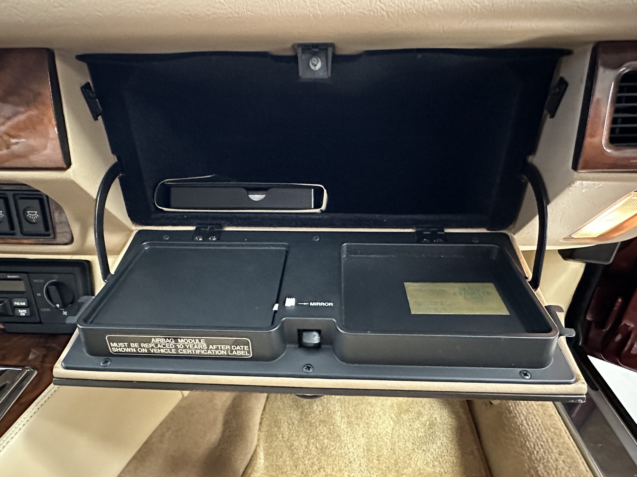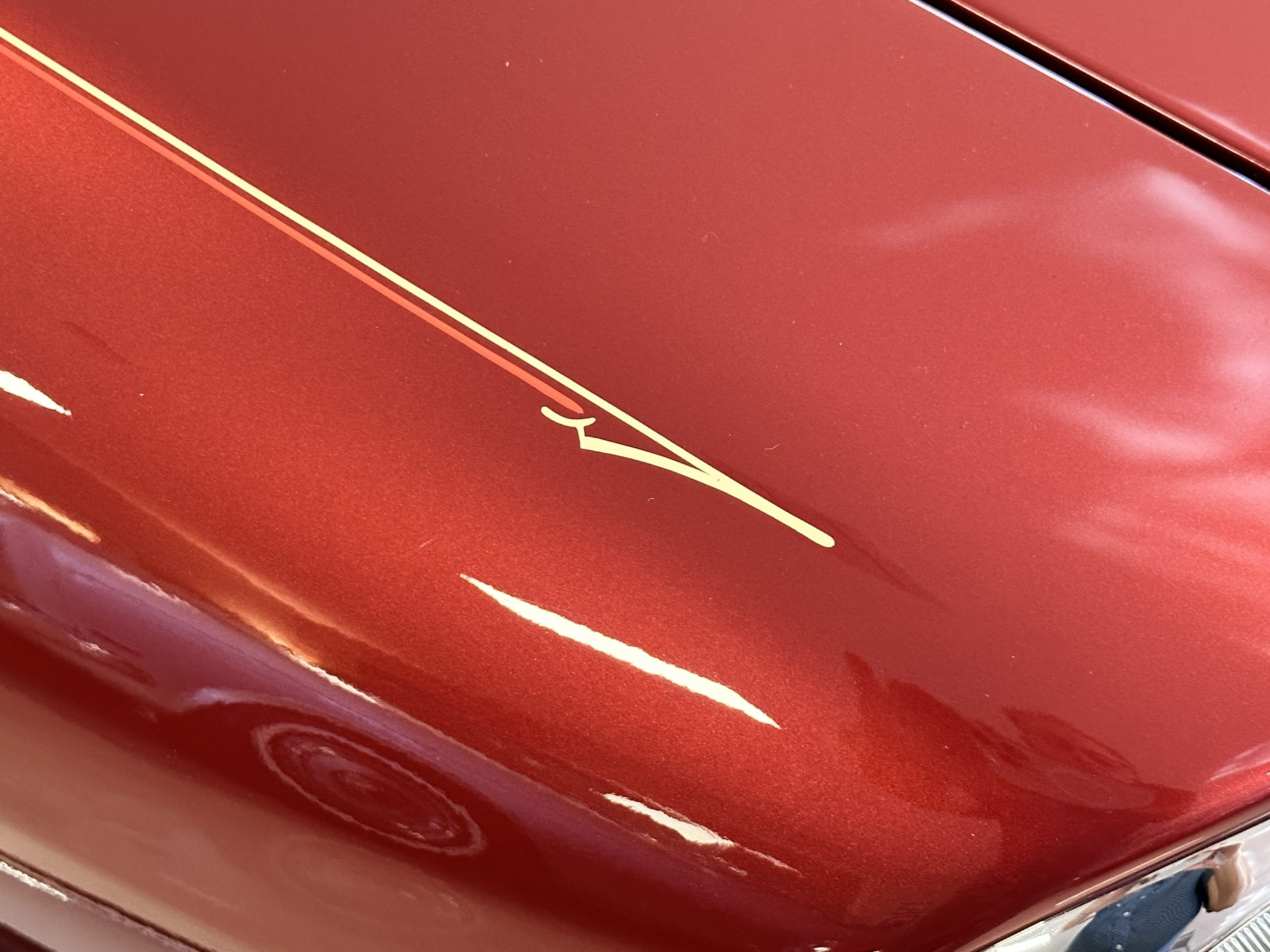 The stunning interior is finished in Magnolia Leather (Trim Code AEM) and is in beautiful condition. The leather upholstery shows very little wear and is a gorgeous complement to the Flamenco red exterior. The magnolia leather, the burl wood dash and the tan carpet are all in beautiful condition. The interior shows very well throughout and needs nothing the be enjoyed and shown.