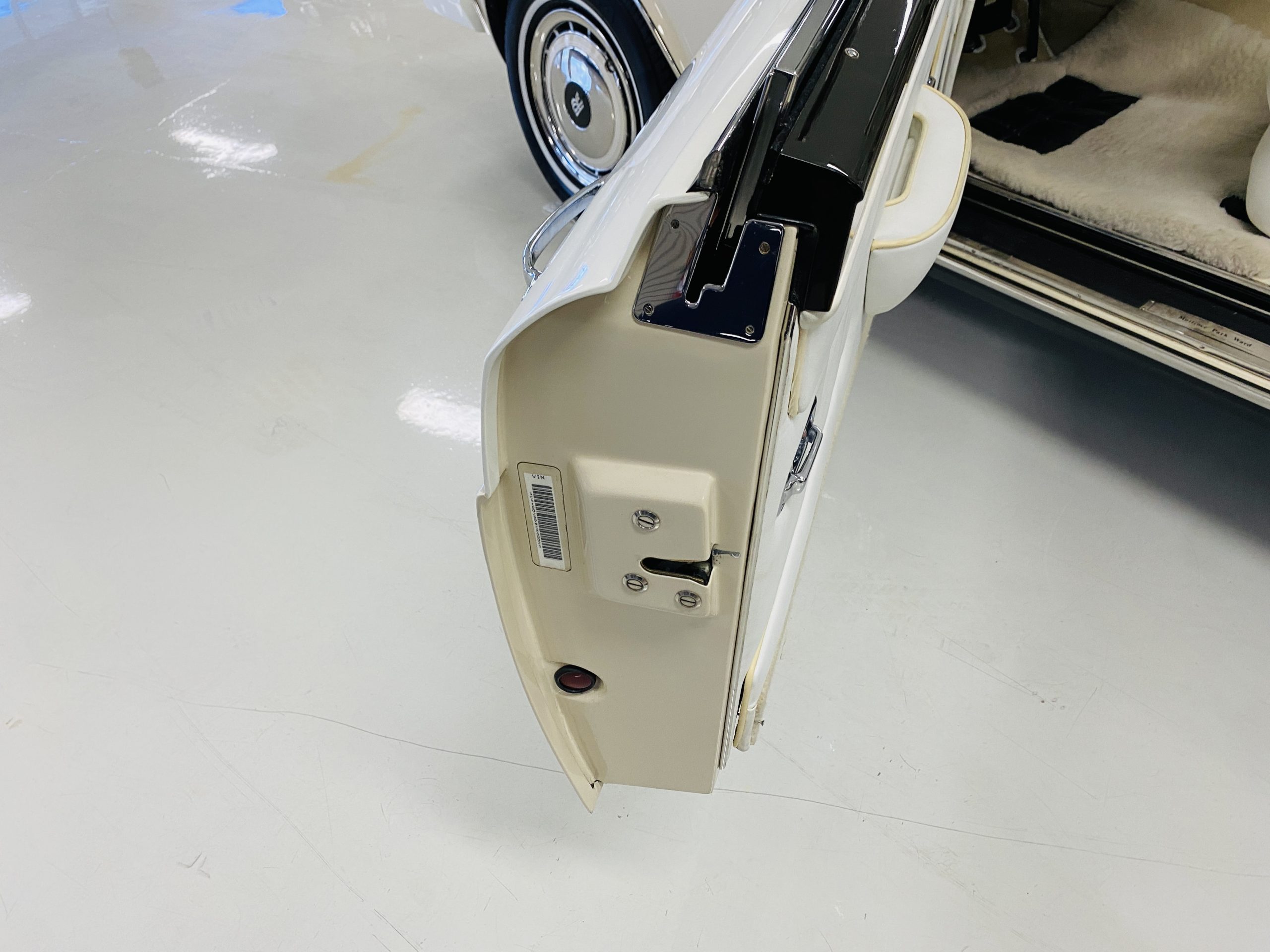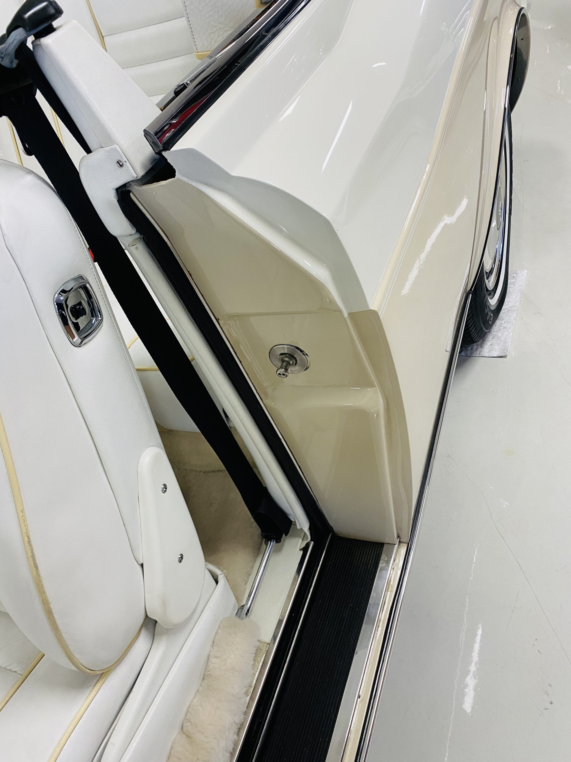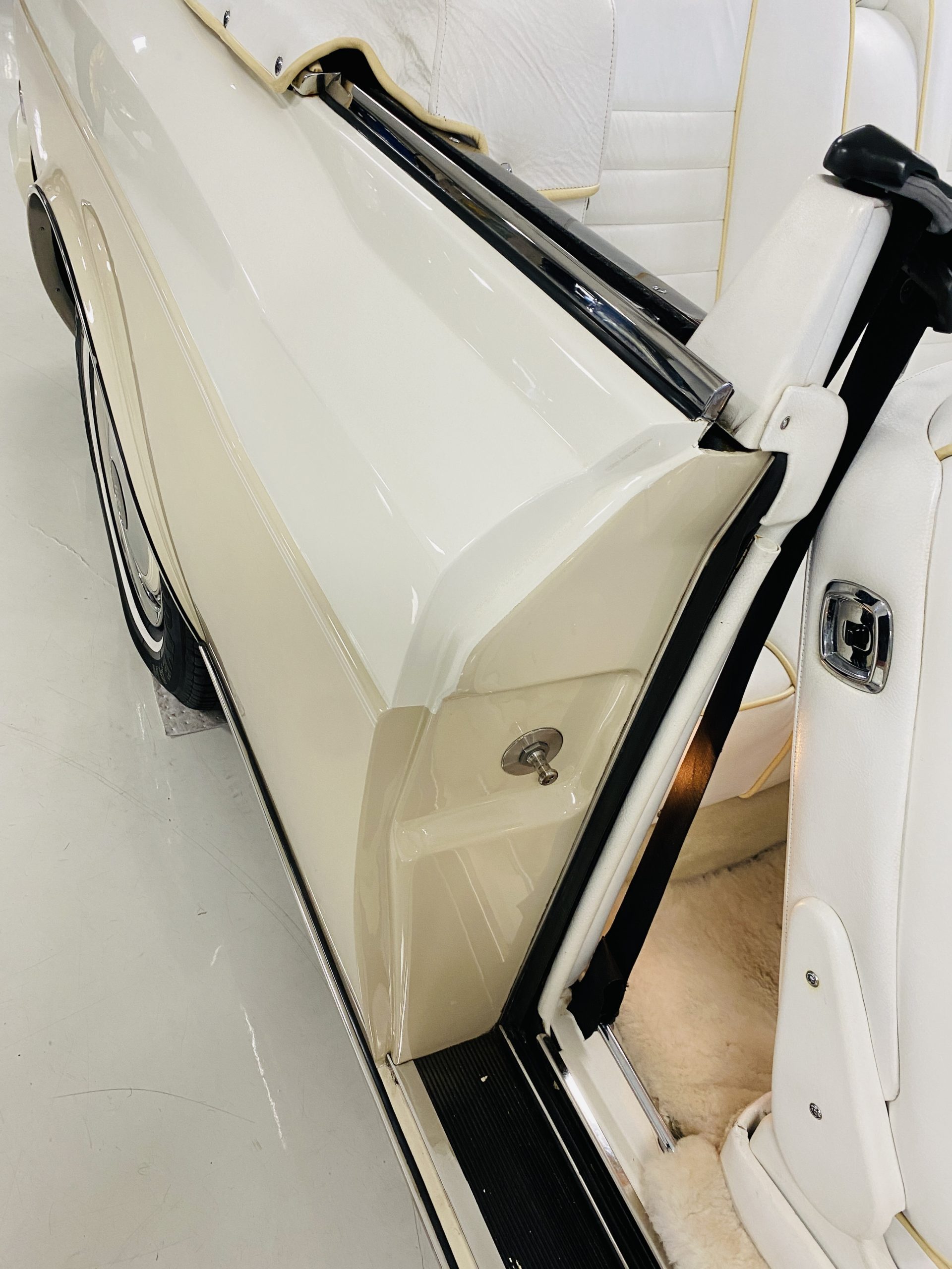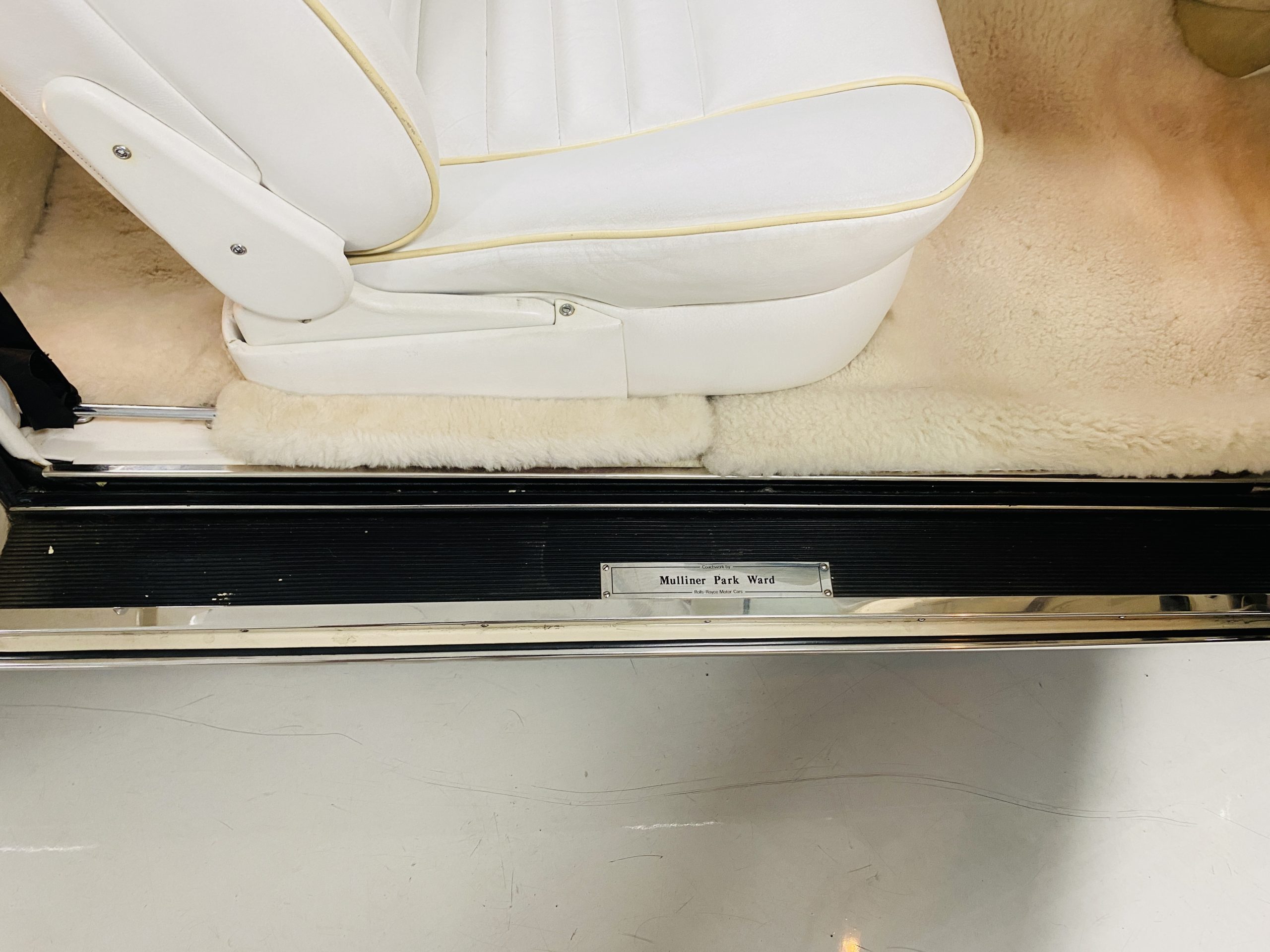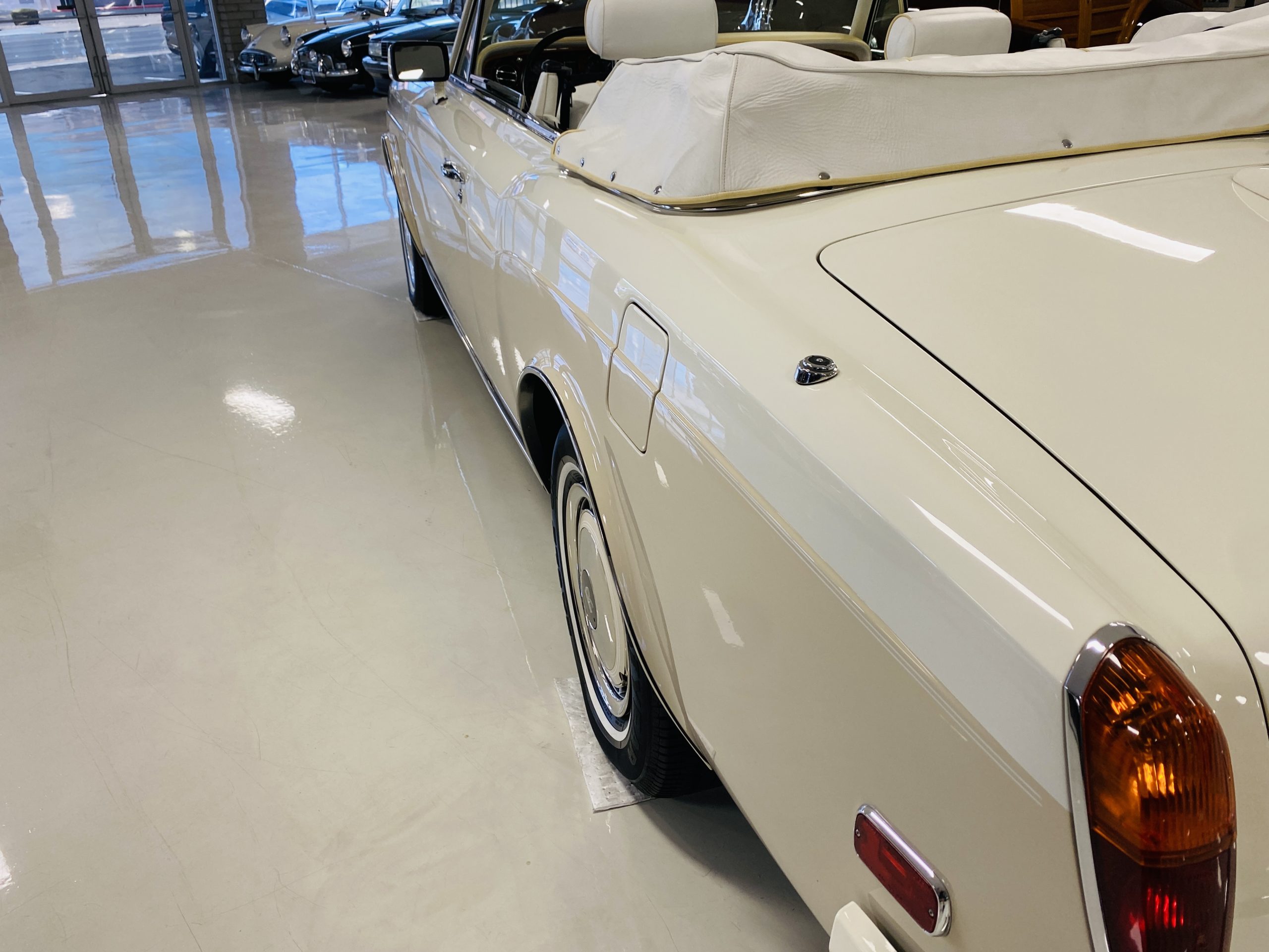 The livery is beautiful in its original white (Code RR.9520090) and magnolia (Code RR.95.20093) with white double coach stripes. The paint is stunning with its factory finish without orange peel and still looking as though it is new! The stainless steel and chrome are overall in excellent condition, with only normal use shown via small fine scratches in the stainless steel. The white Everflex convertible top is in excellent condition and the rear window is clear and also in great condition. Every part of the car reinforces that this has been faithfully garaged and cared for since new.
