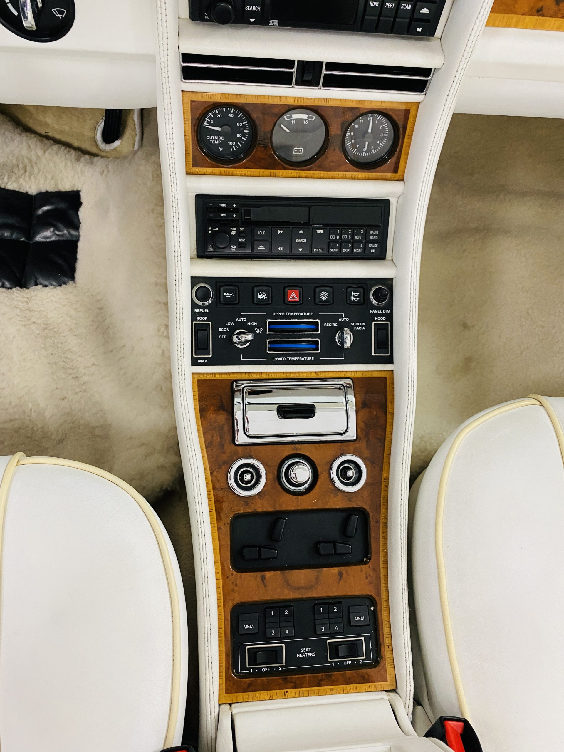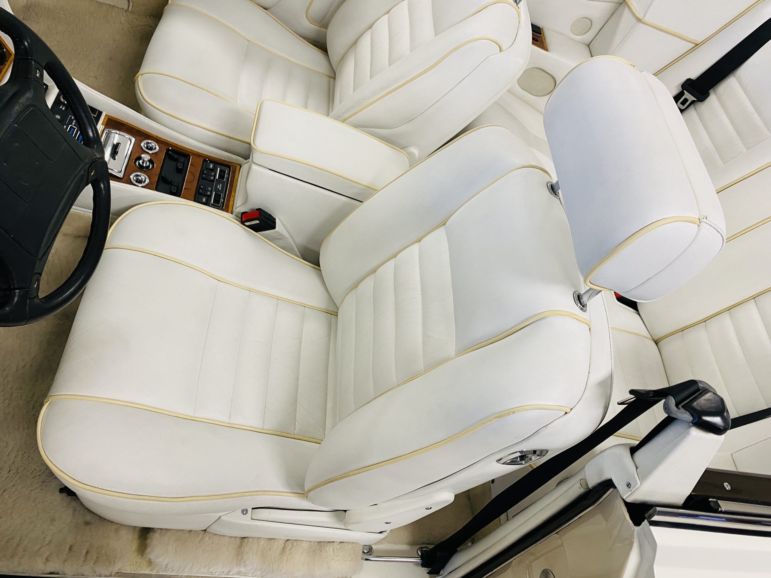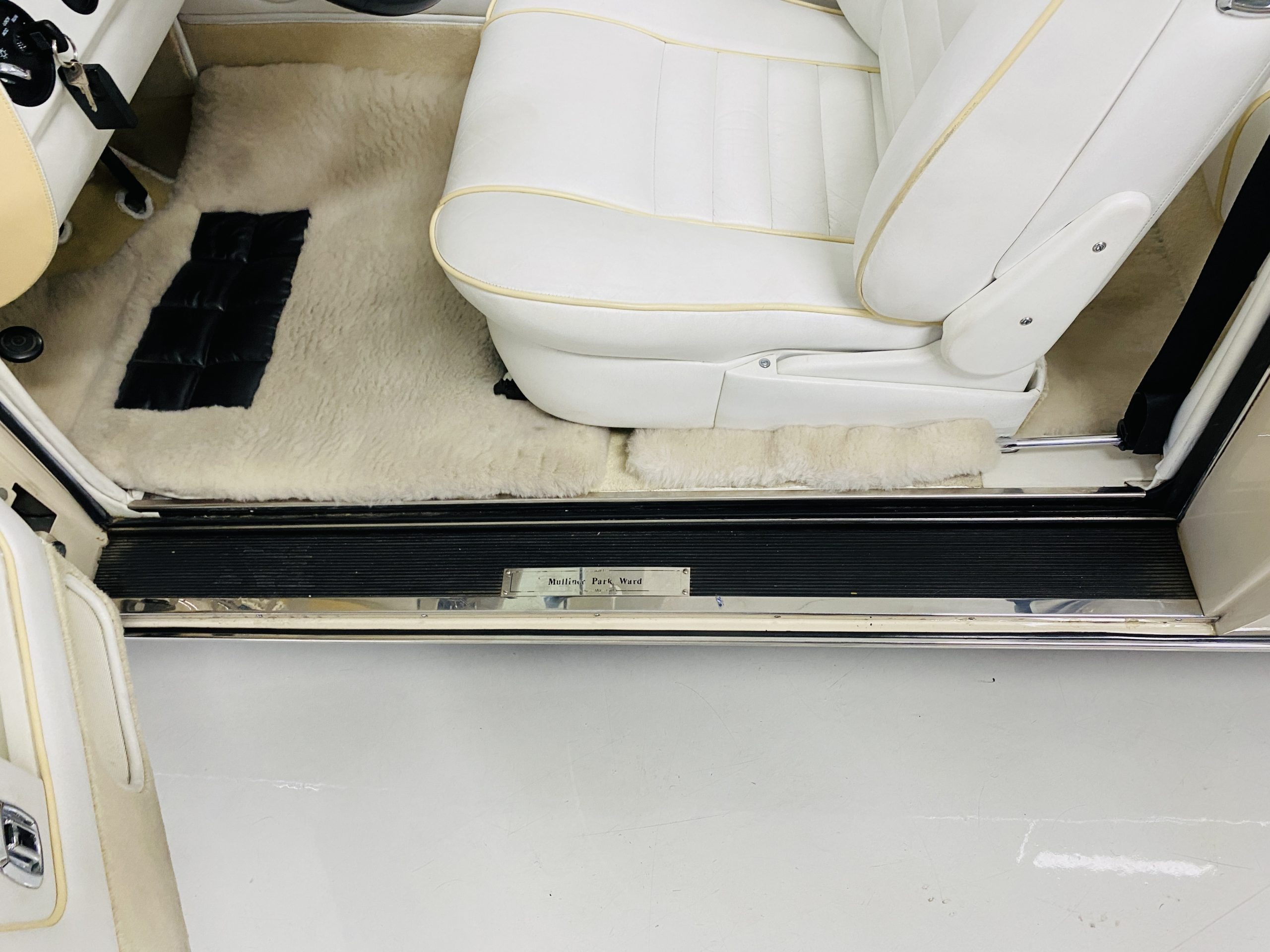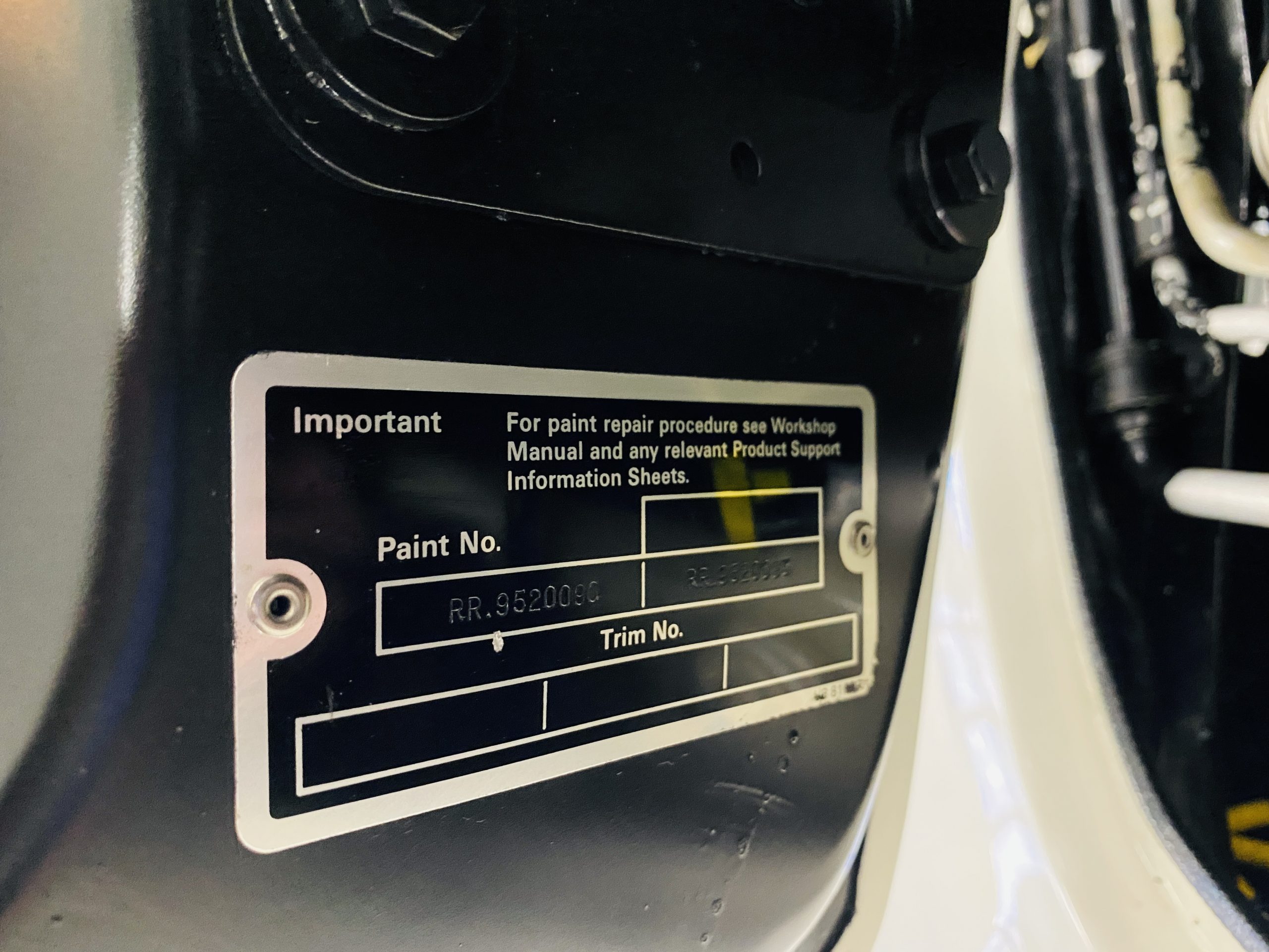 The livery is beautiful in its original white (Code RR.9520090) and magnolia (Code RR.95.20093) with white double coach stripes. The paint is stunning with its factory finish without orange peel and still looking as though it is new! The stainless steel and chrome are overall in excellent condition, with only normal use shown via small fine scratches in the stainless steel. The white Everflex convertible top is in excellent condition and the rear window is clear and also in great condition. Every part of the car reinforces that this has been faithfully garaged and cared for since new.