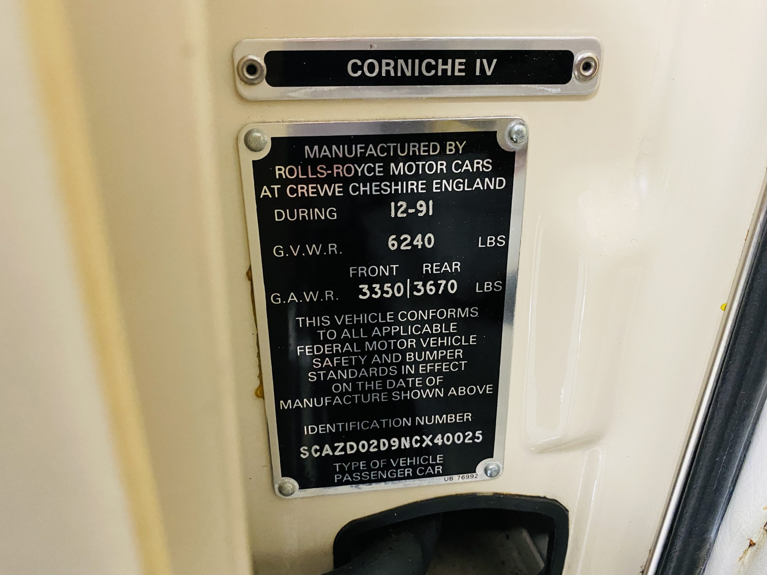 The Rolls is complete with its Owners Manuals, original set of tools and 20 years of service records. When new, the Corniche IV had a base MSRP over $285,000.